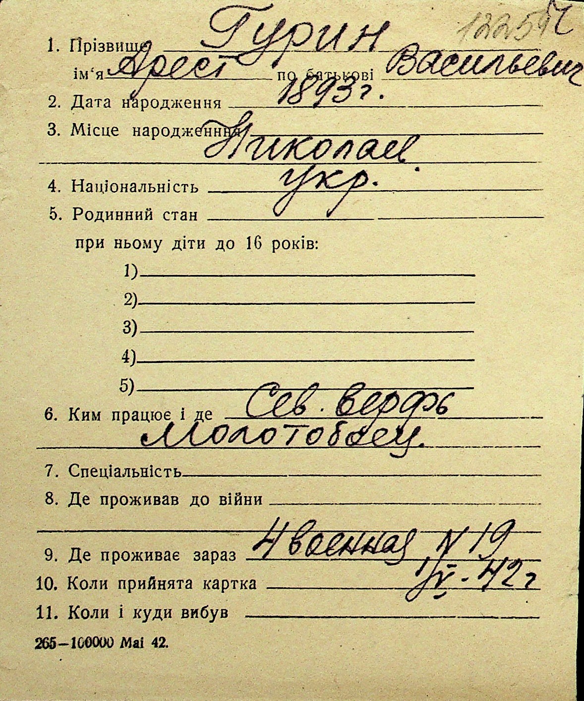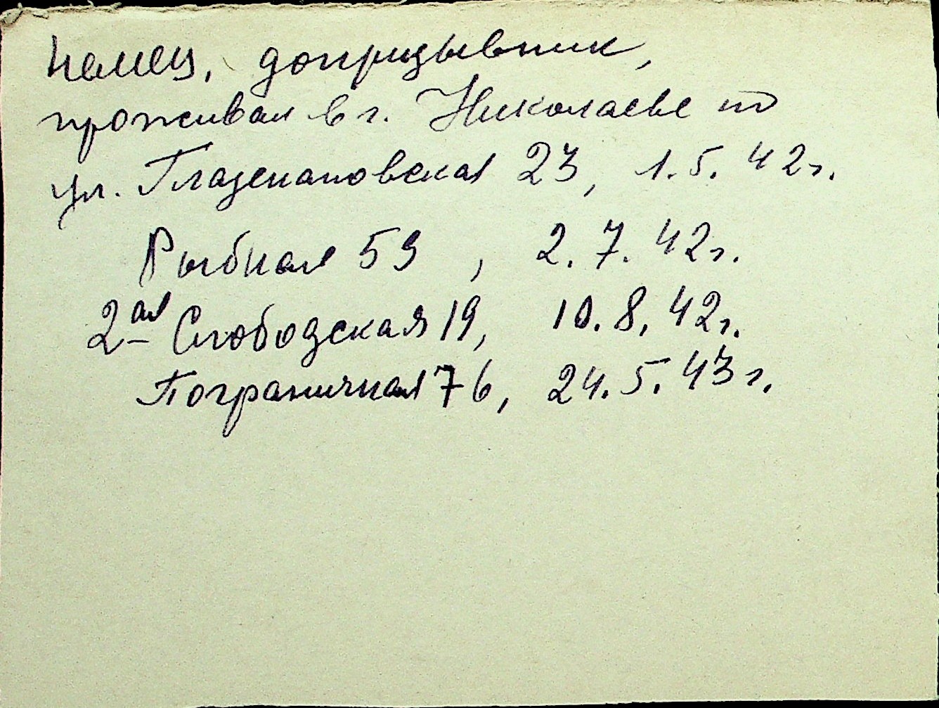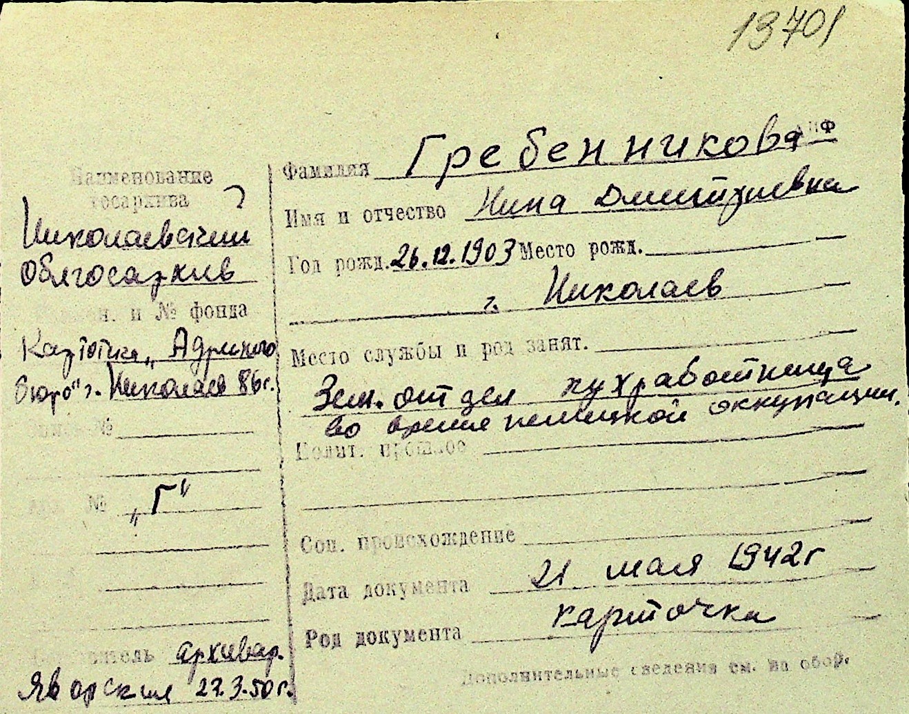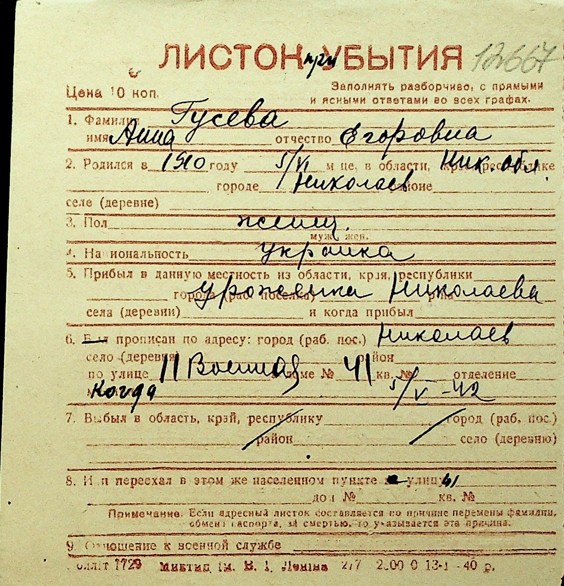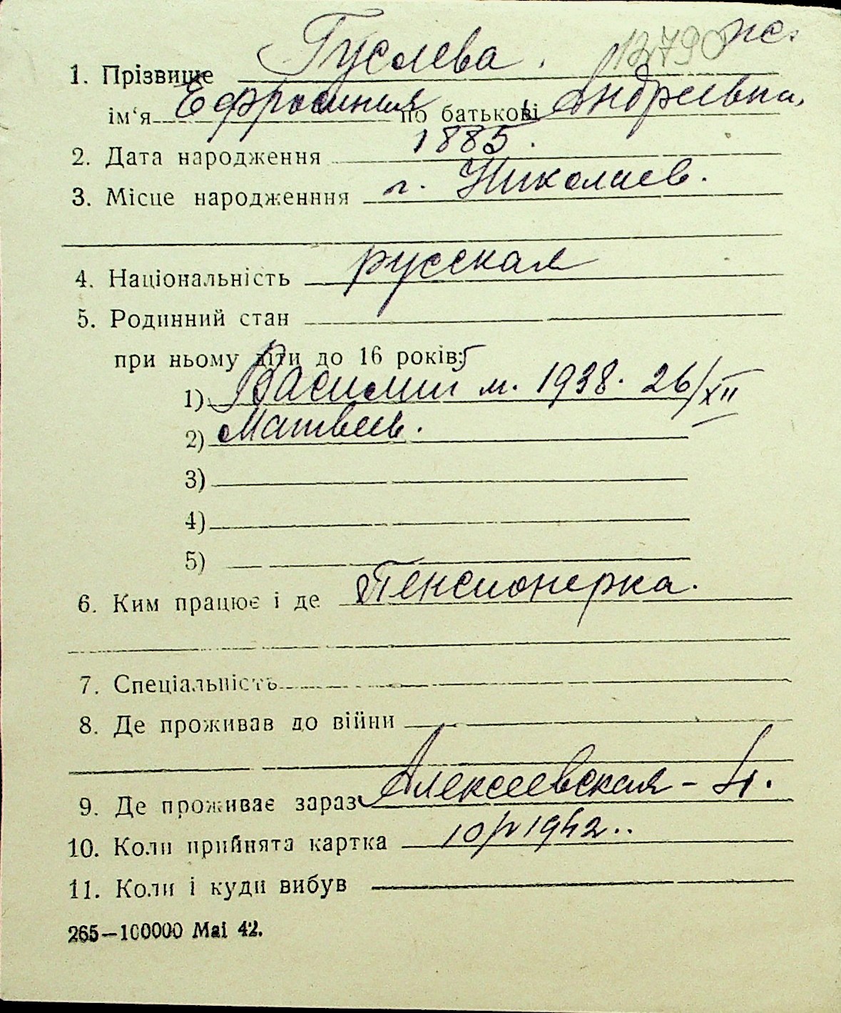 • • Перелік карток до фонду № Н-1016