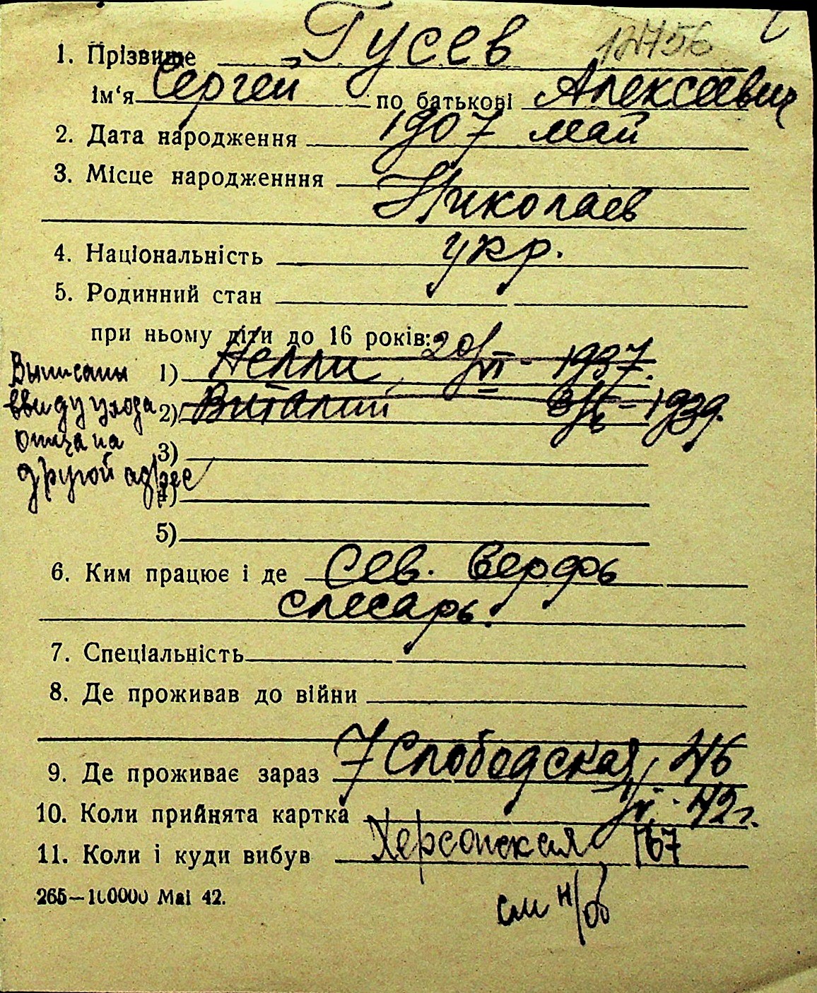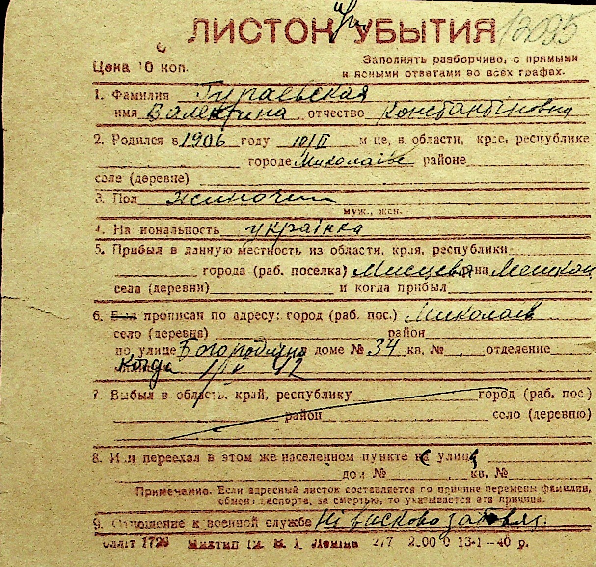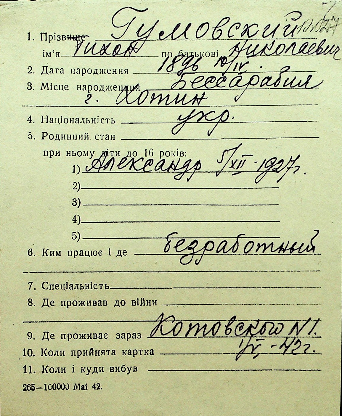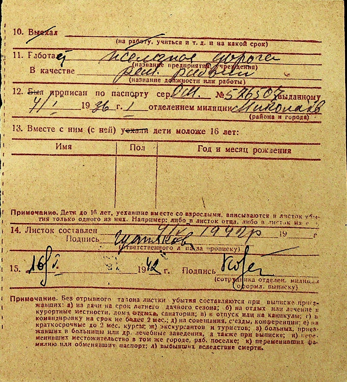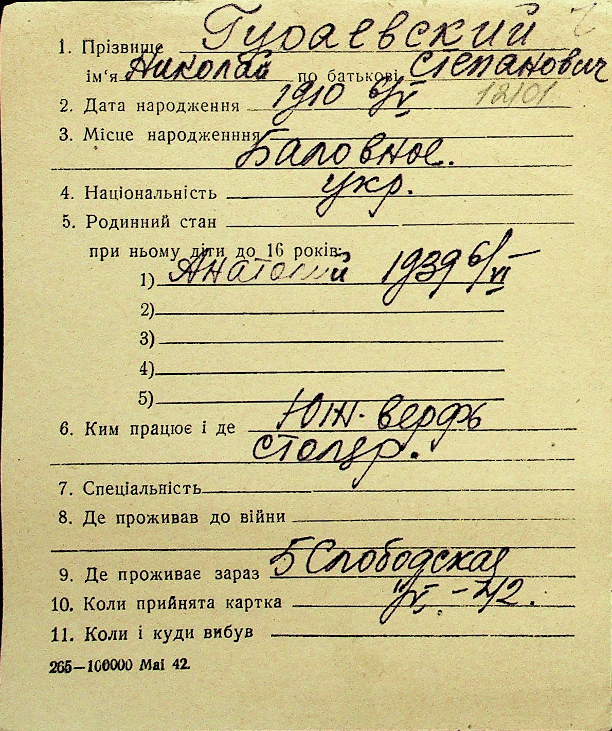 • • Перелік карток до фонду № Н-1016