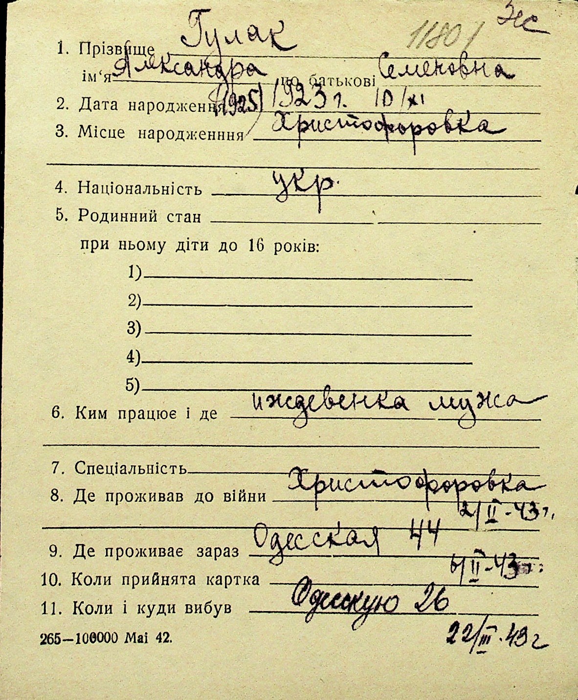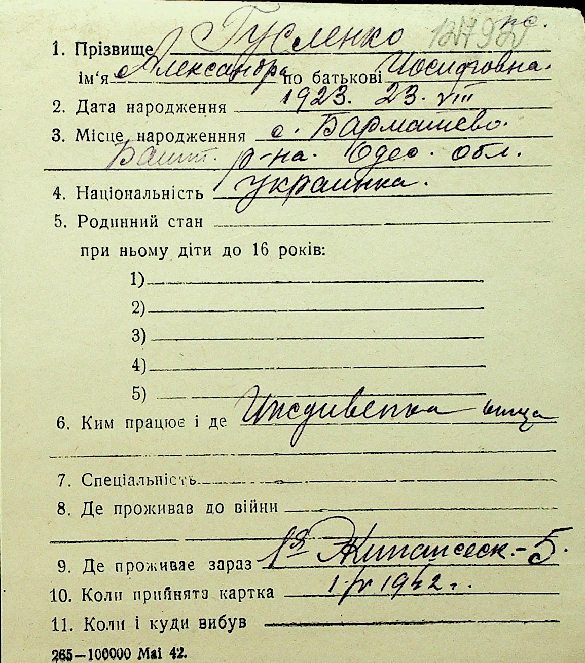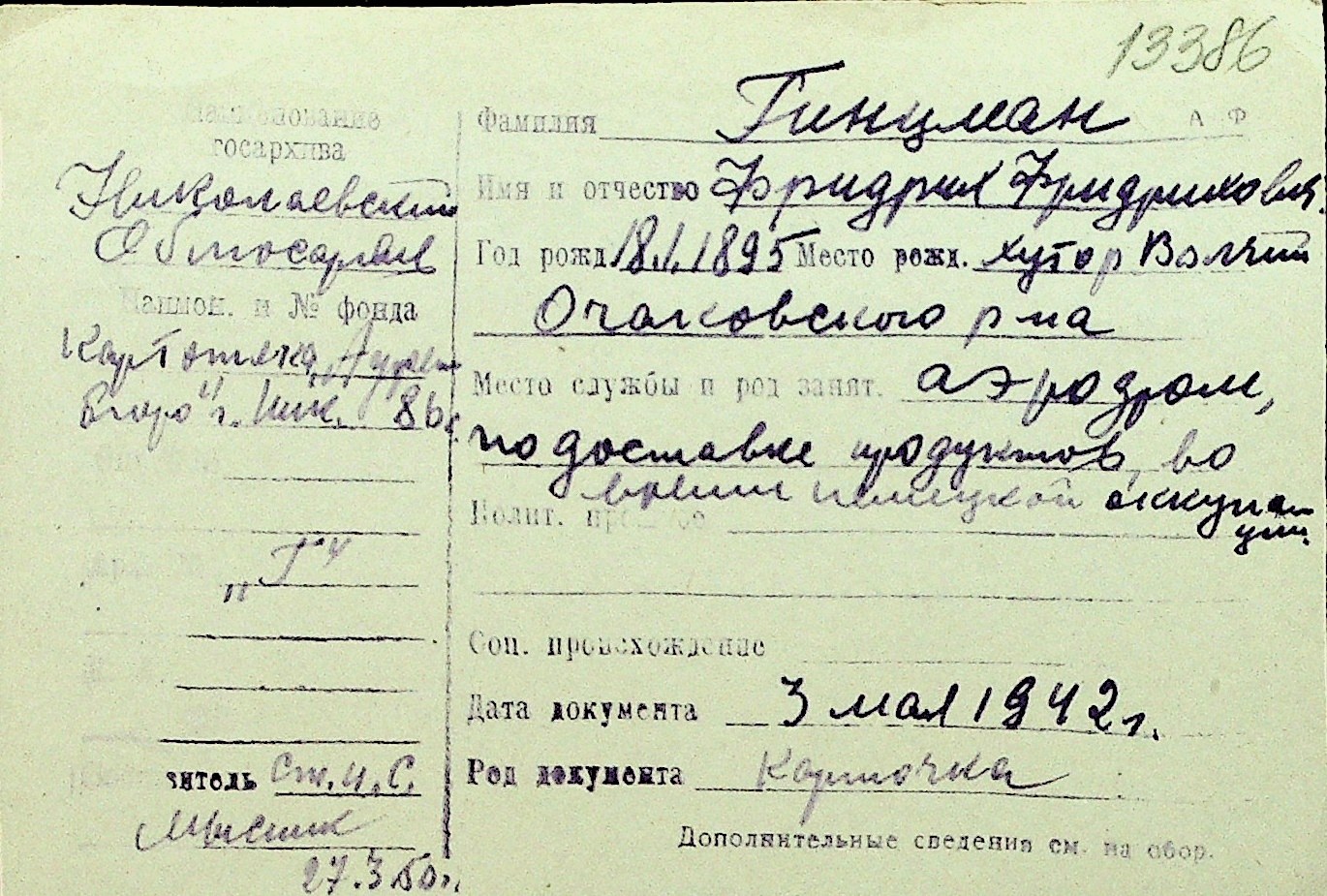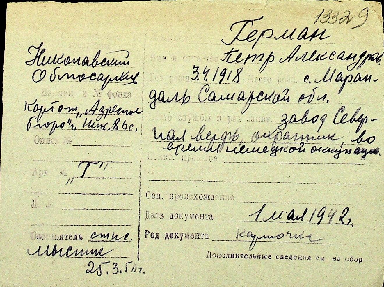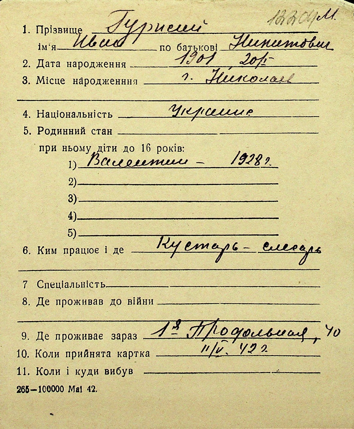 • • Перелік карток до фонду № Н-1016