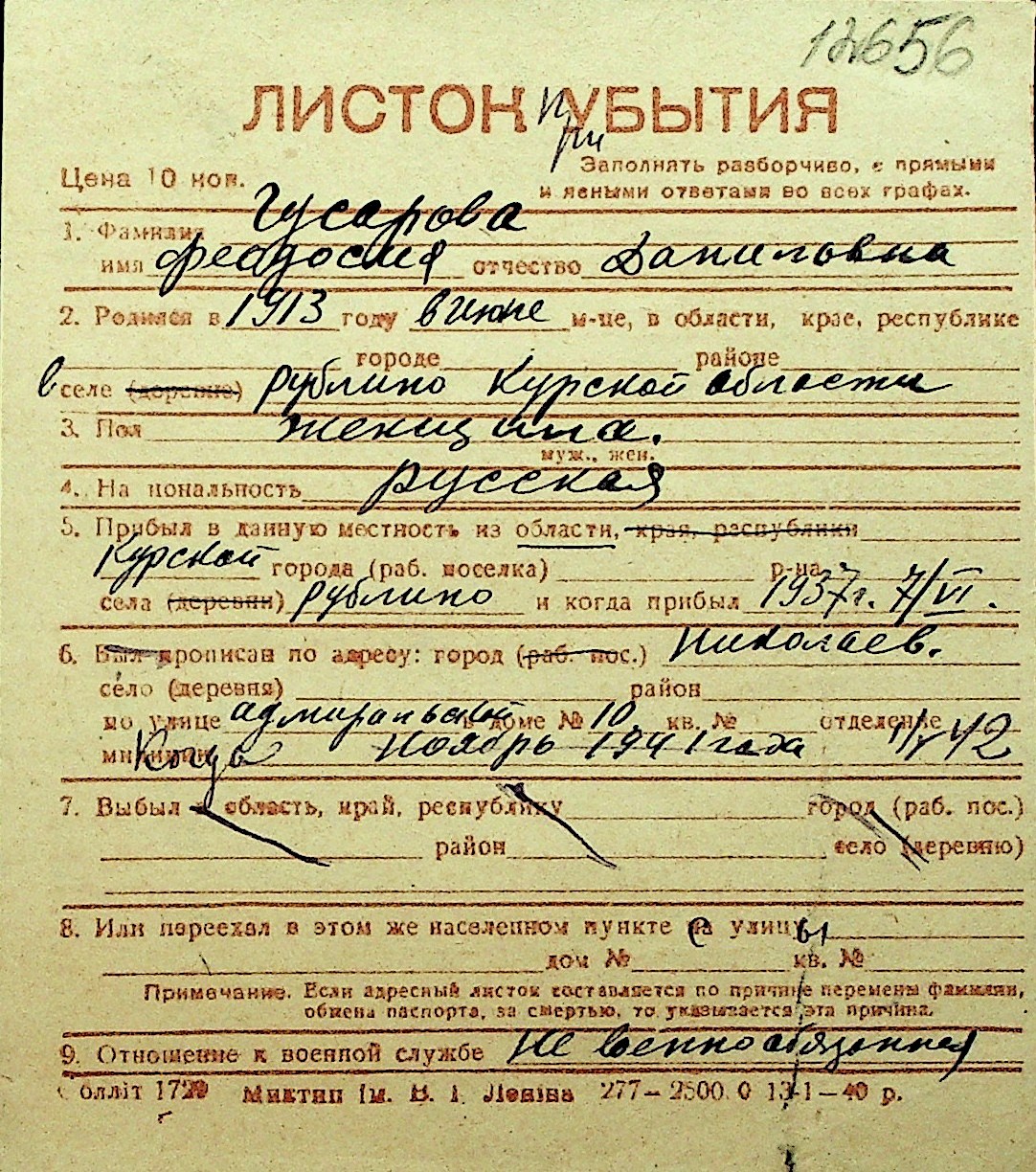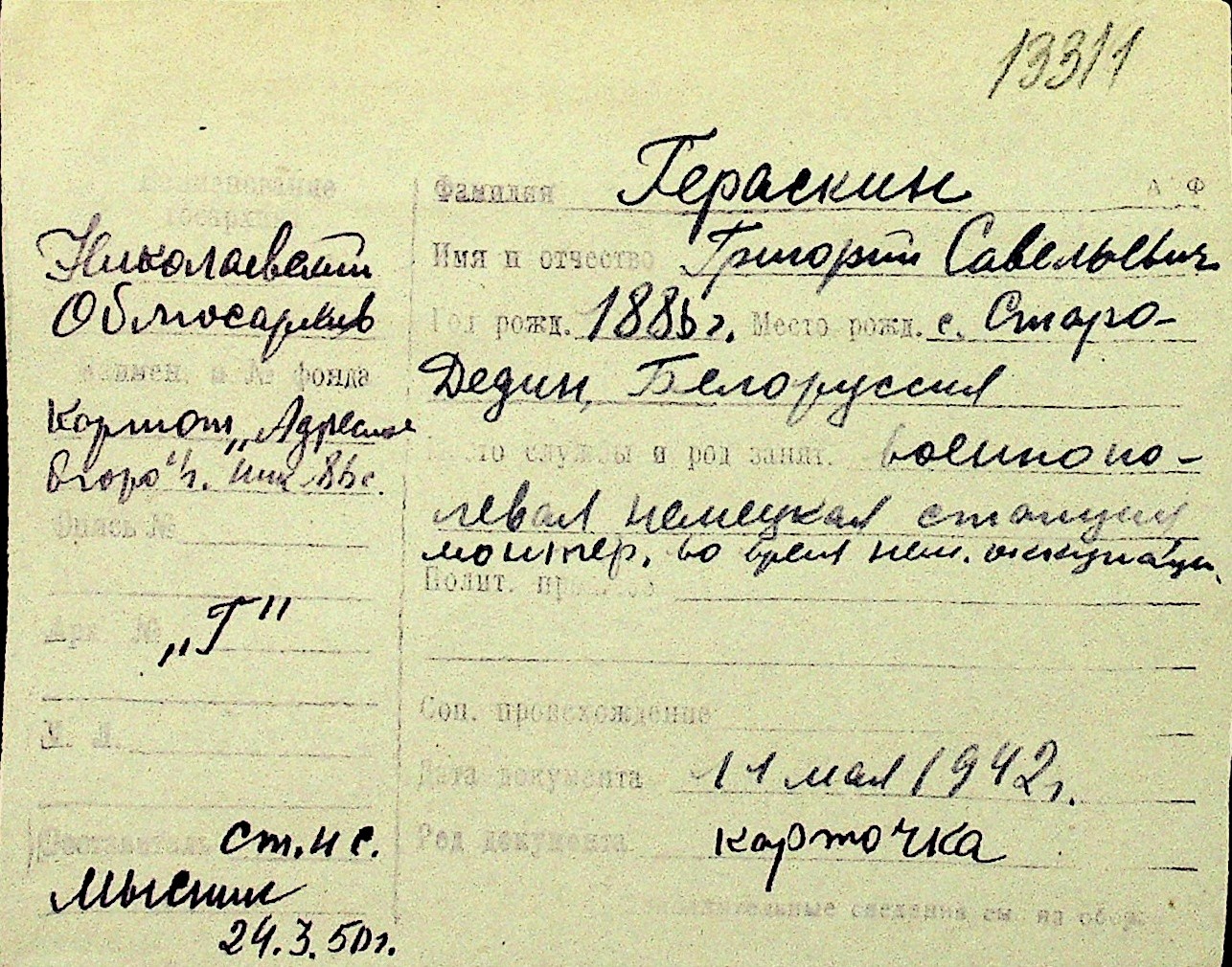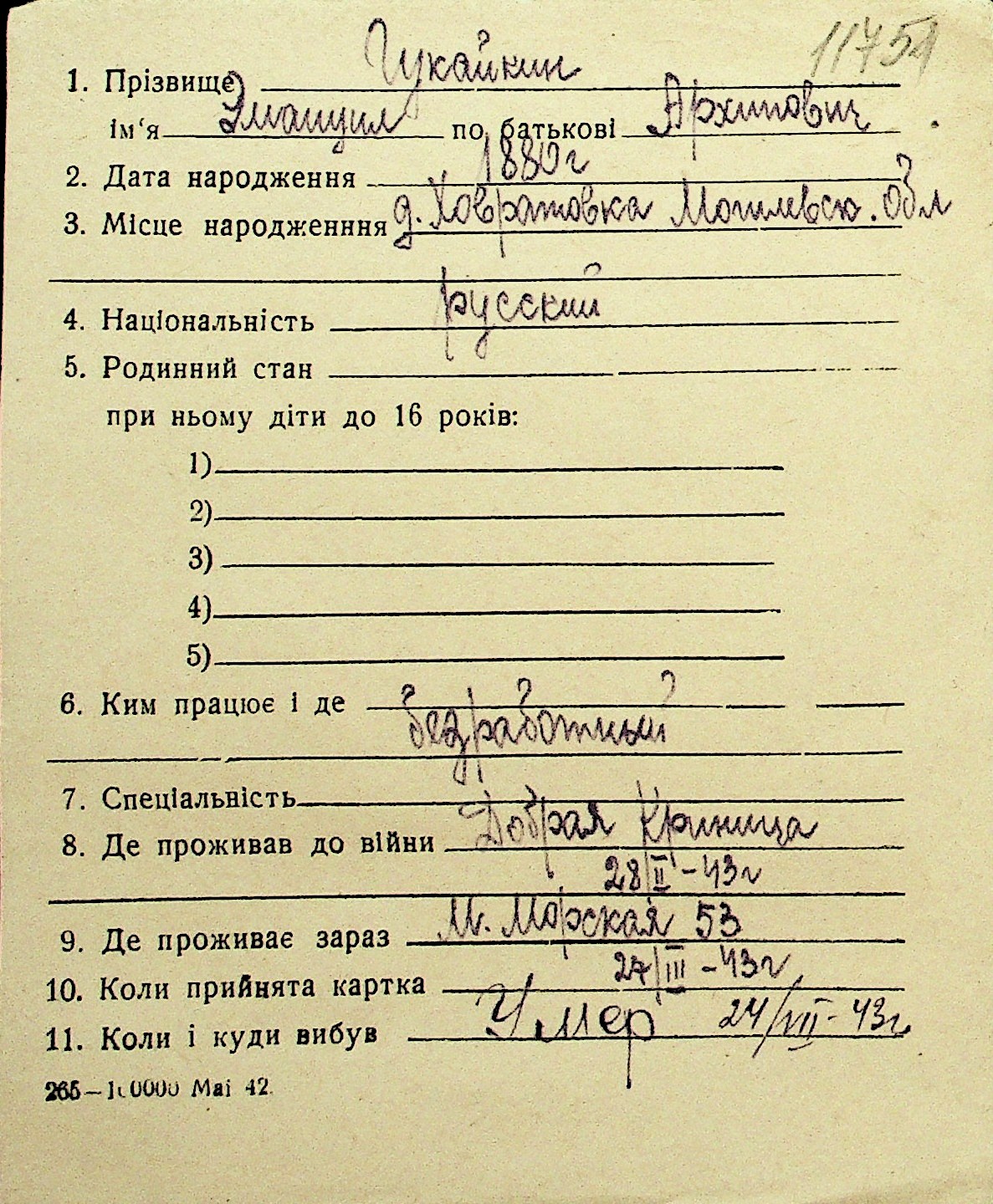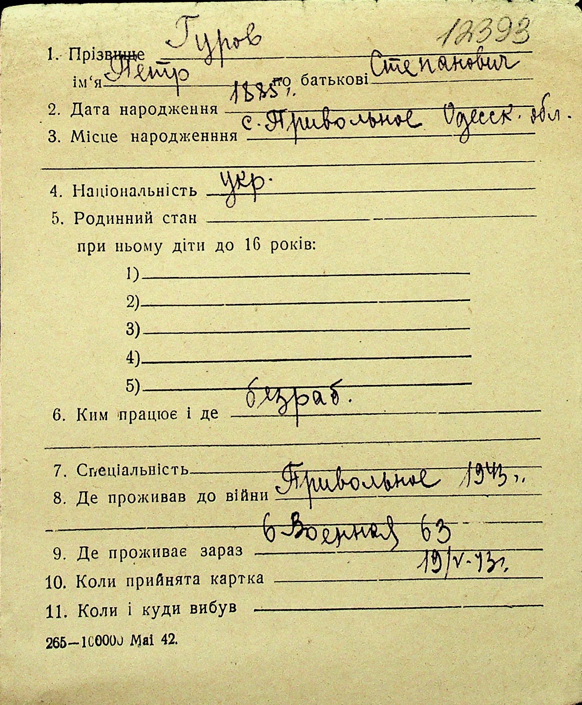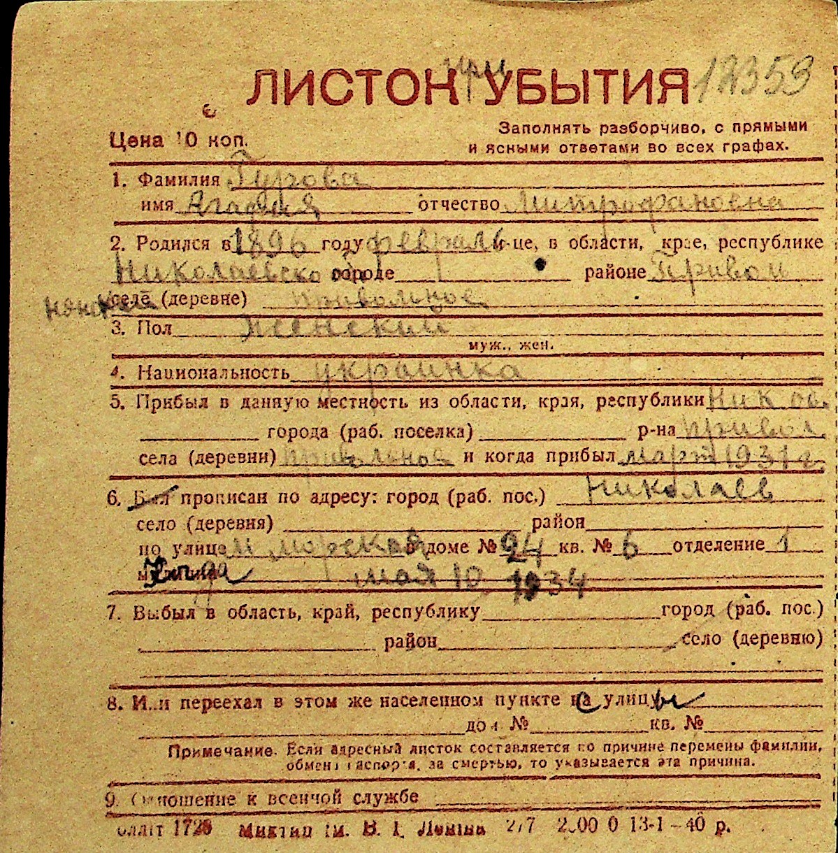 • • Перелік карток до фонду № Н-1016