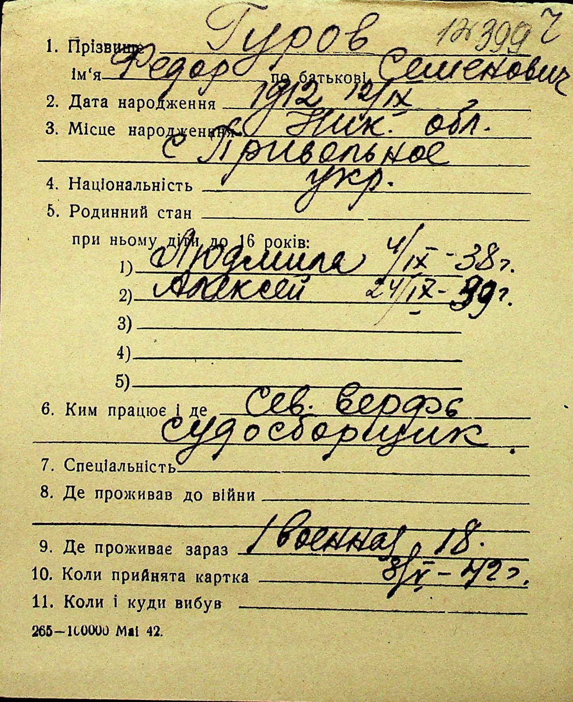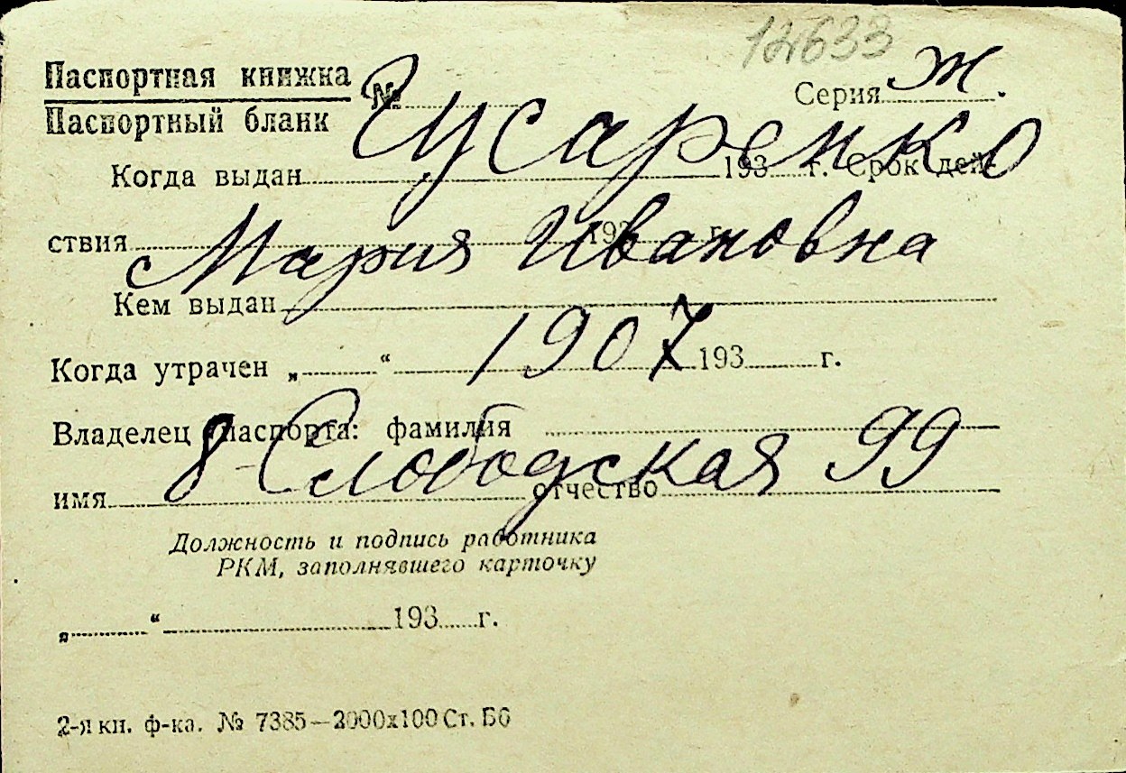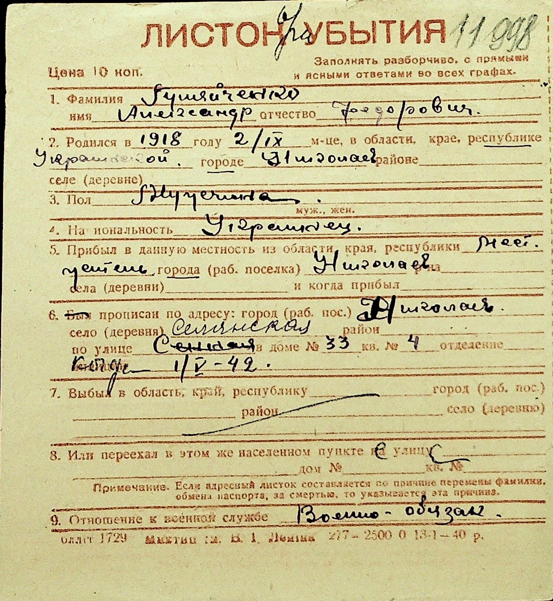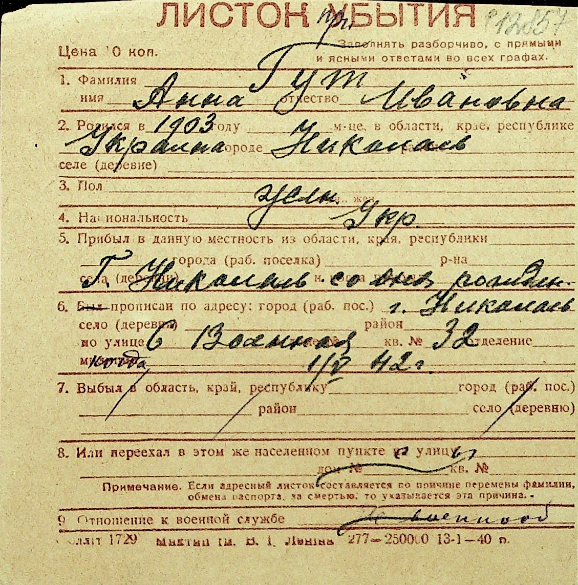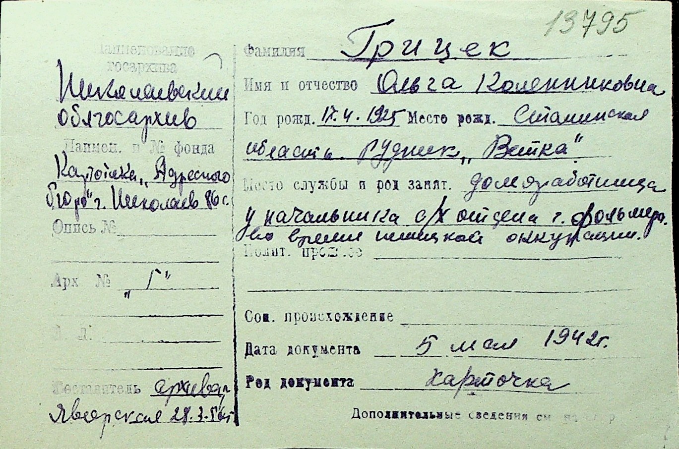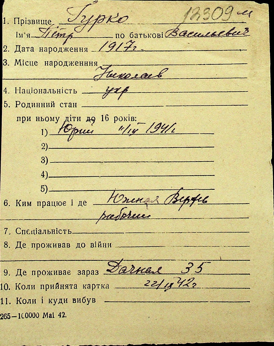 • • Перелік карток до фонду № Н-1016