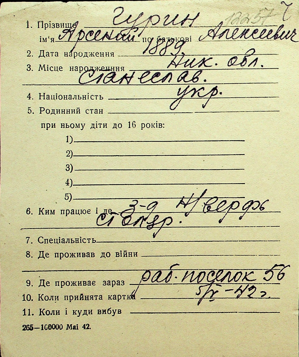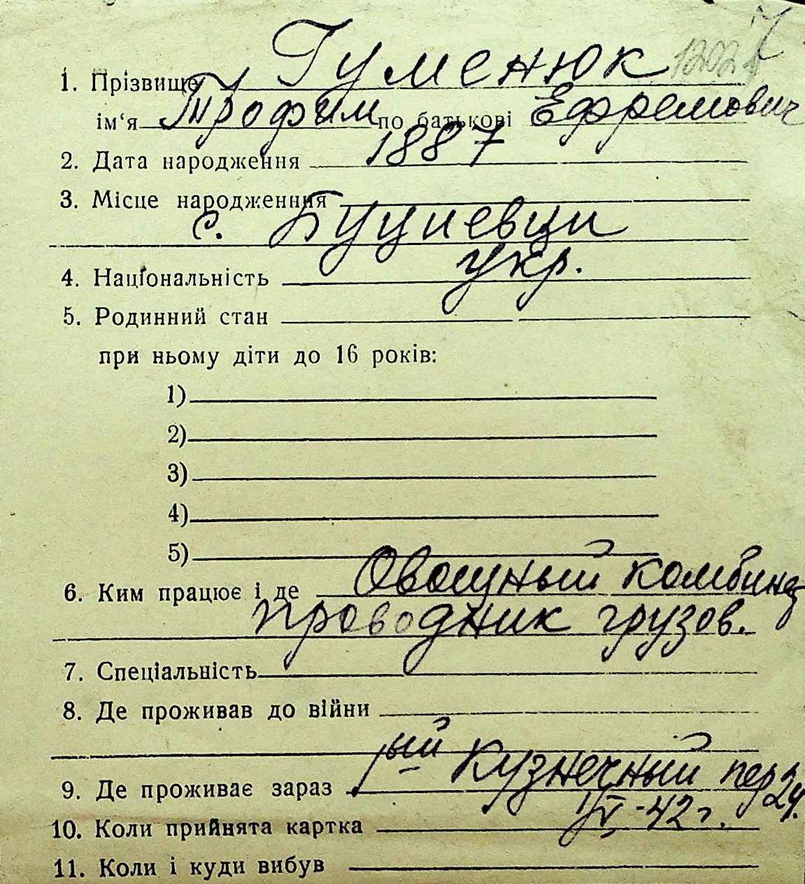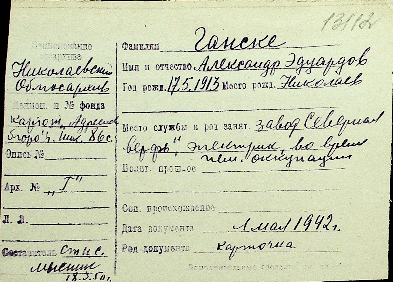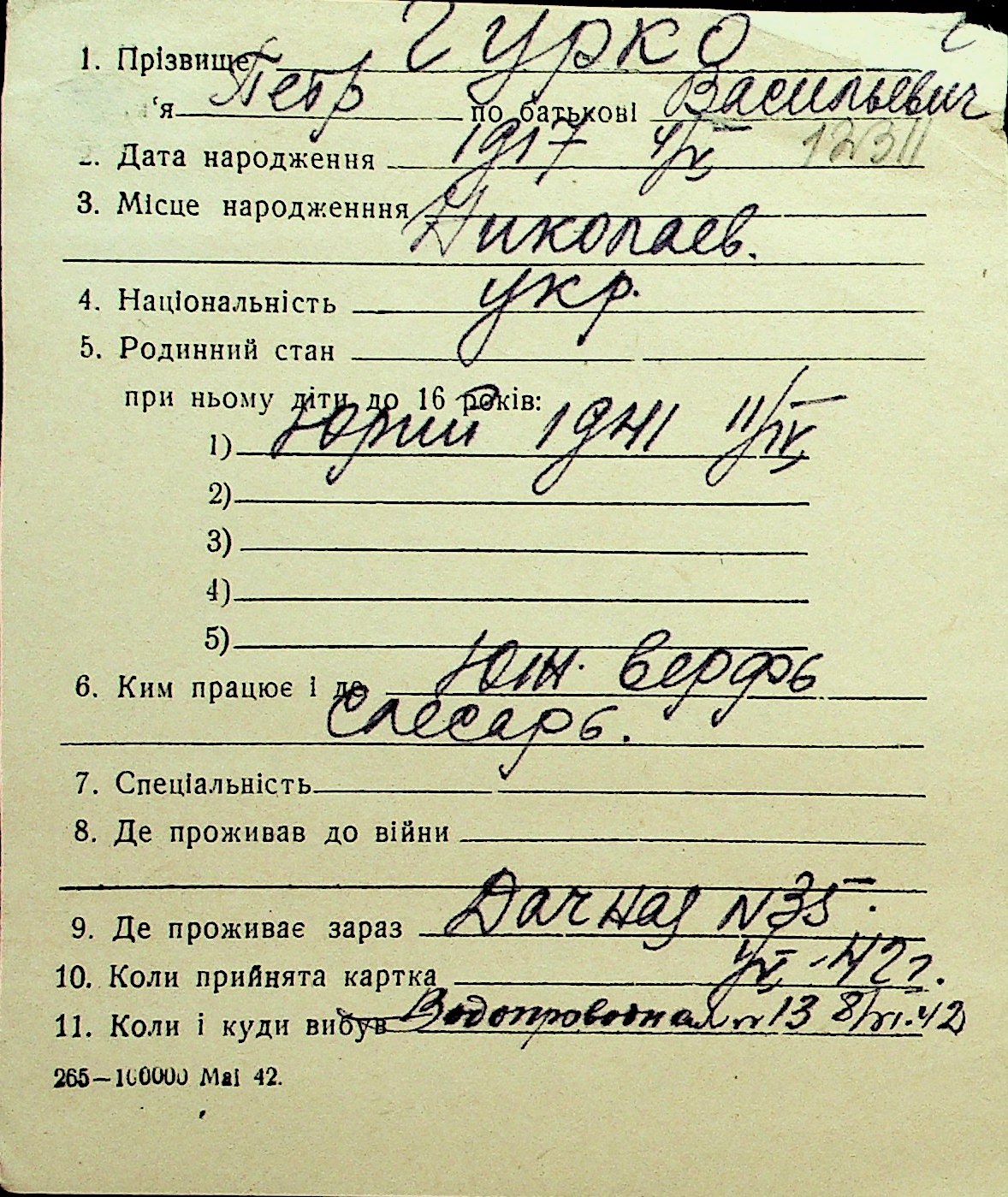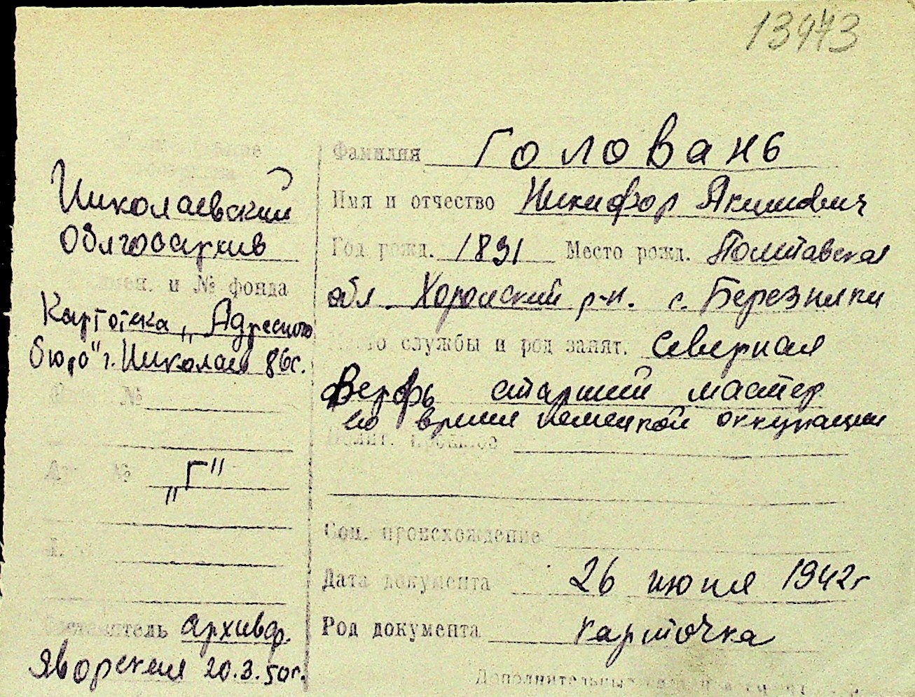 • • Перелік карток до фонду № Н-1016
