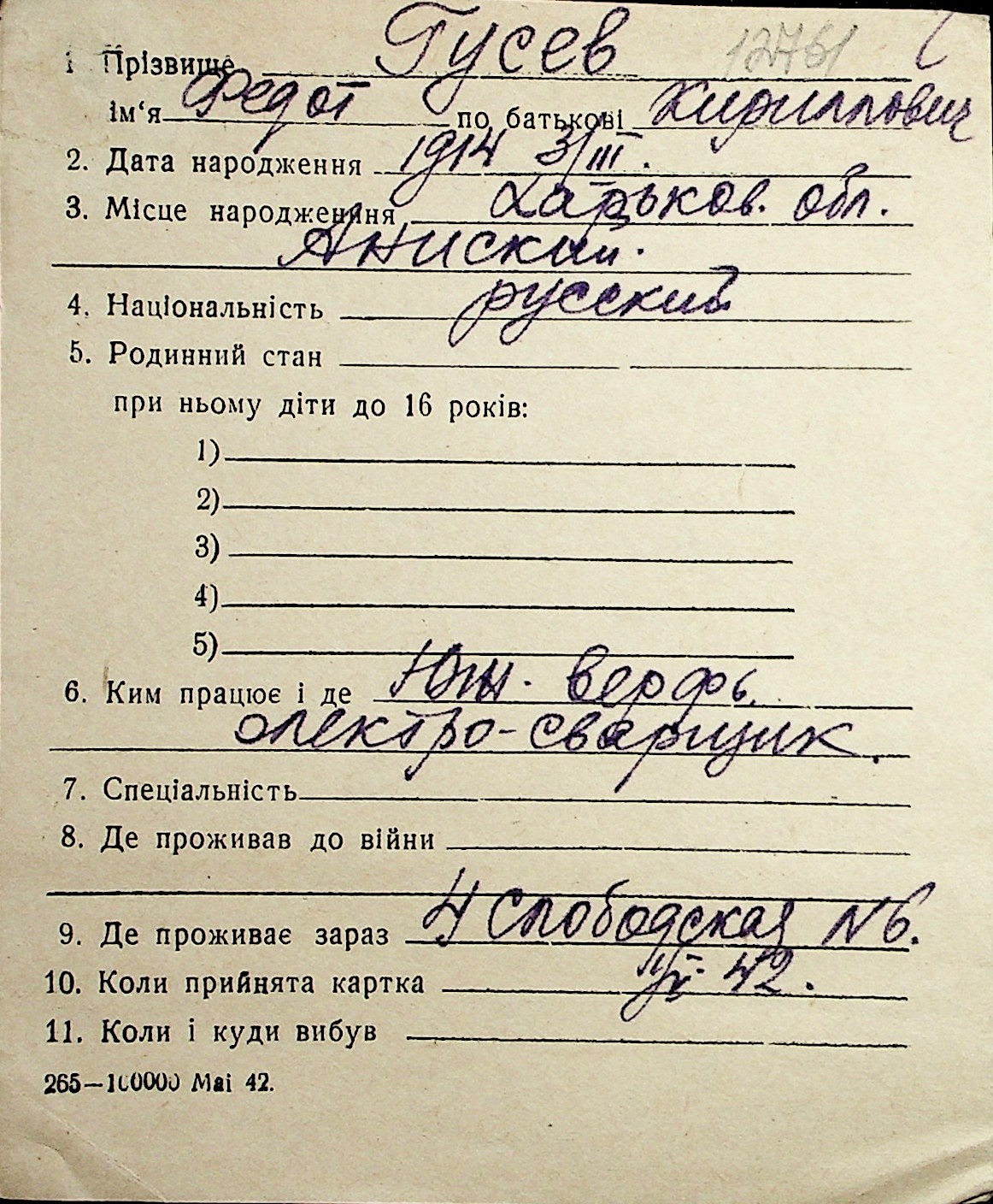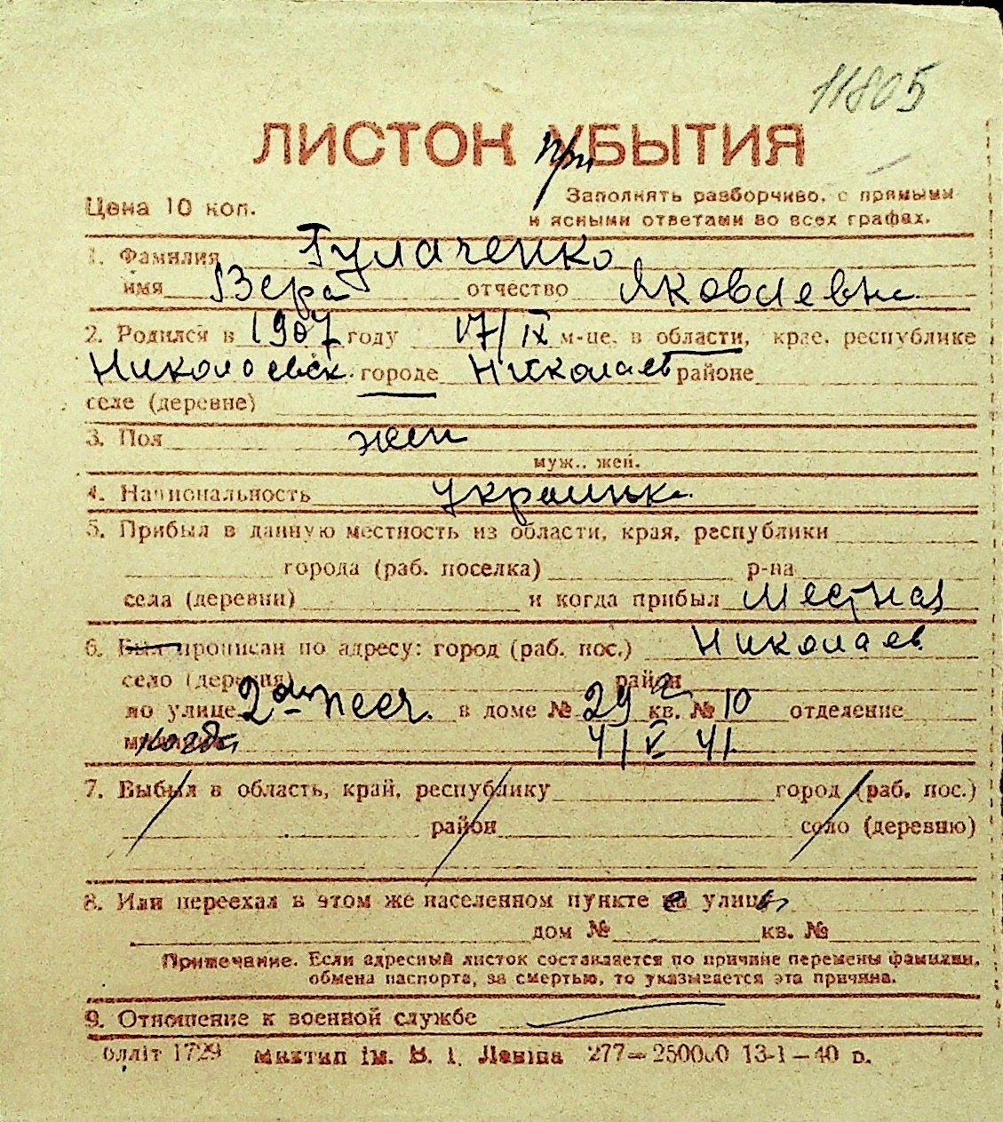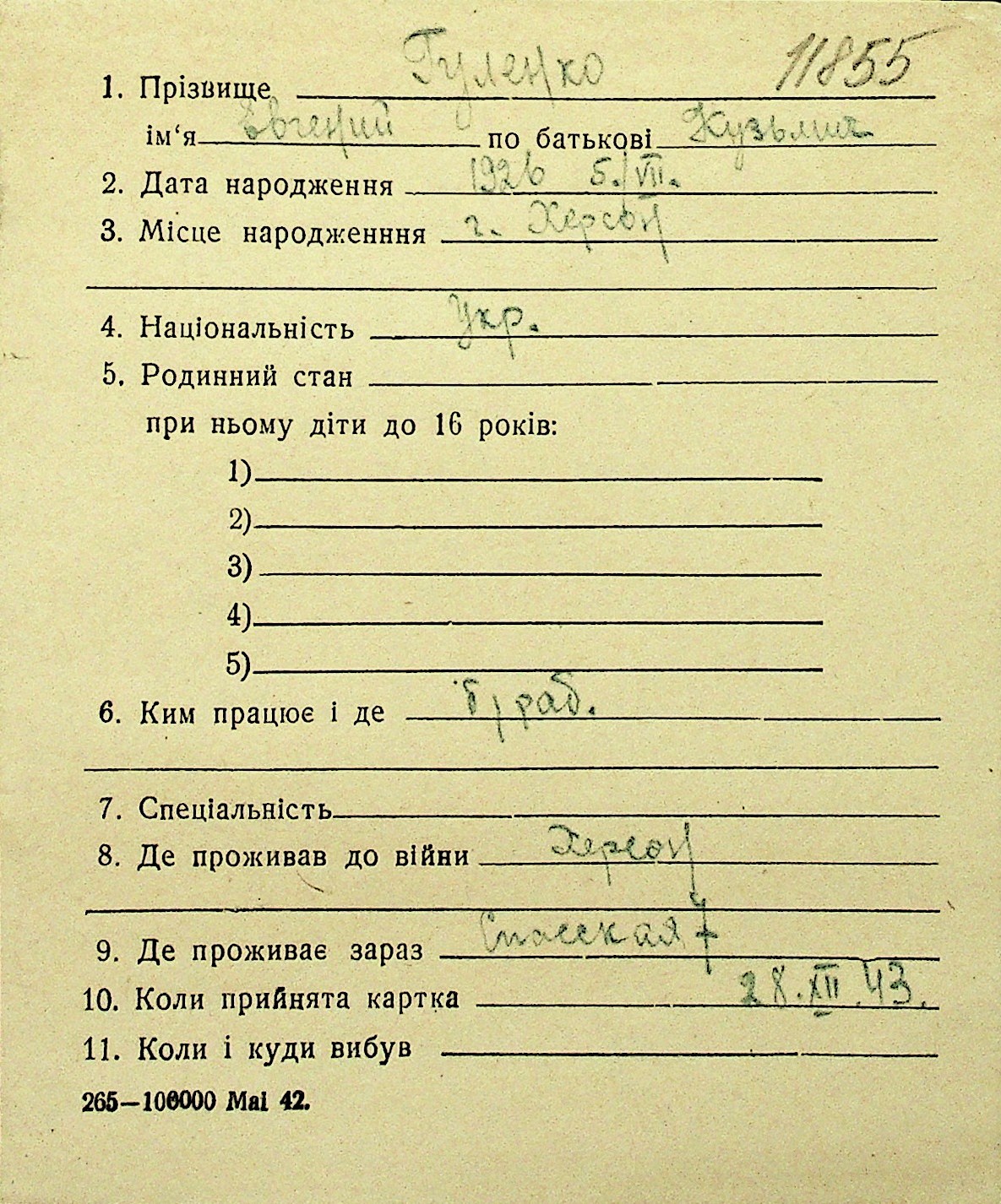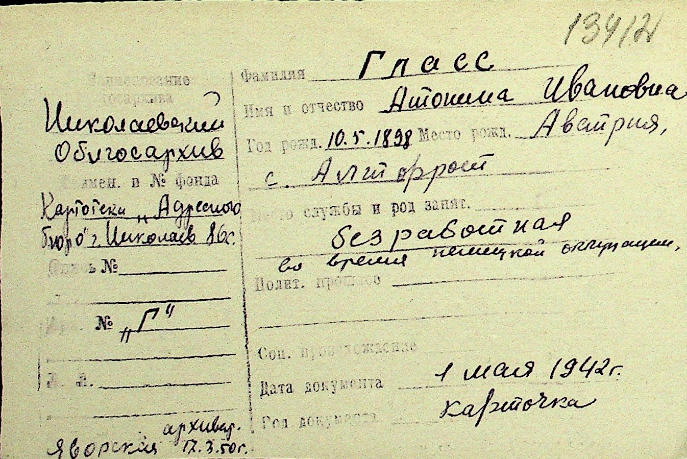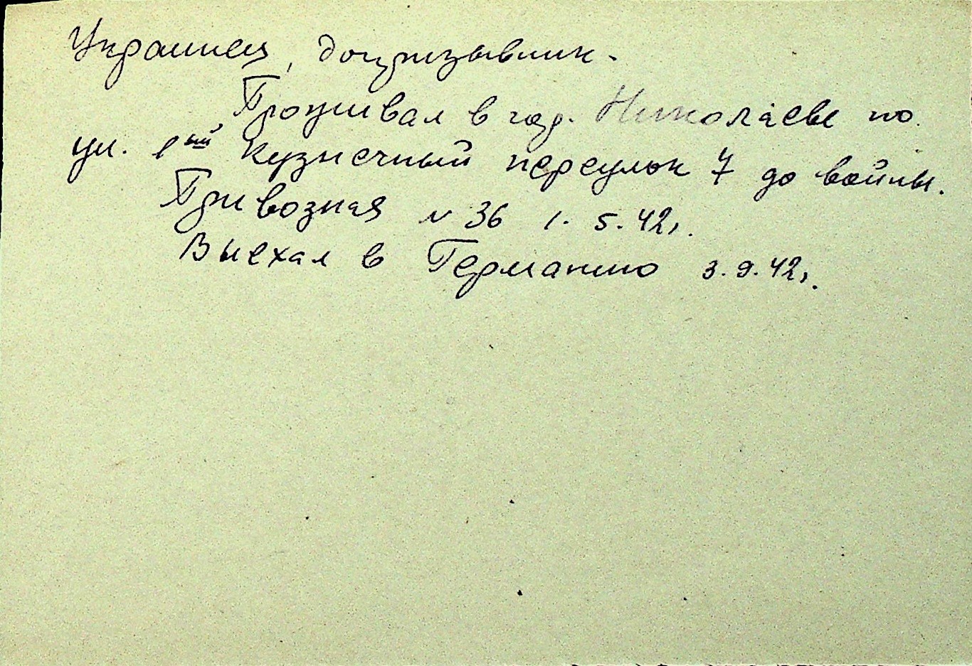 • • Перелік карток до фонду № Н-1016