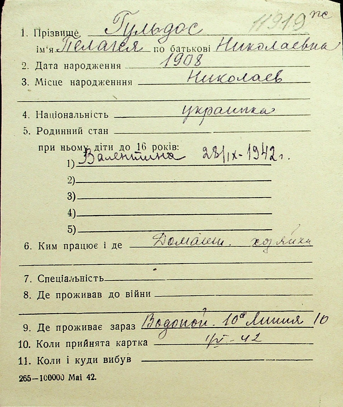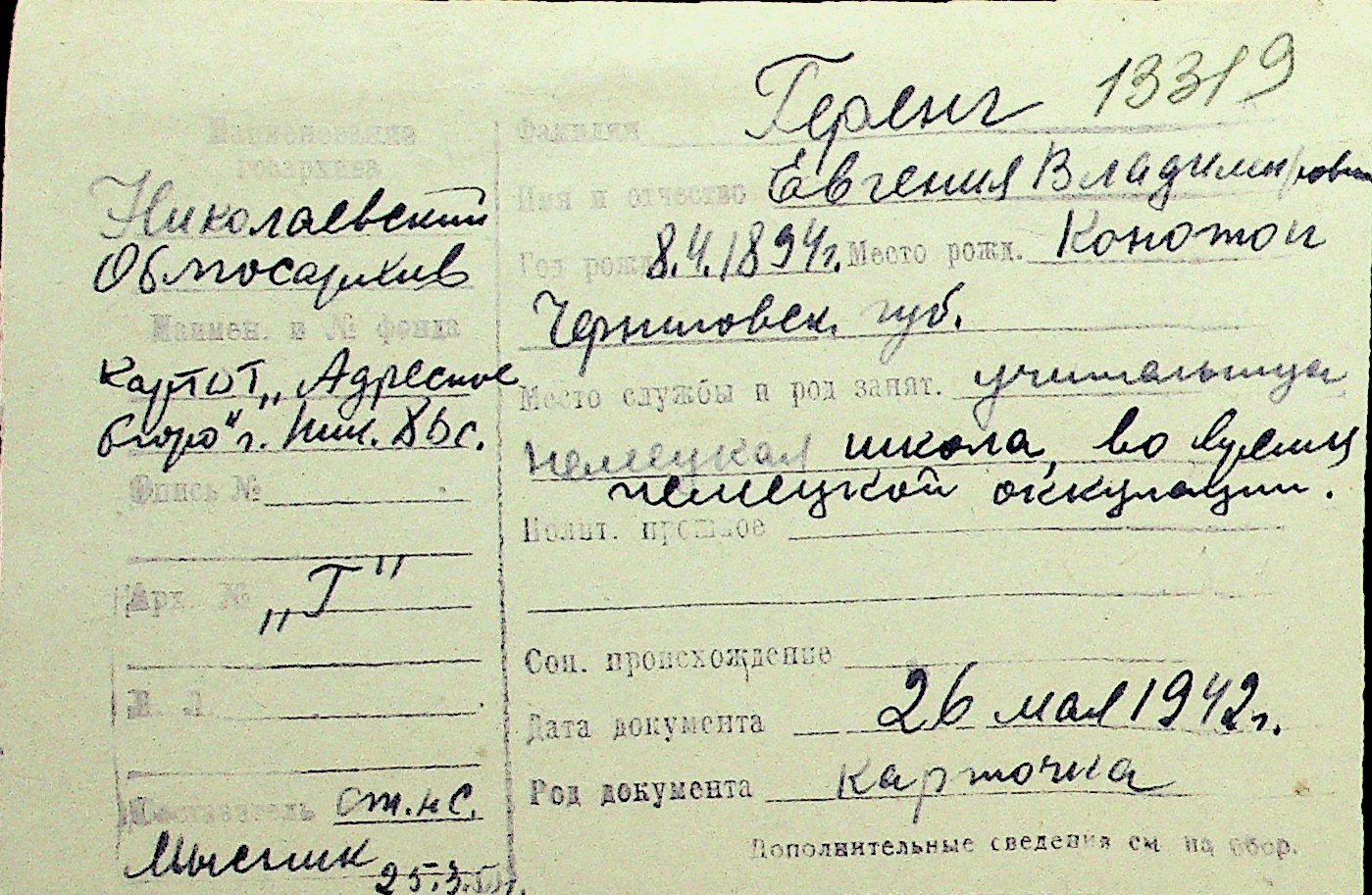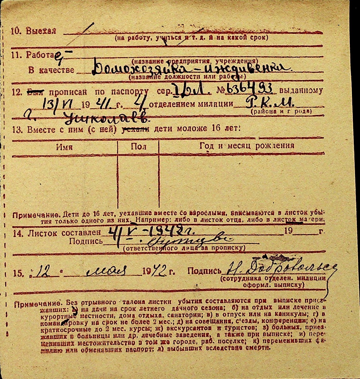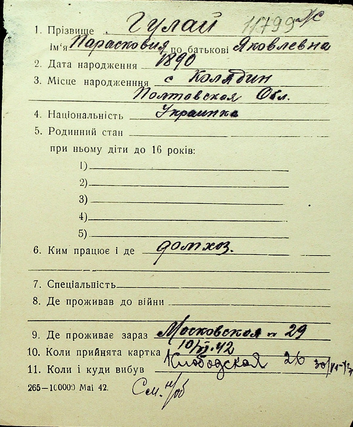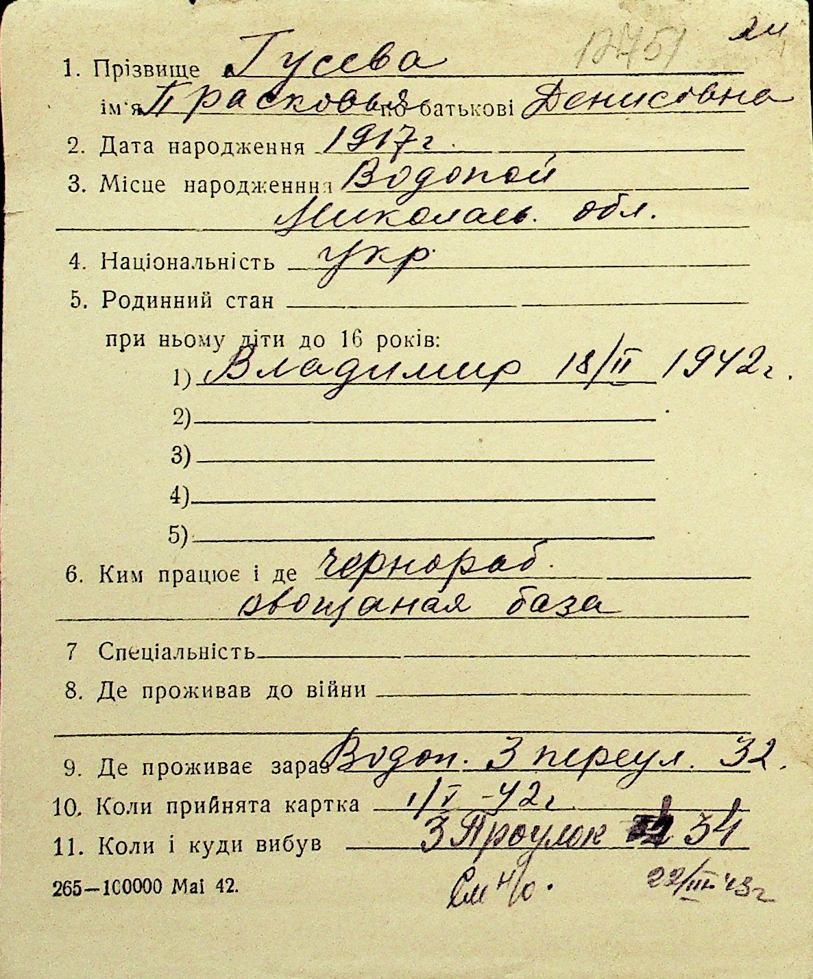 • • Перелік карток до фонду № Н-1016