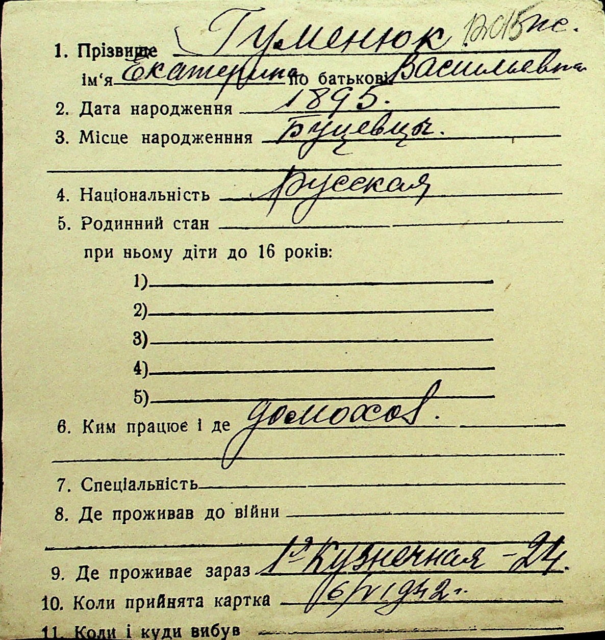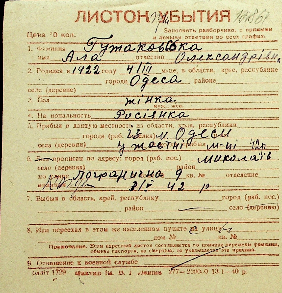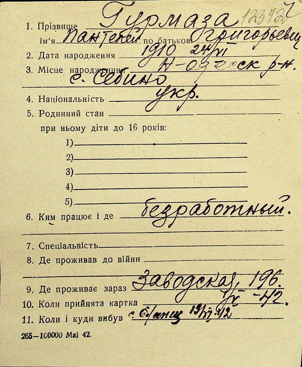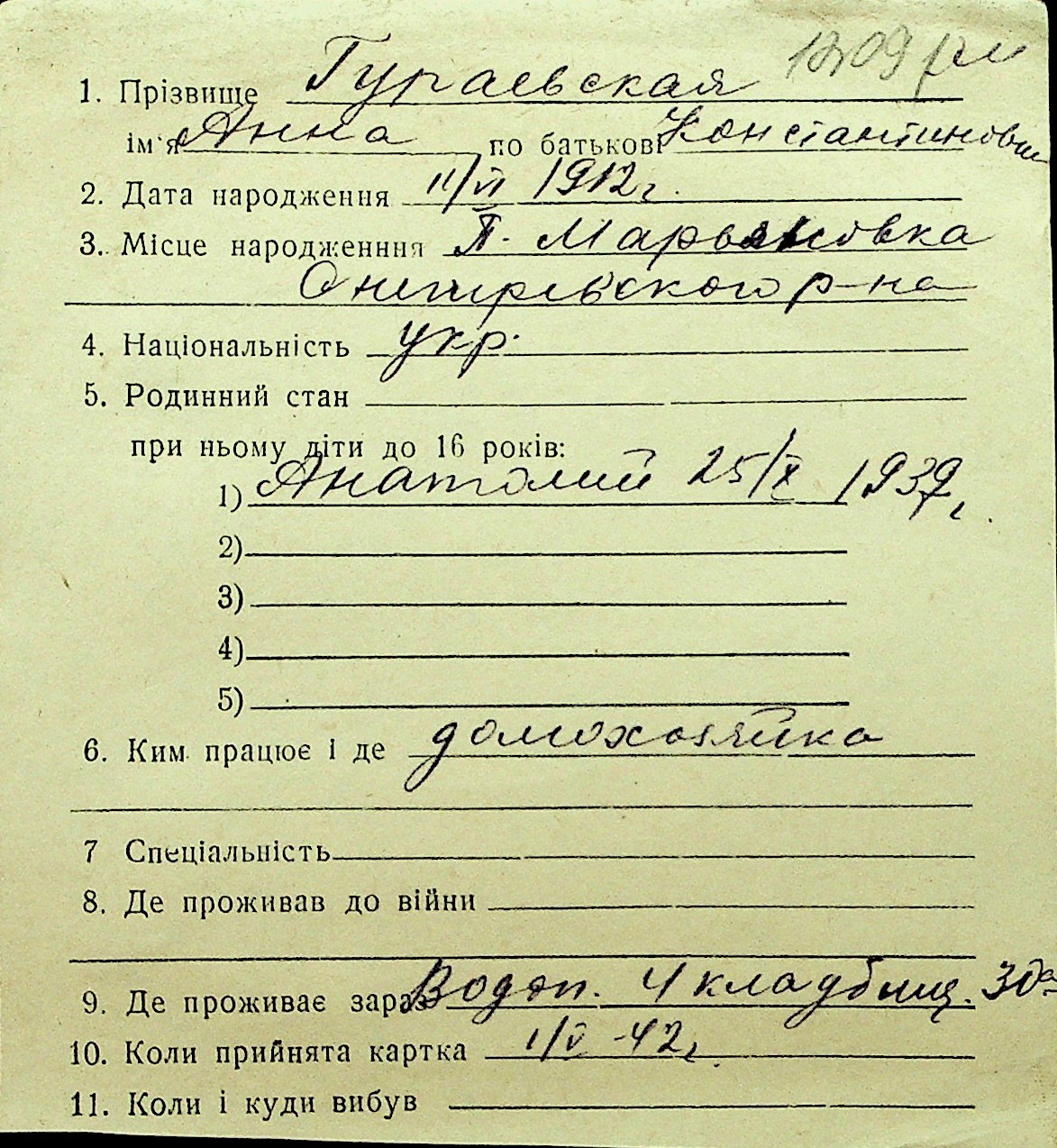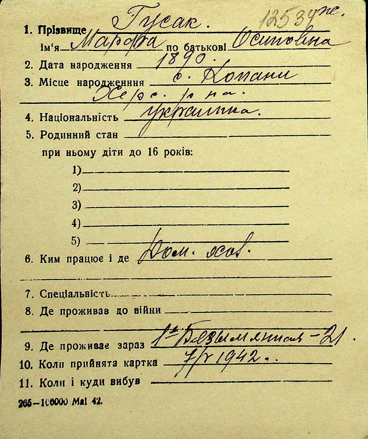 • • Перелік карток до фонду № Н-1016