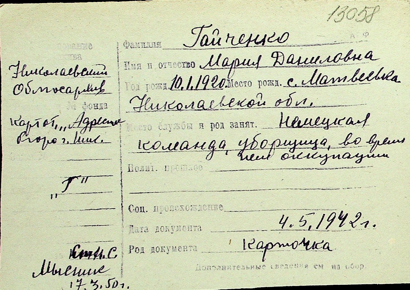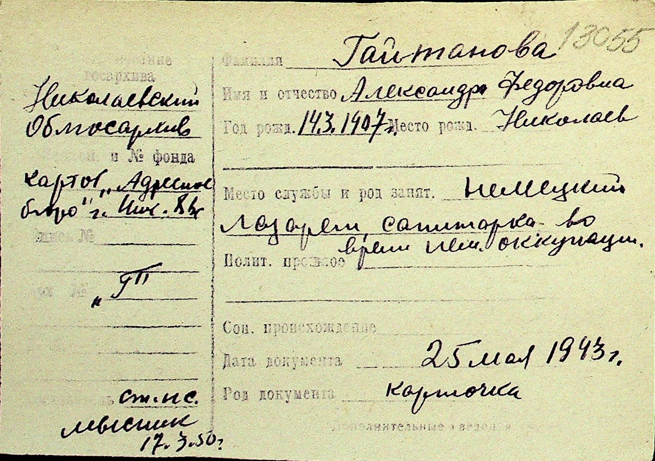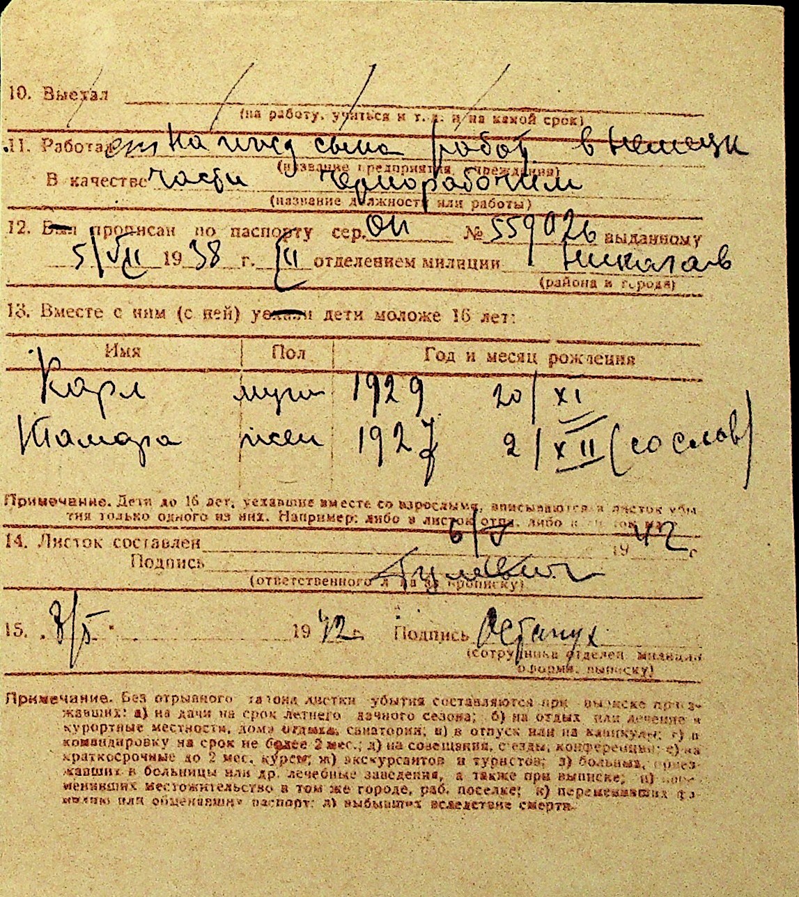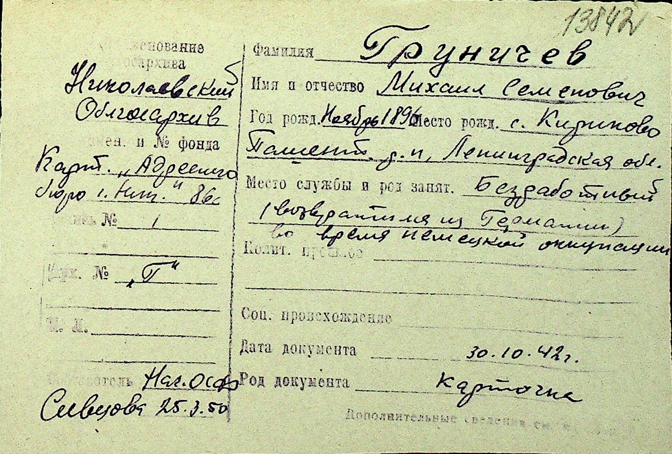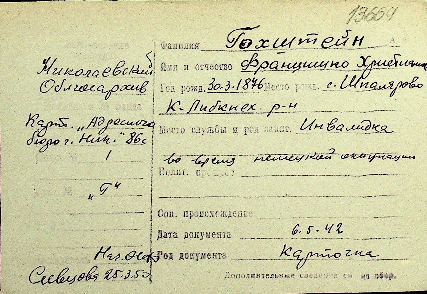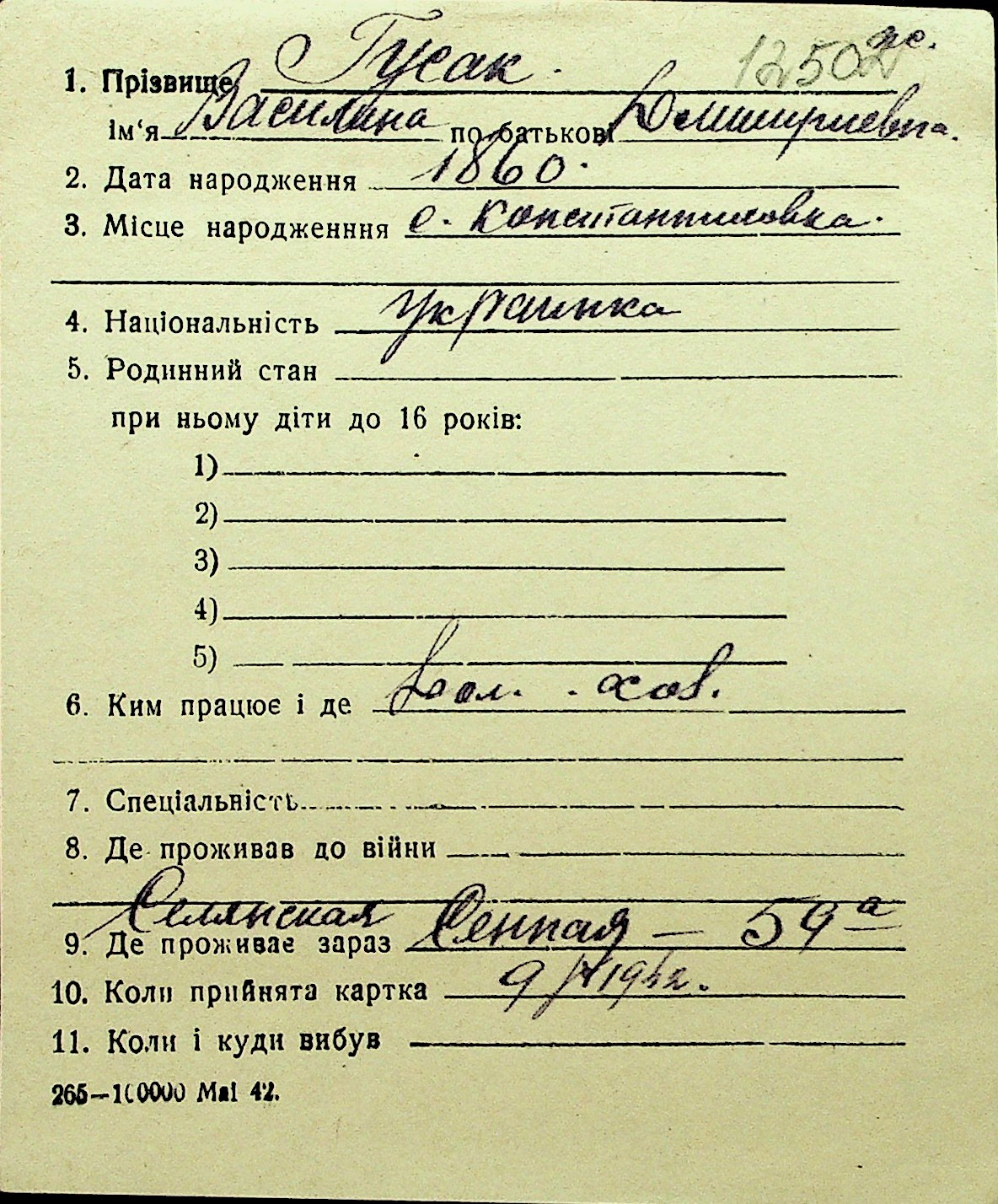 • • Перелік карток до фонду № Н-1016