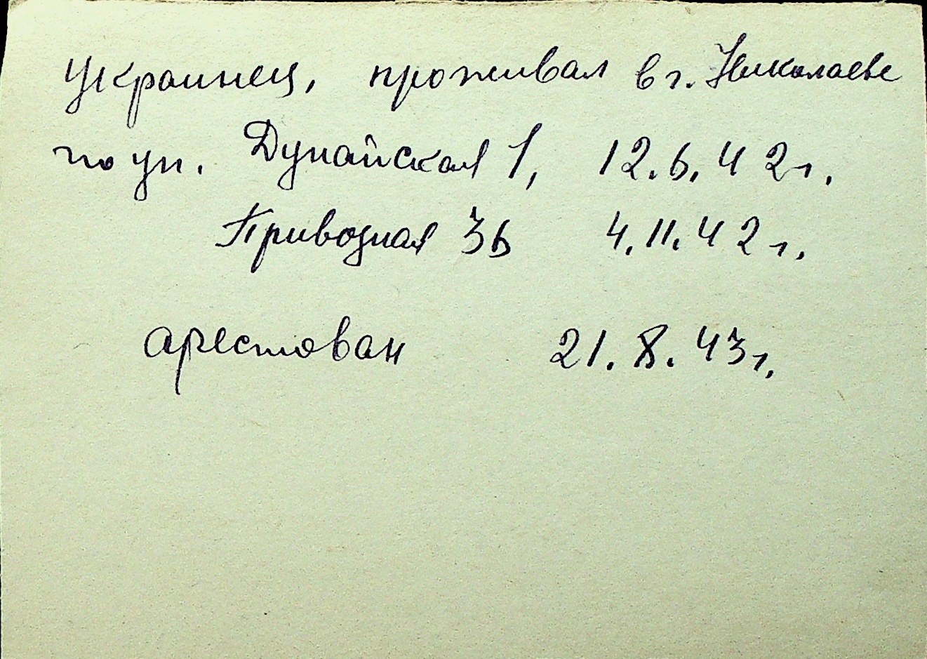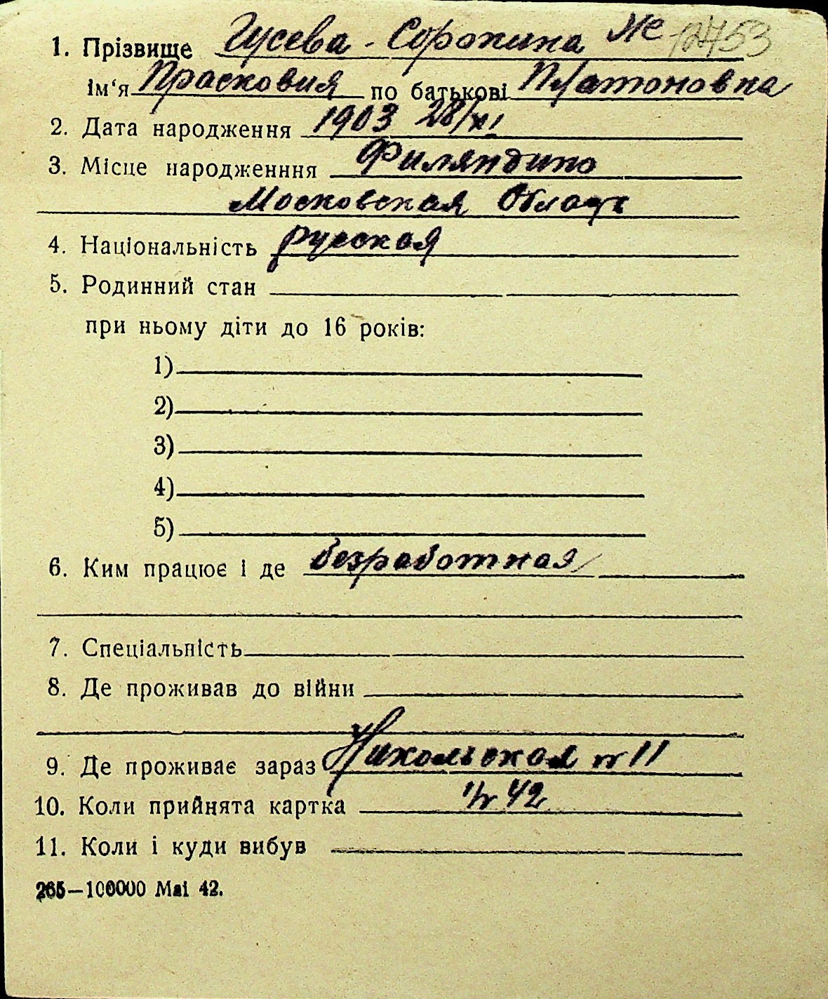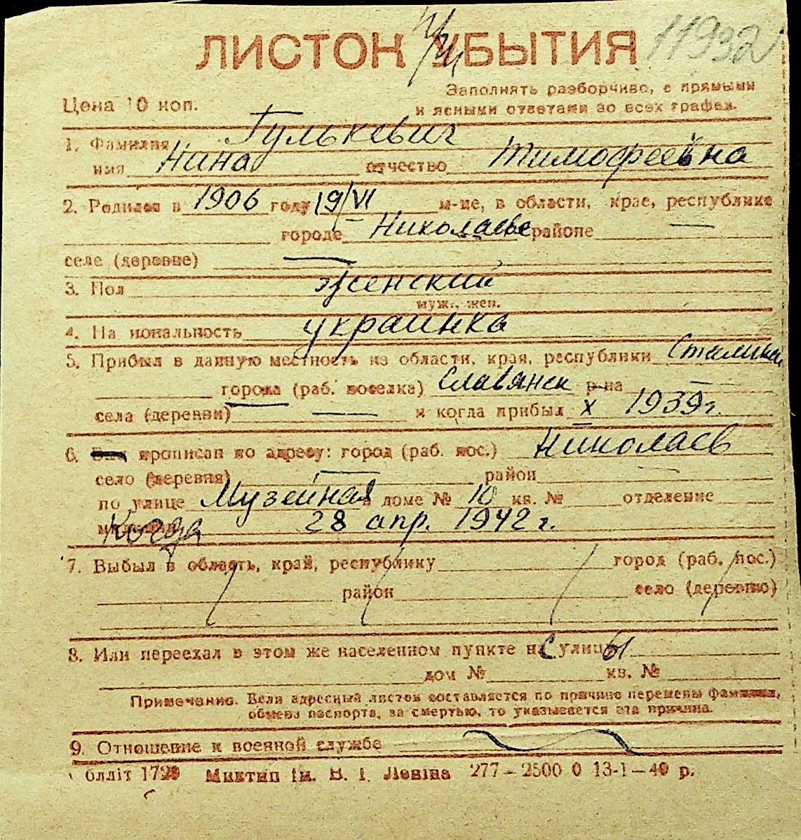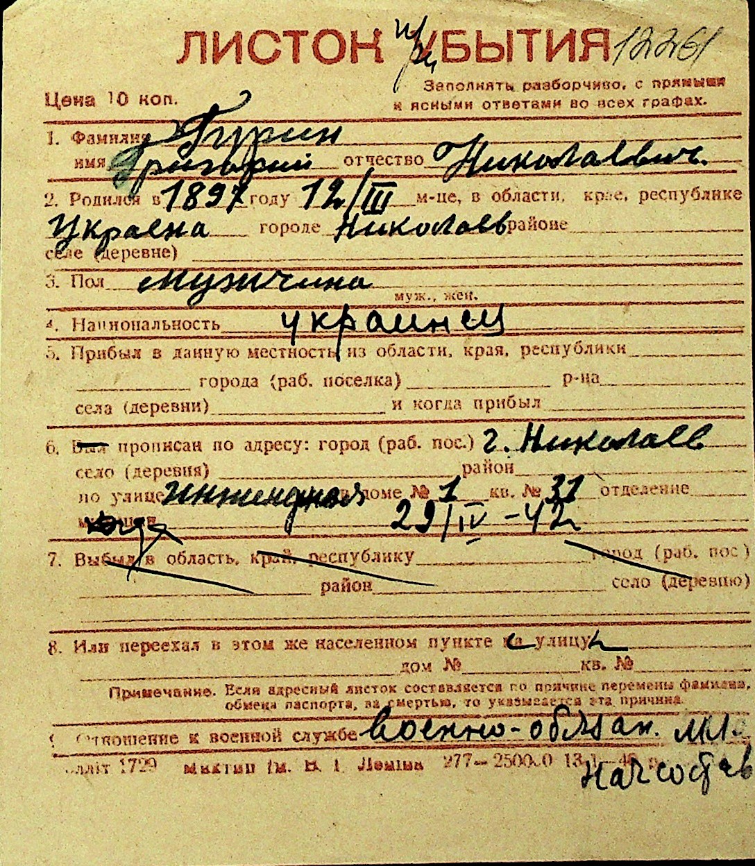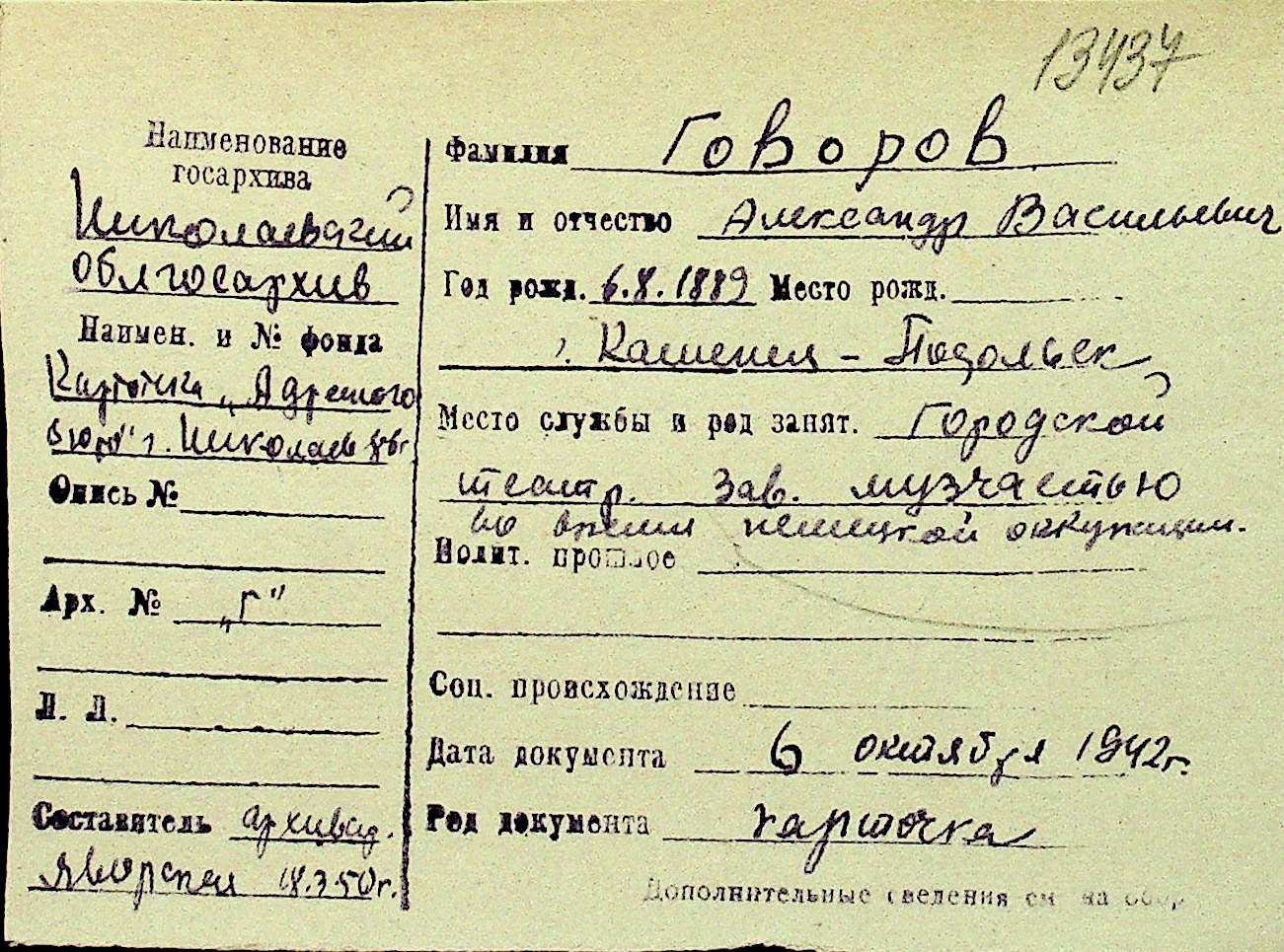• • Перелік карток до фонду № Н-1016