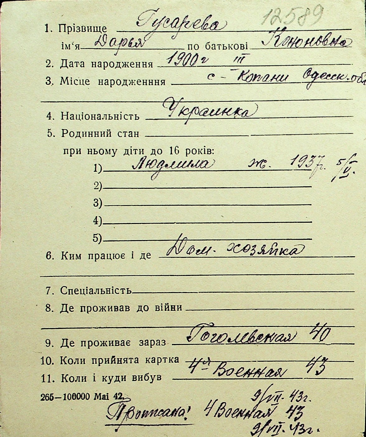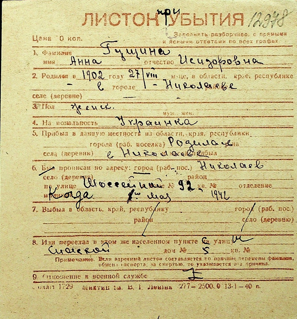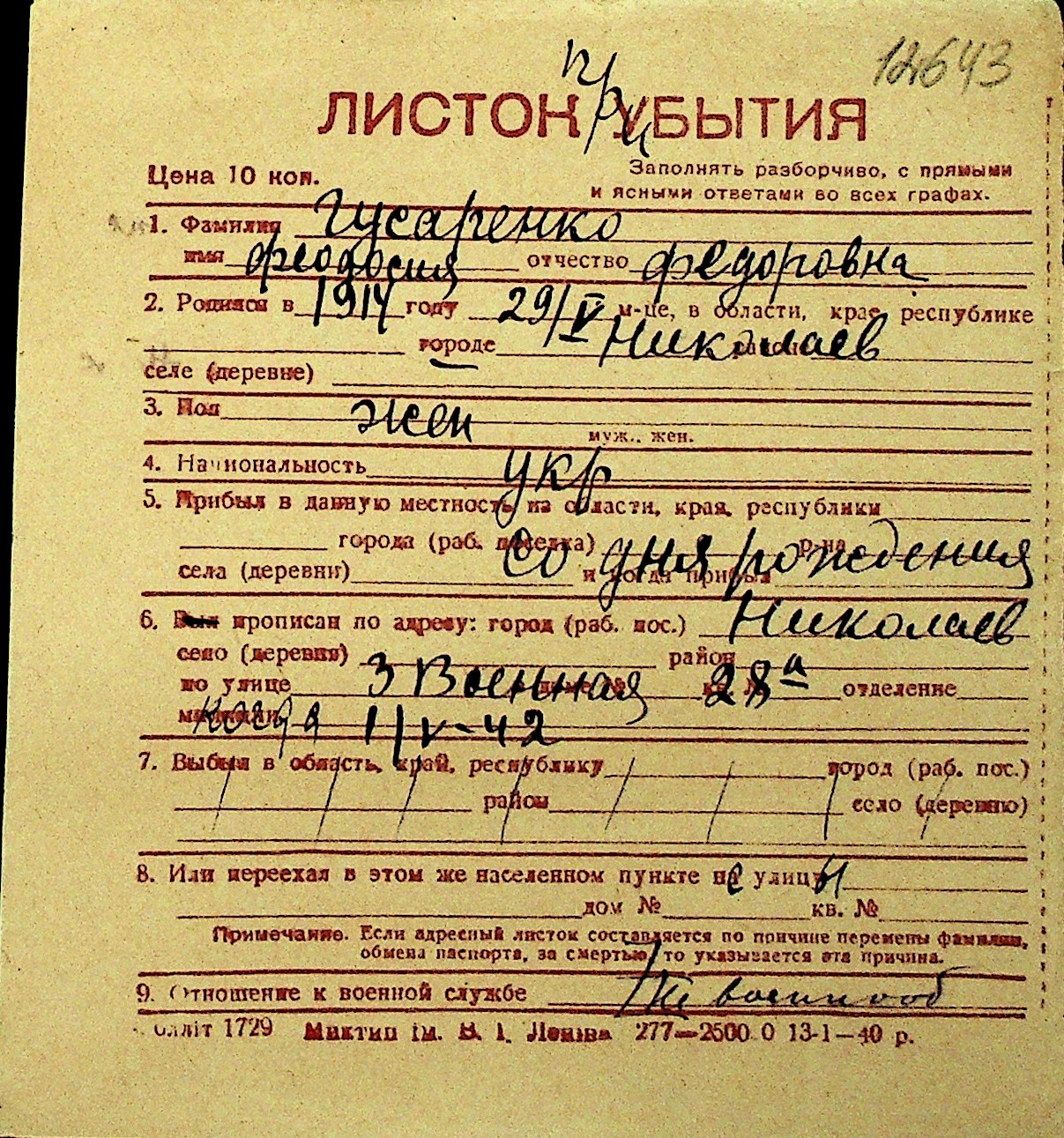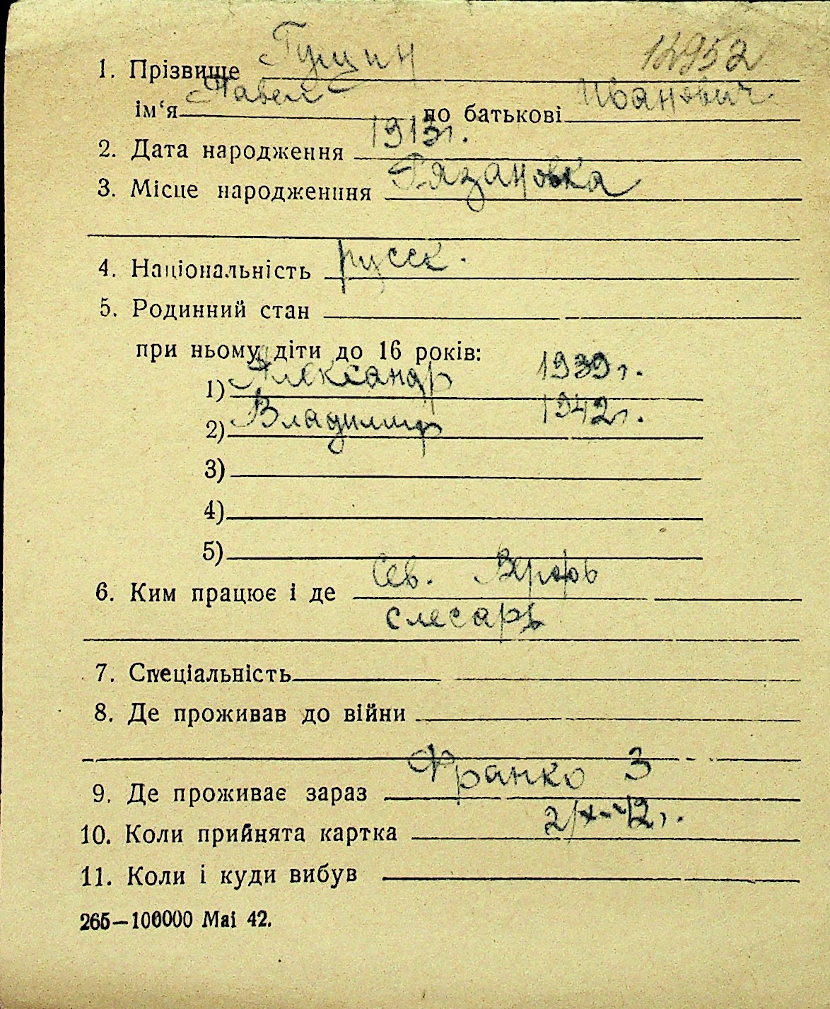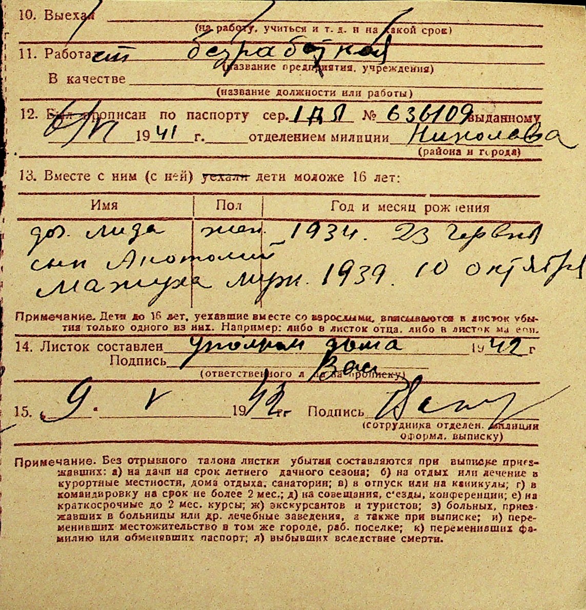 • • Перелік карток до фонду № Н-1016