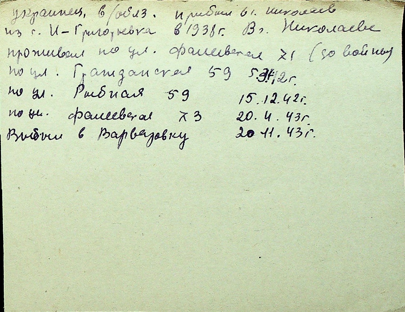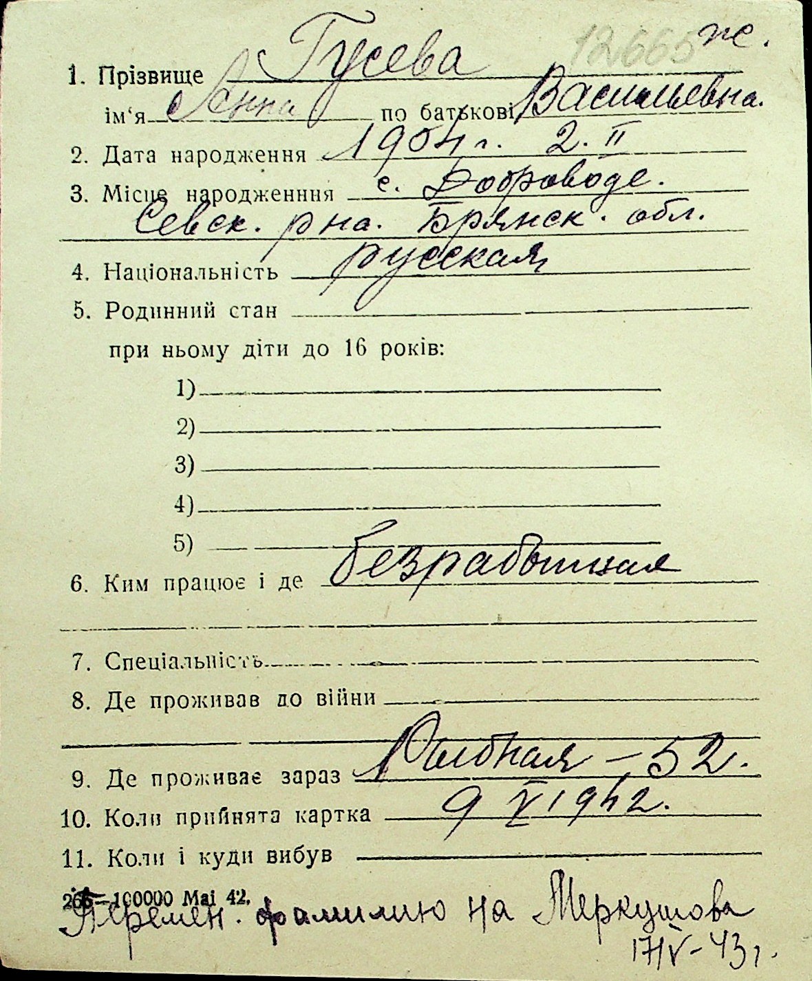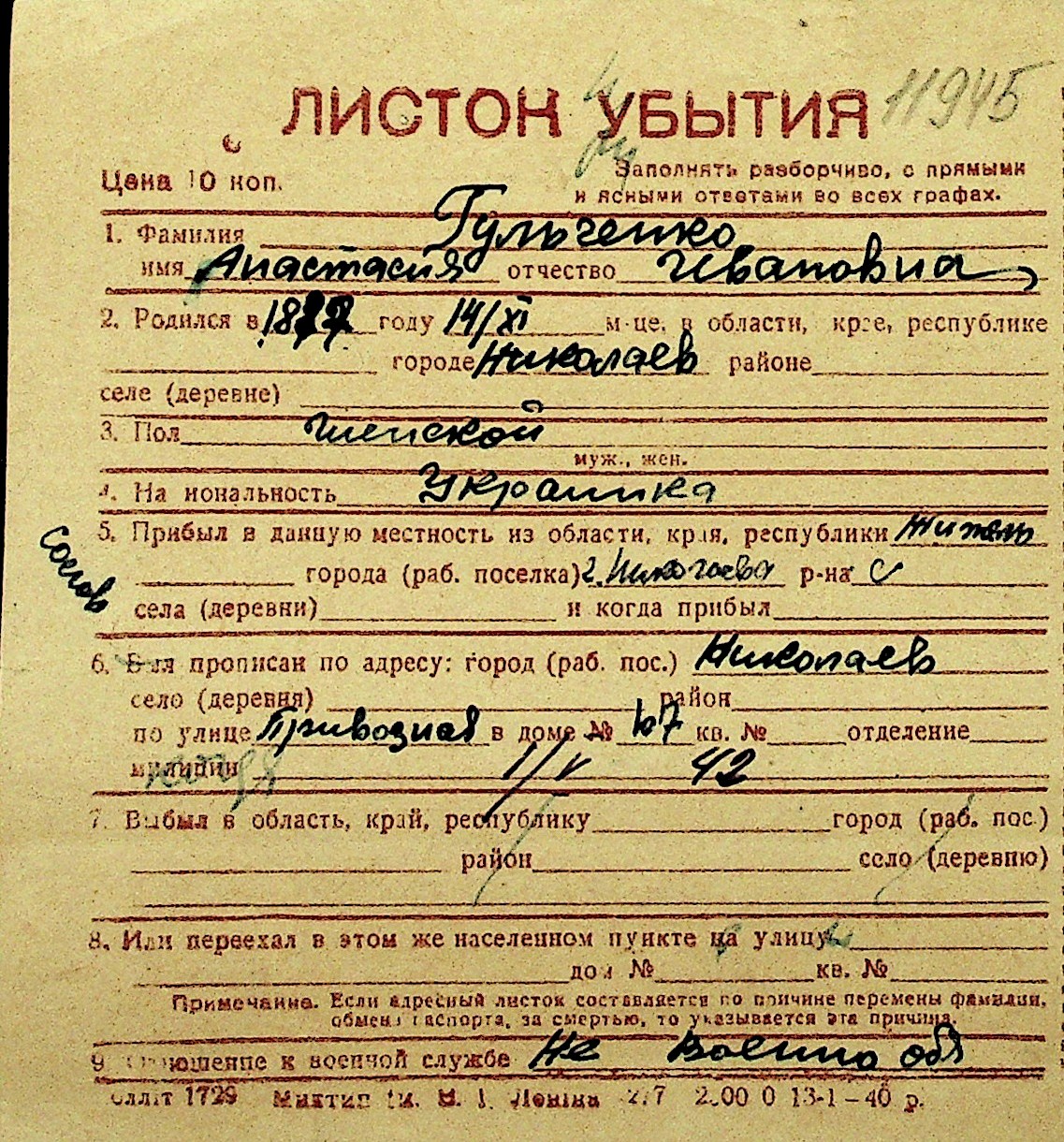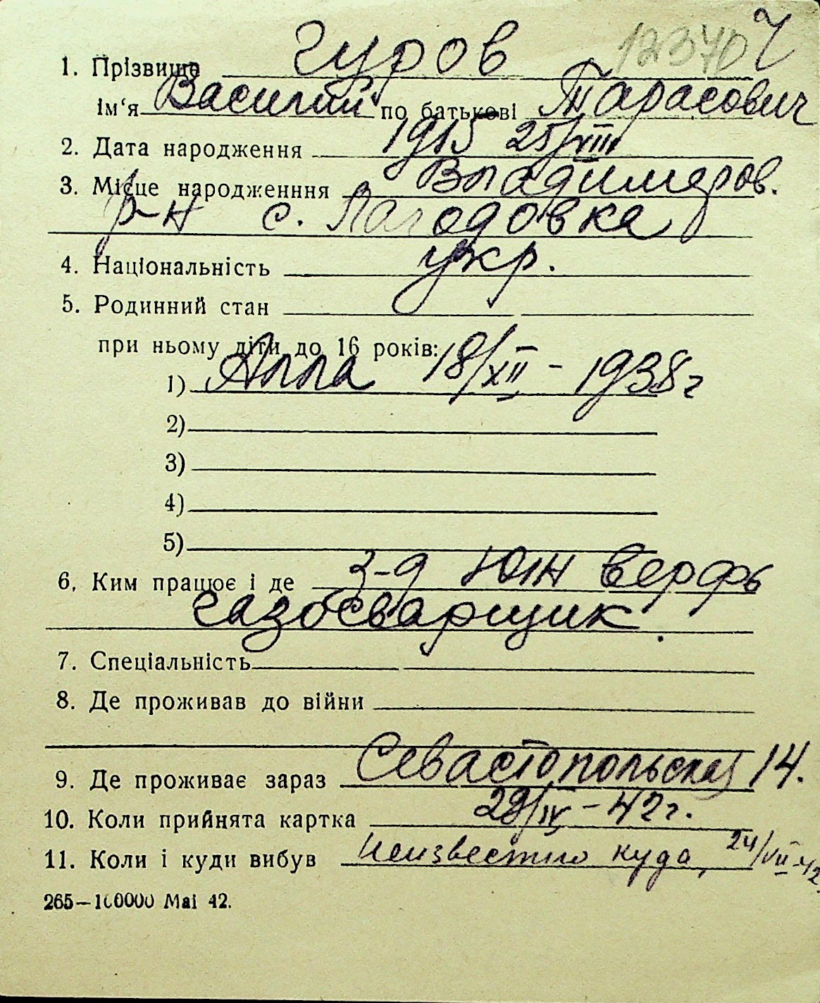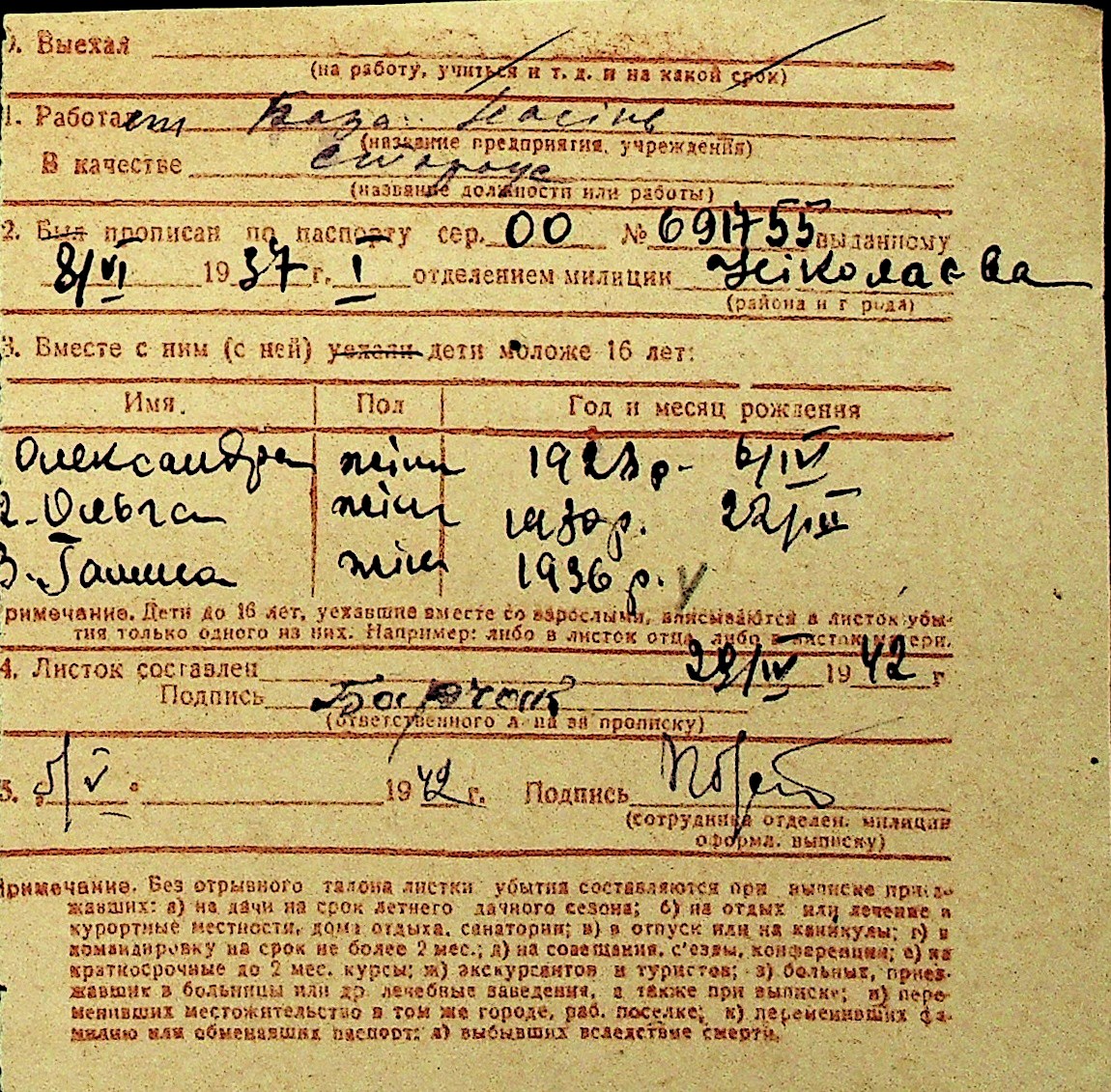 • • Перелік карток до фонду № Н-1016