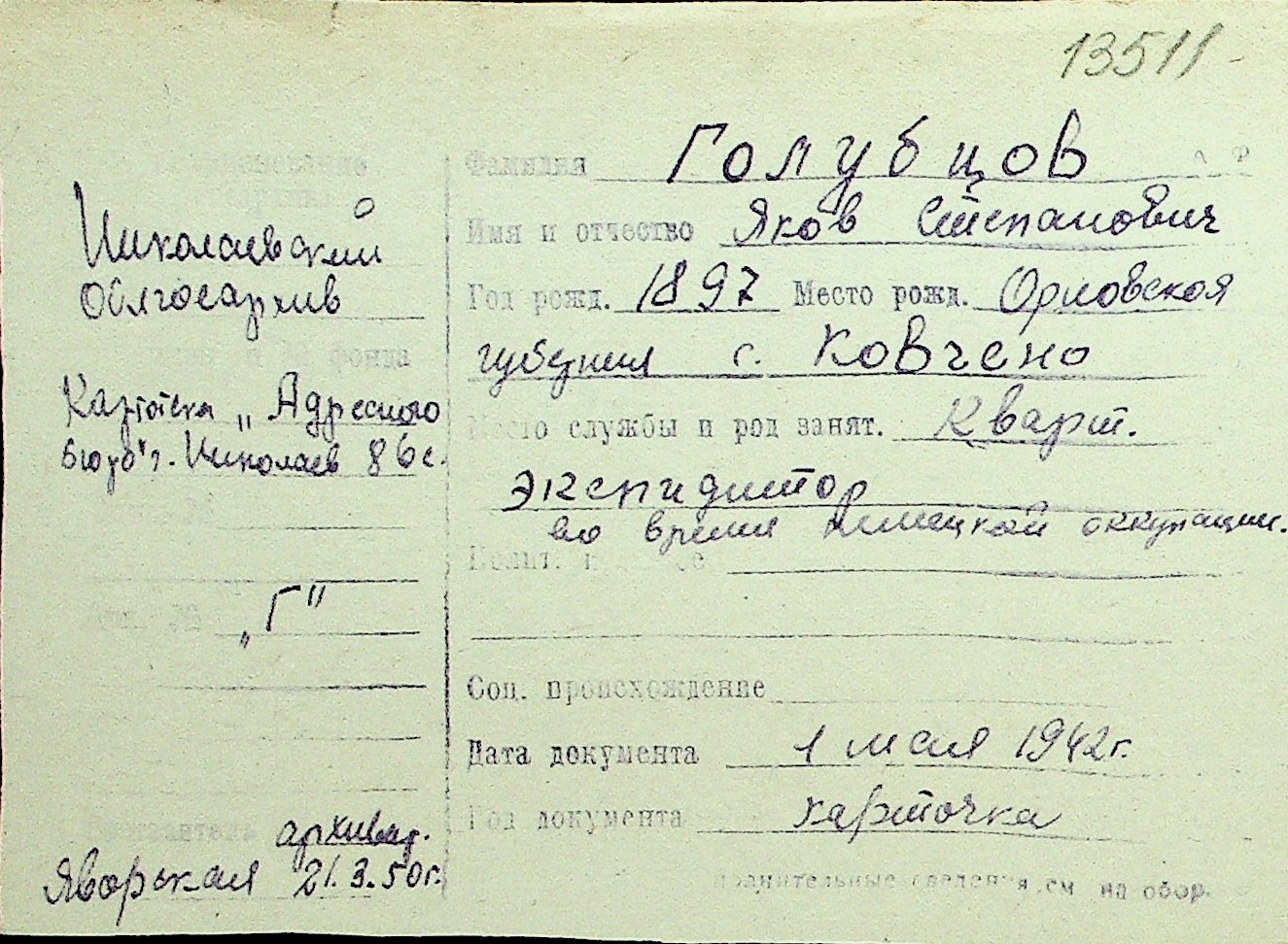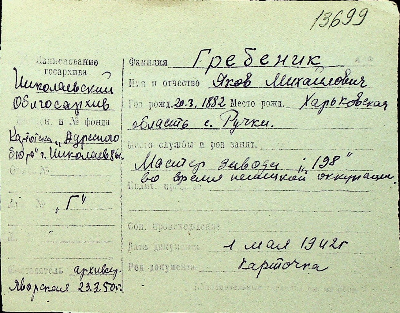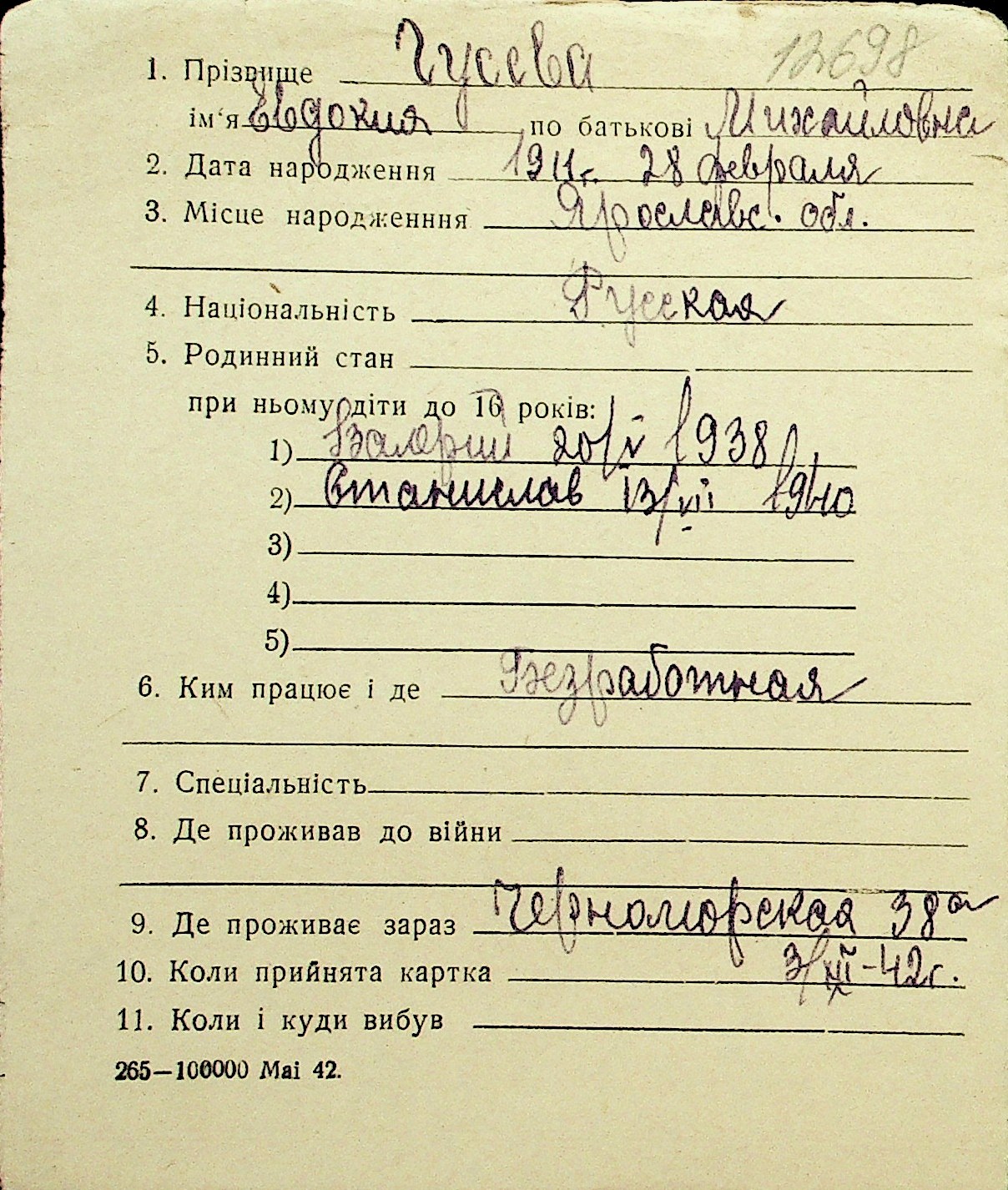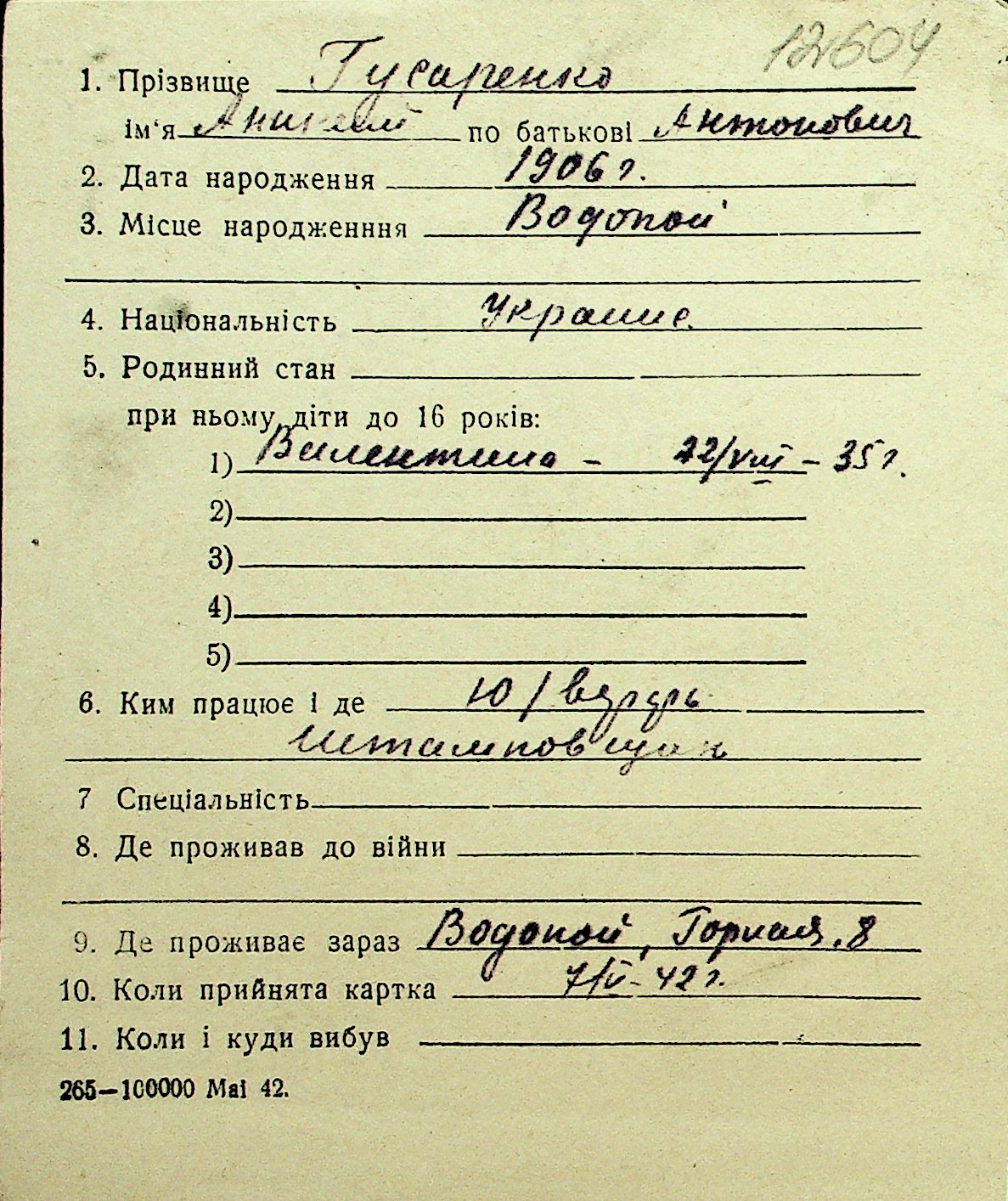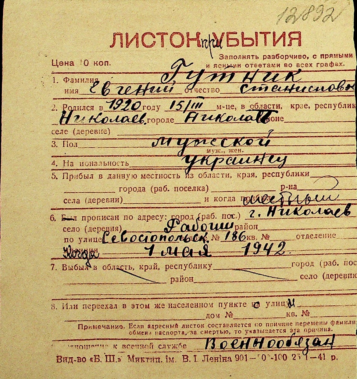 • • Перелік карток до фонду № Н-1016