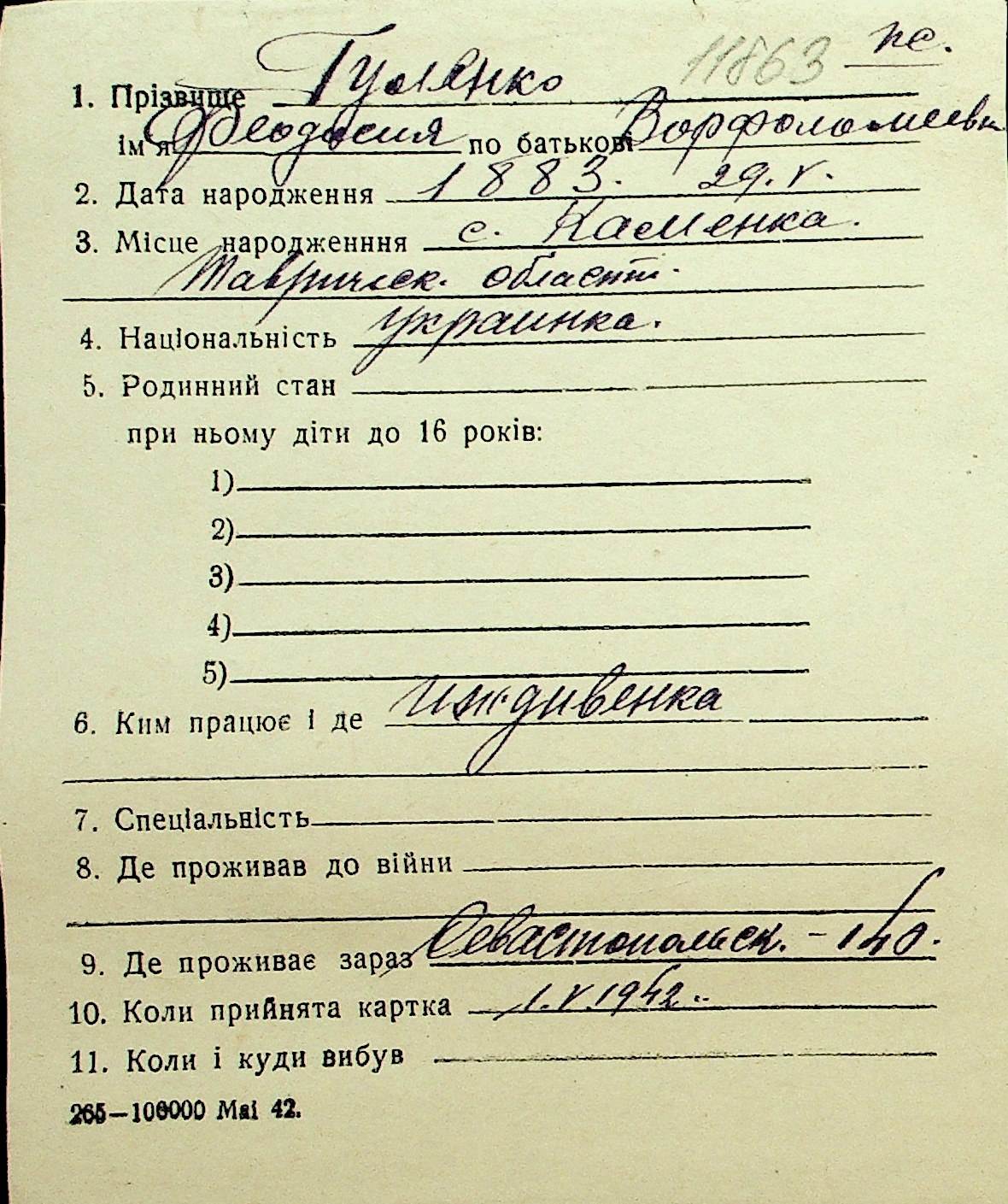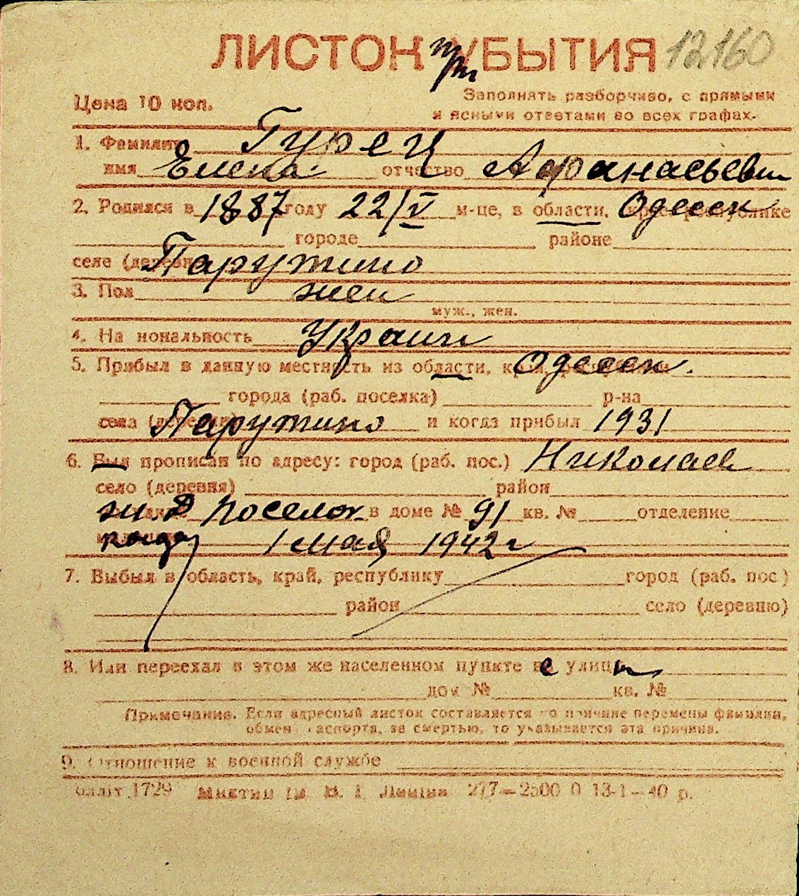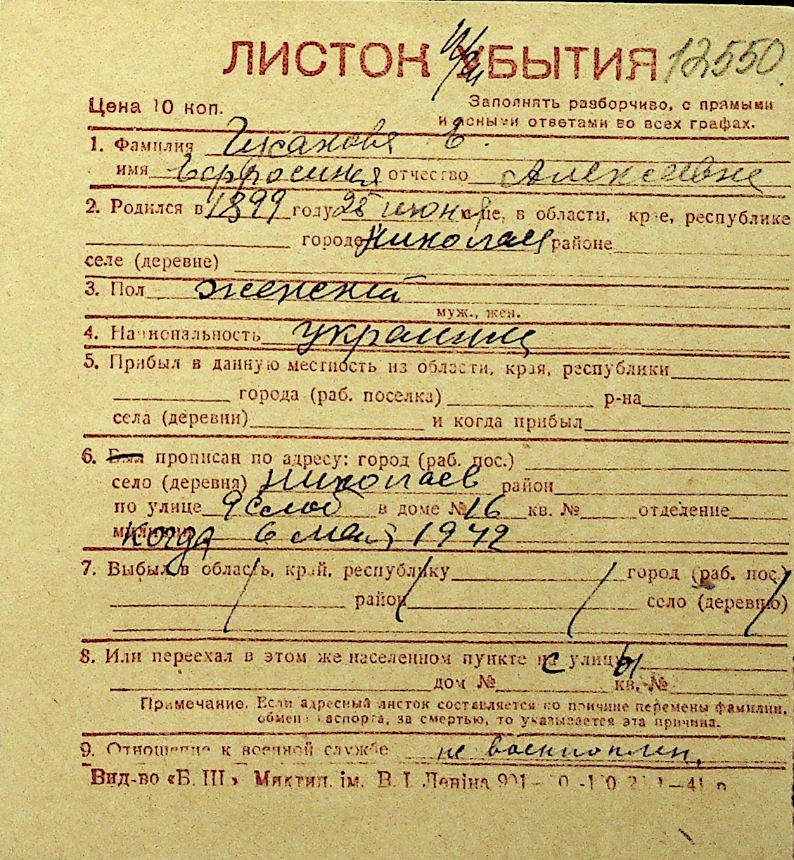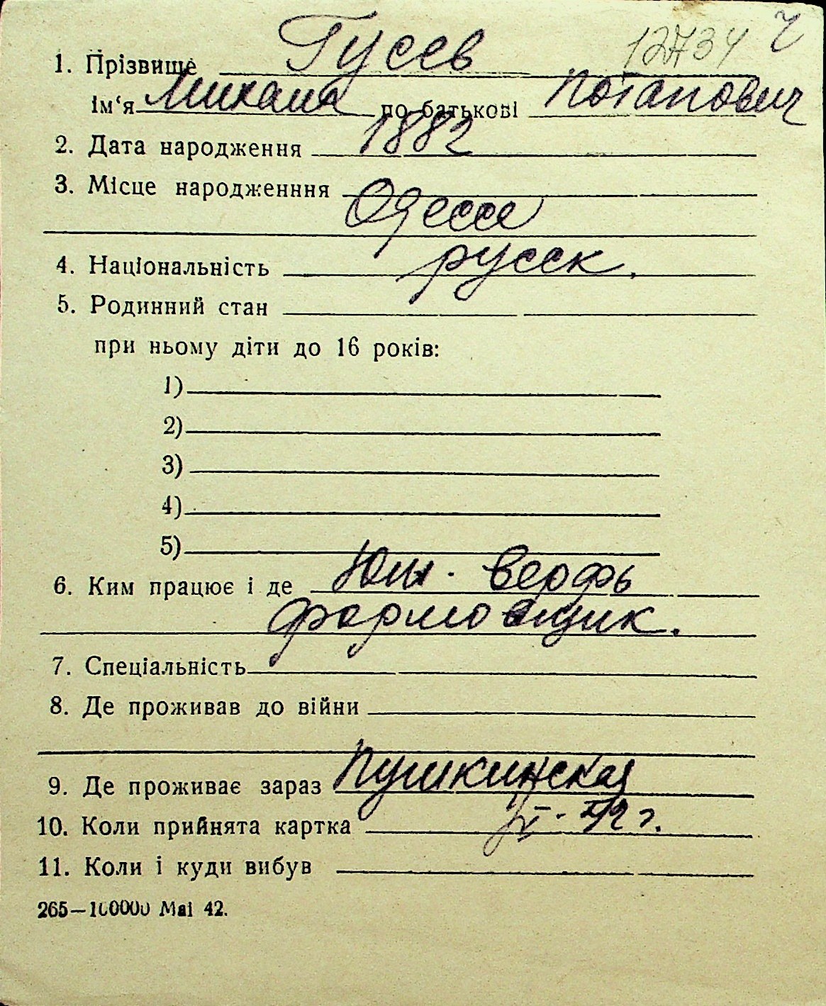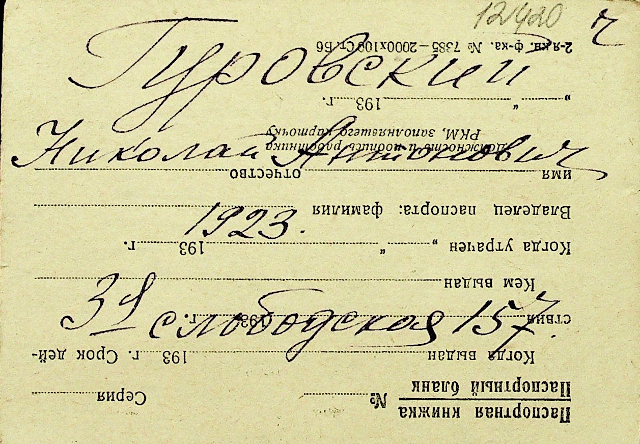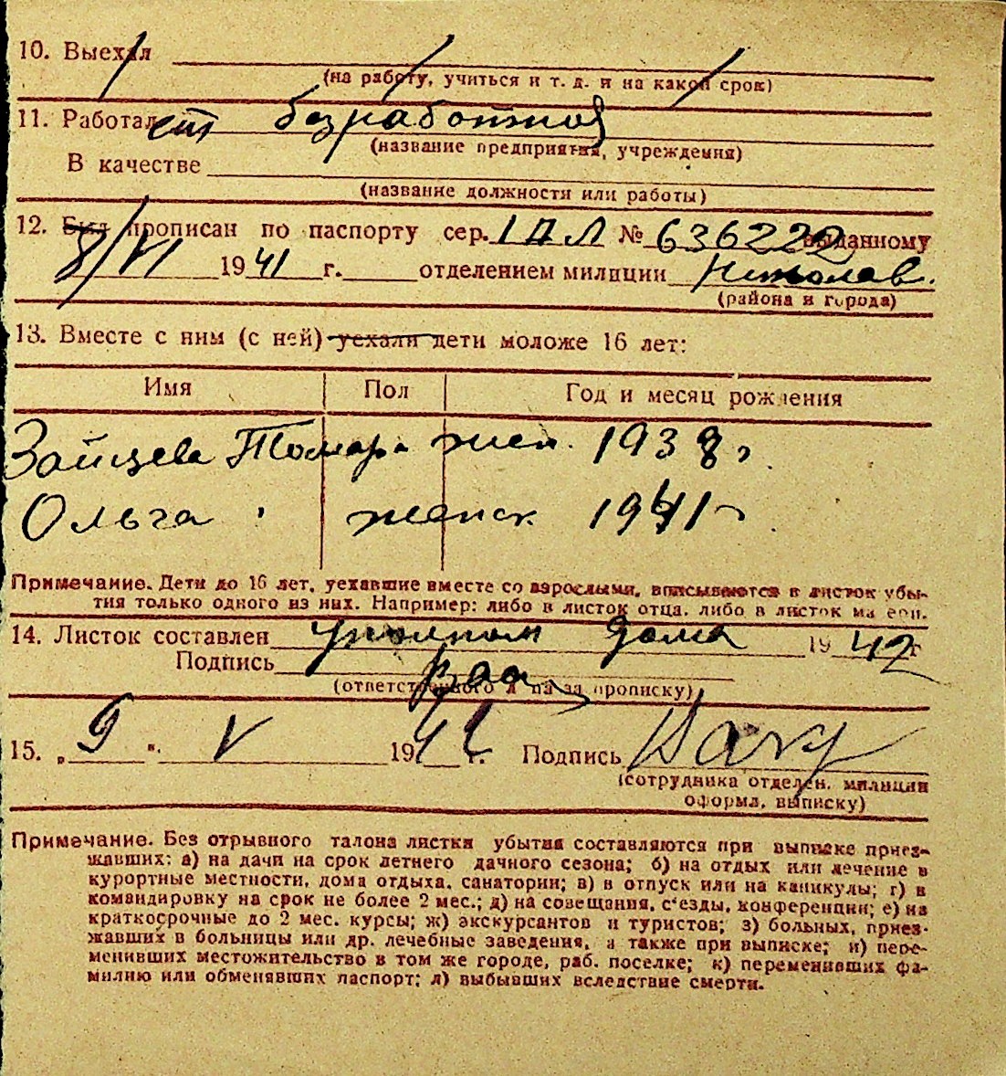 • • Перелік карток до фонду № Н-1016