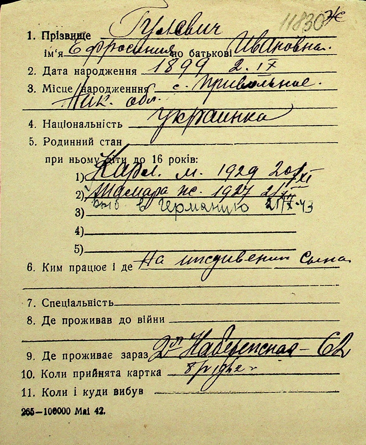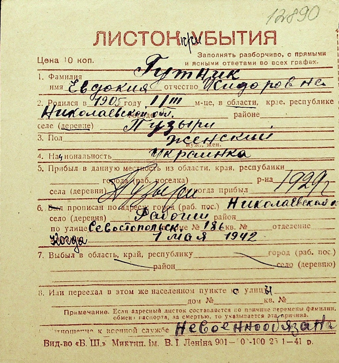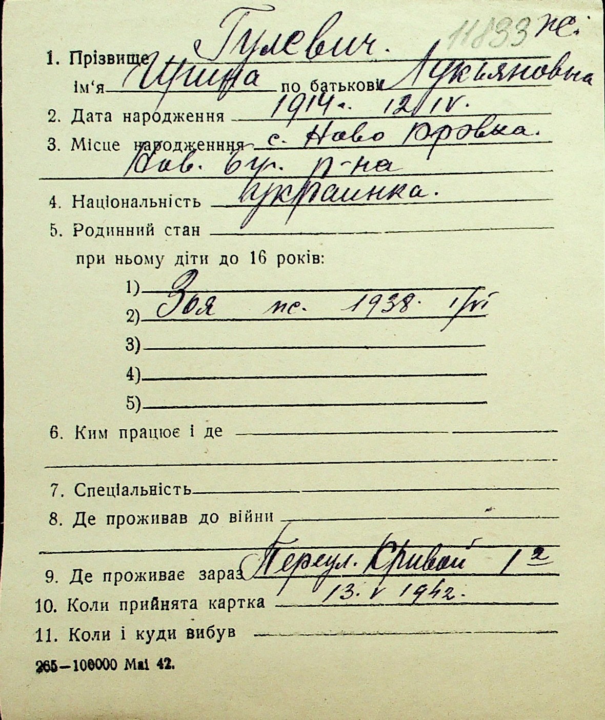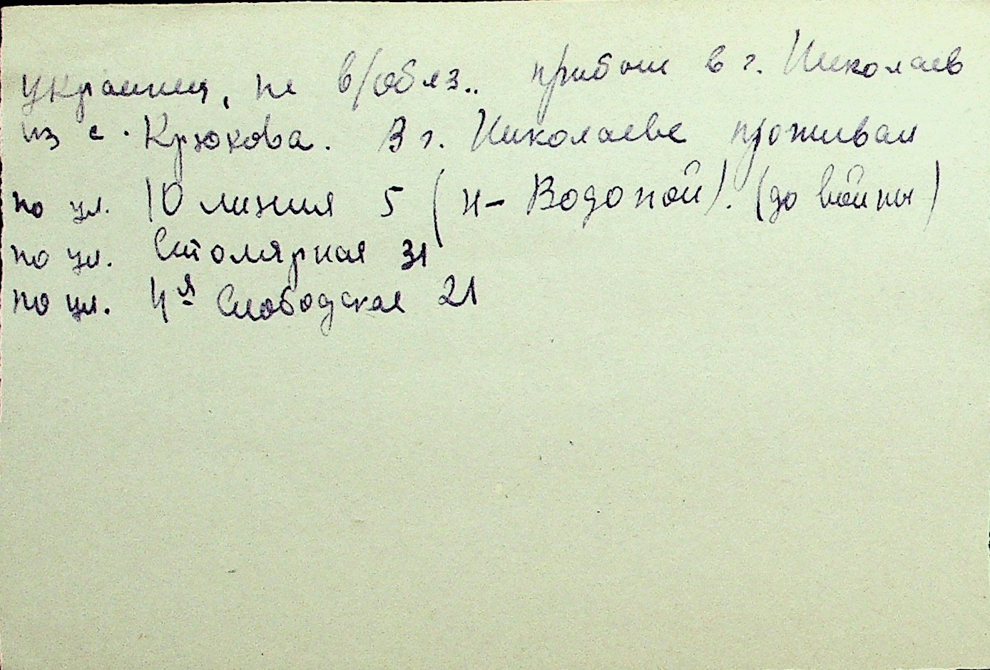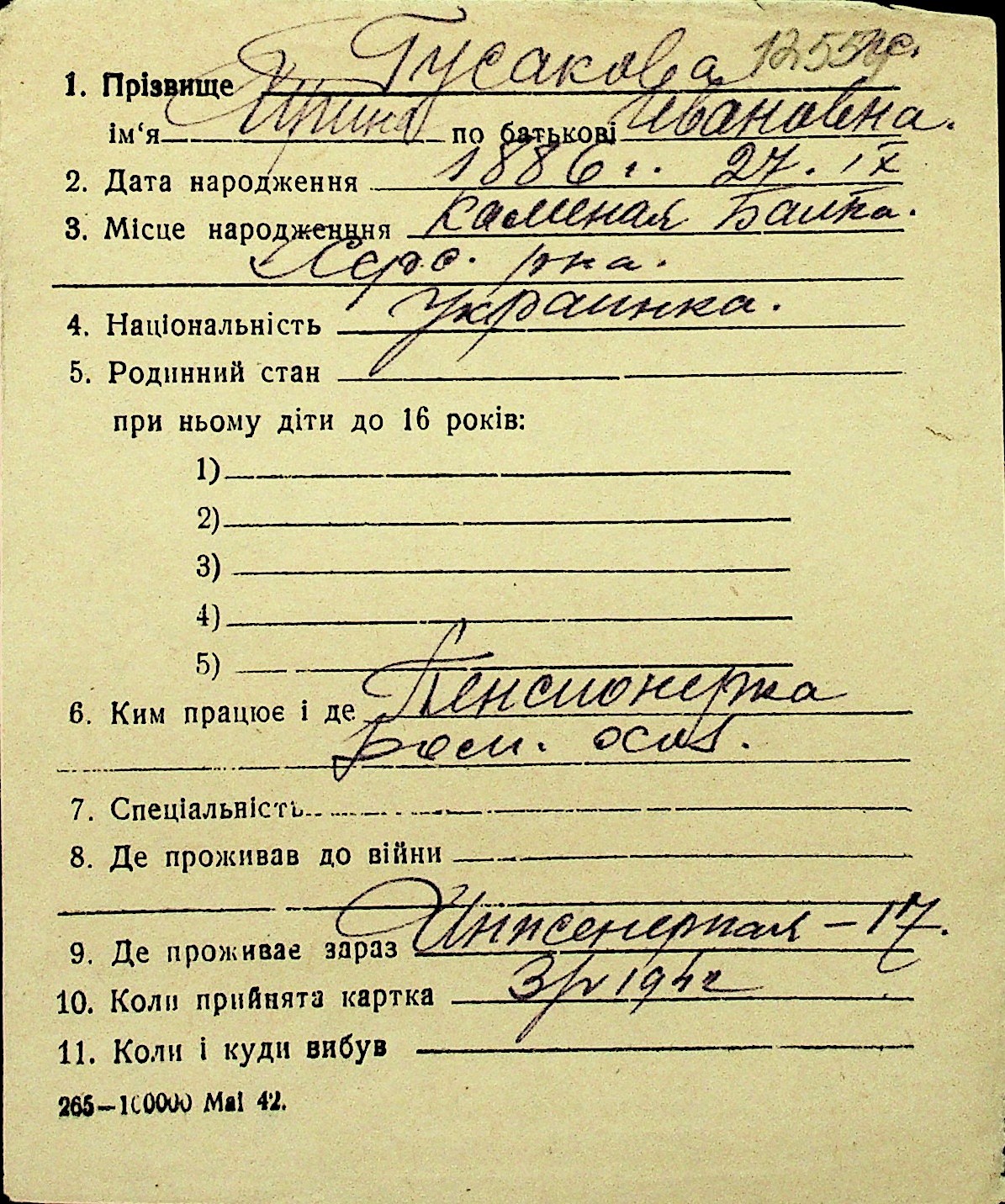 • • Перелік карток до фонду № Н-1016
