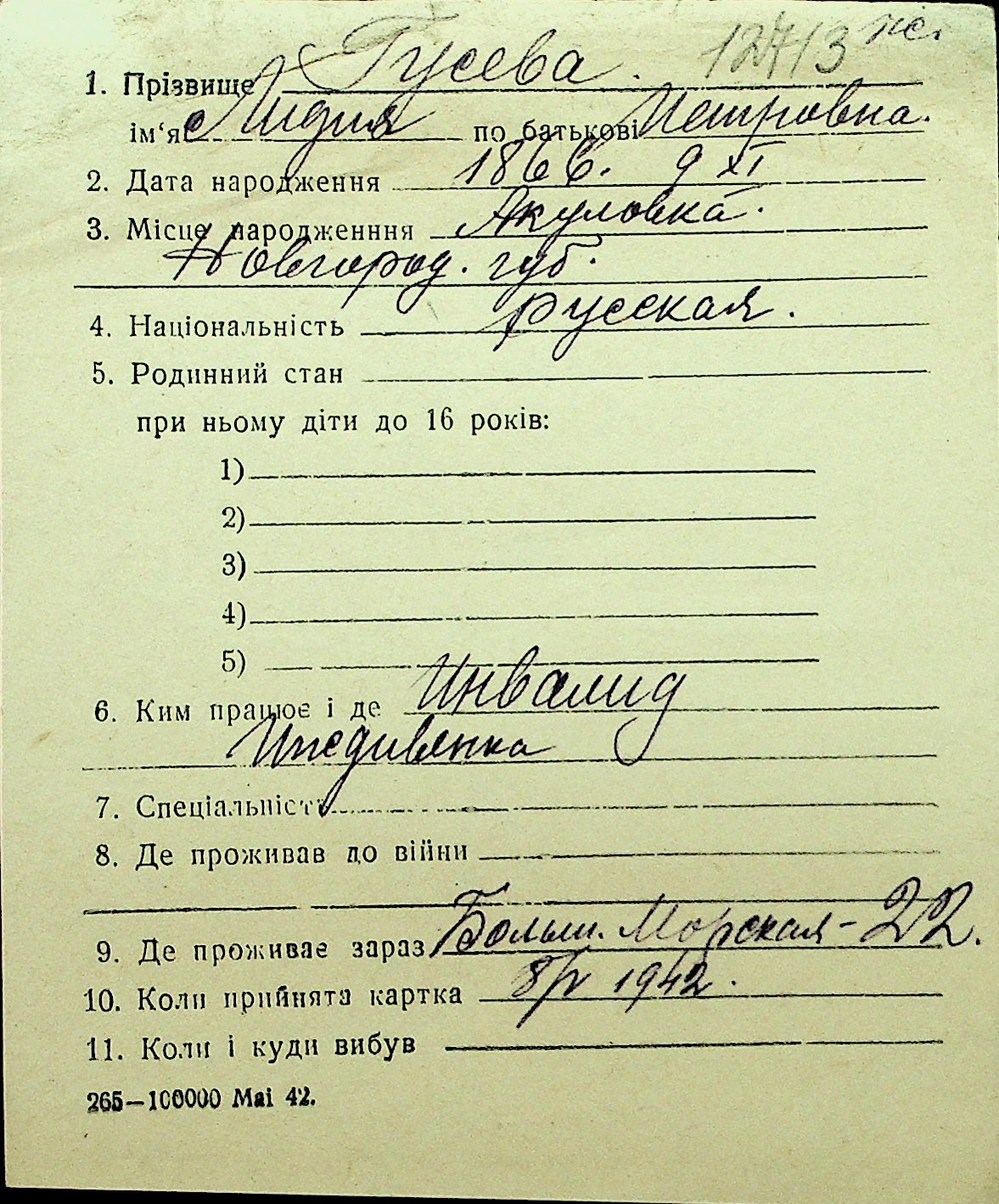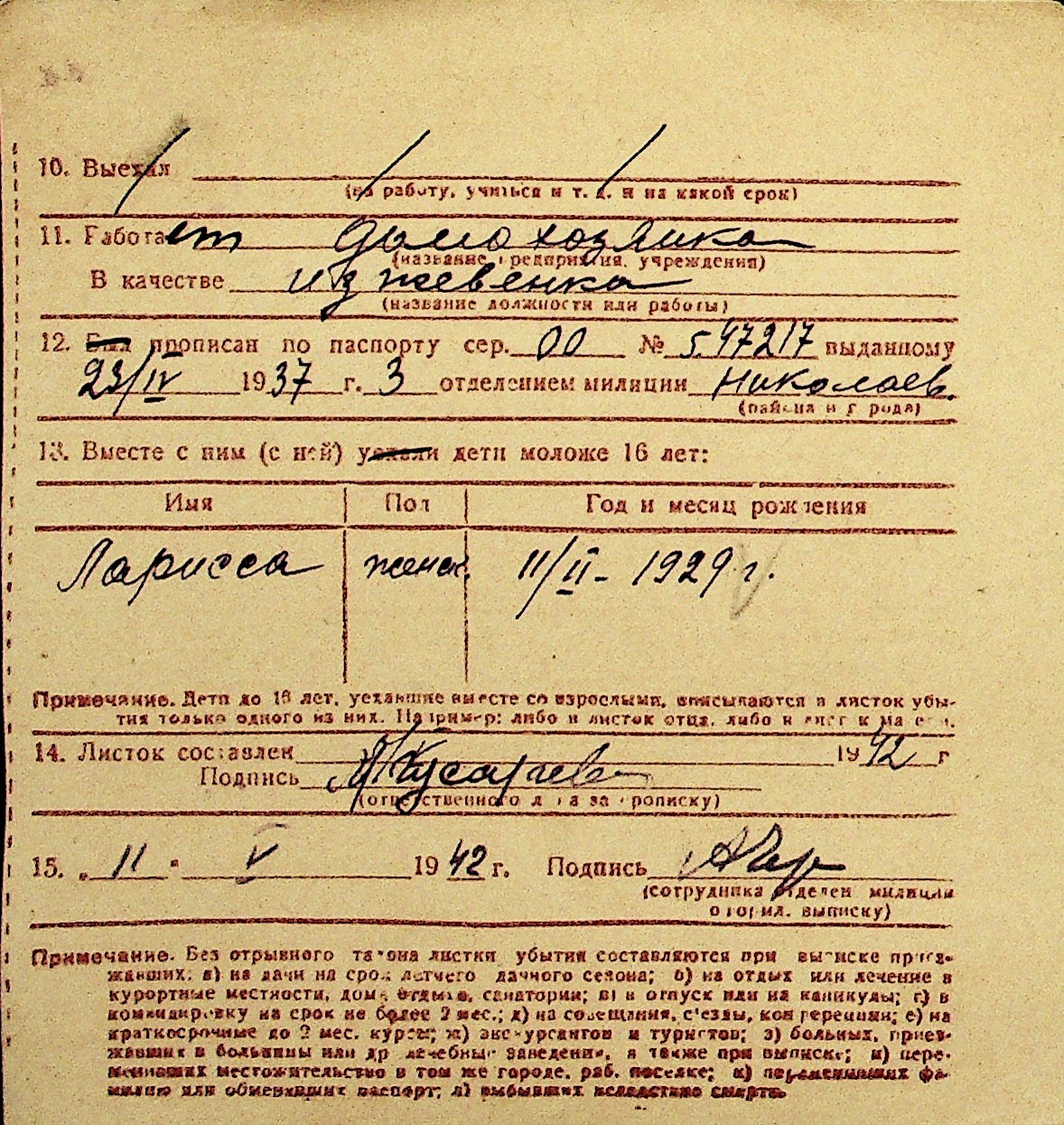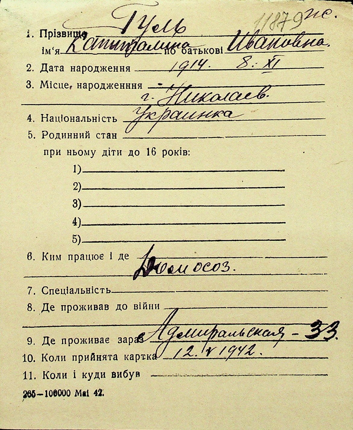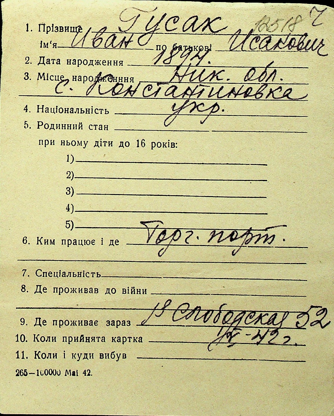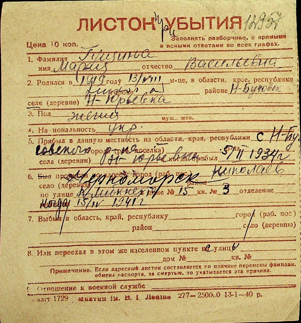 • • Перелік карток до фонду № Н-1016