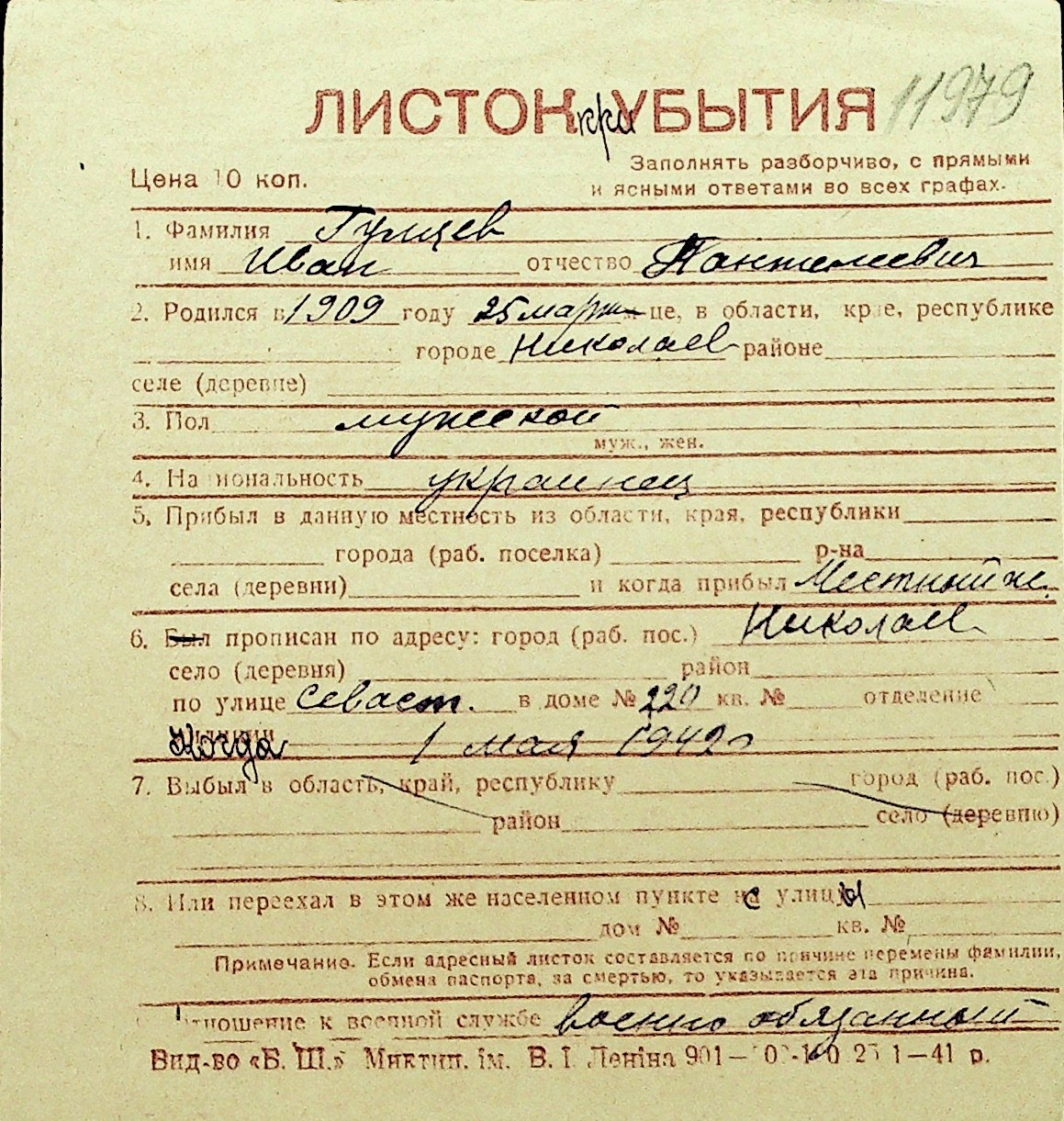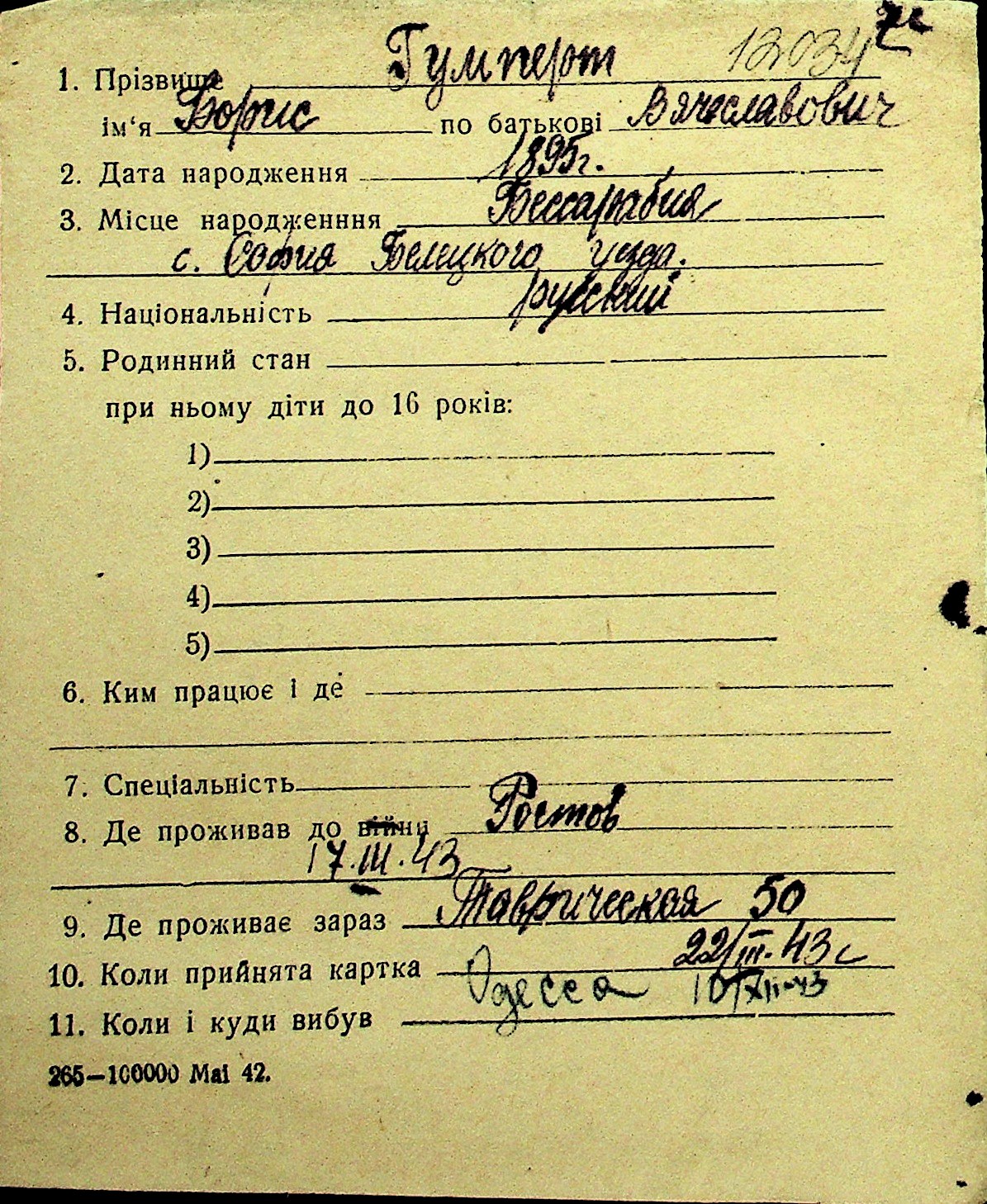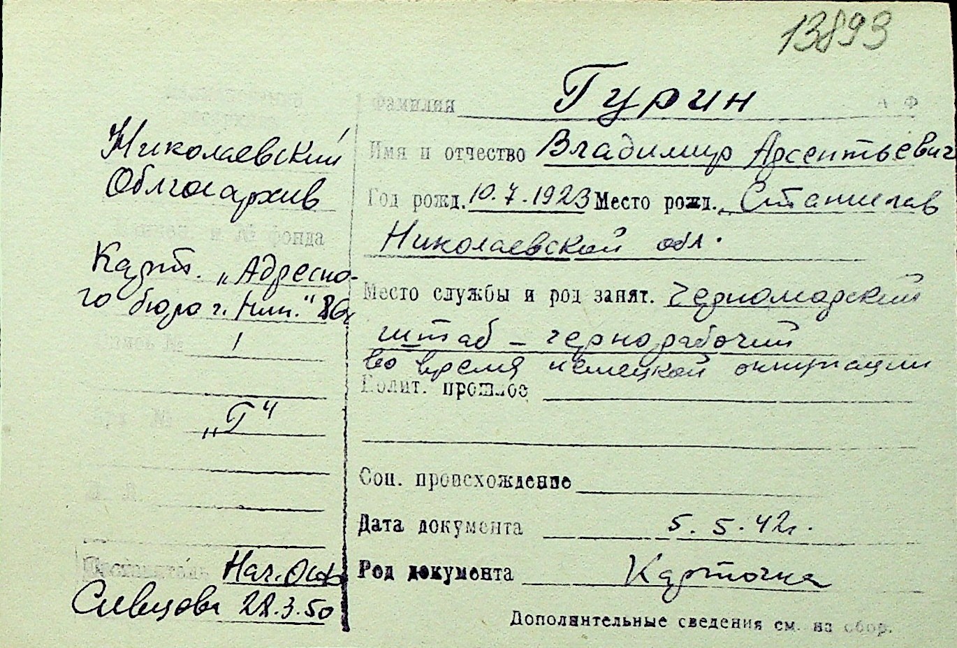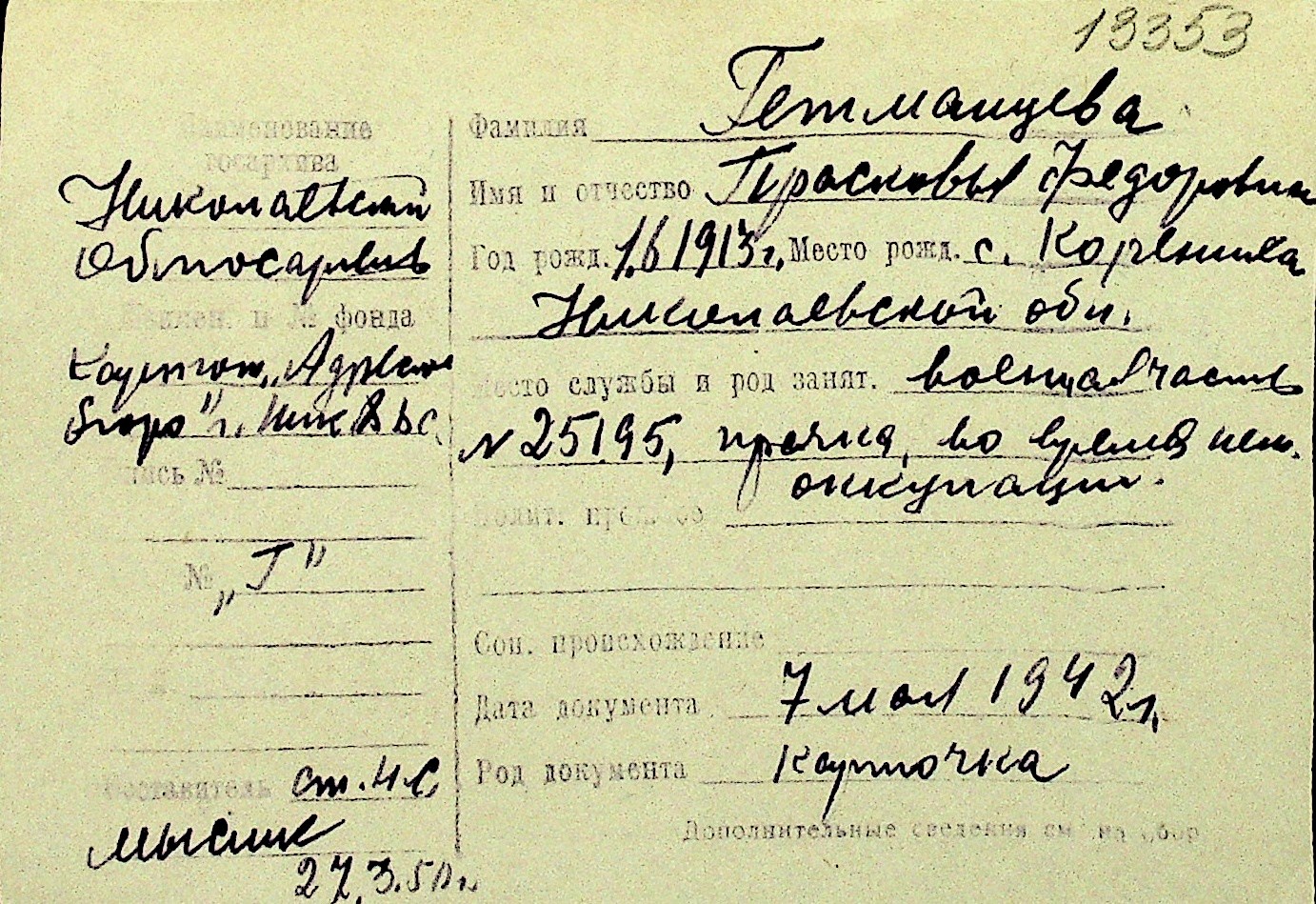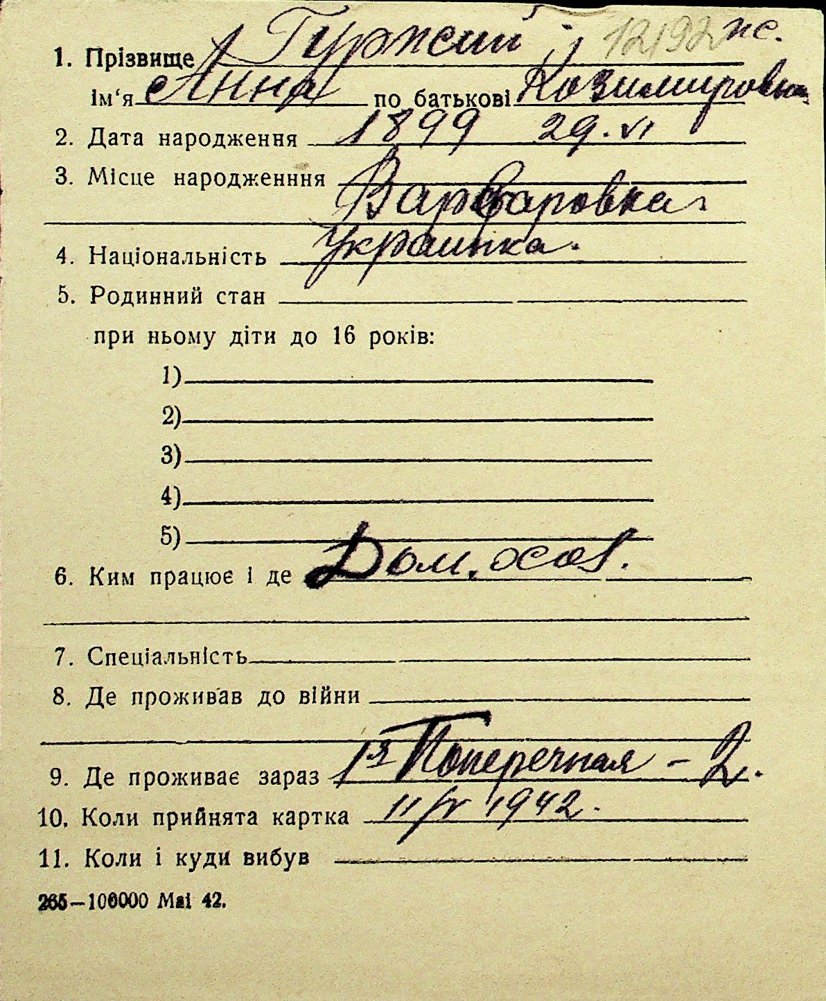 • • Перелік карток до фонду № Н-1016