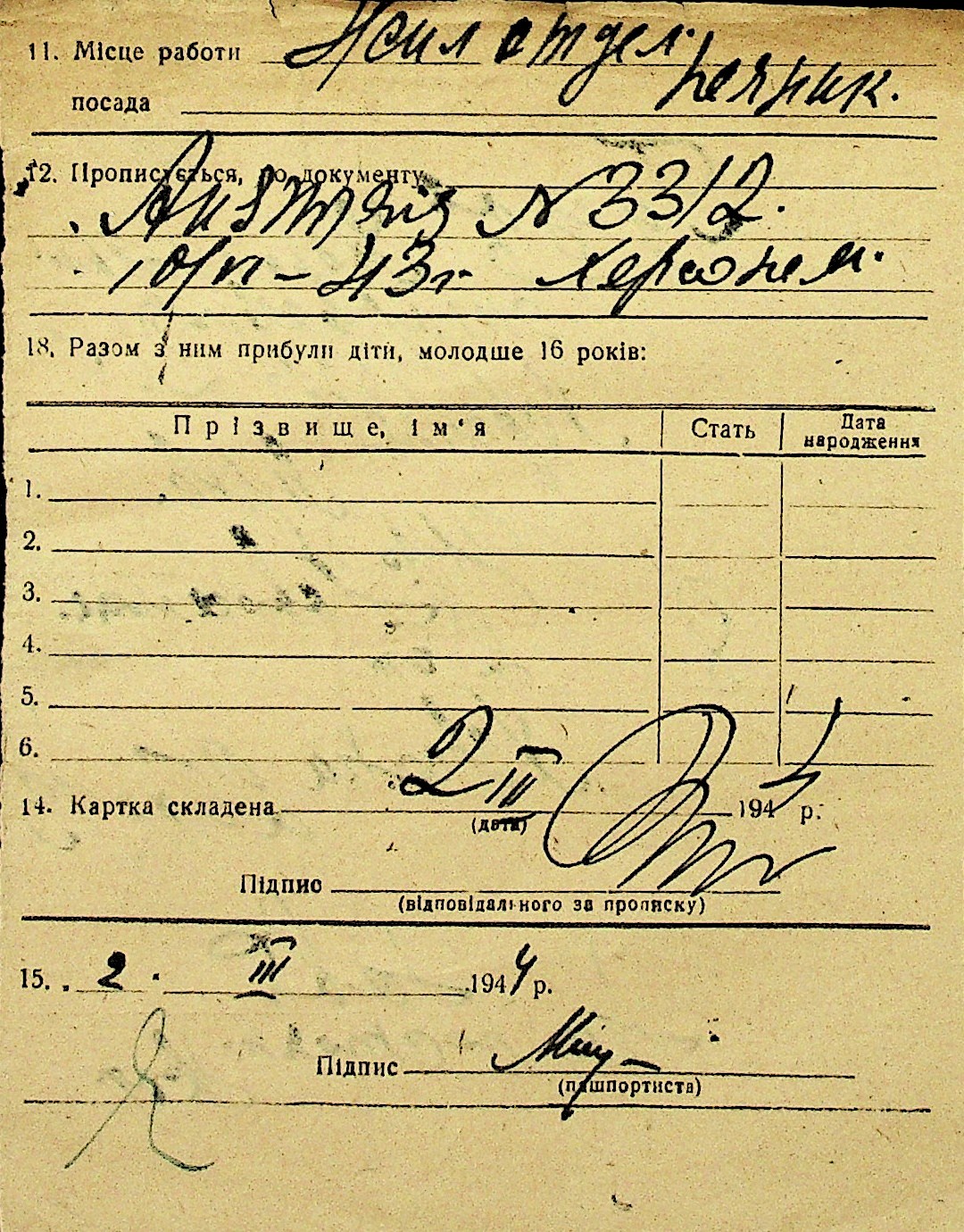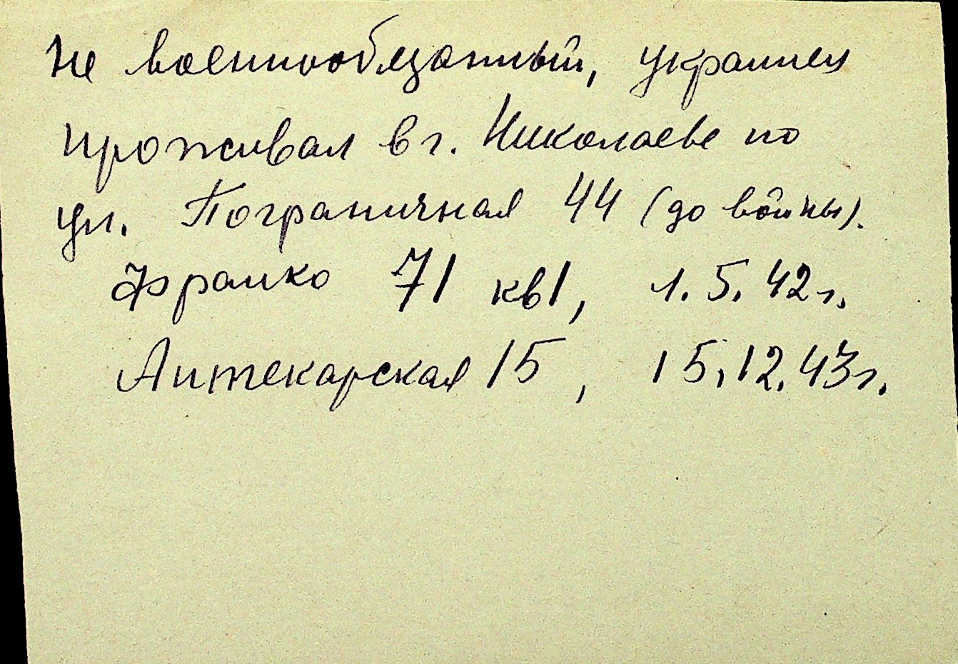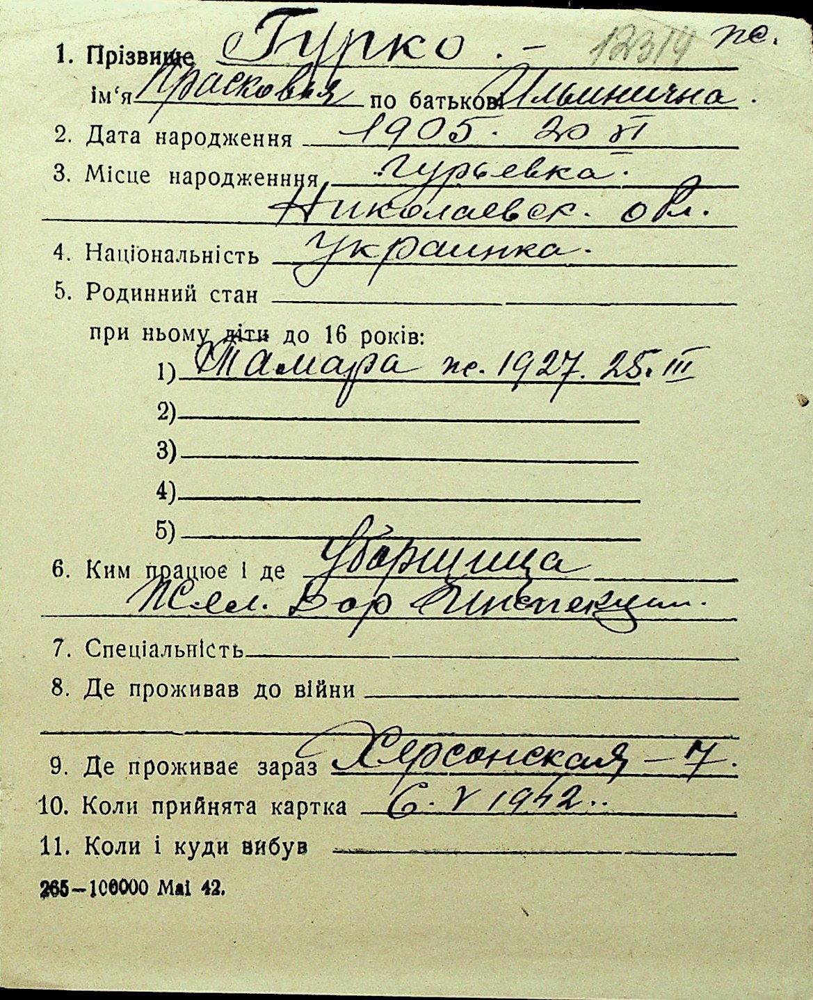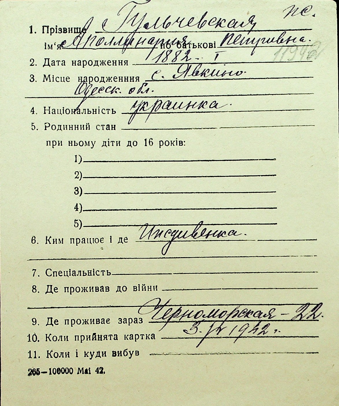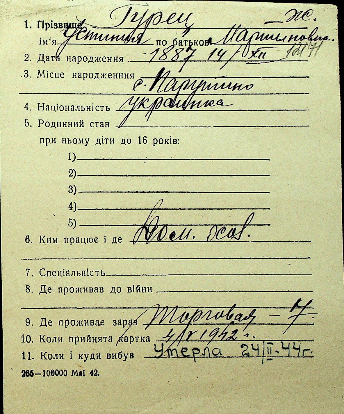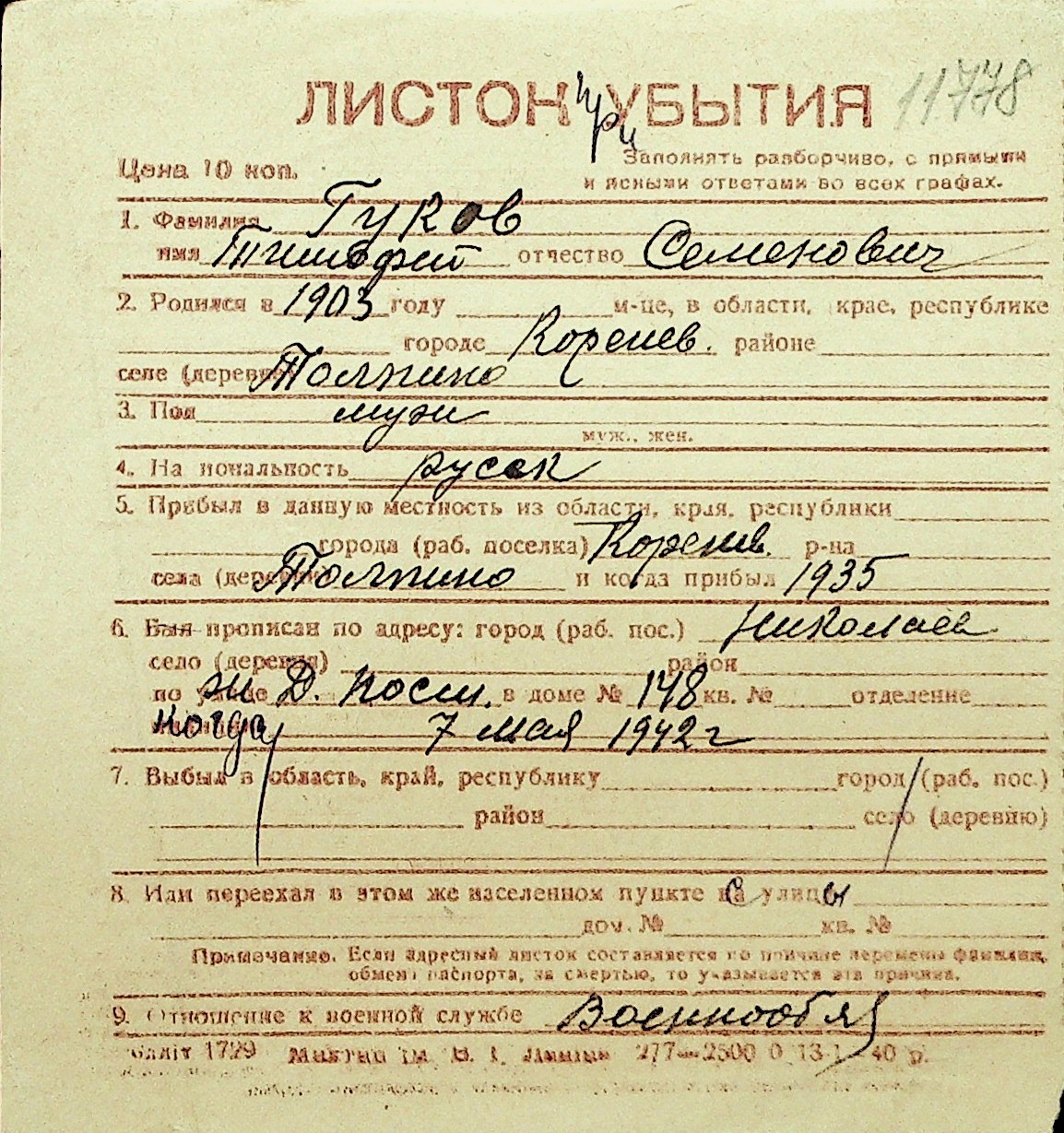 • • Перелік карток до фонду № Н-1016