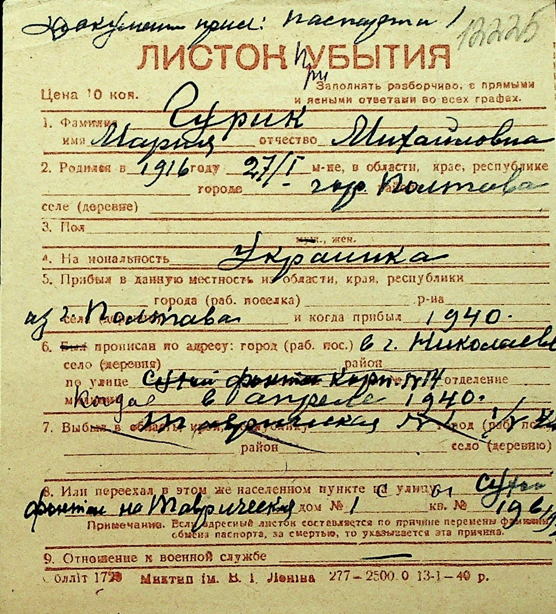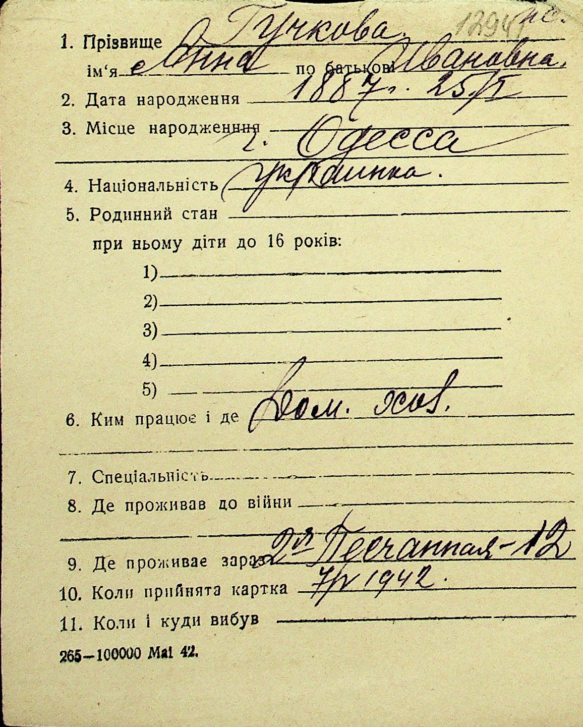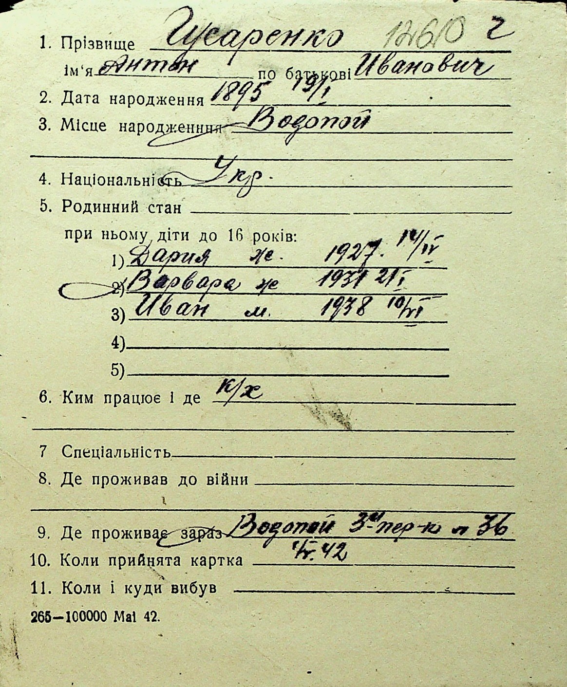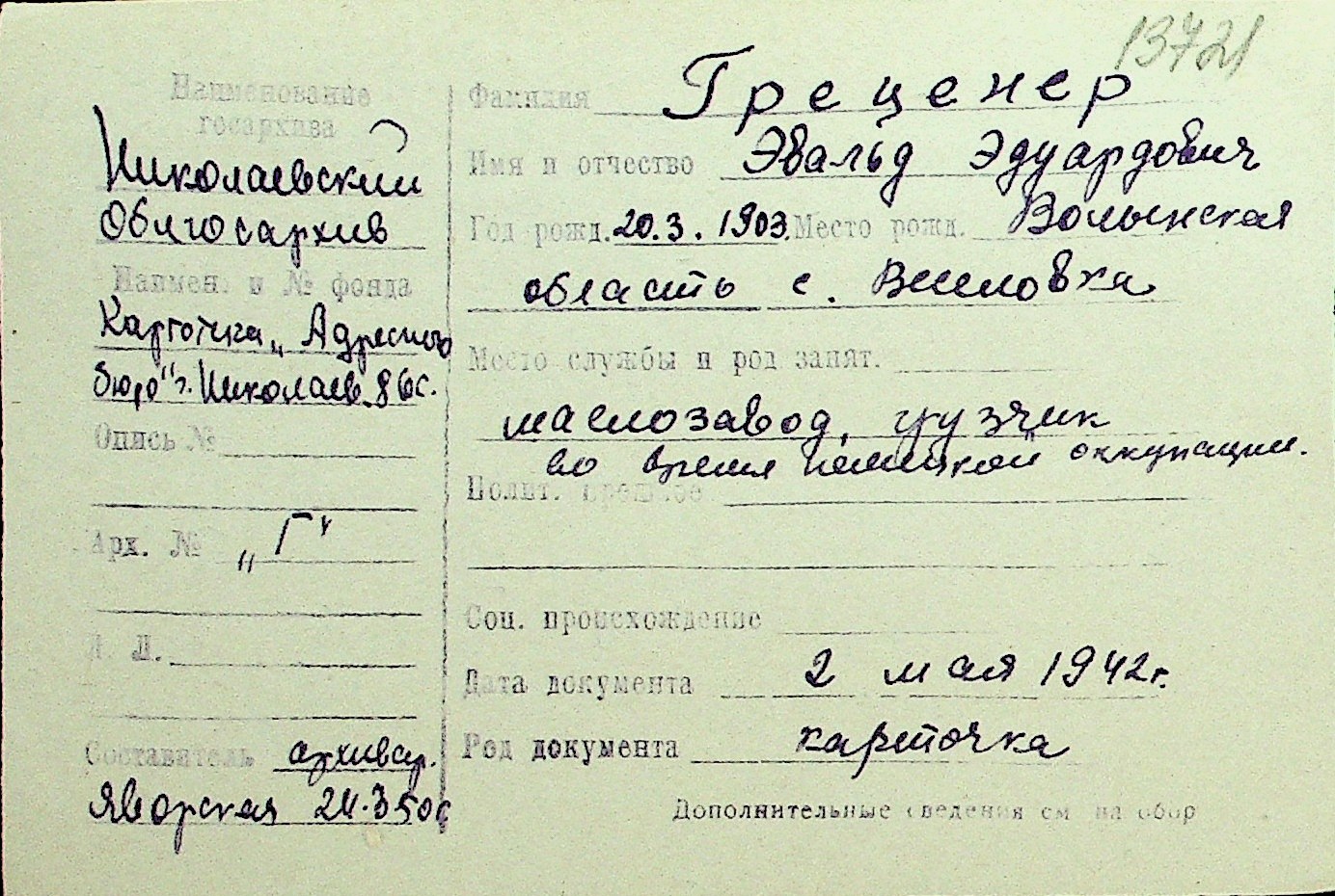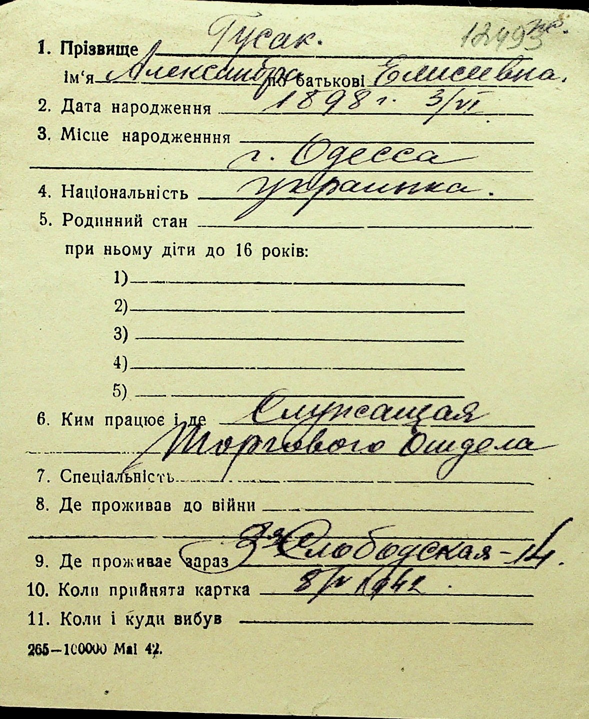 • • Перелік карток до фонду № Н-1016