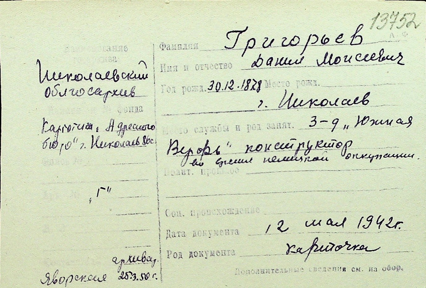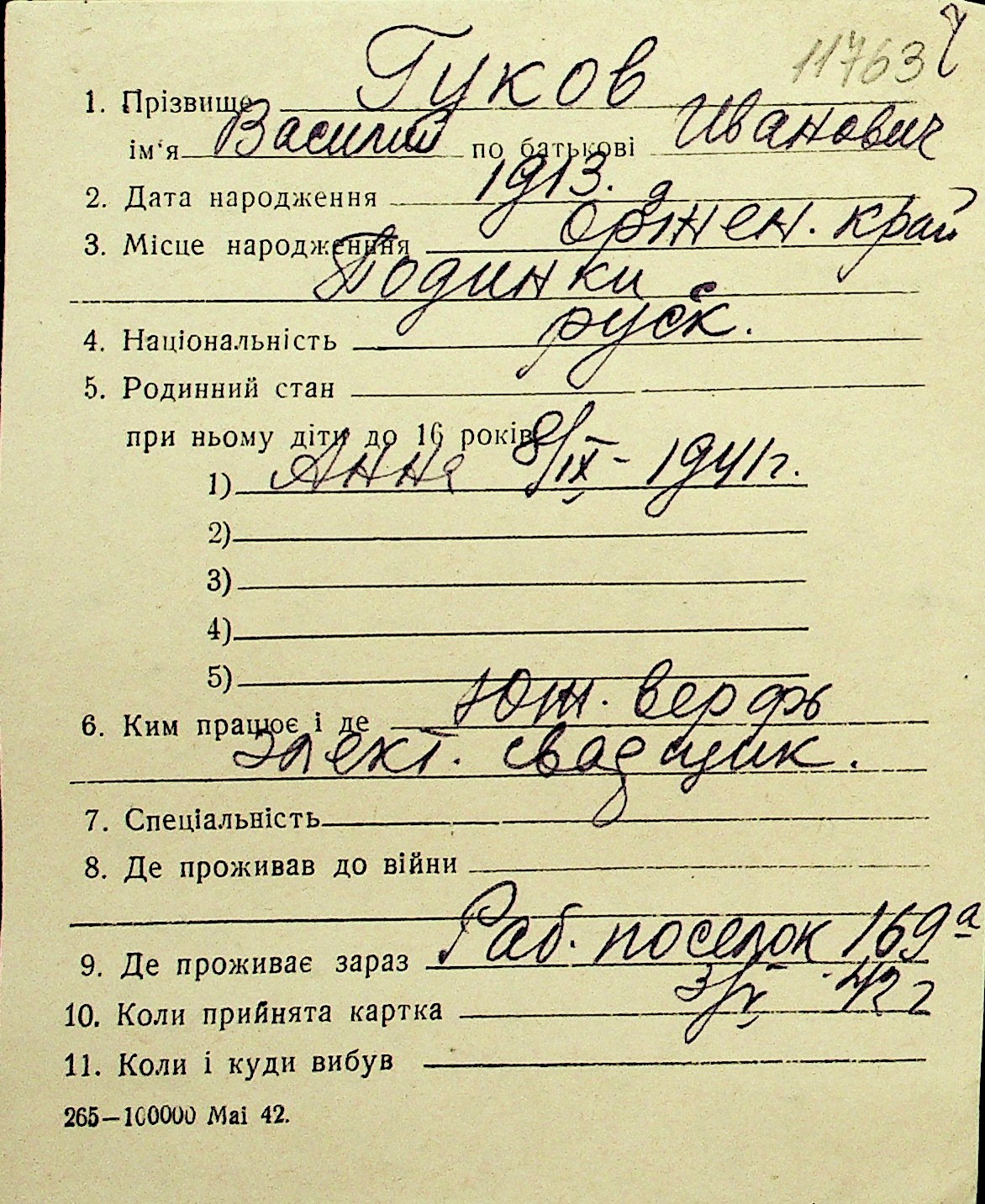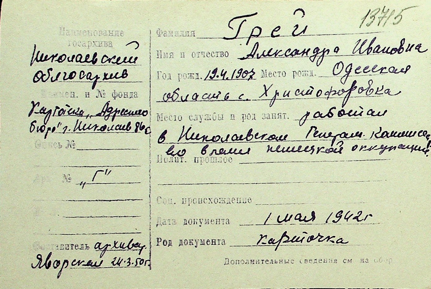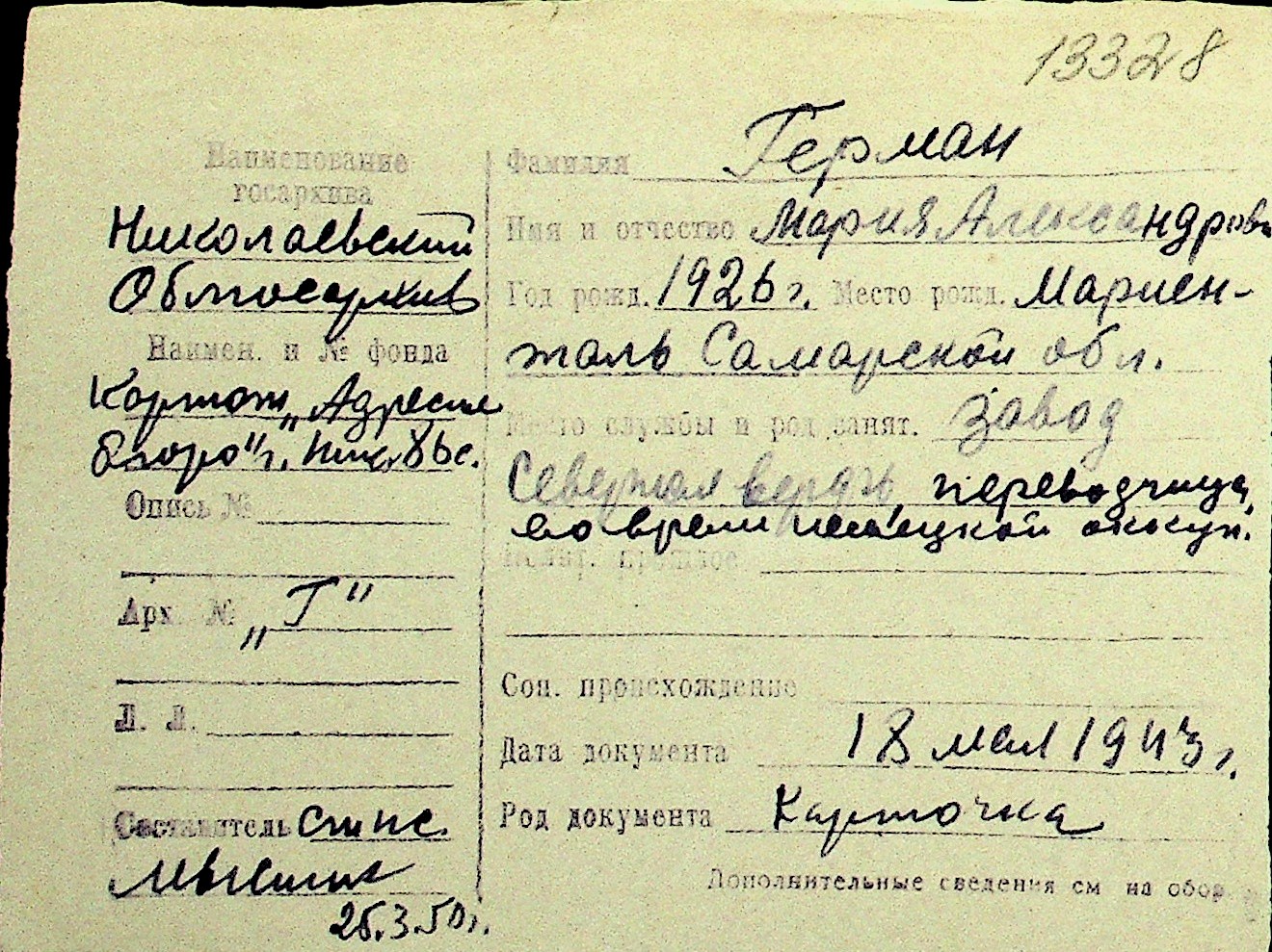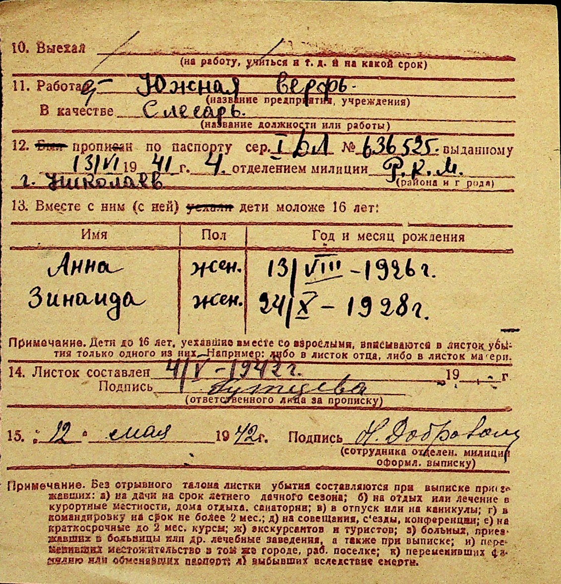 • • Перелік карток до фонду № Н-1016