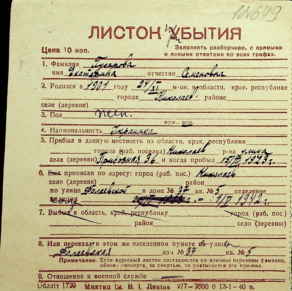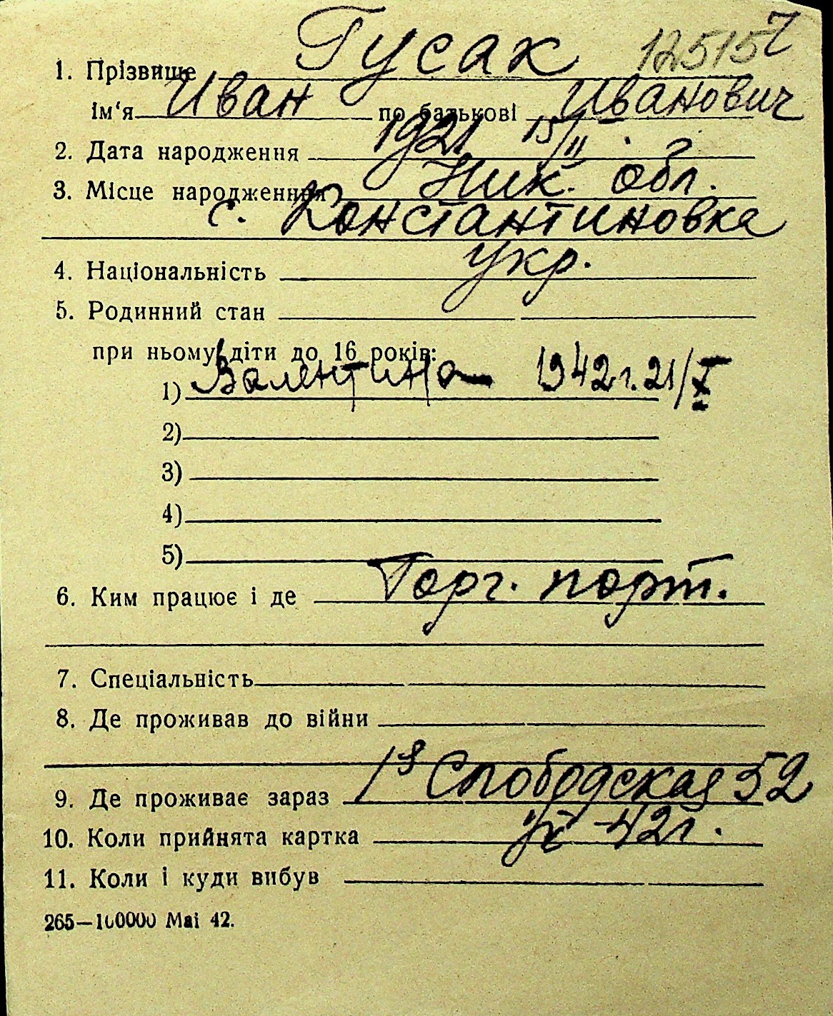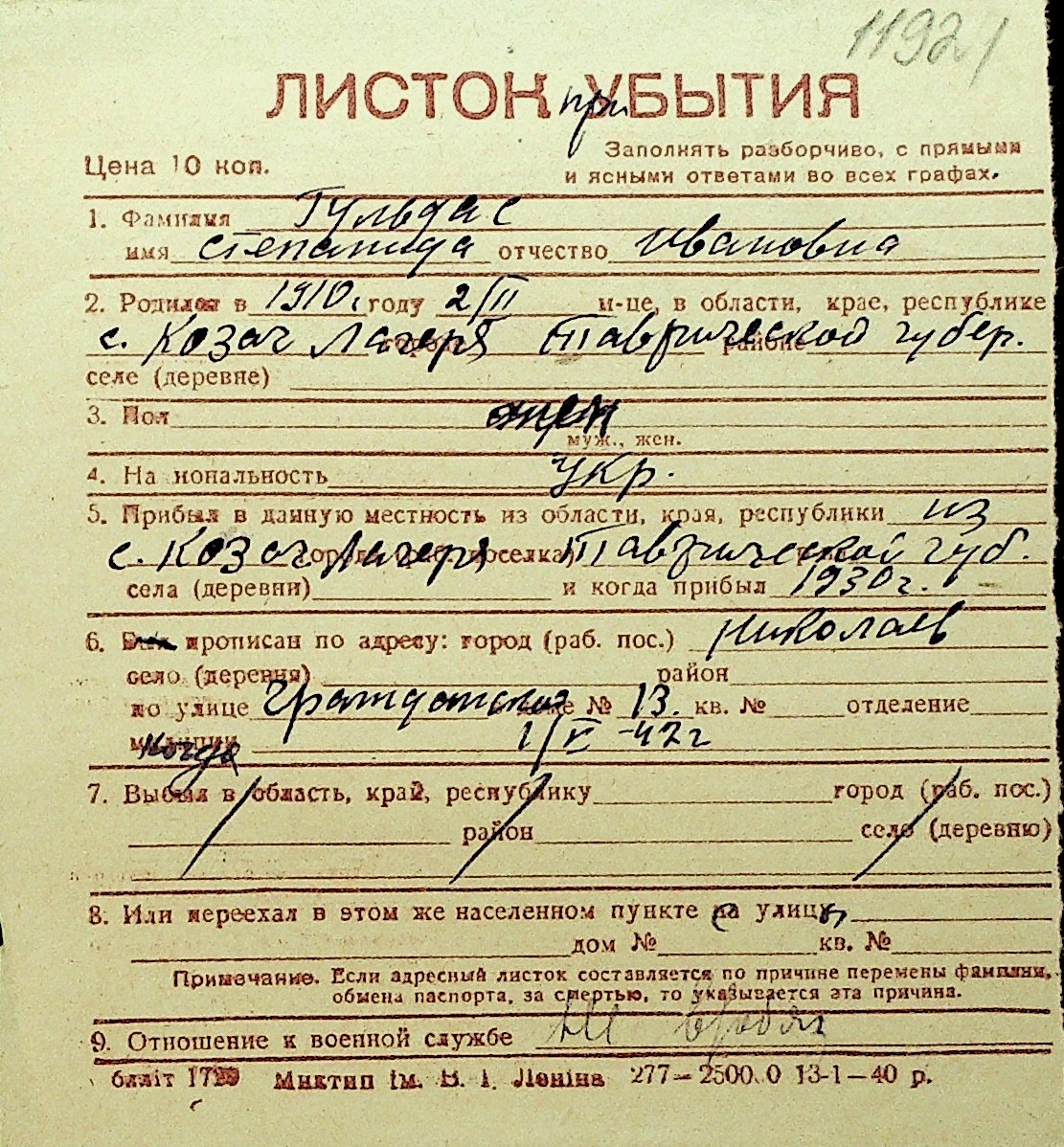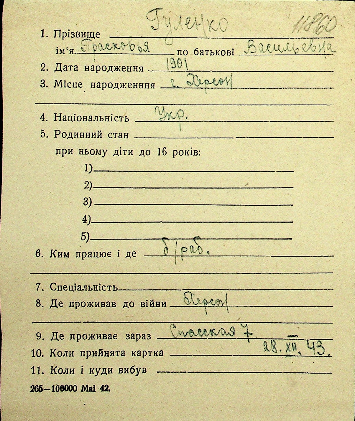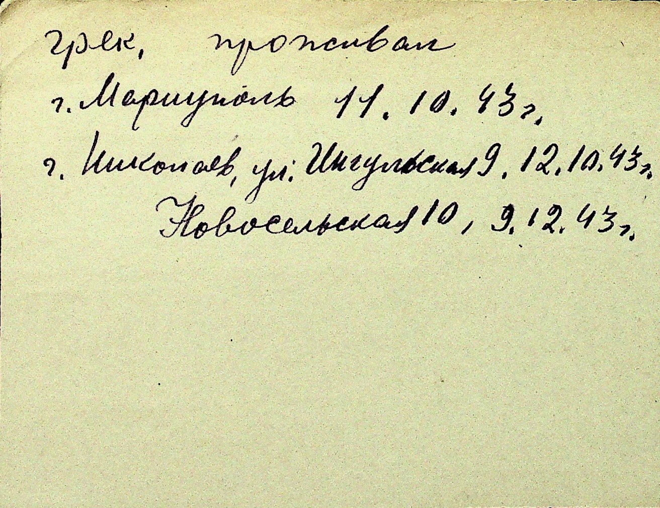 • • Перелік карток до фонду № Н-1016