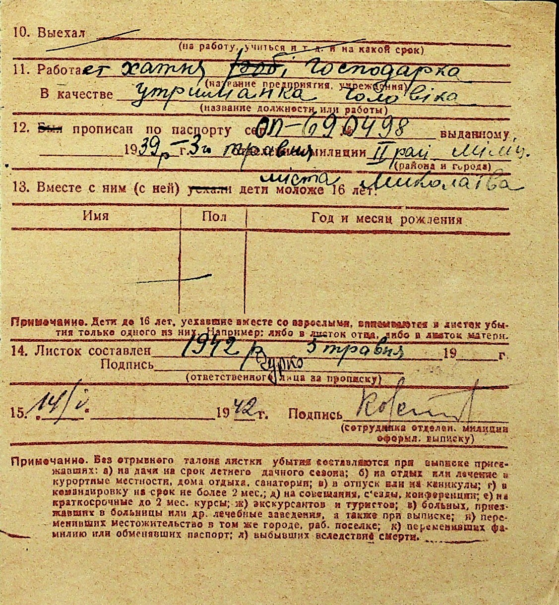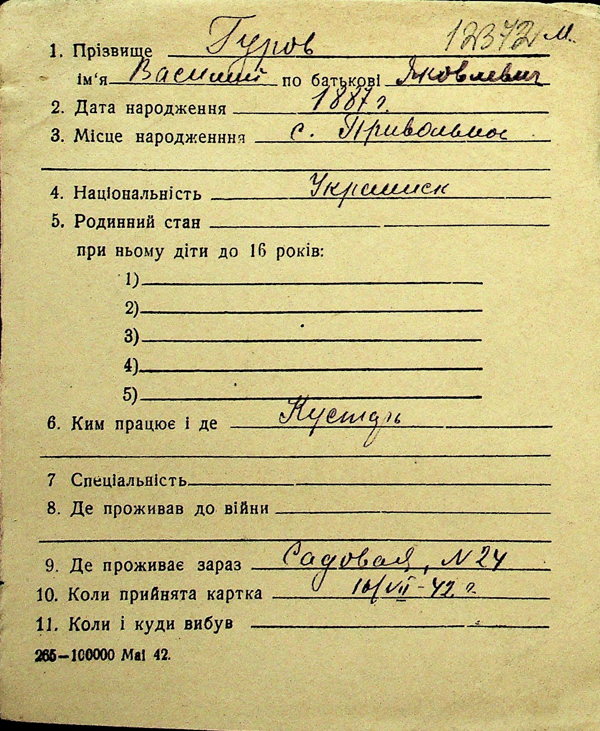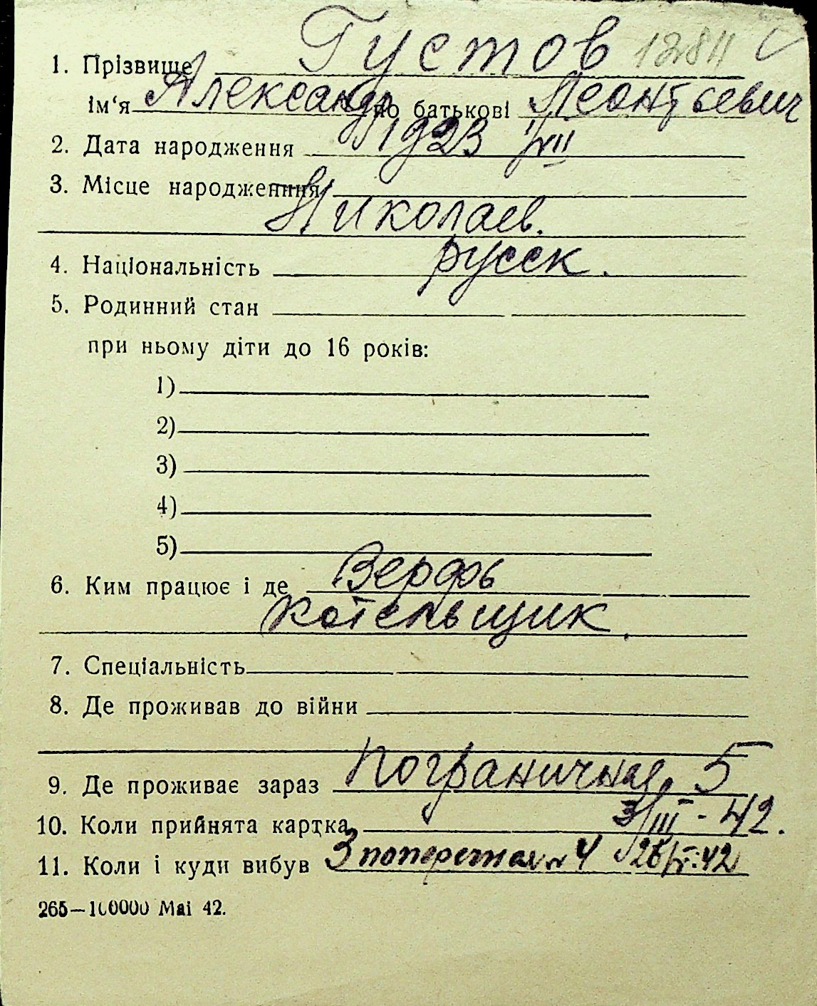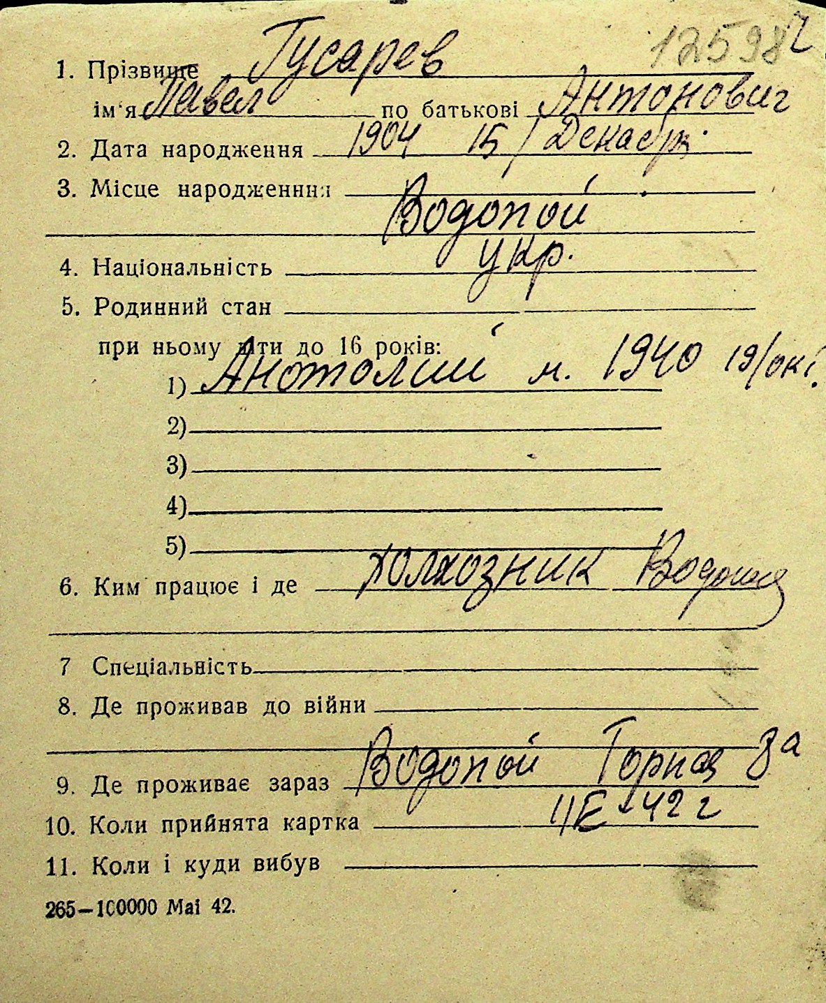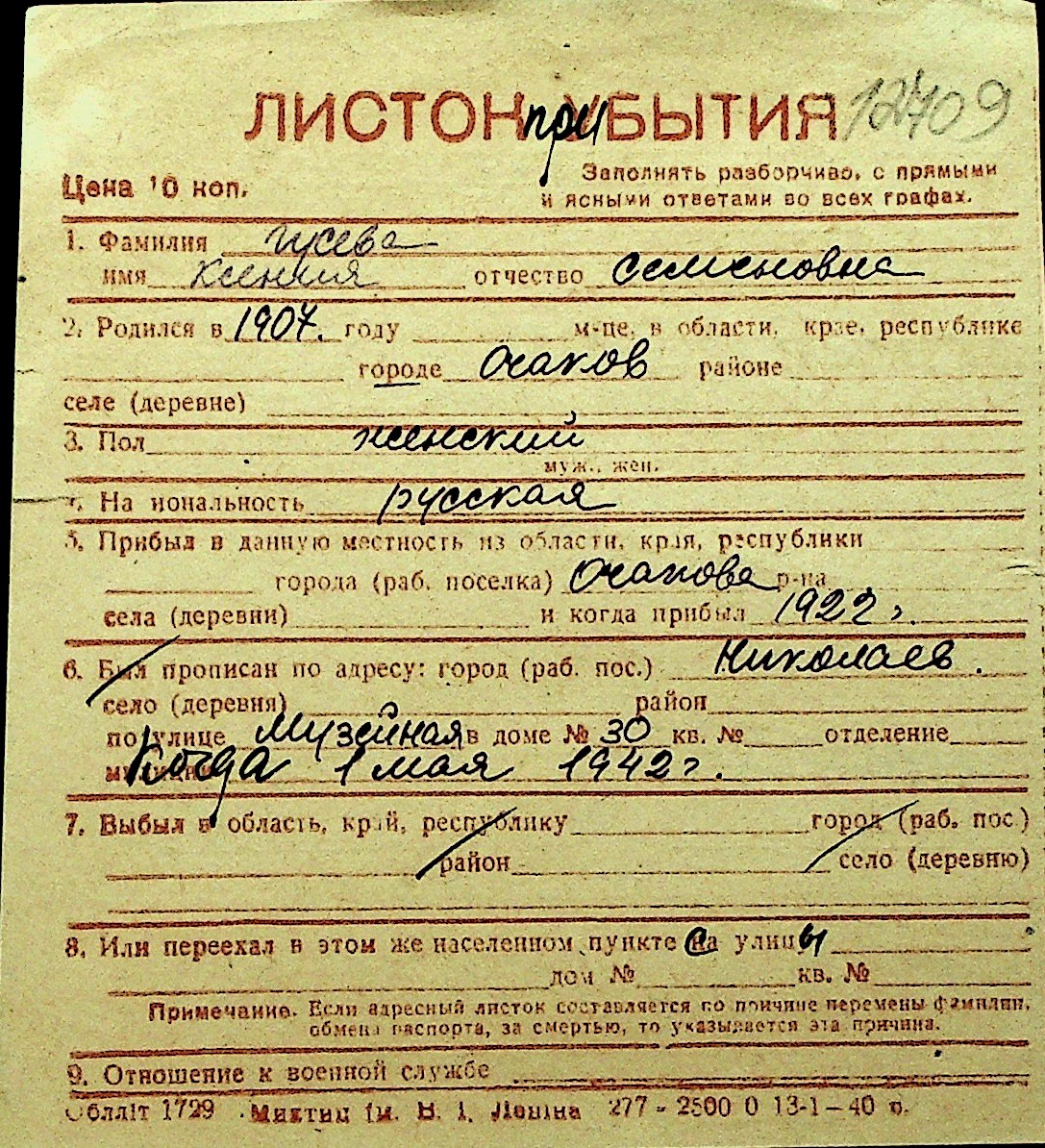 • • Перелік карток до фонду № Н-1016