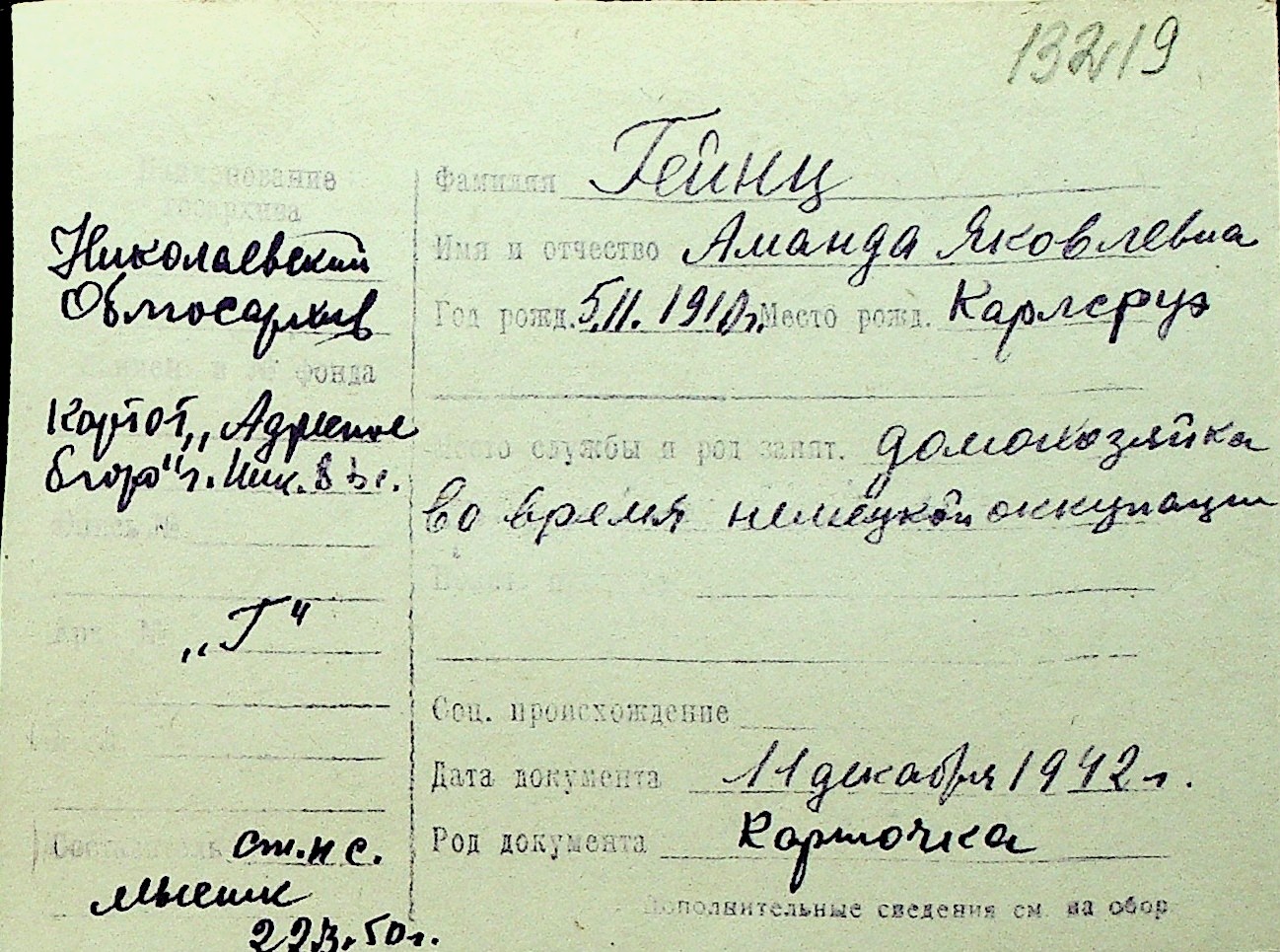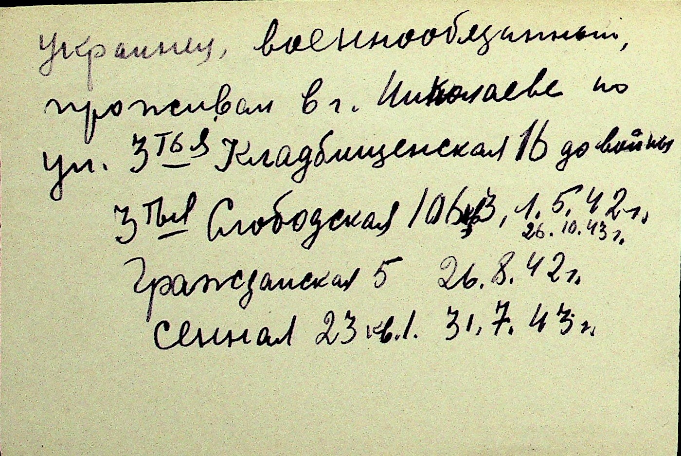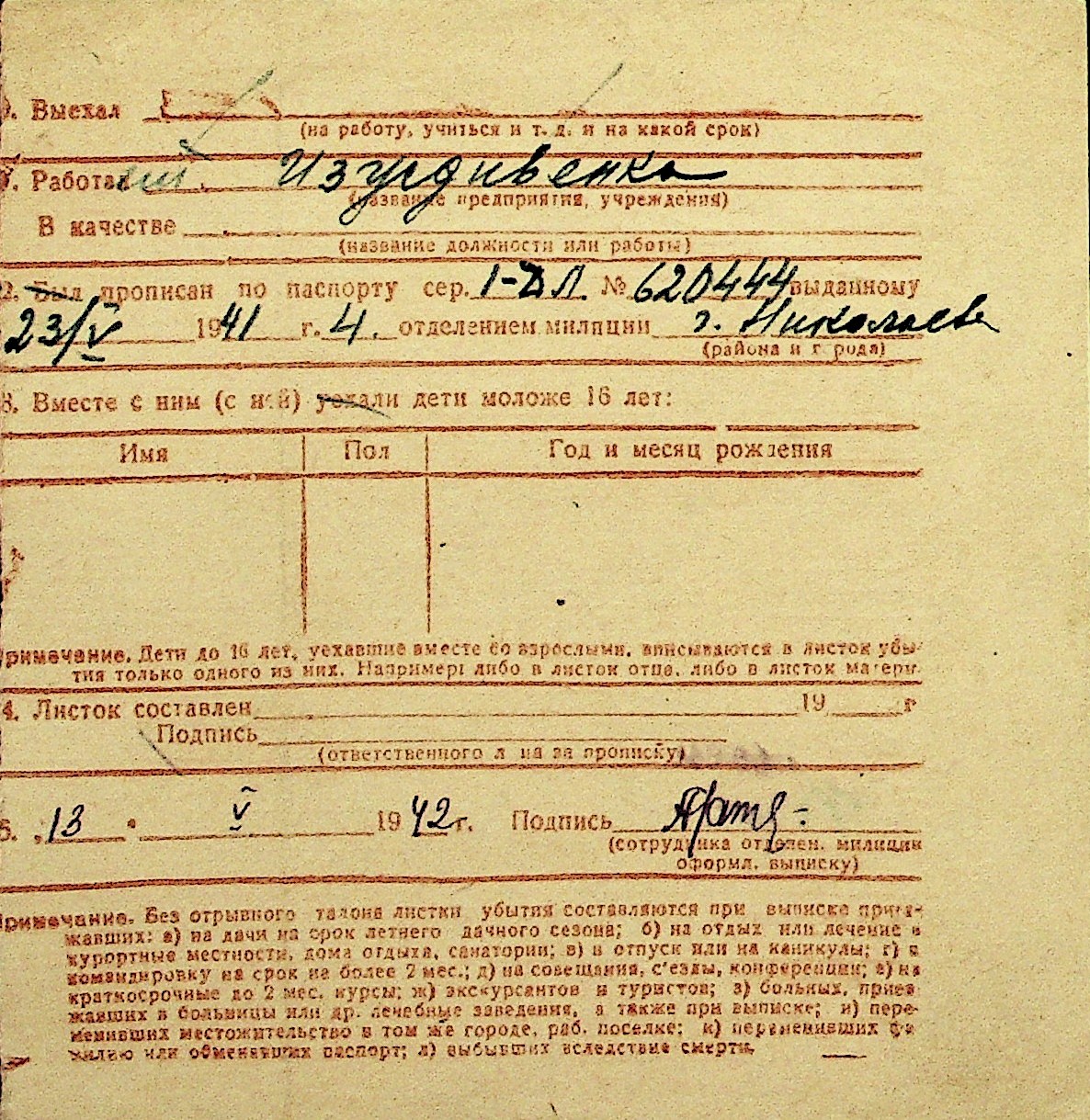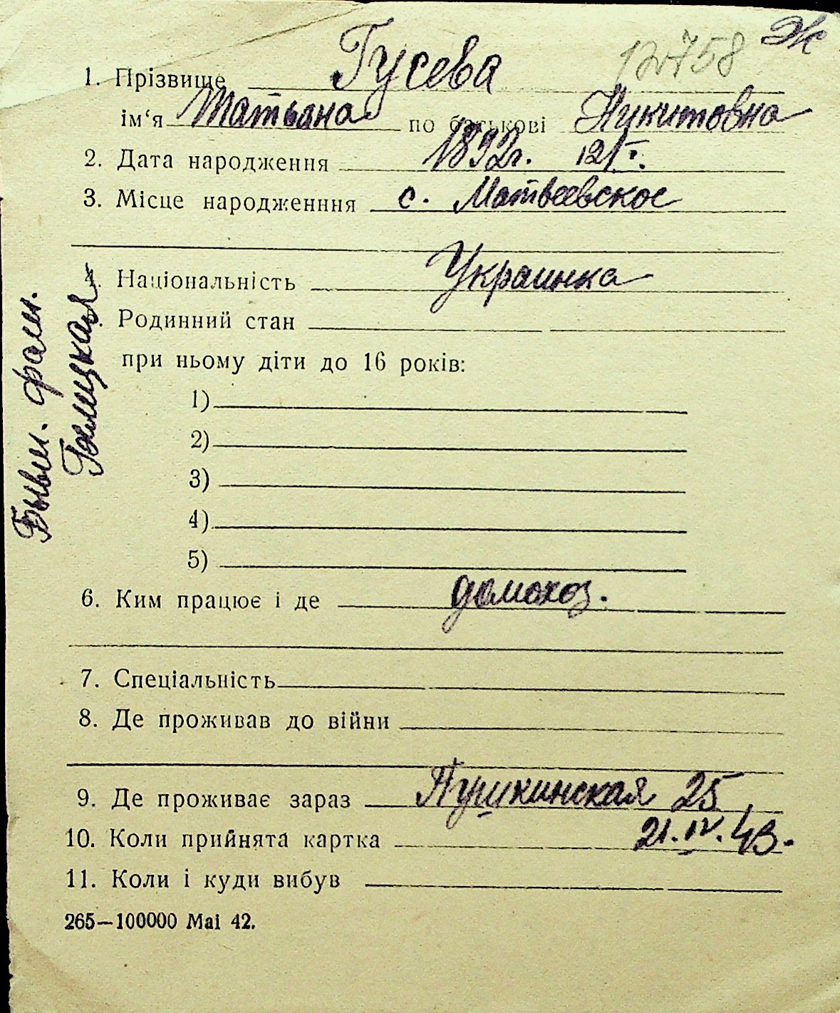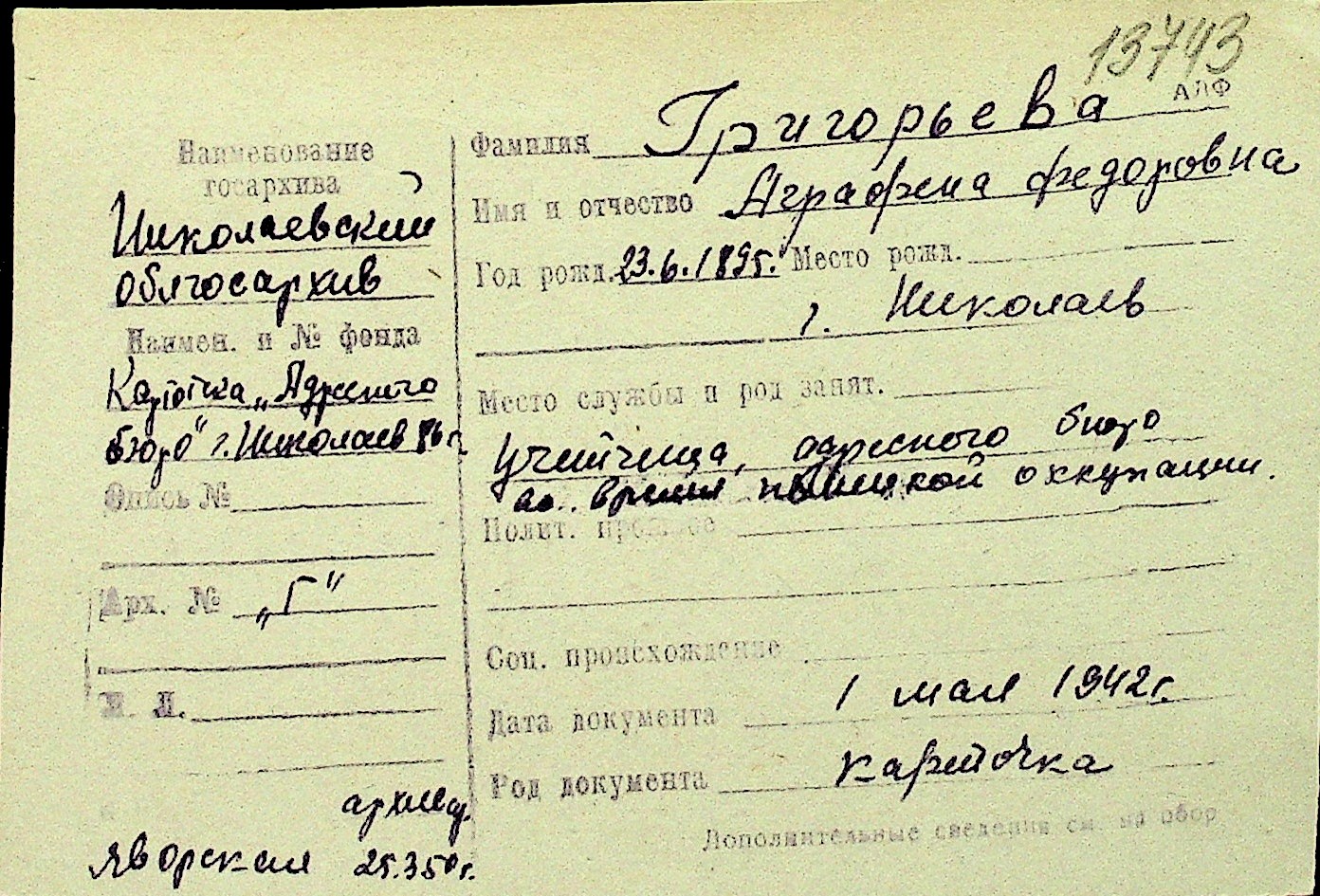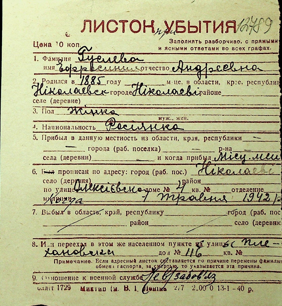 • • Перелік карток до фонду № Н-1016