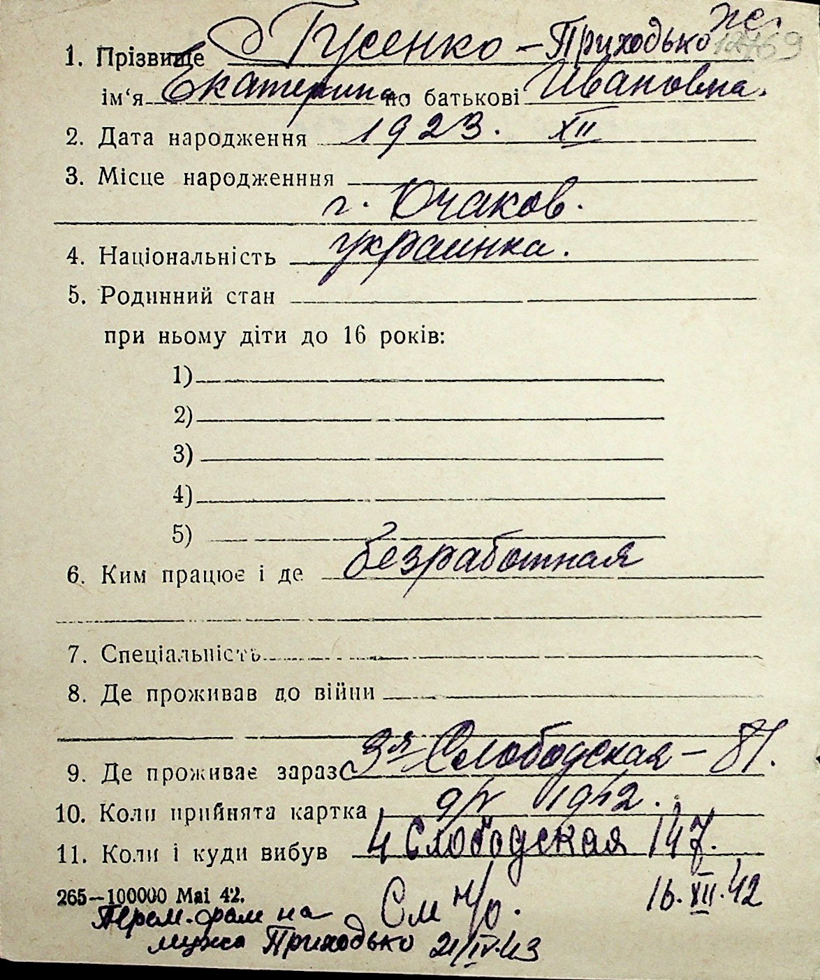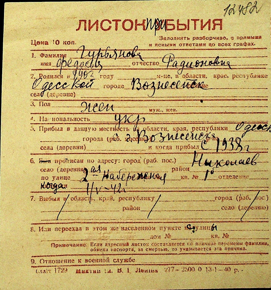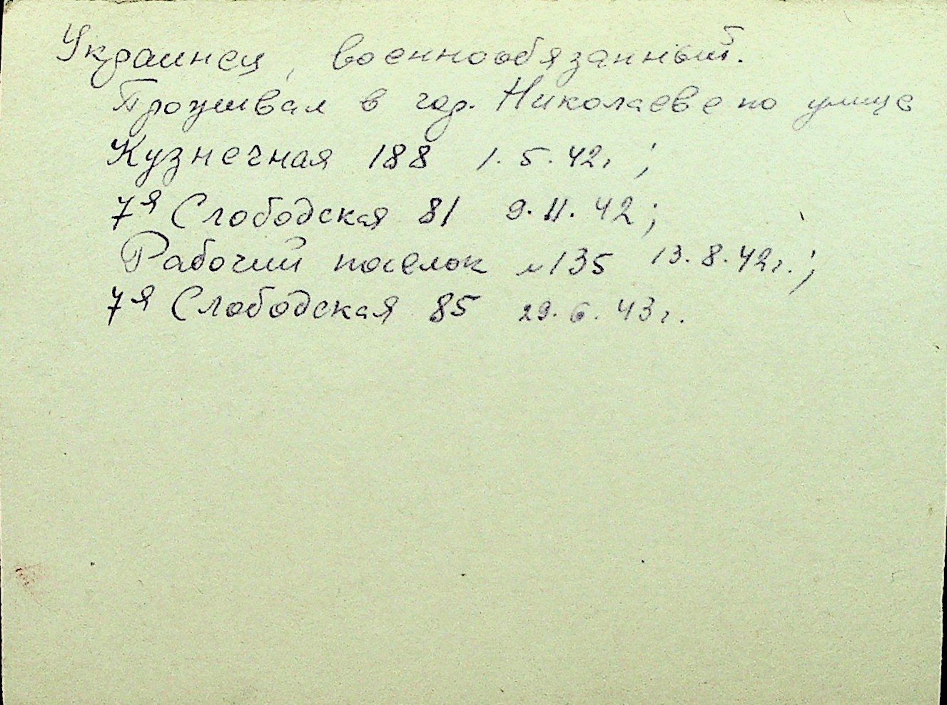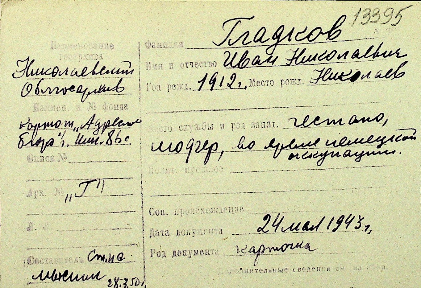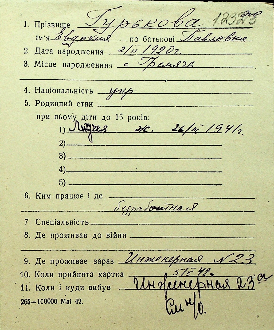 • • Перелік карток до фонду № Н-1016