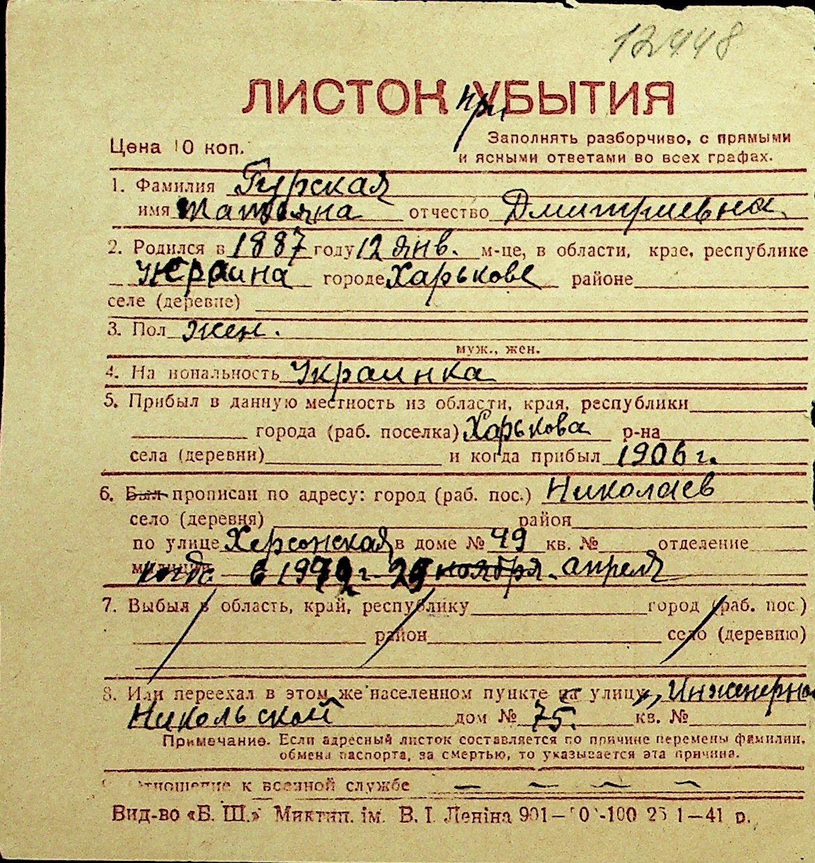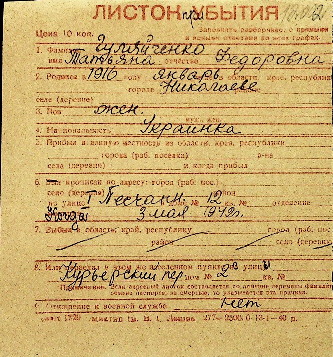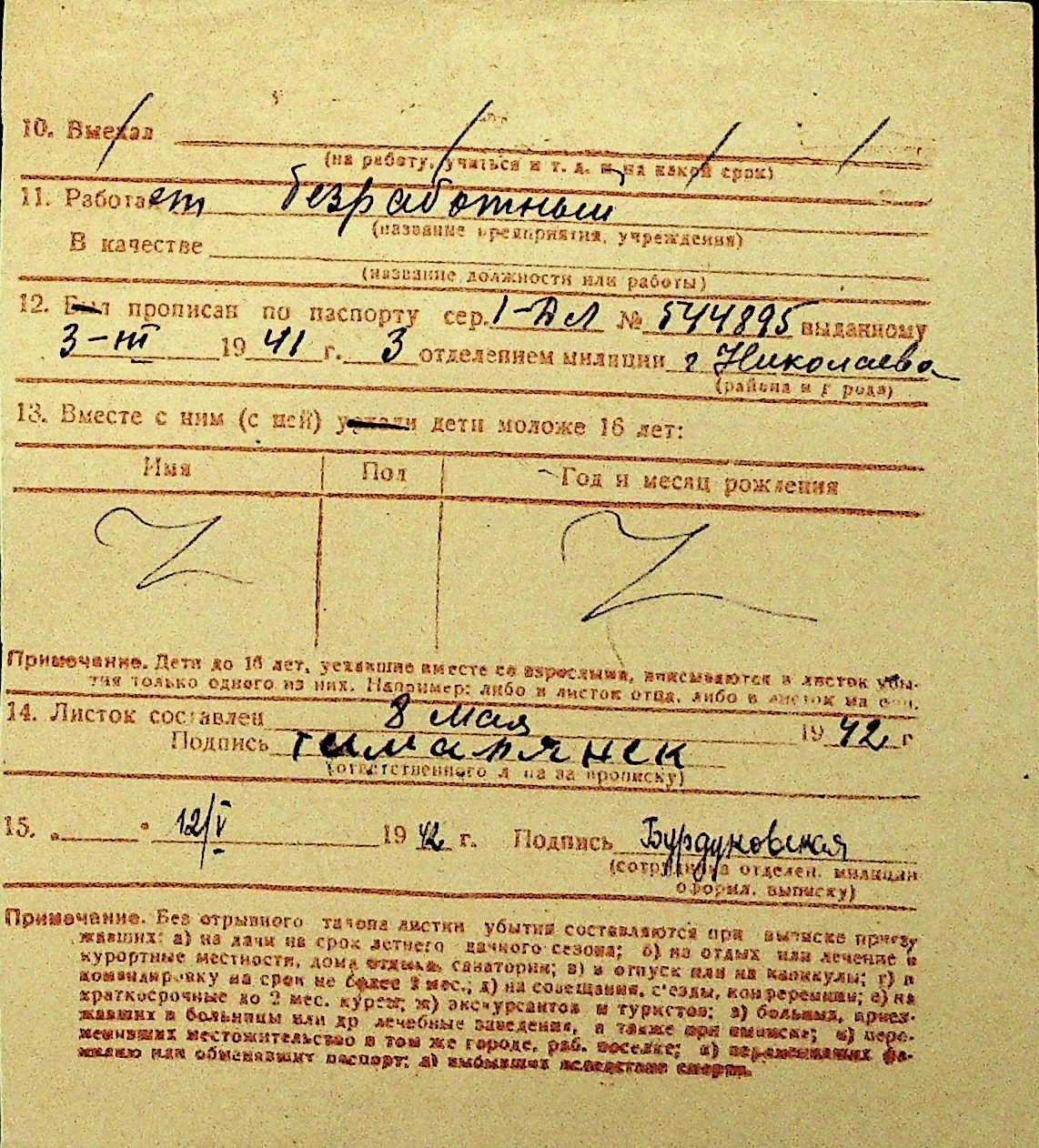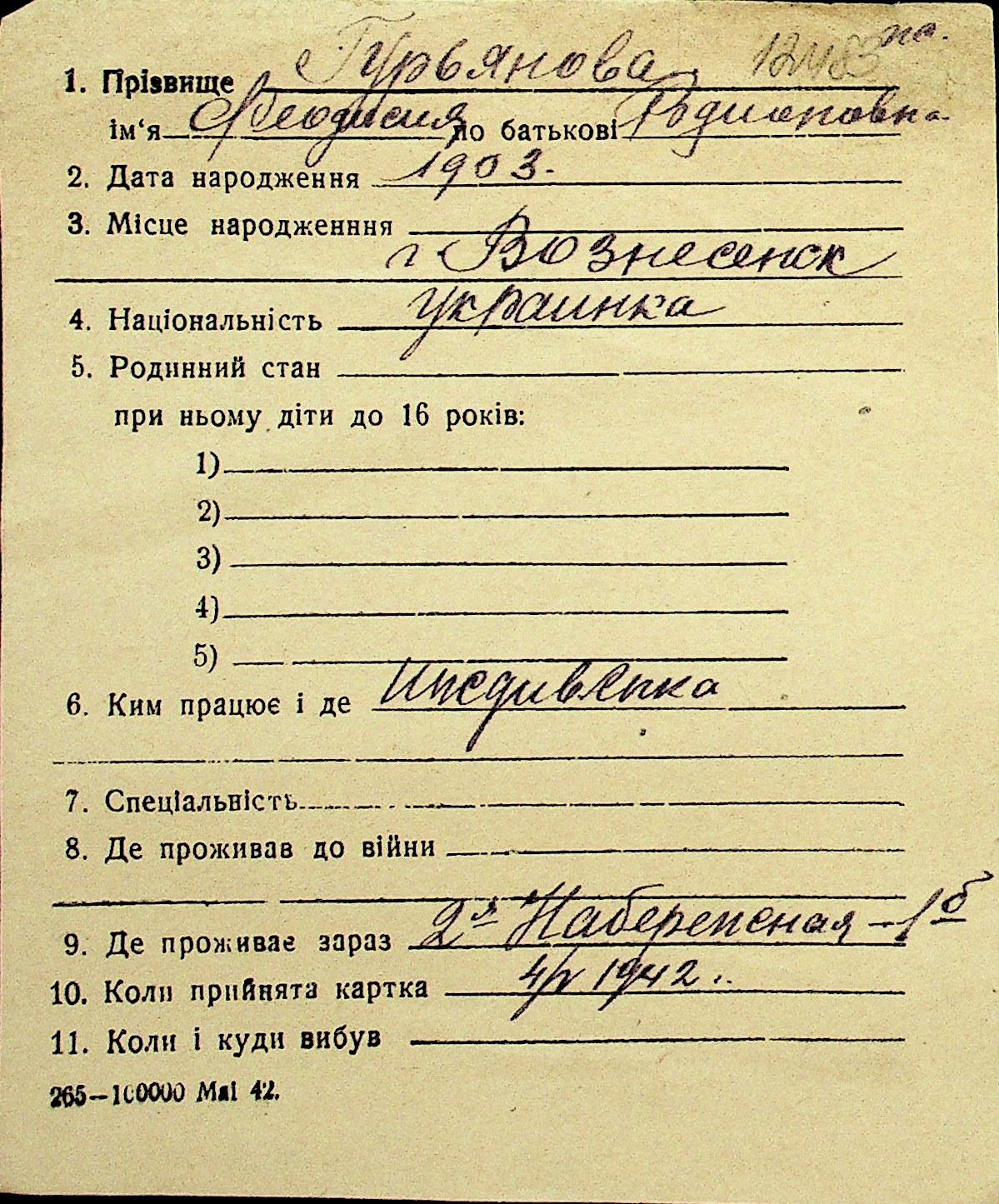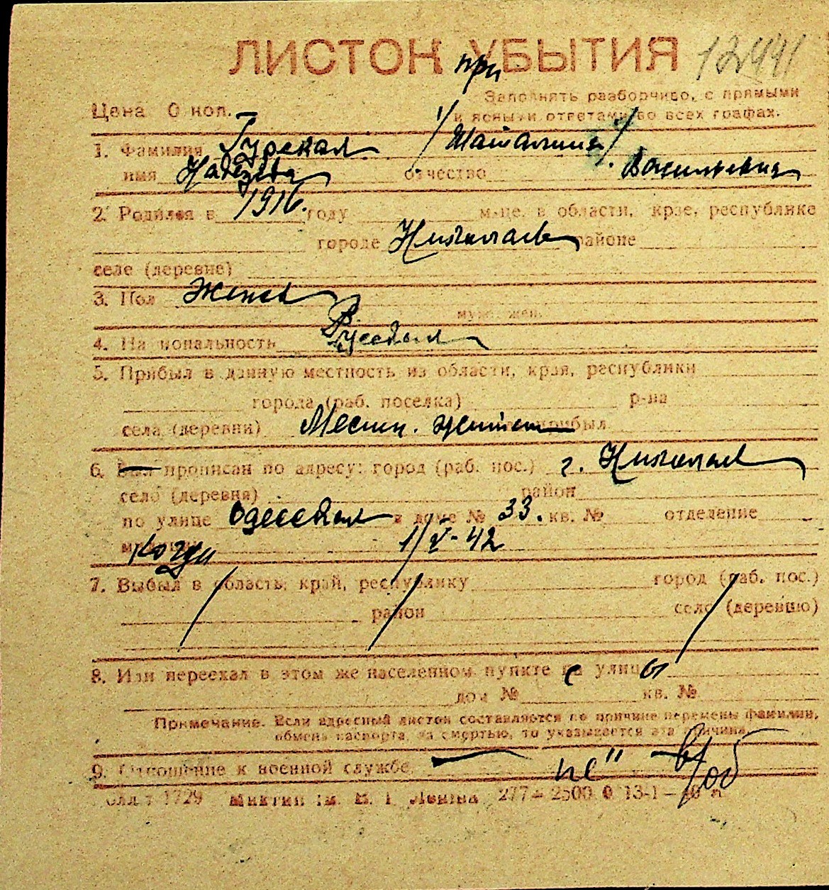 • • Перелік карток до фонду № Н-1016
