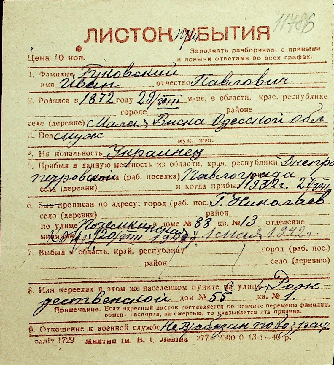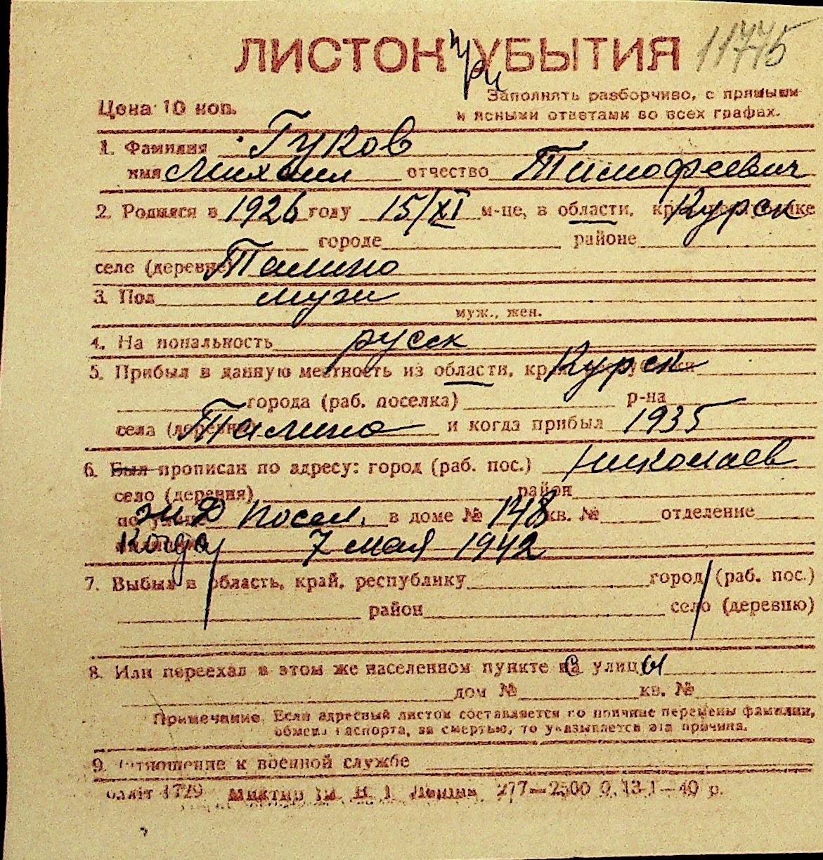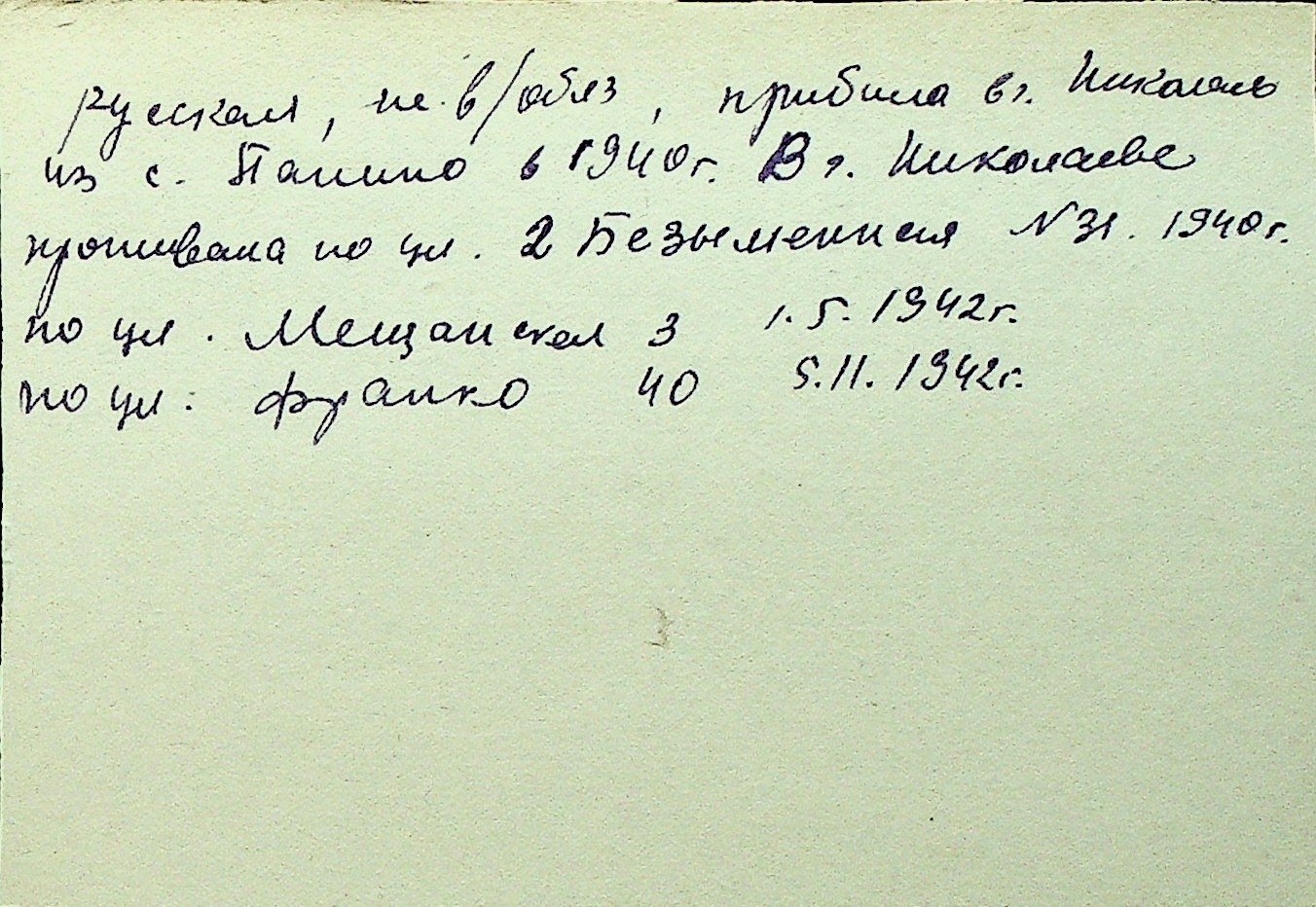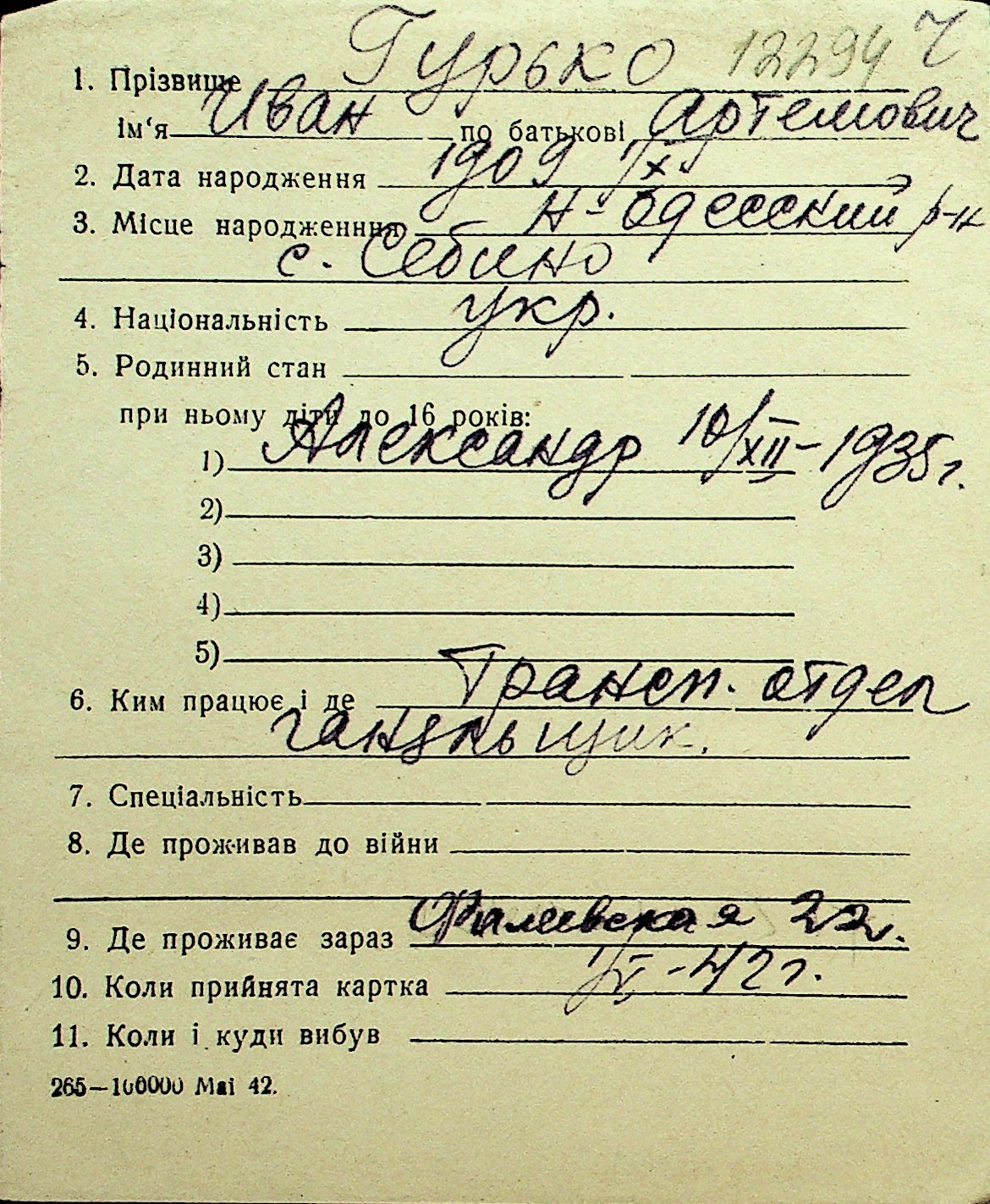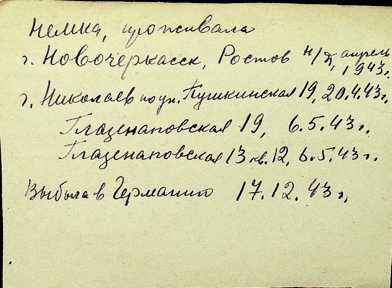 • • Перелік карток до фонду № Н-1016
