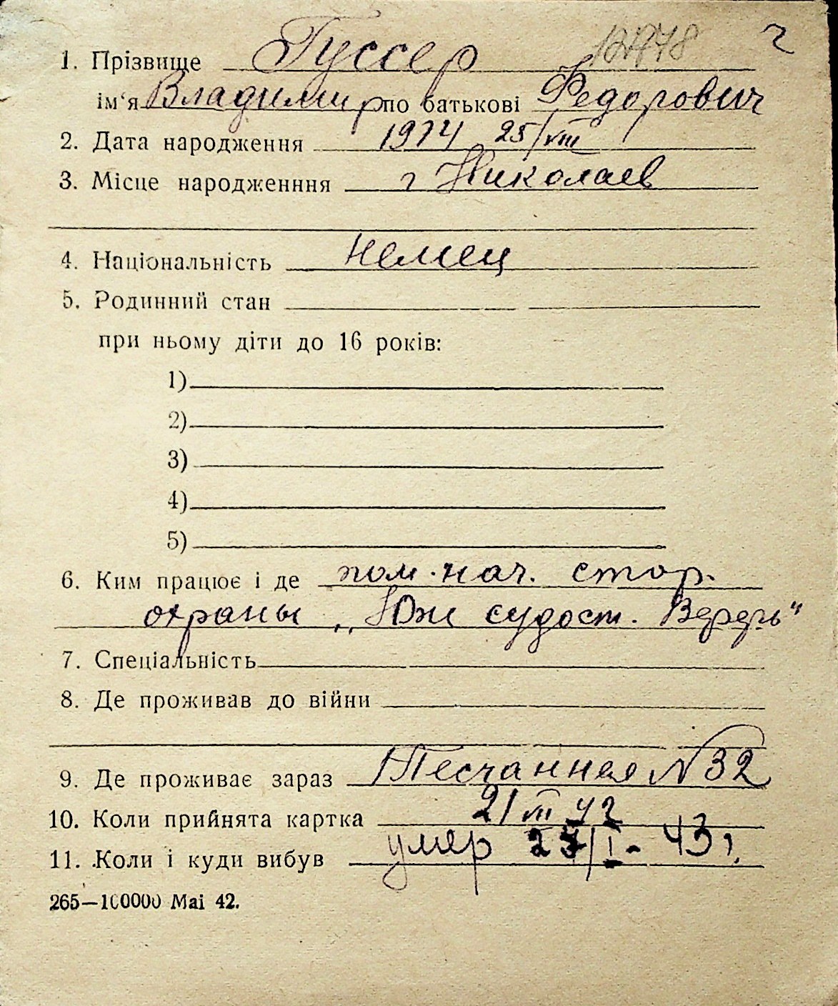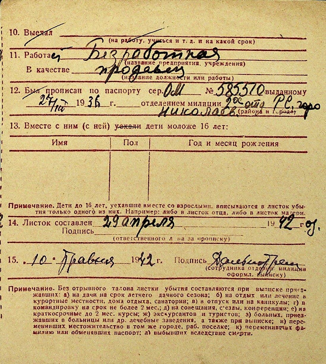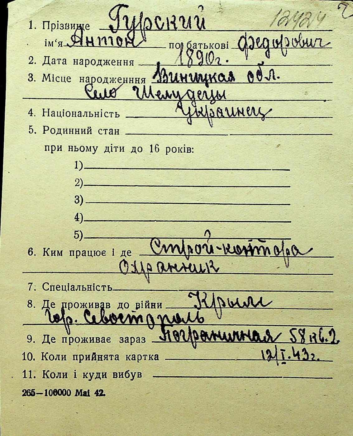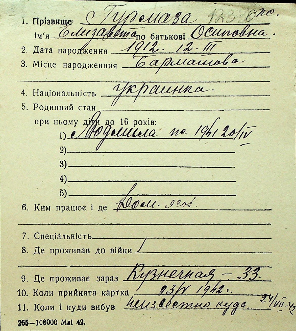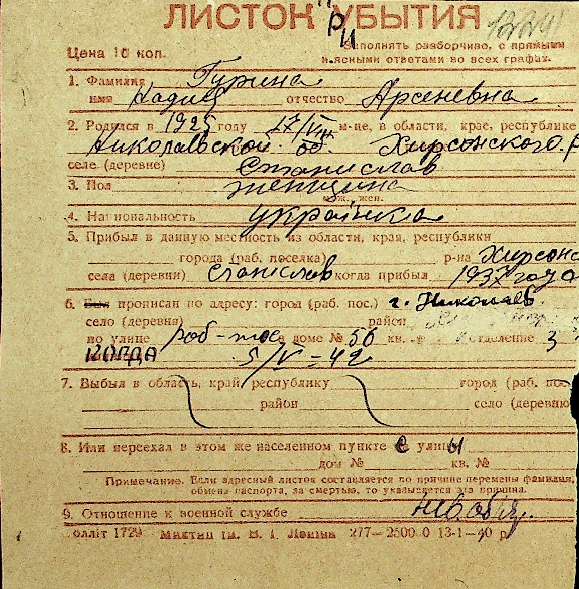 • • Перелік карток до фонду № Н-1016