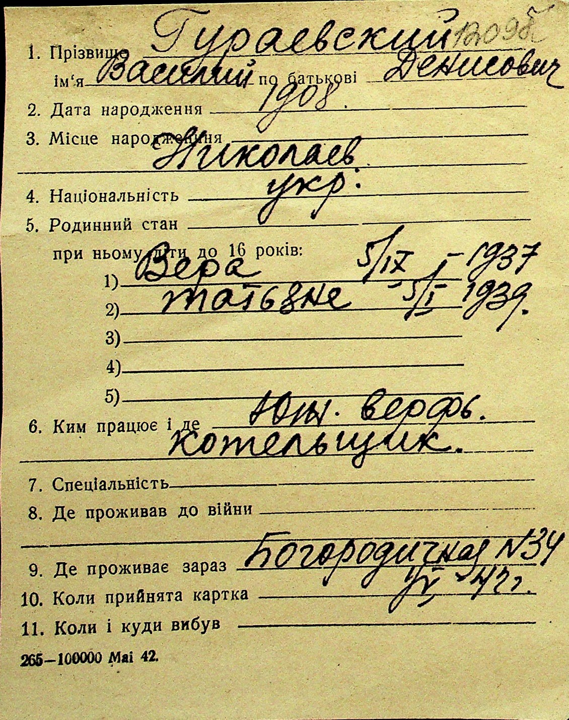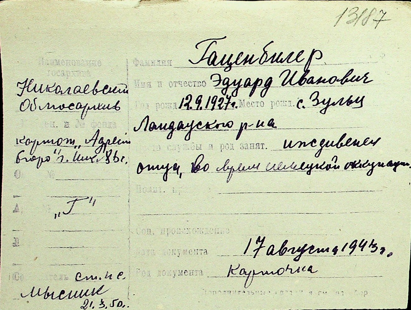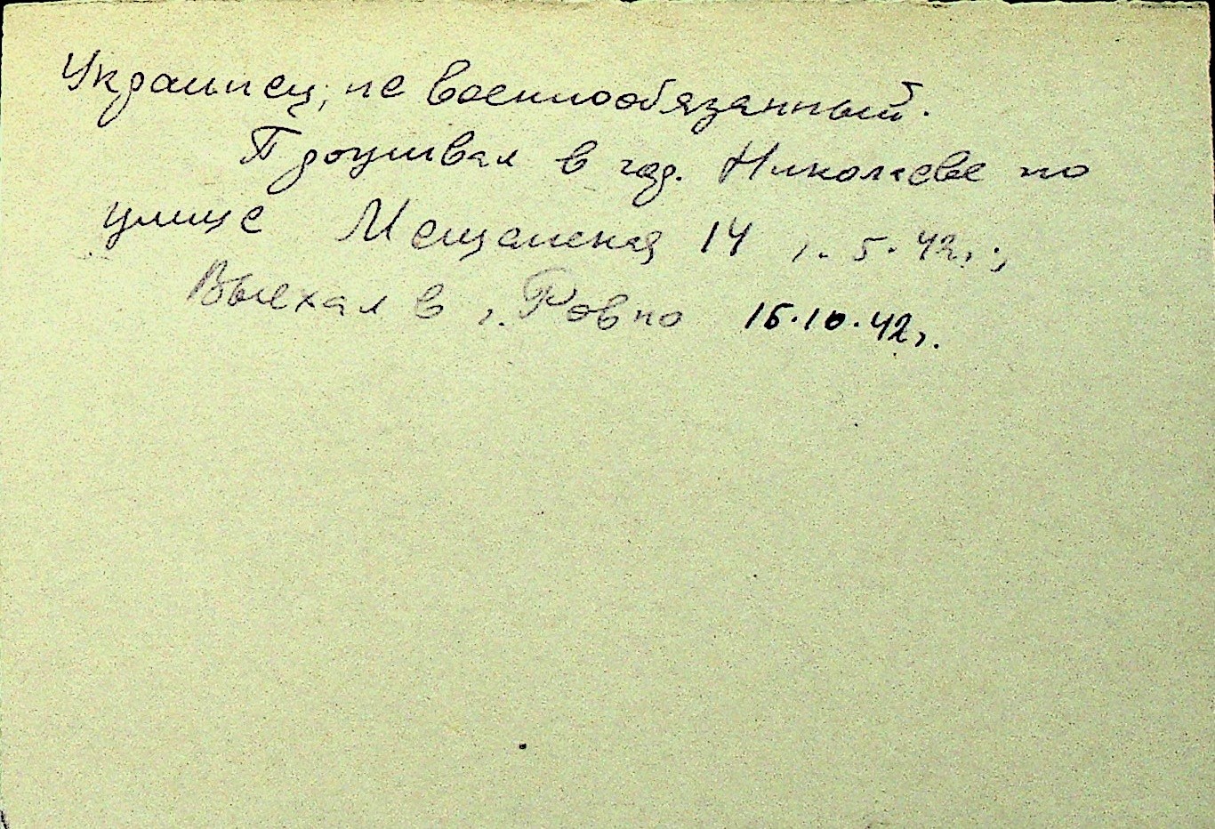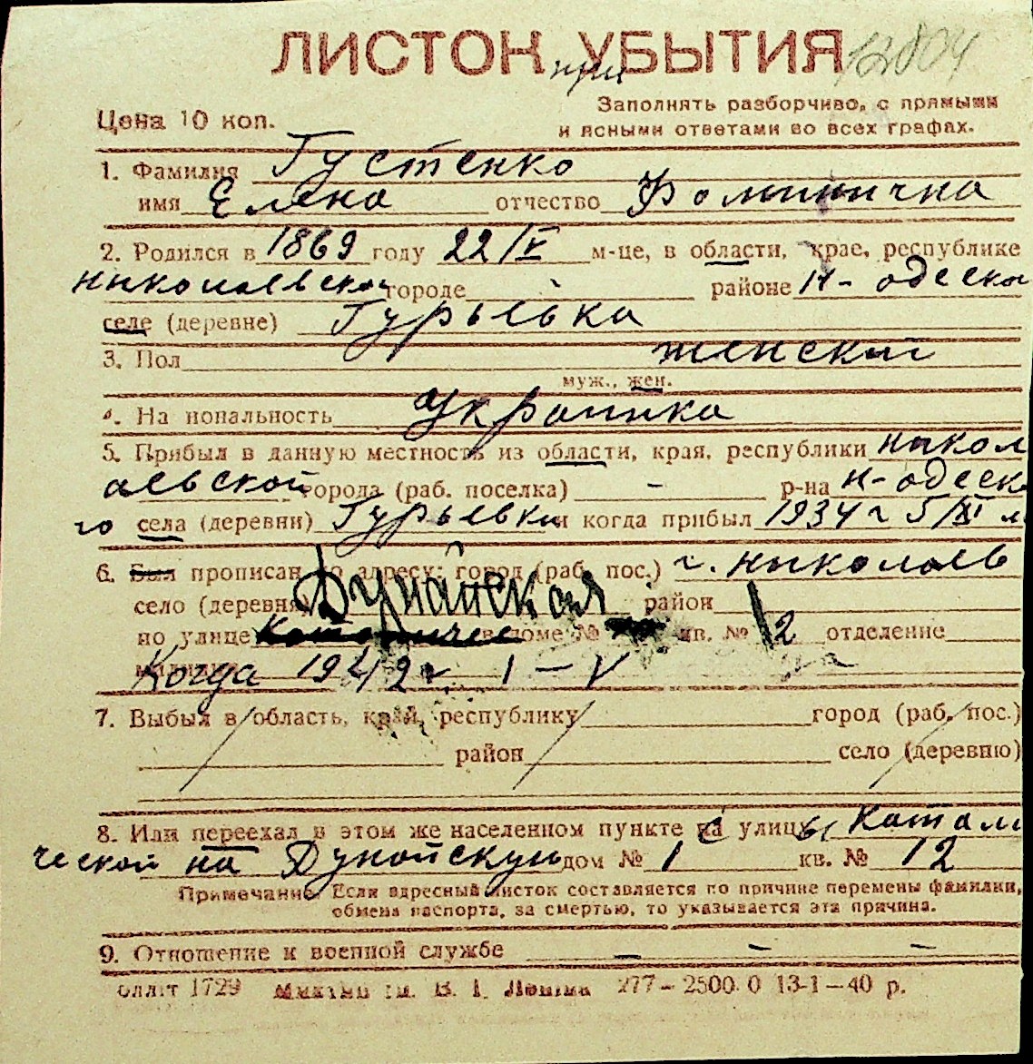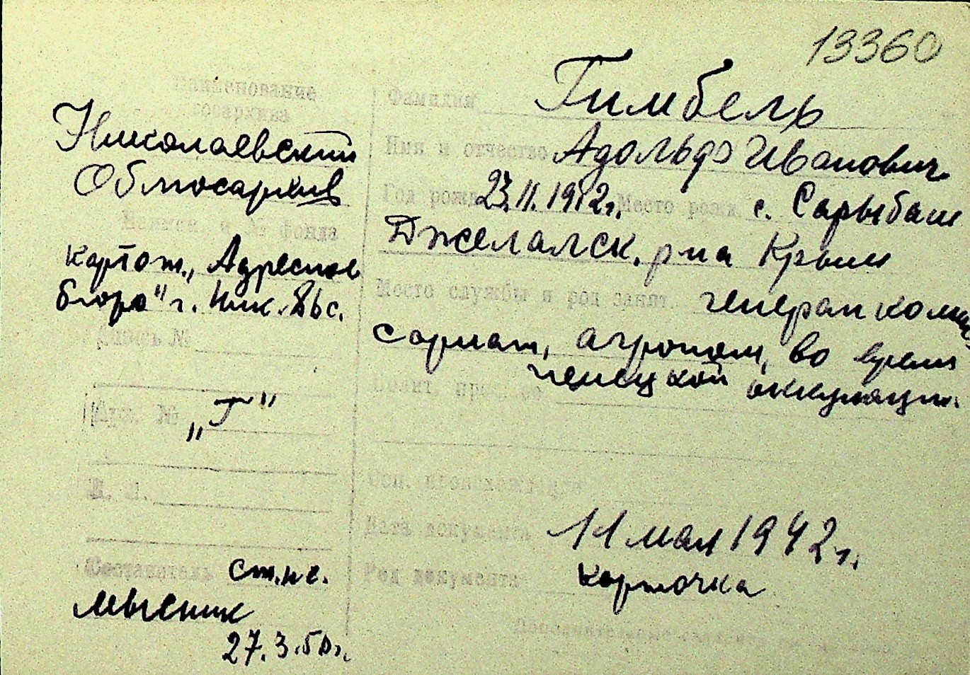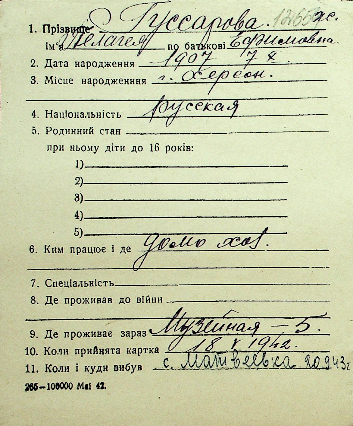 • • Перелік карток до фонду № Н-1016