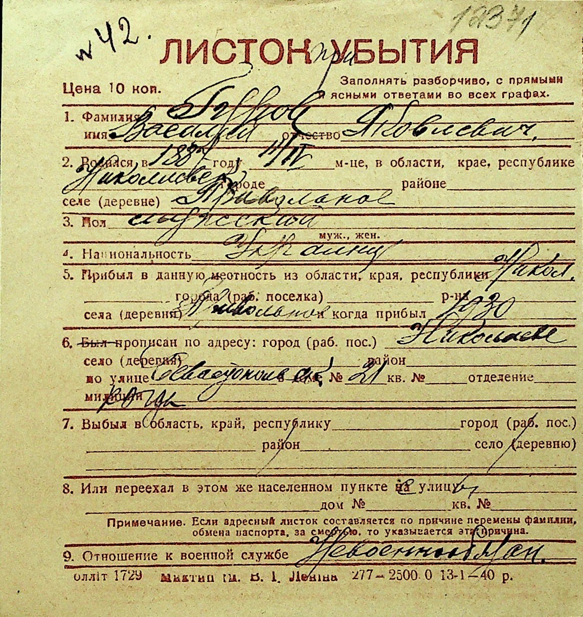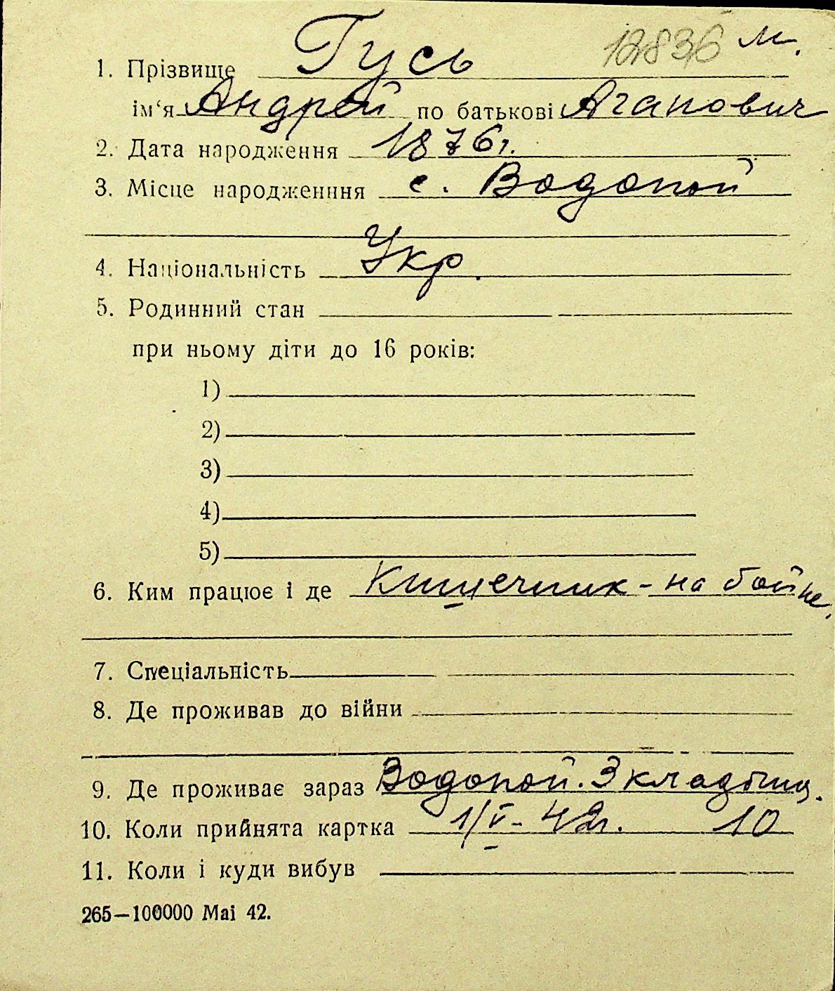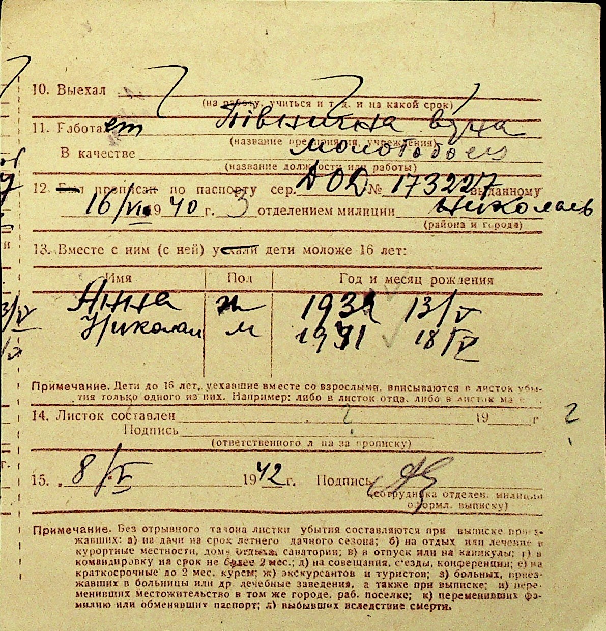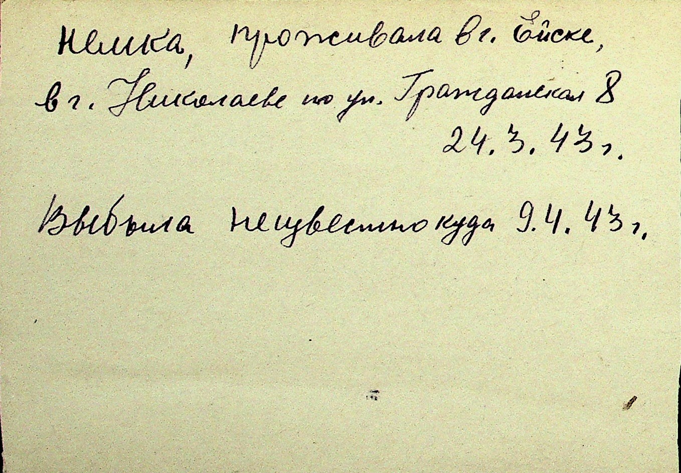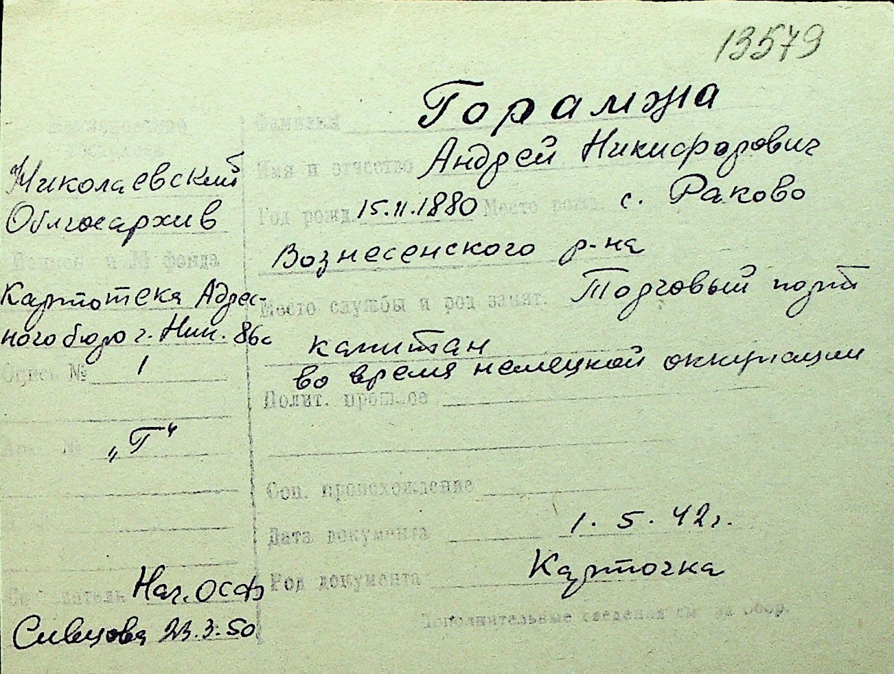 • • Перелік карток до фонду № Н-1016