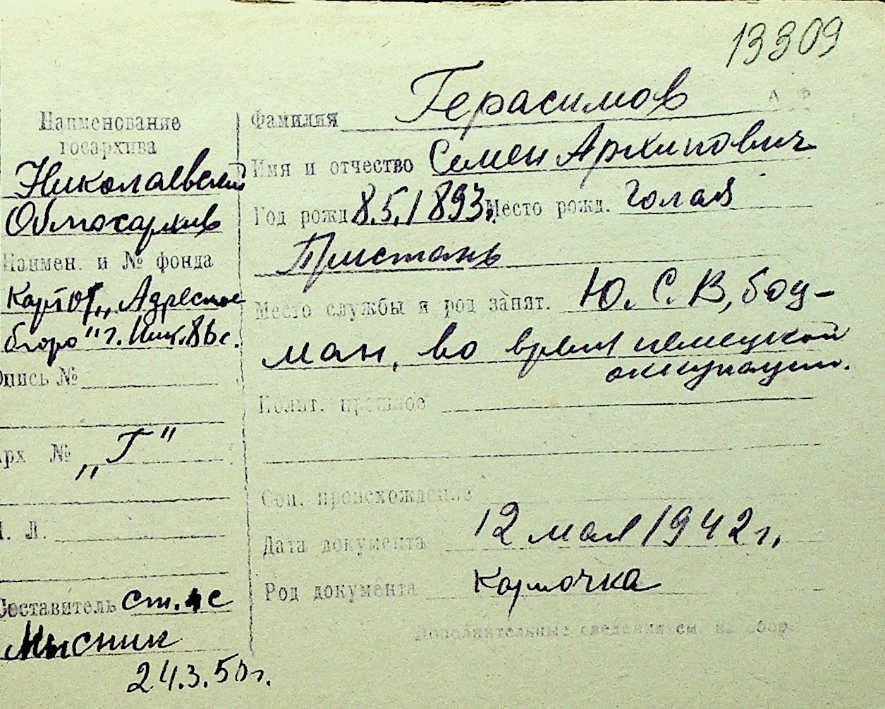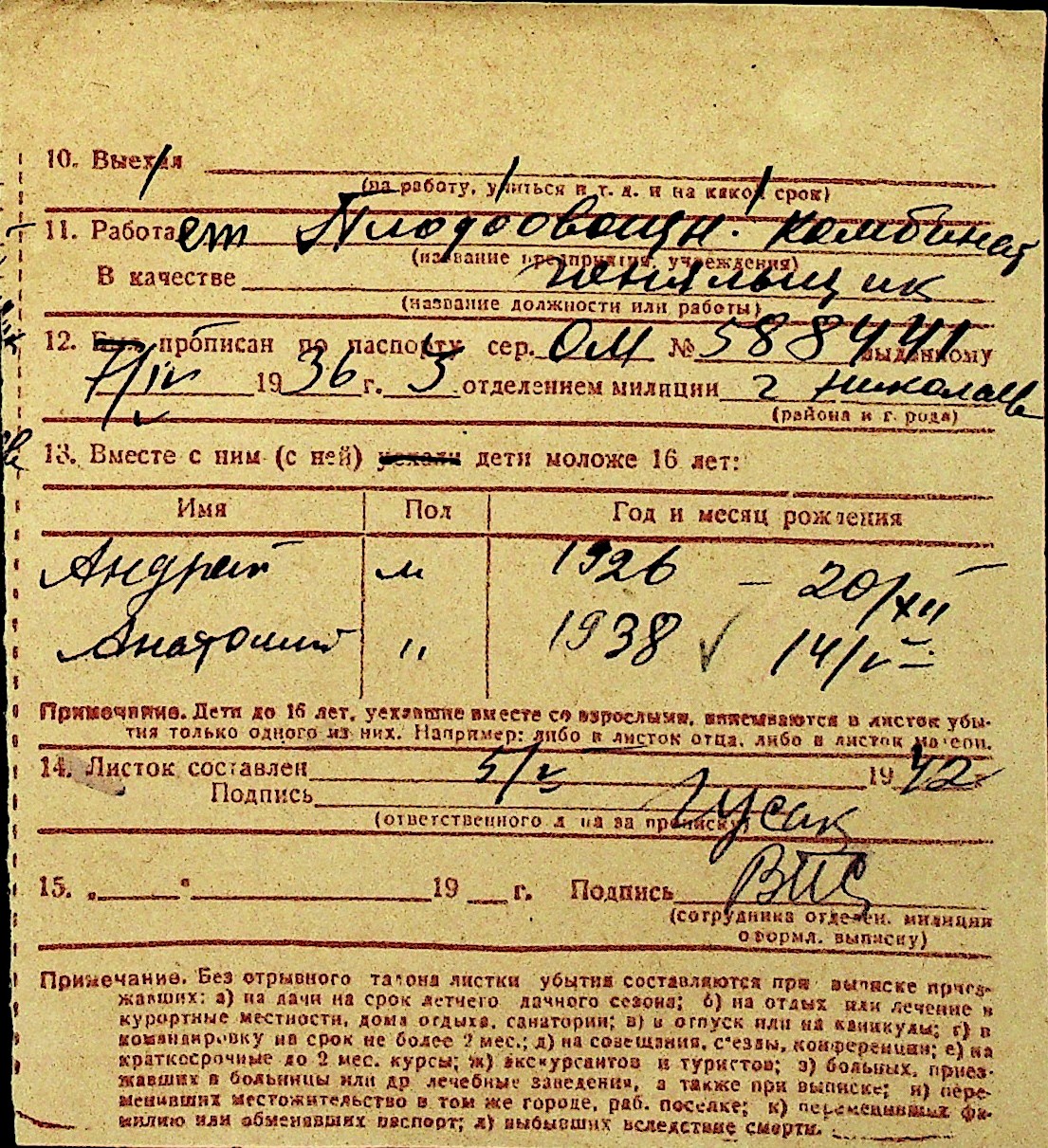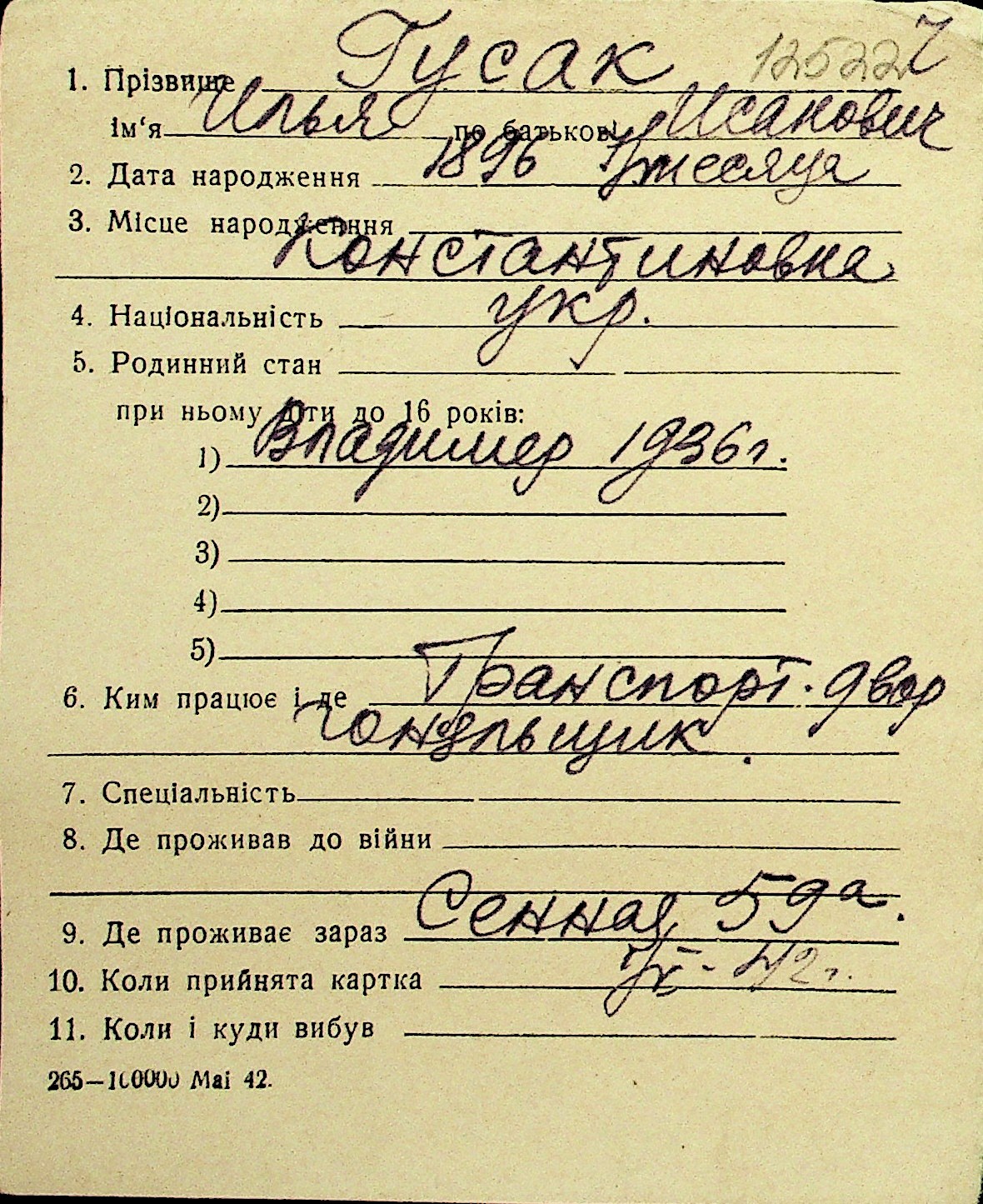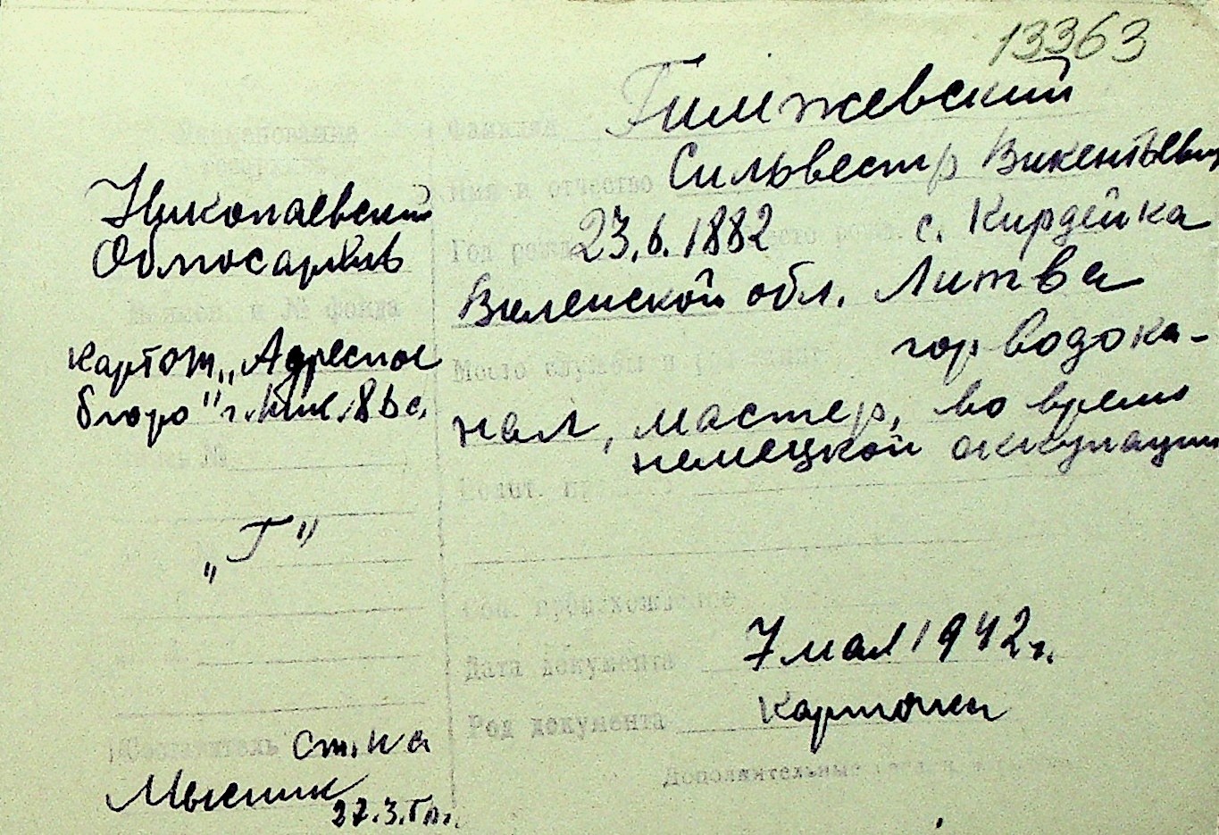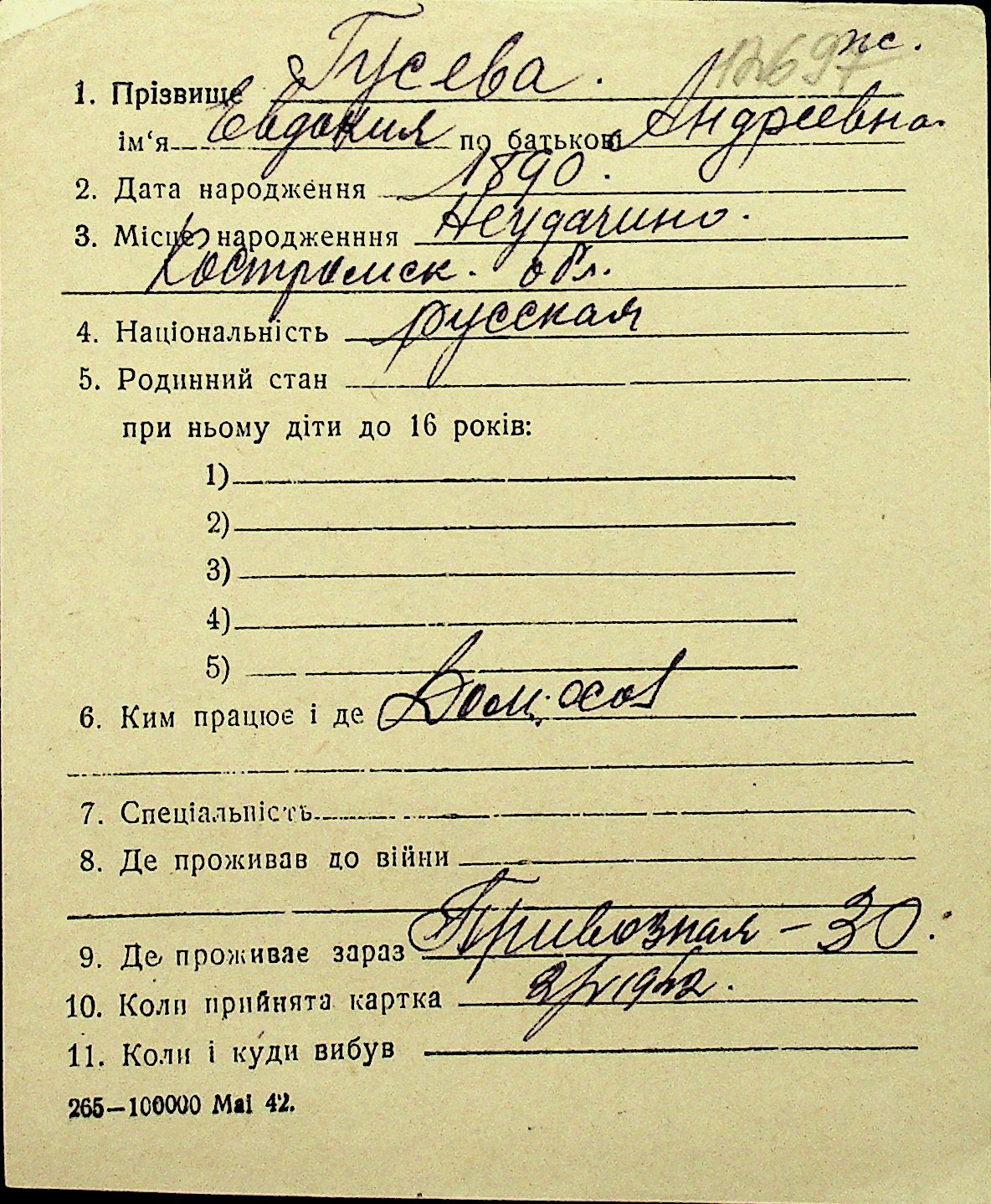 • • Перелік карток до фонду № Н-1016