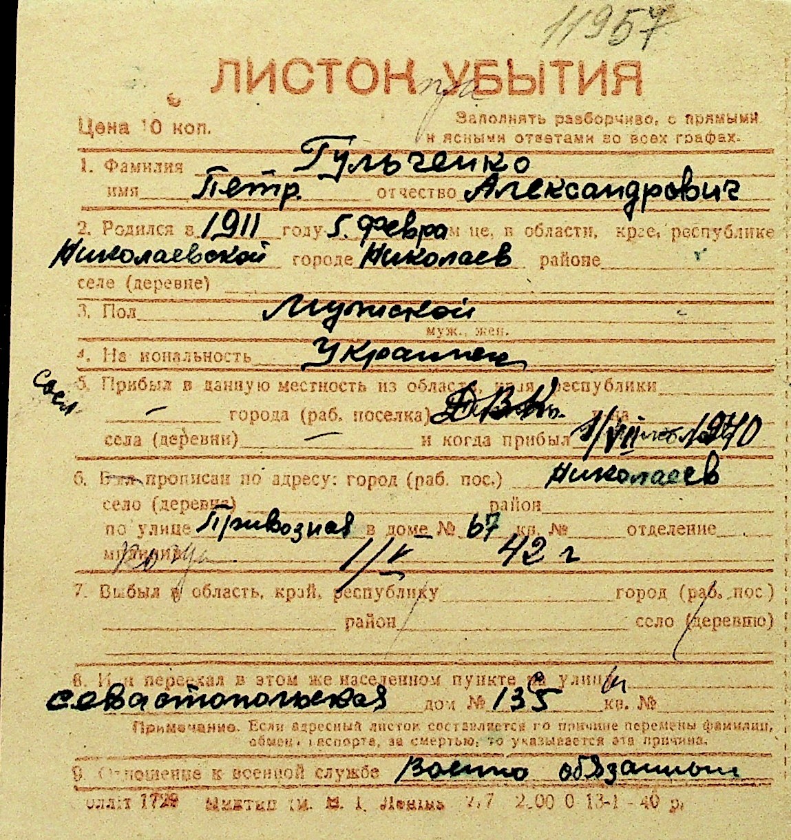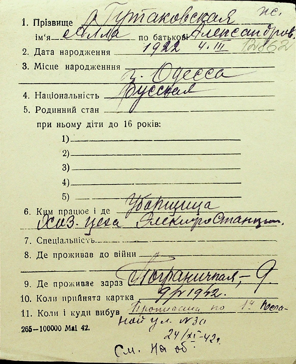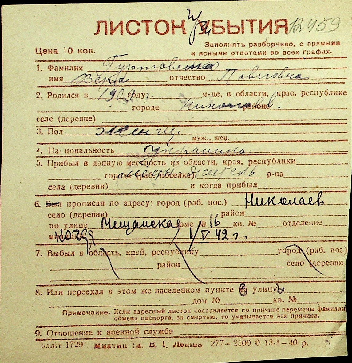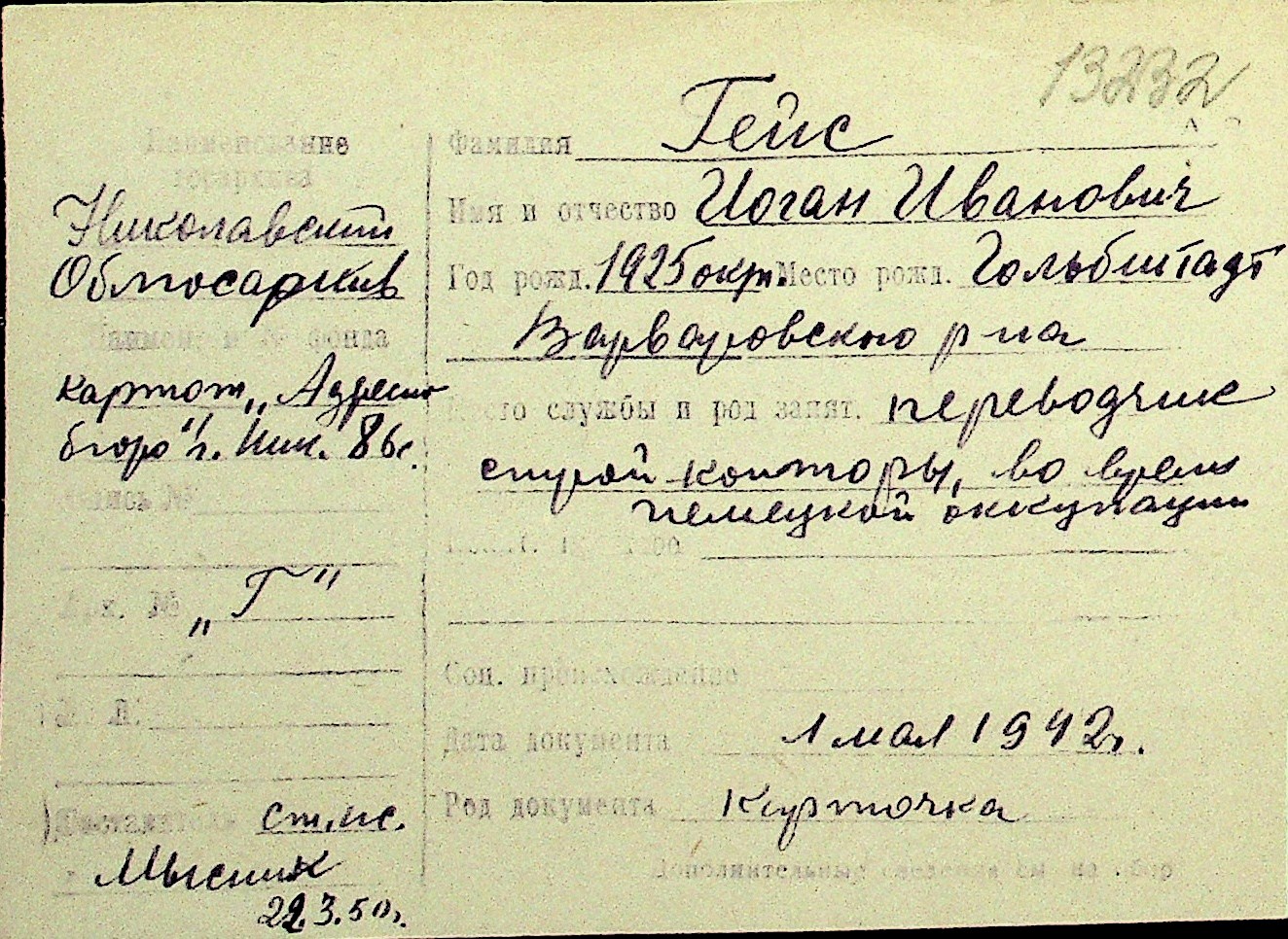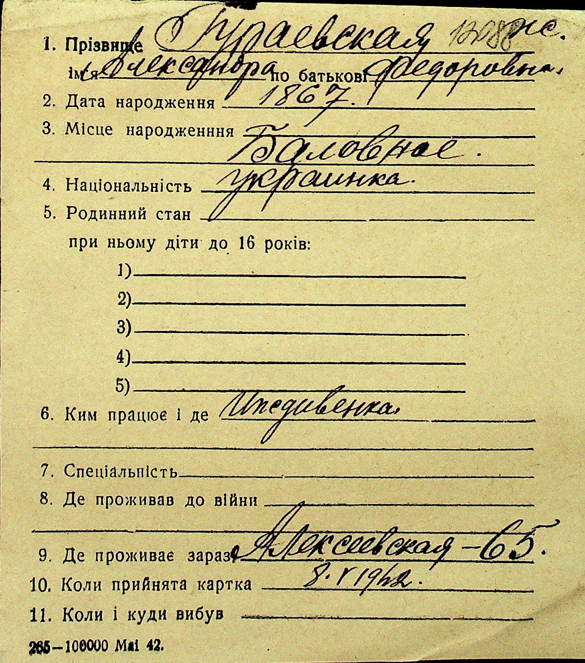 • • Перелік карток до фонду № Н-1016