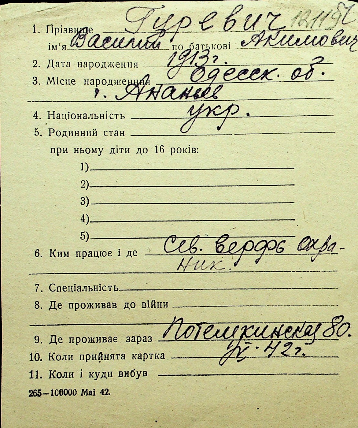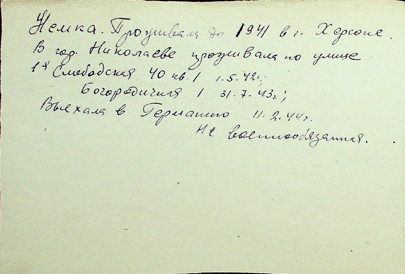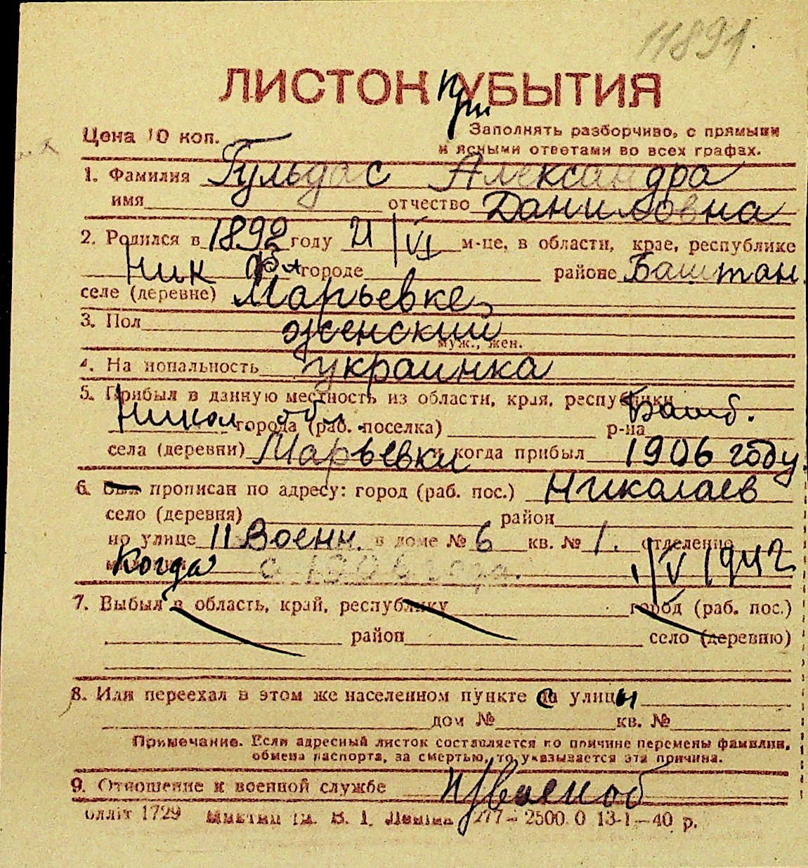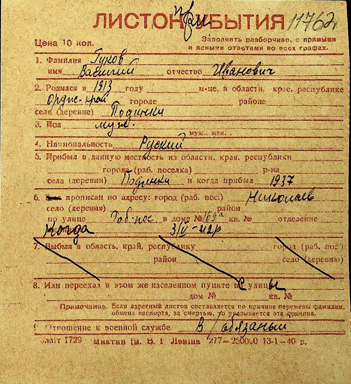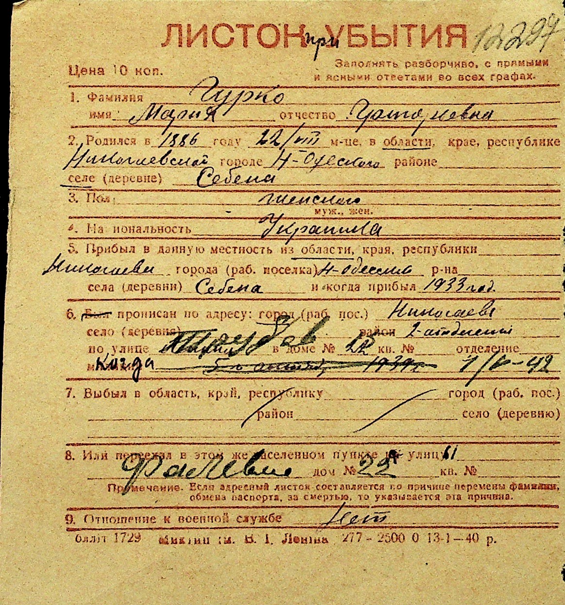 • • Перелік карток до фонду № Н-1016