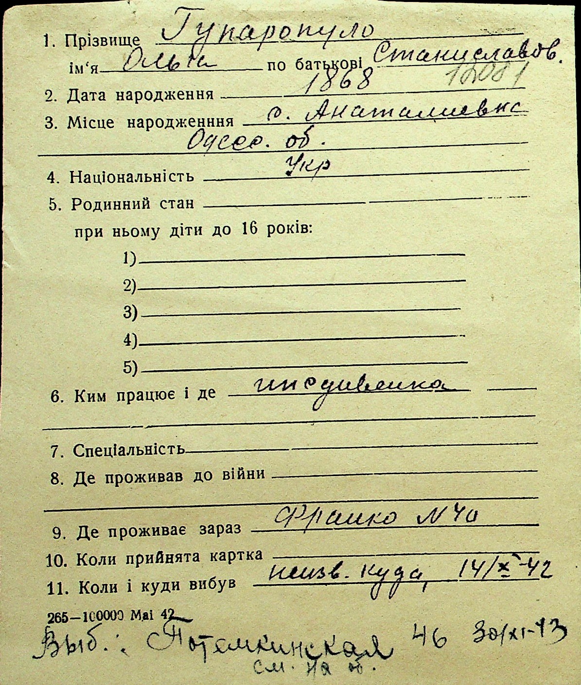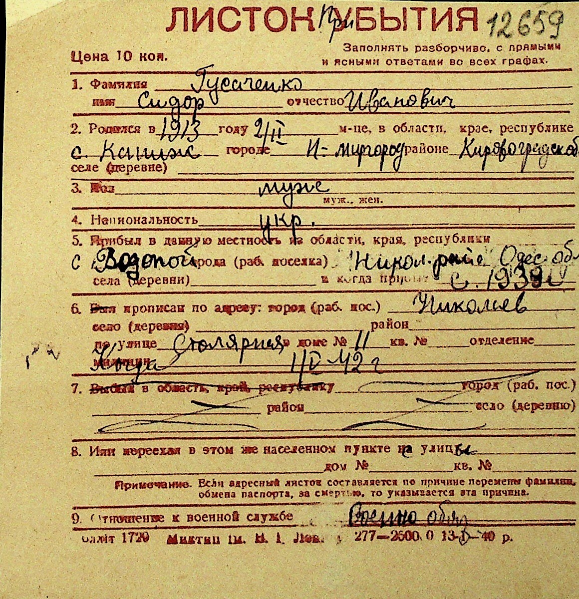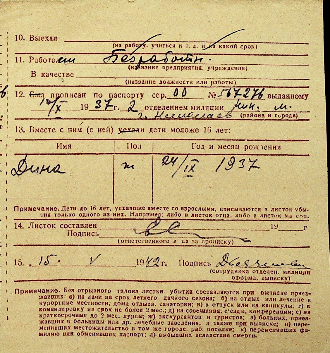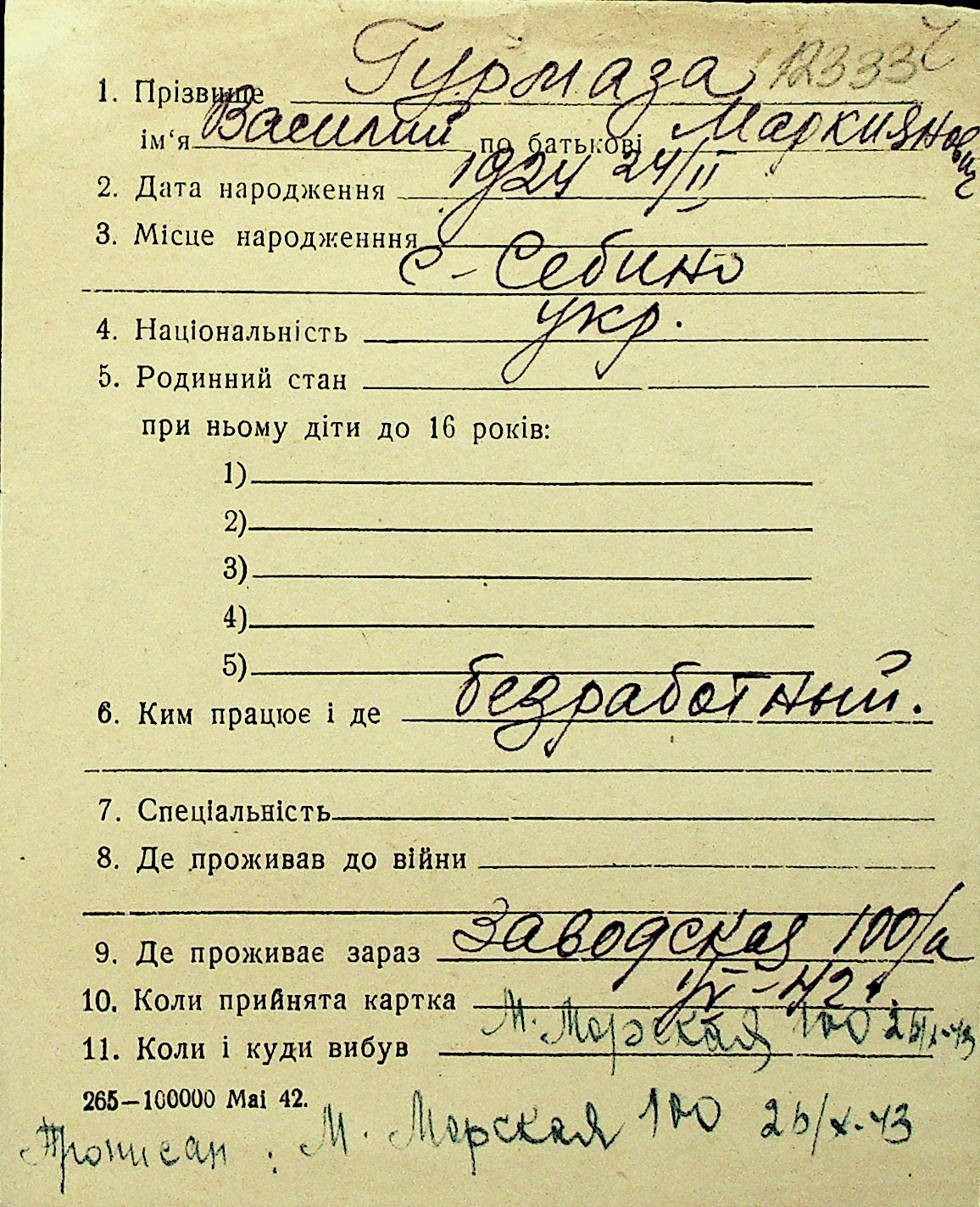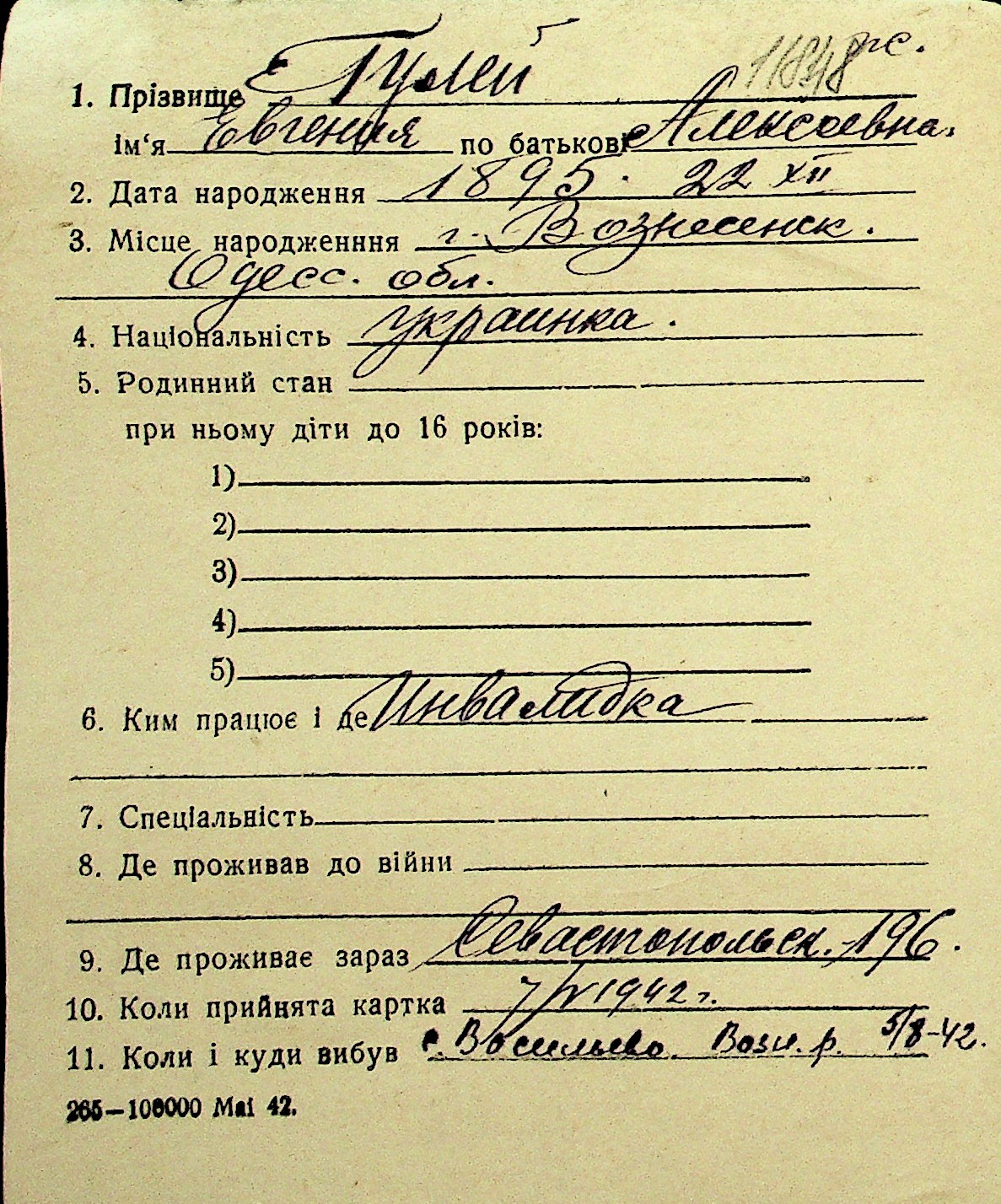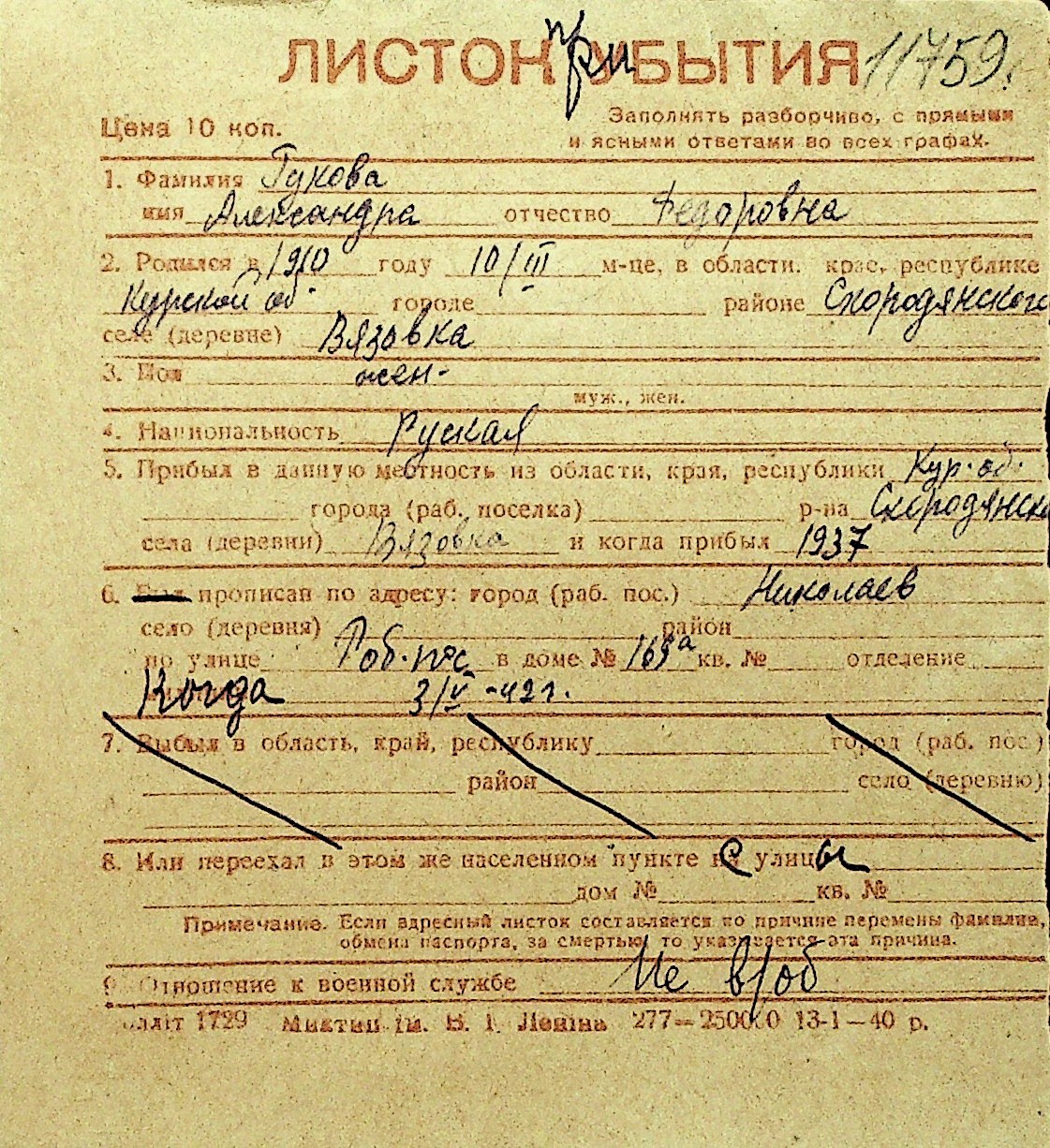 • • Перелік карток до фонду № Н-1016