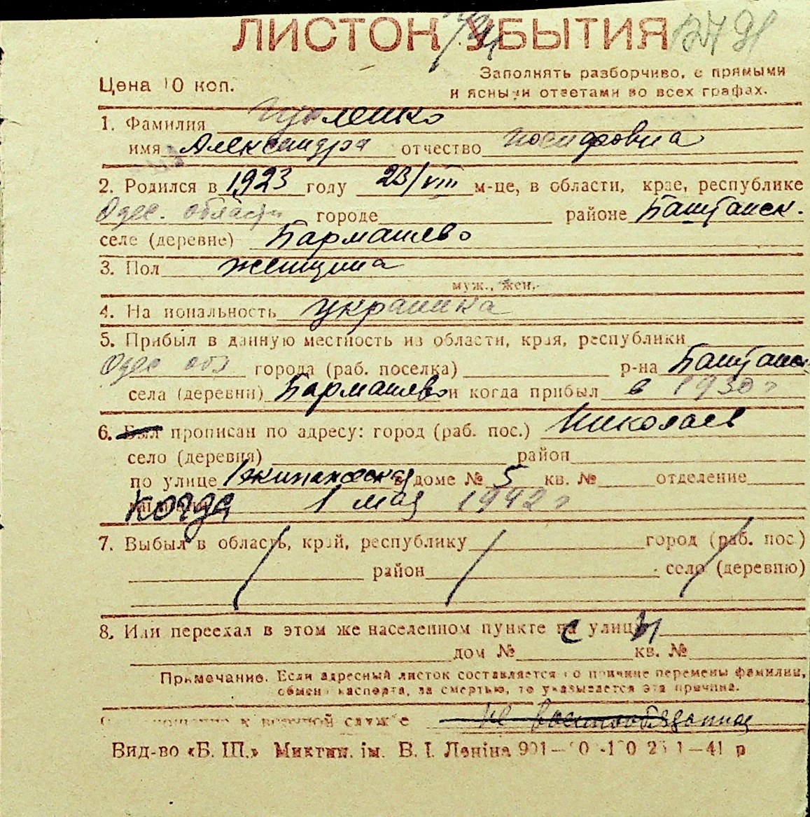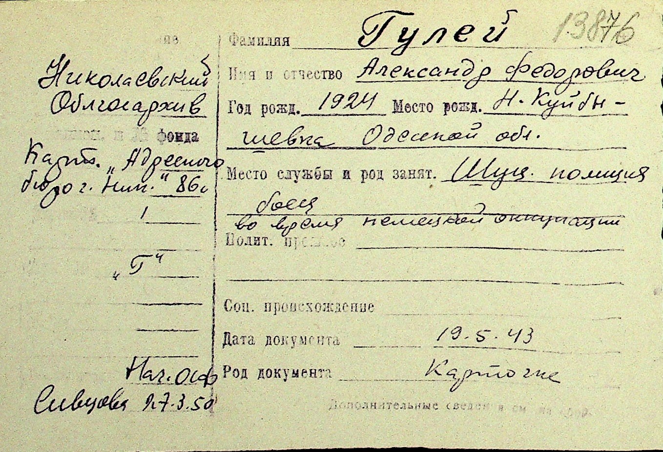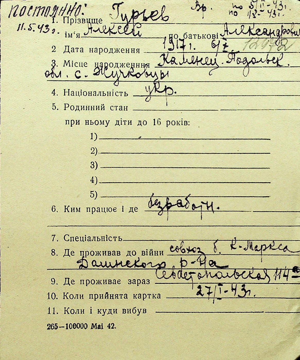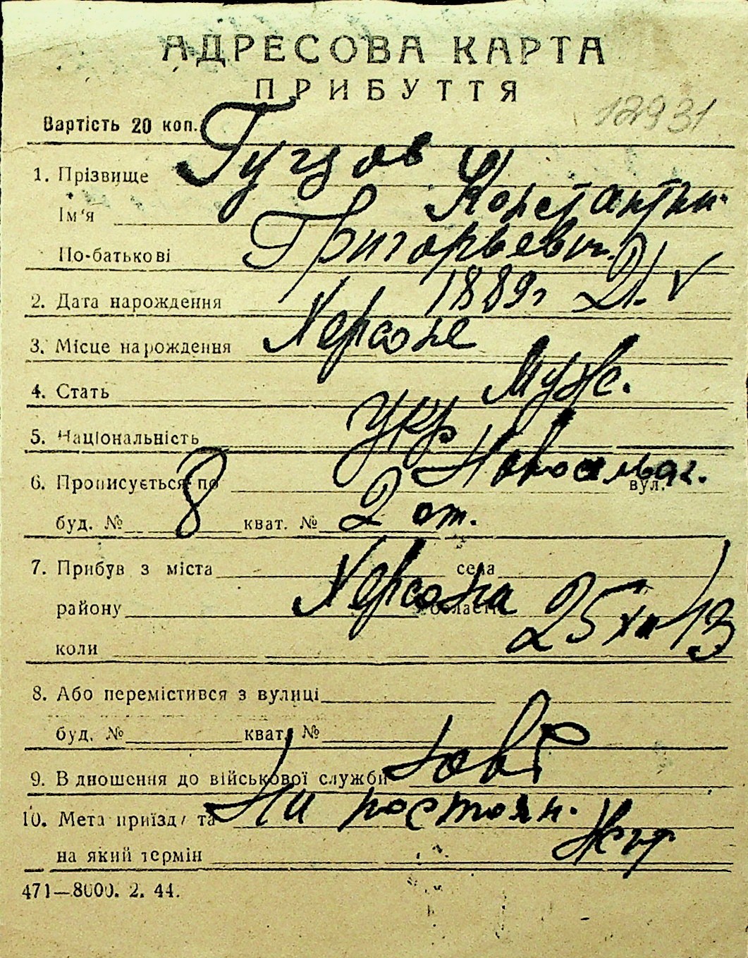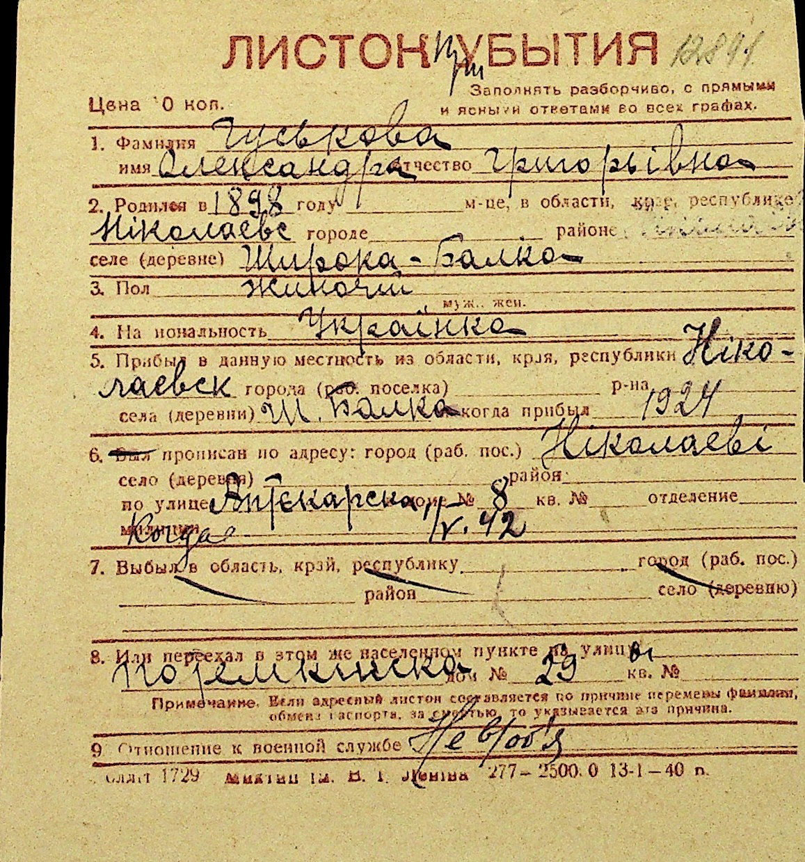• • Перелік карток до фонду № Н-1016
