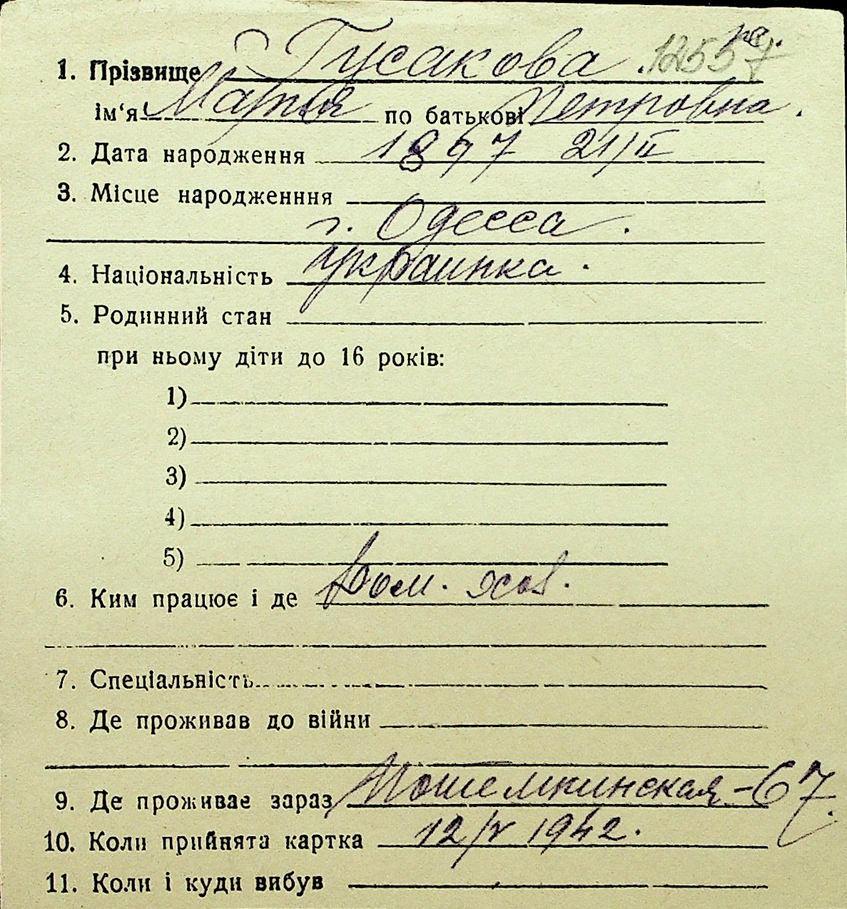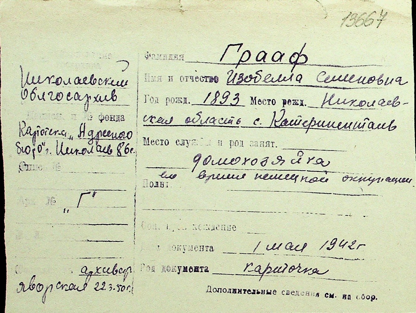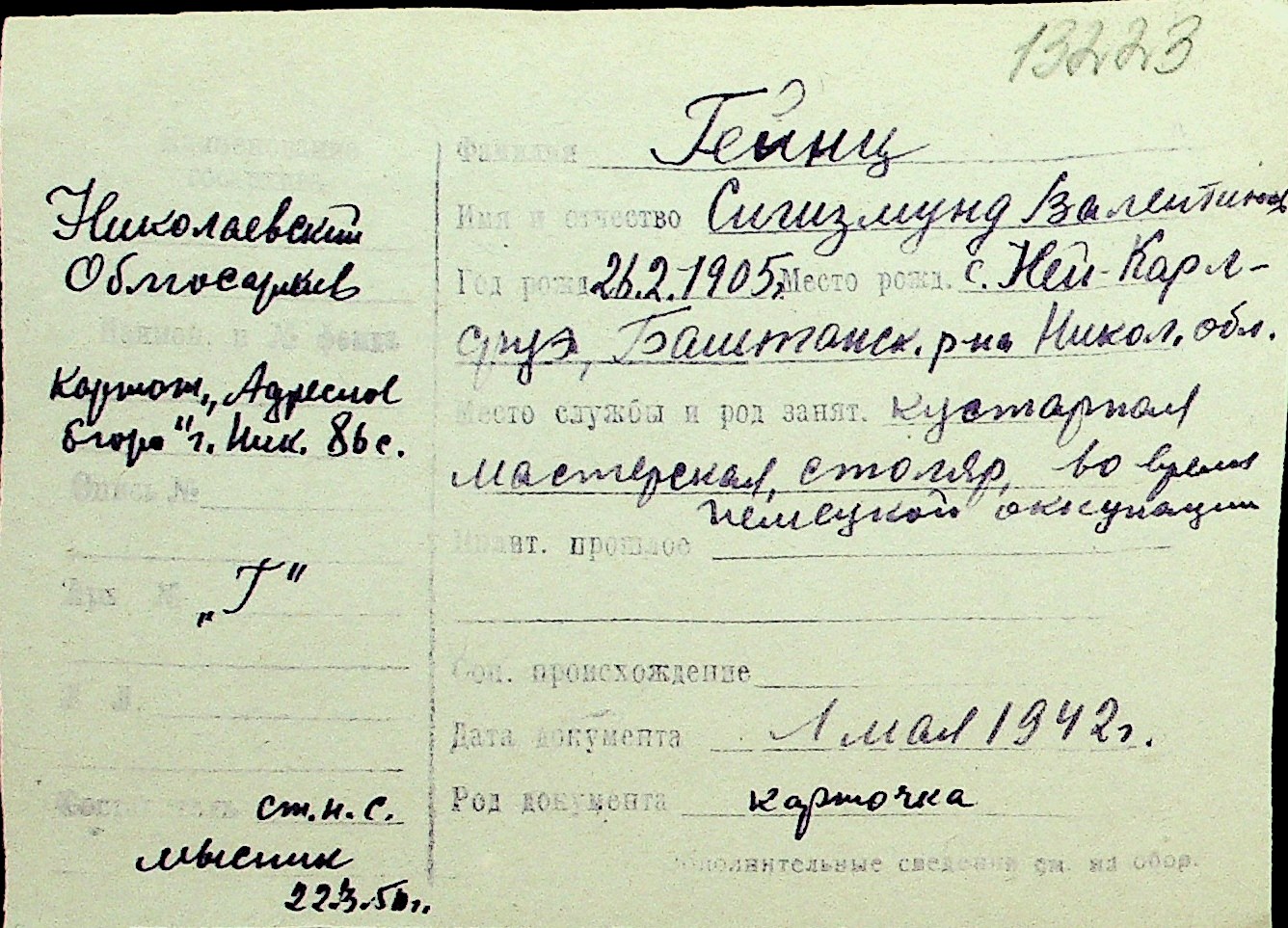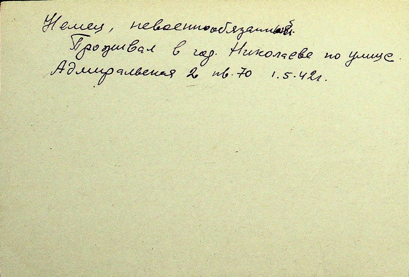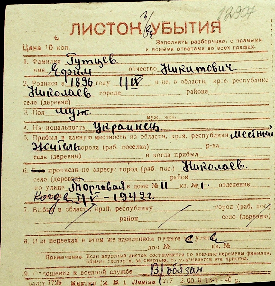 • • Перелік карток до фонду № Н-1016
