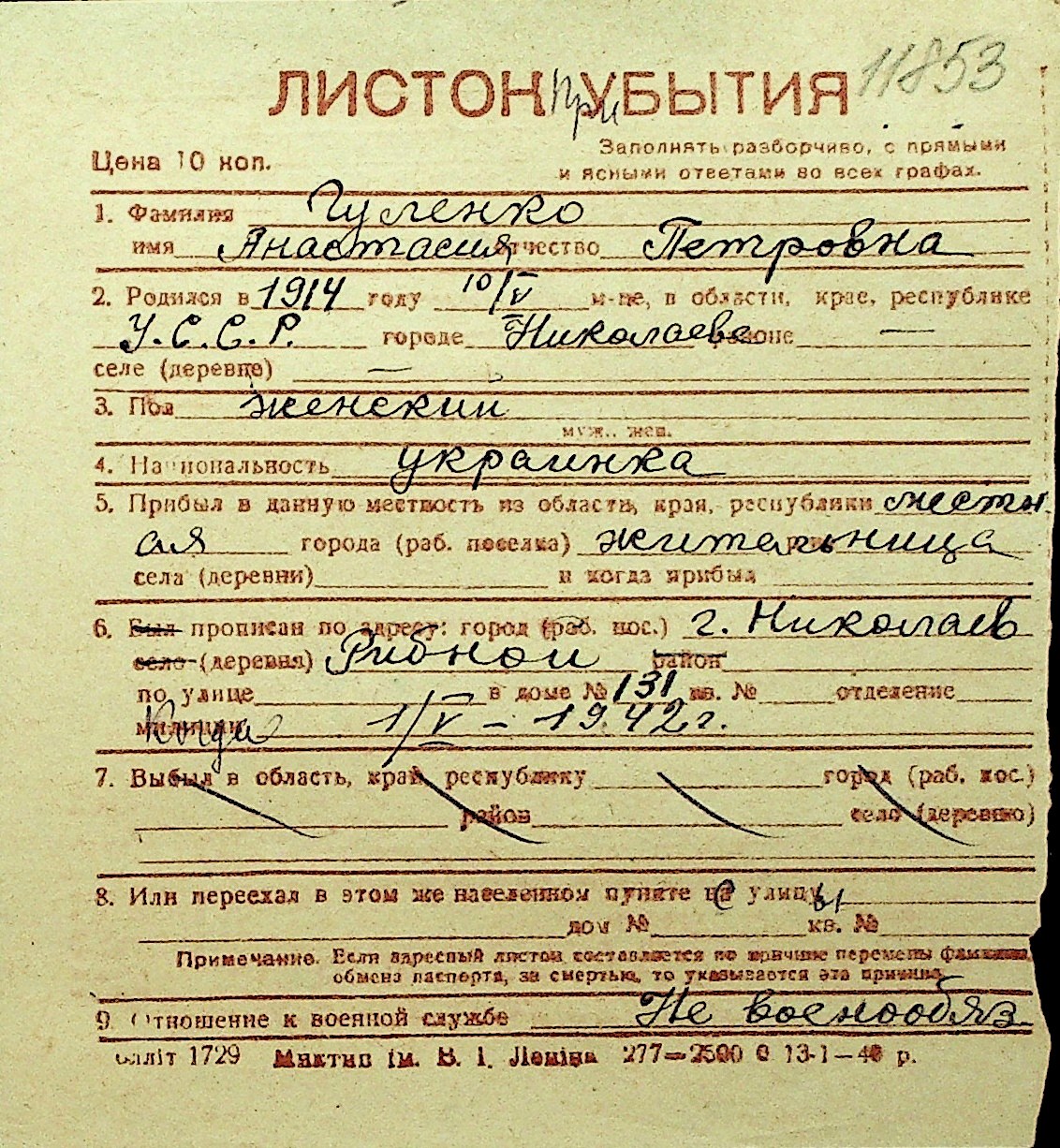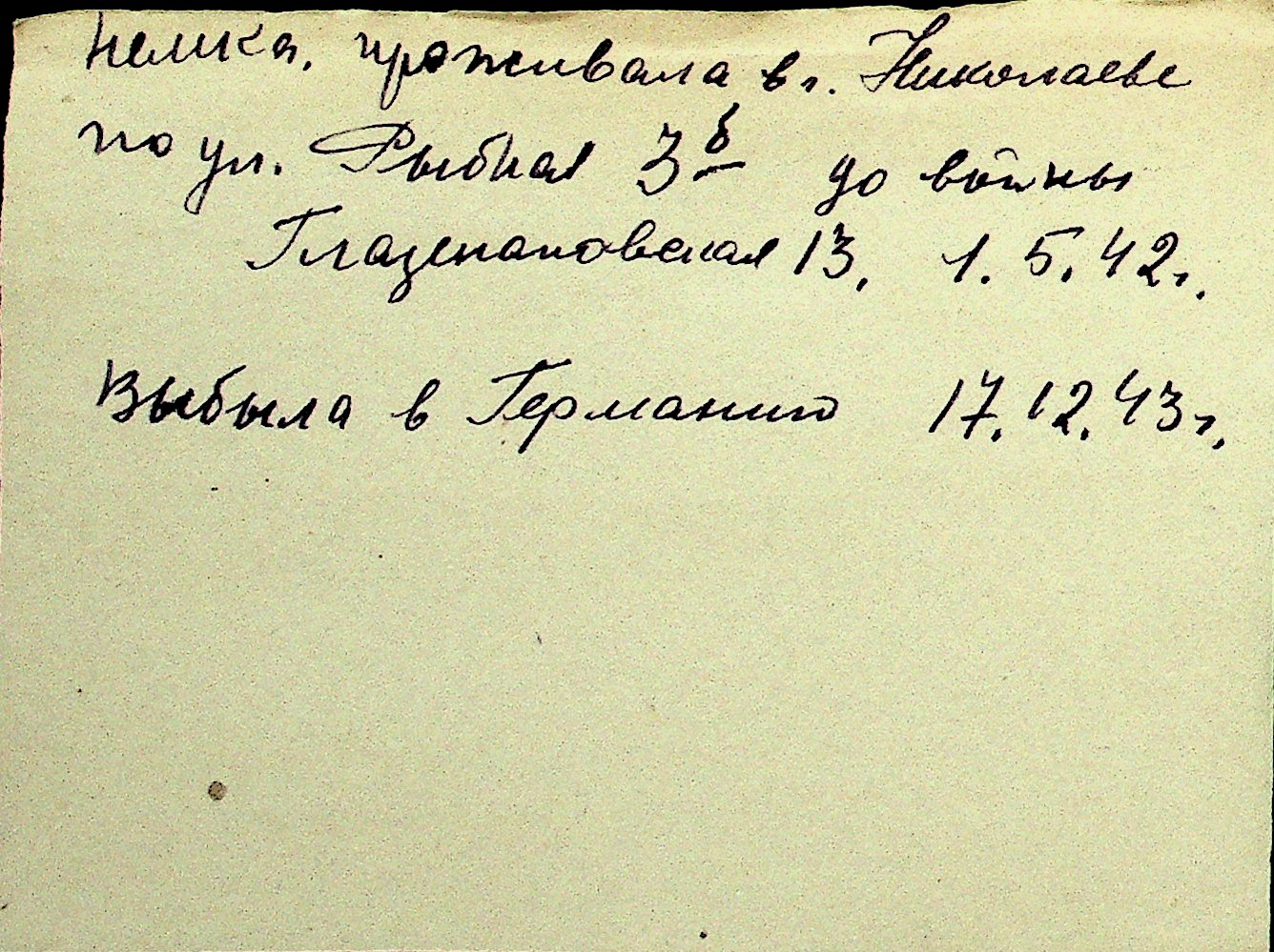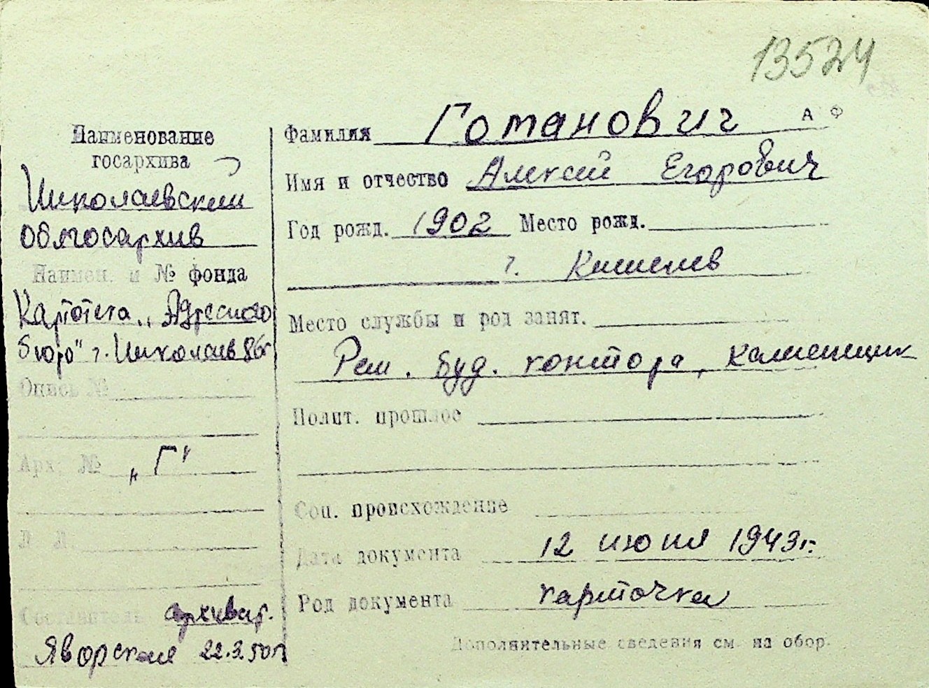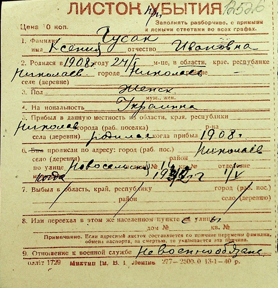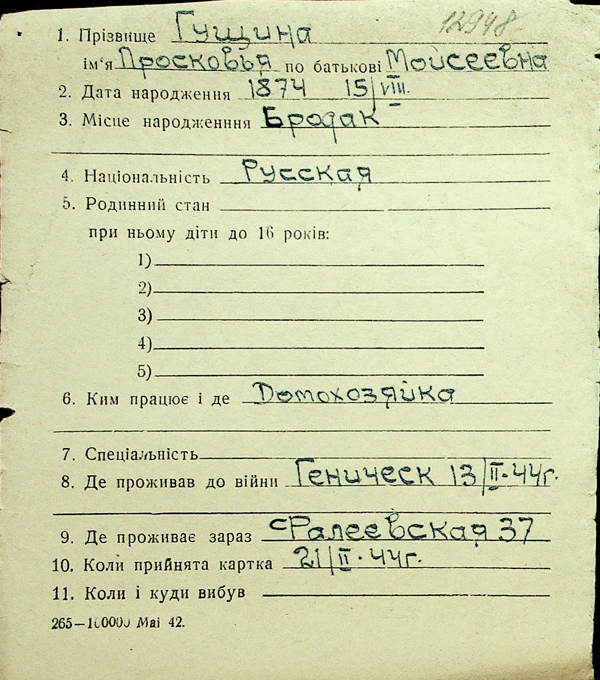 • • Перелік карток до фонду № Н-1016