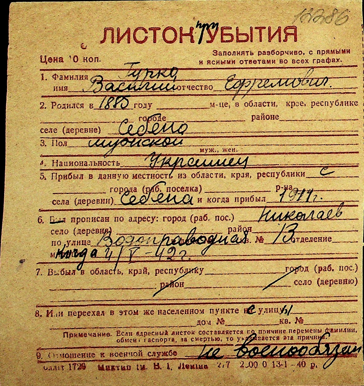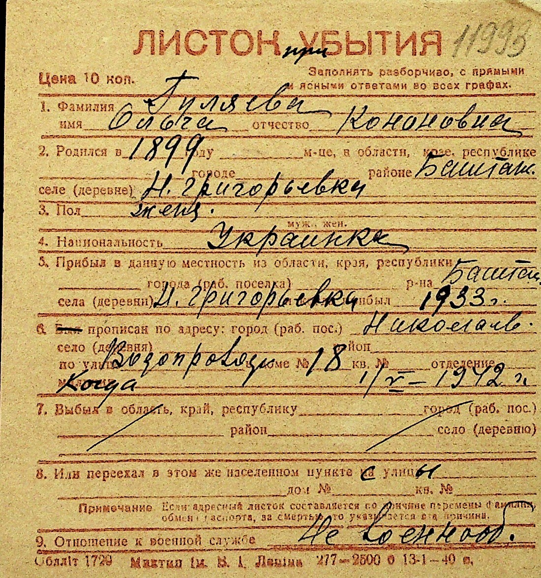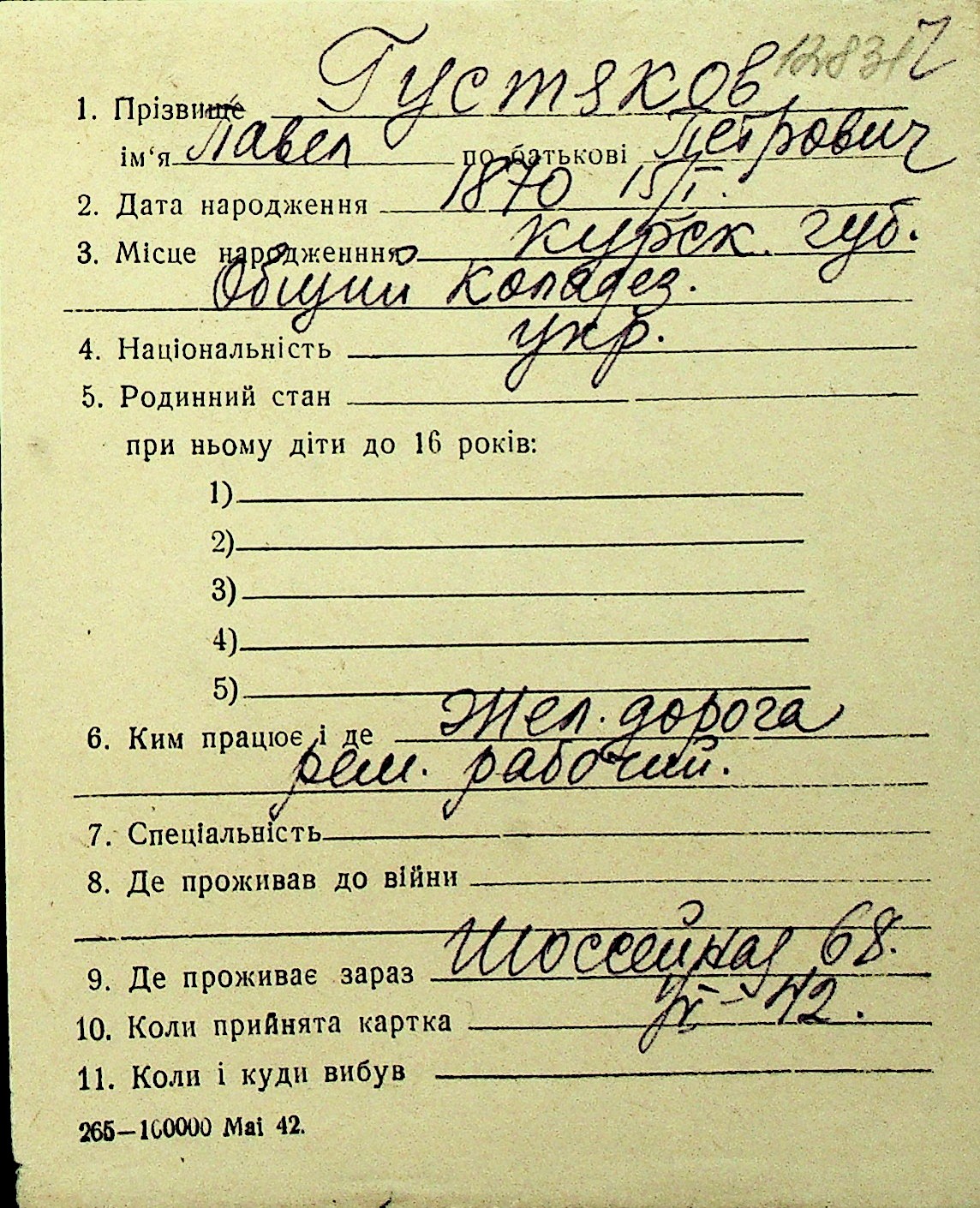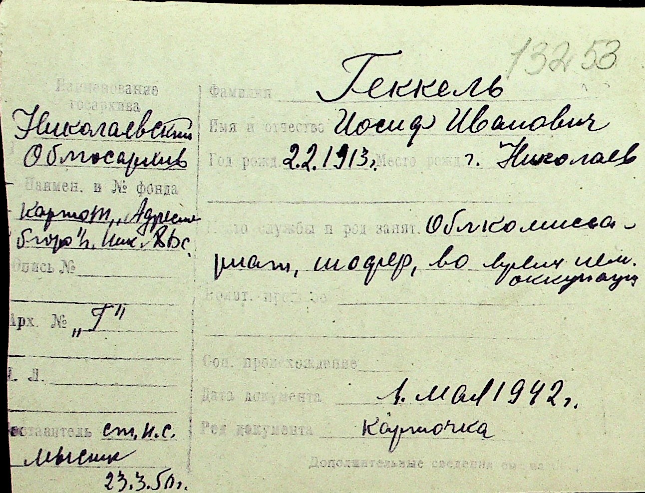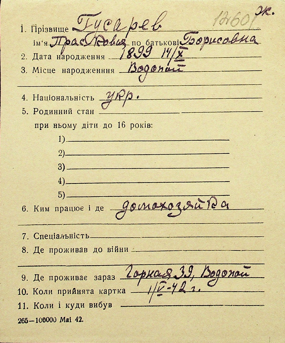 • • Перелік карток до фонду № Н-1016