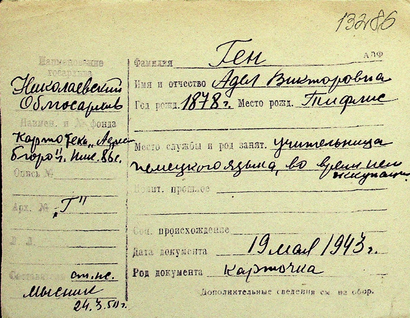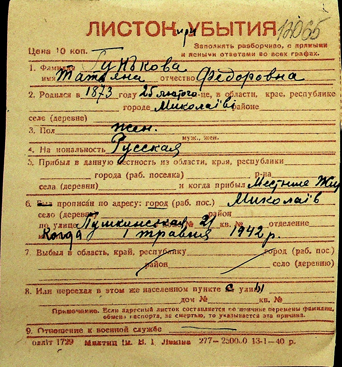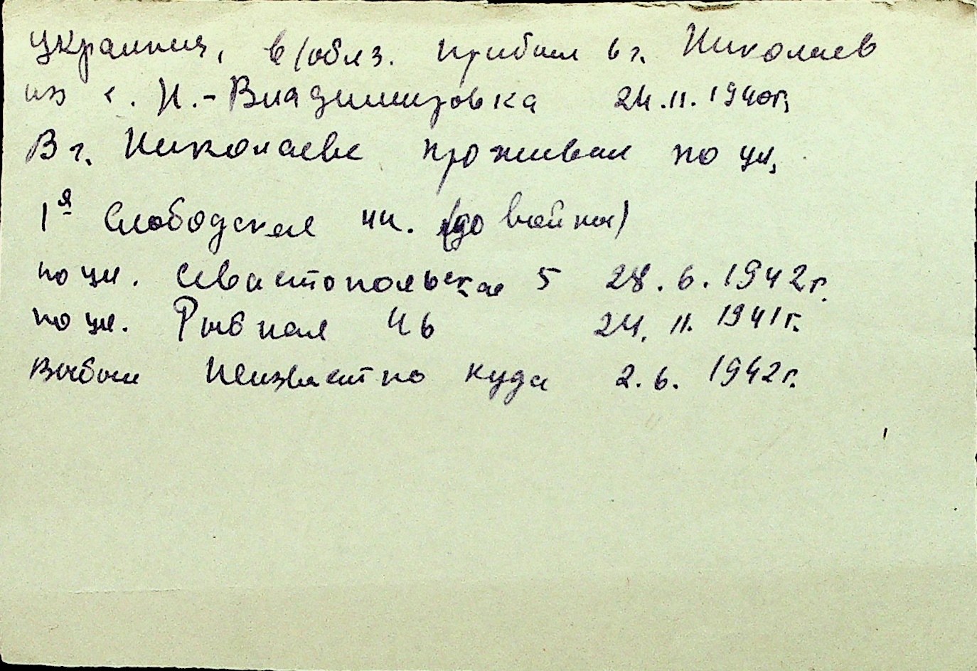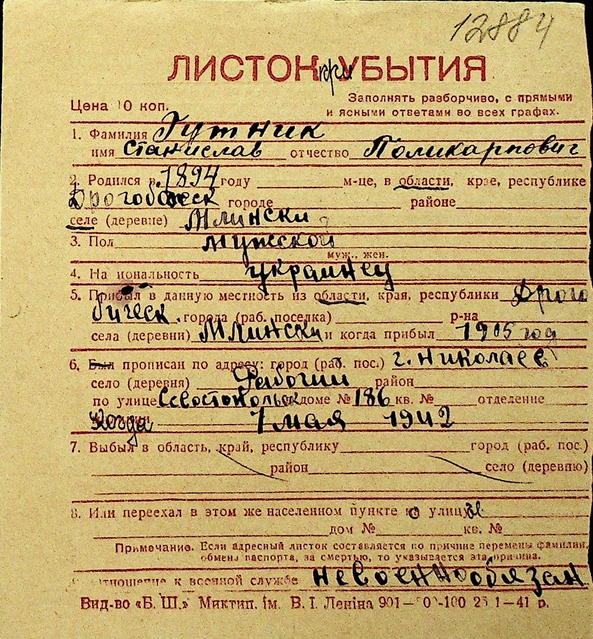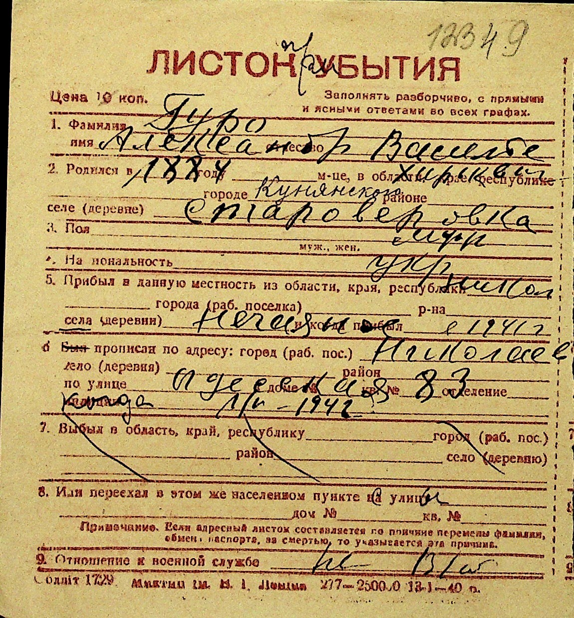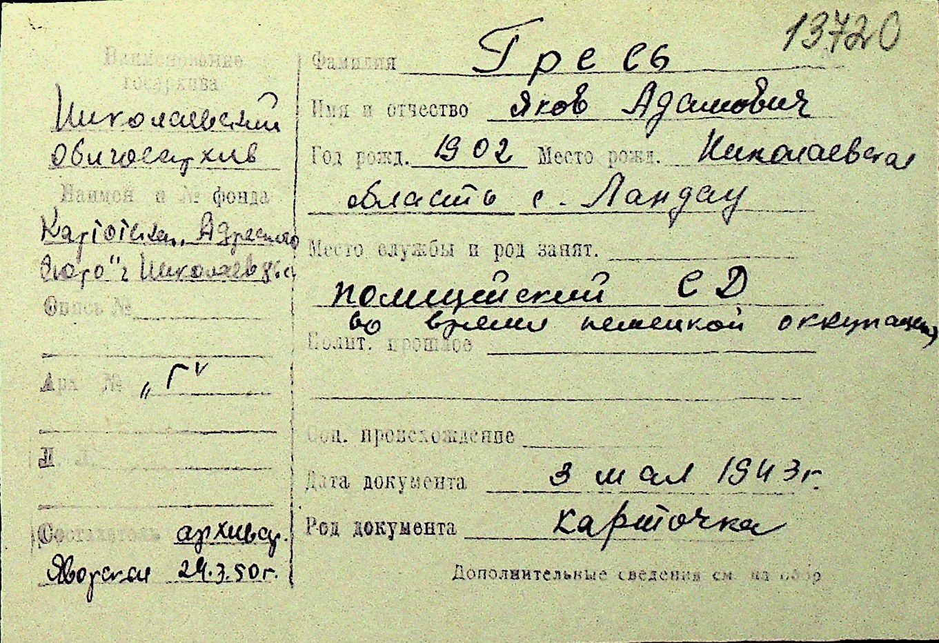 • • Перелік карток до фонду № Н-1016