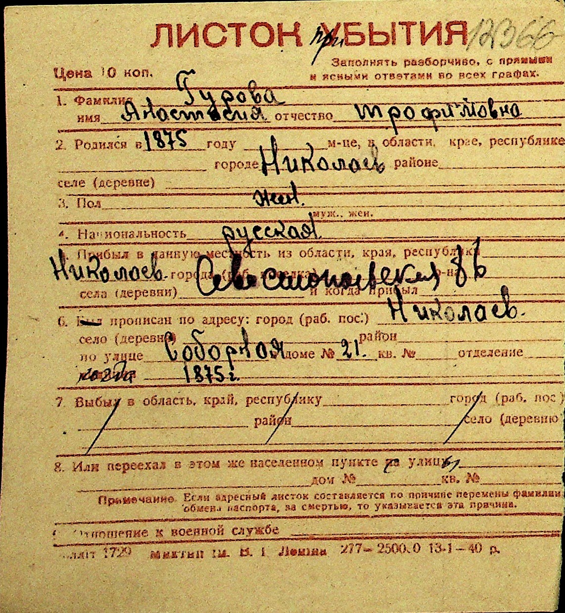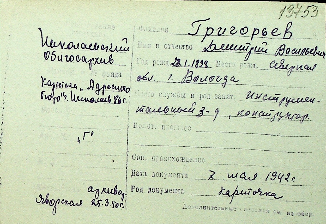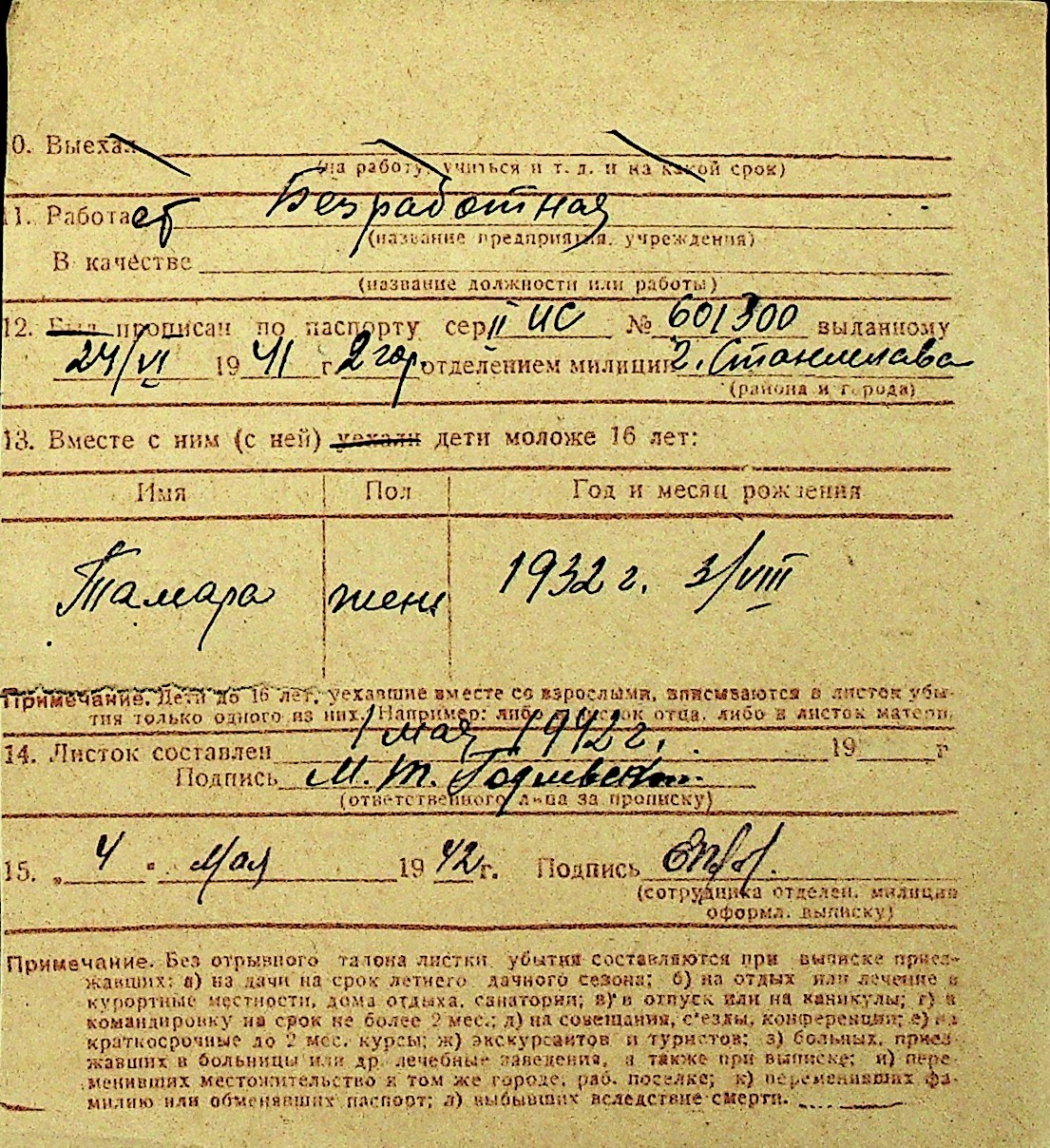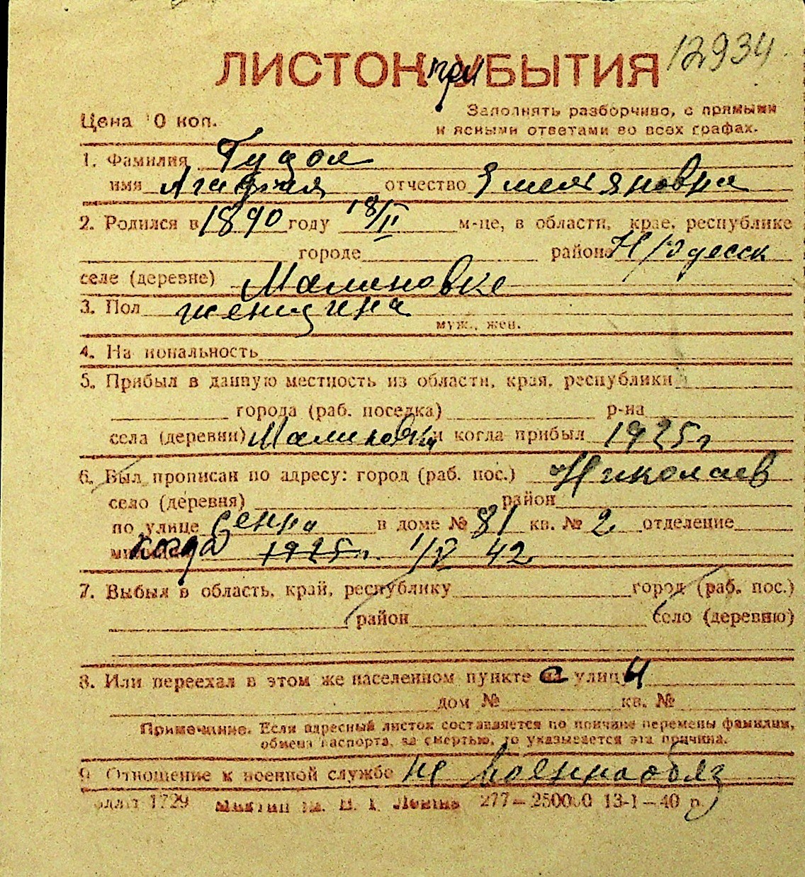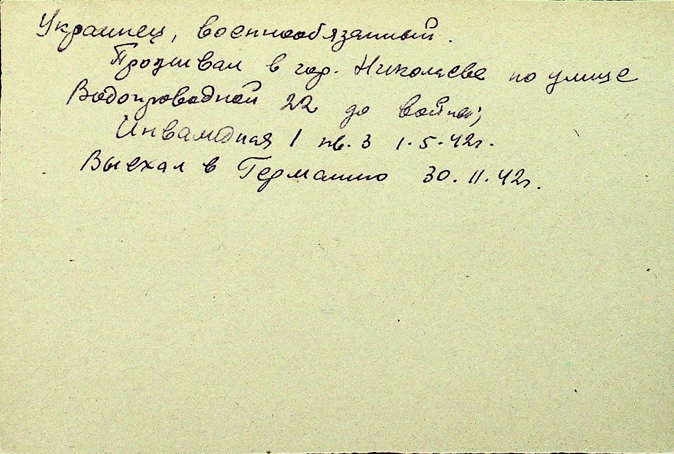 • • Перелік карток до фонду № Н-1016