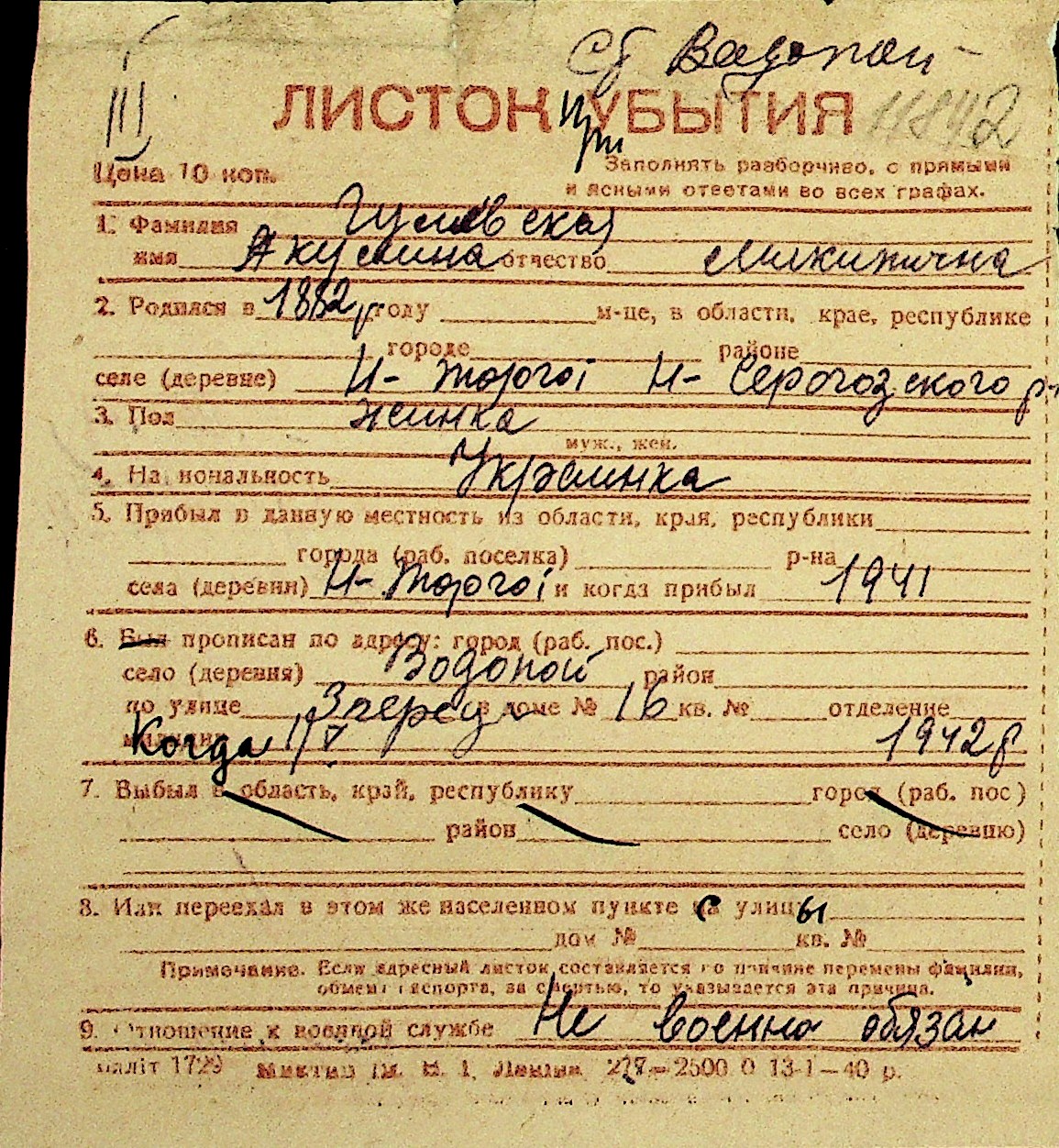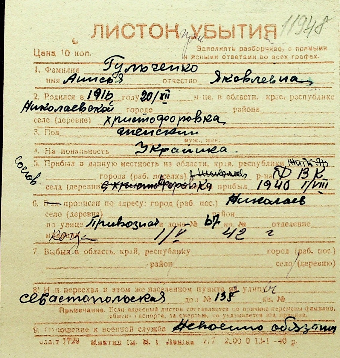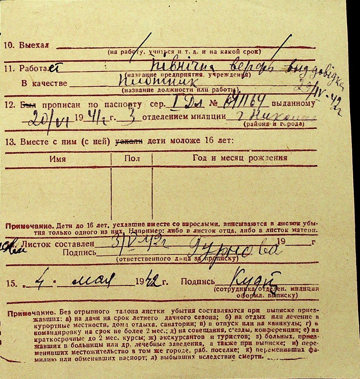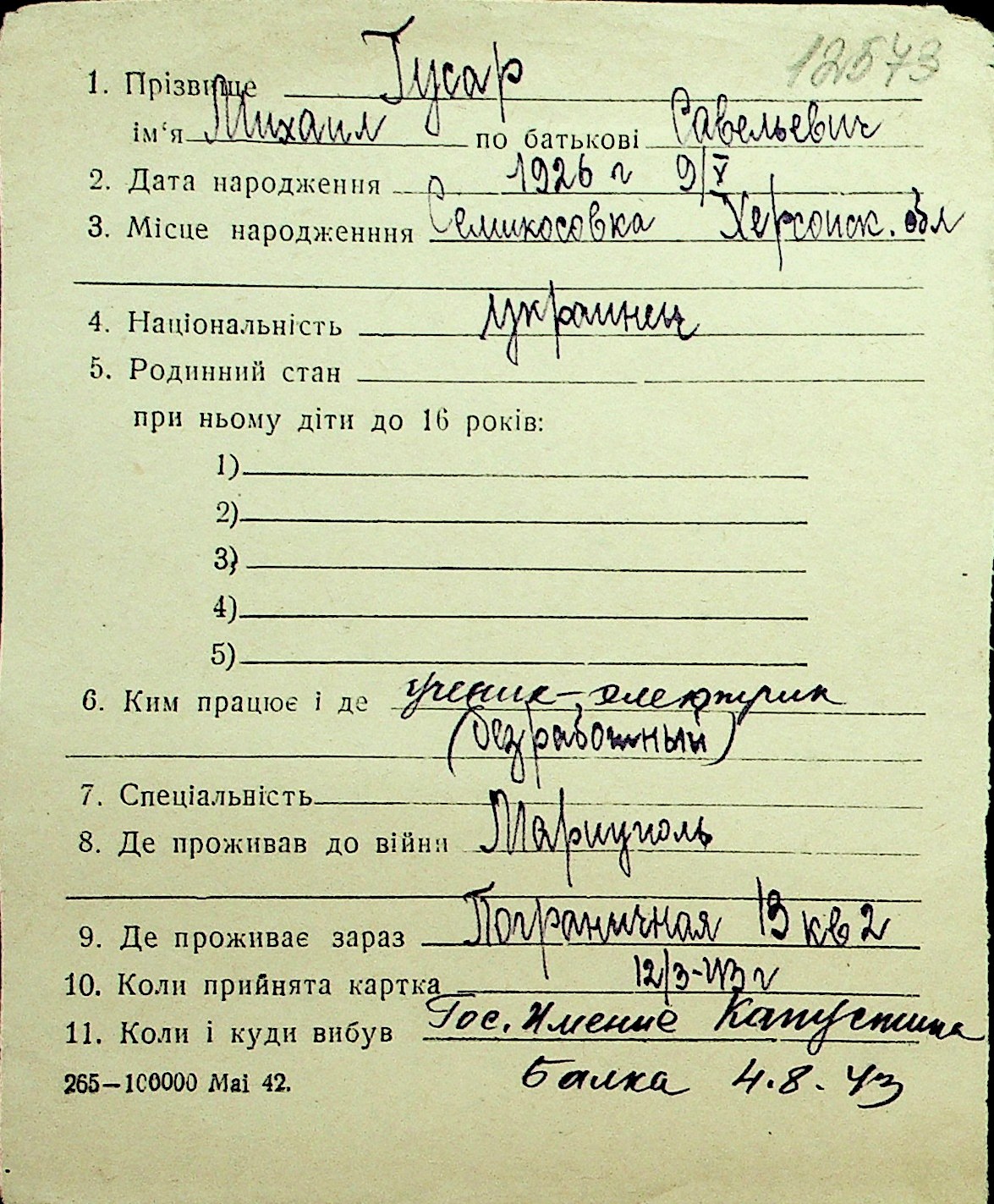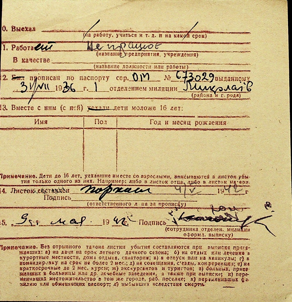 • • Перелік карток до фонду № Н-1016