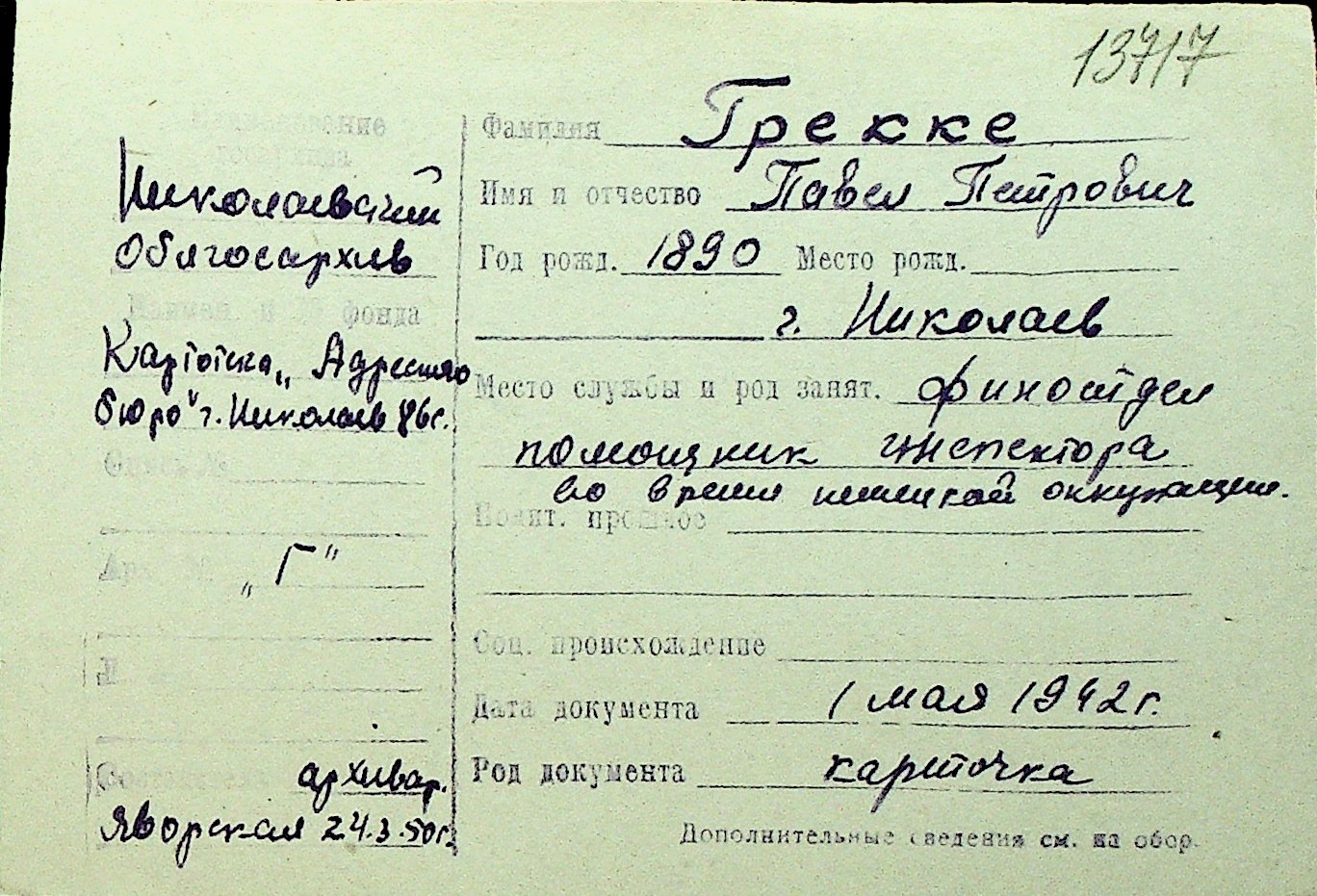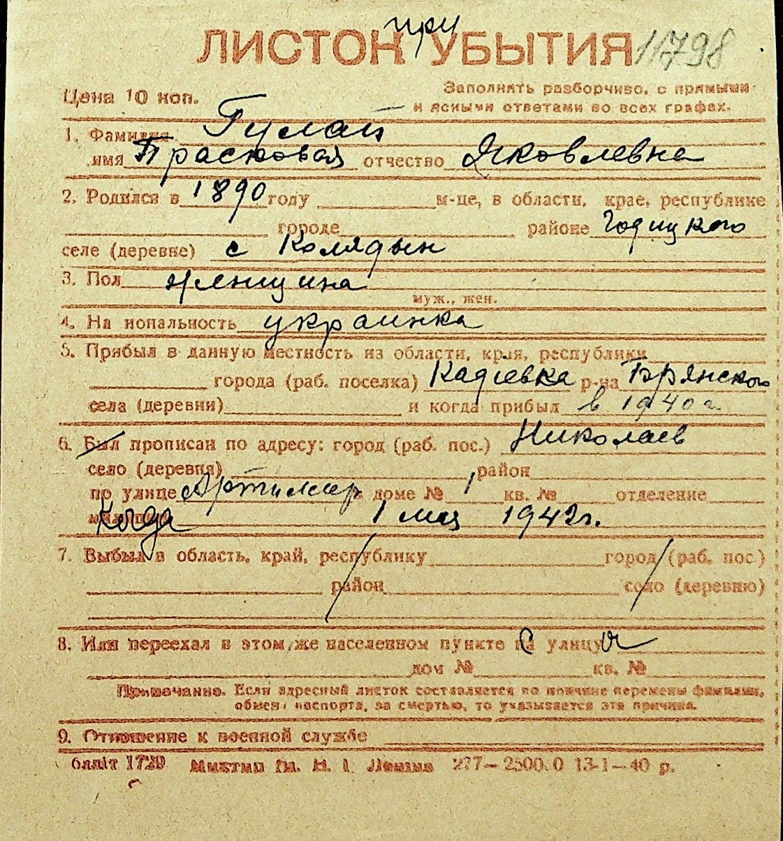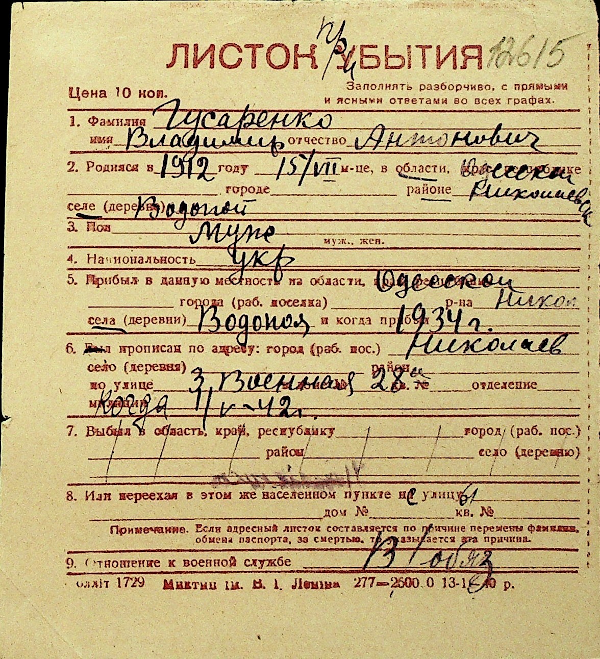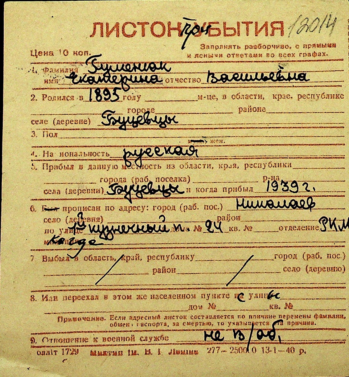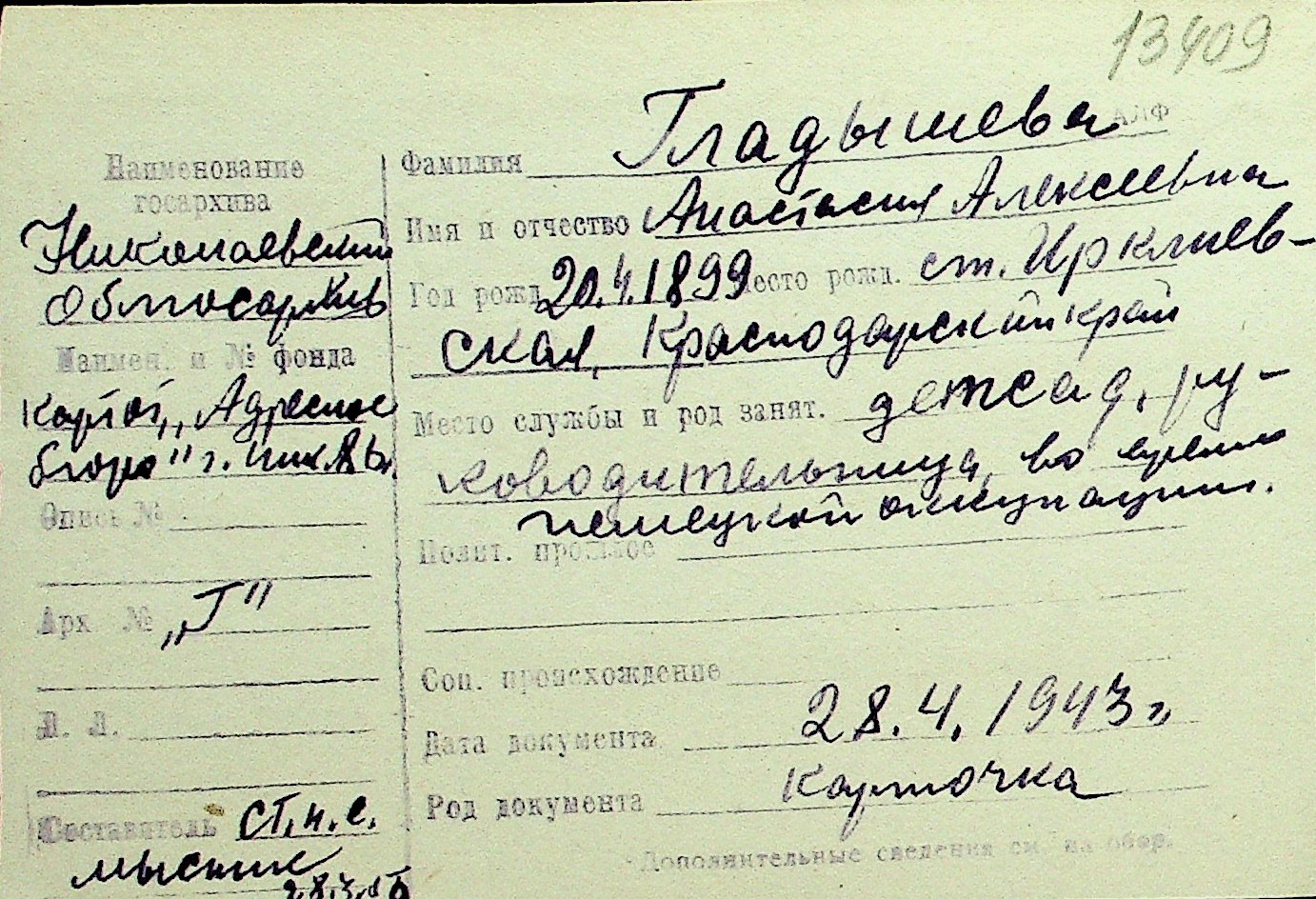• • Перелік карток до фонду № Н-1016