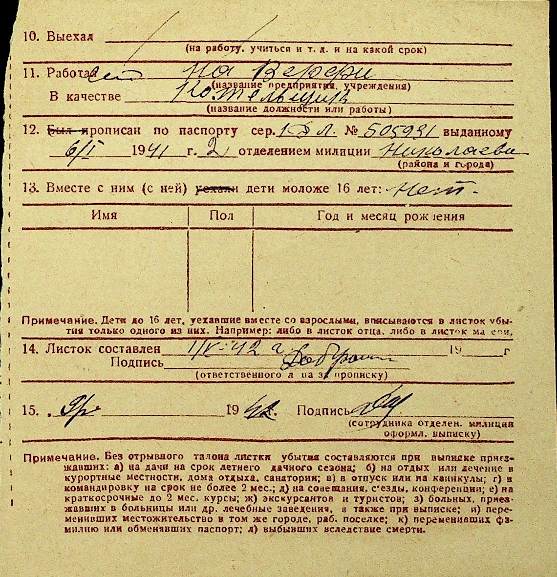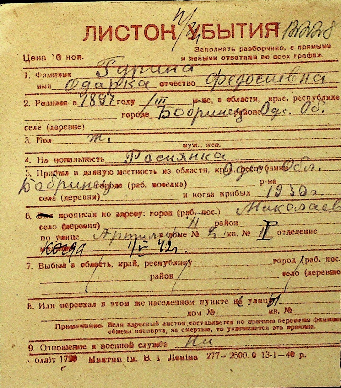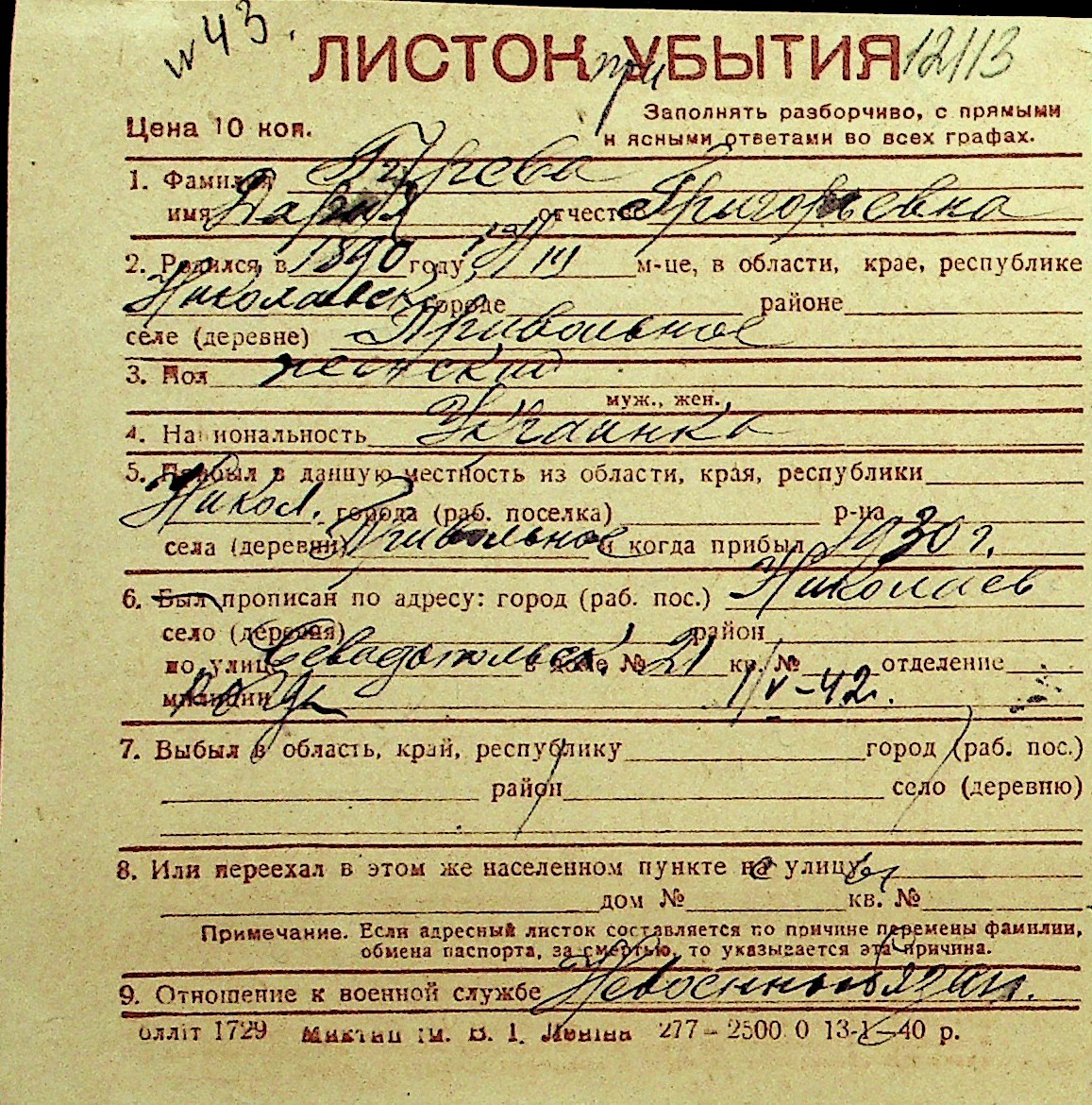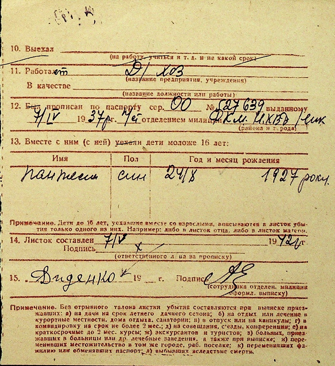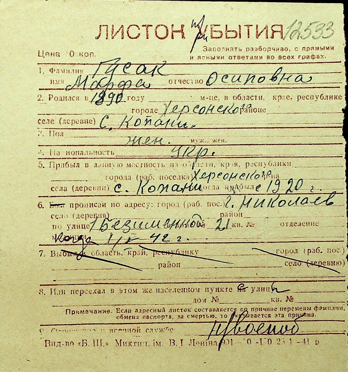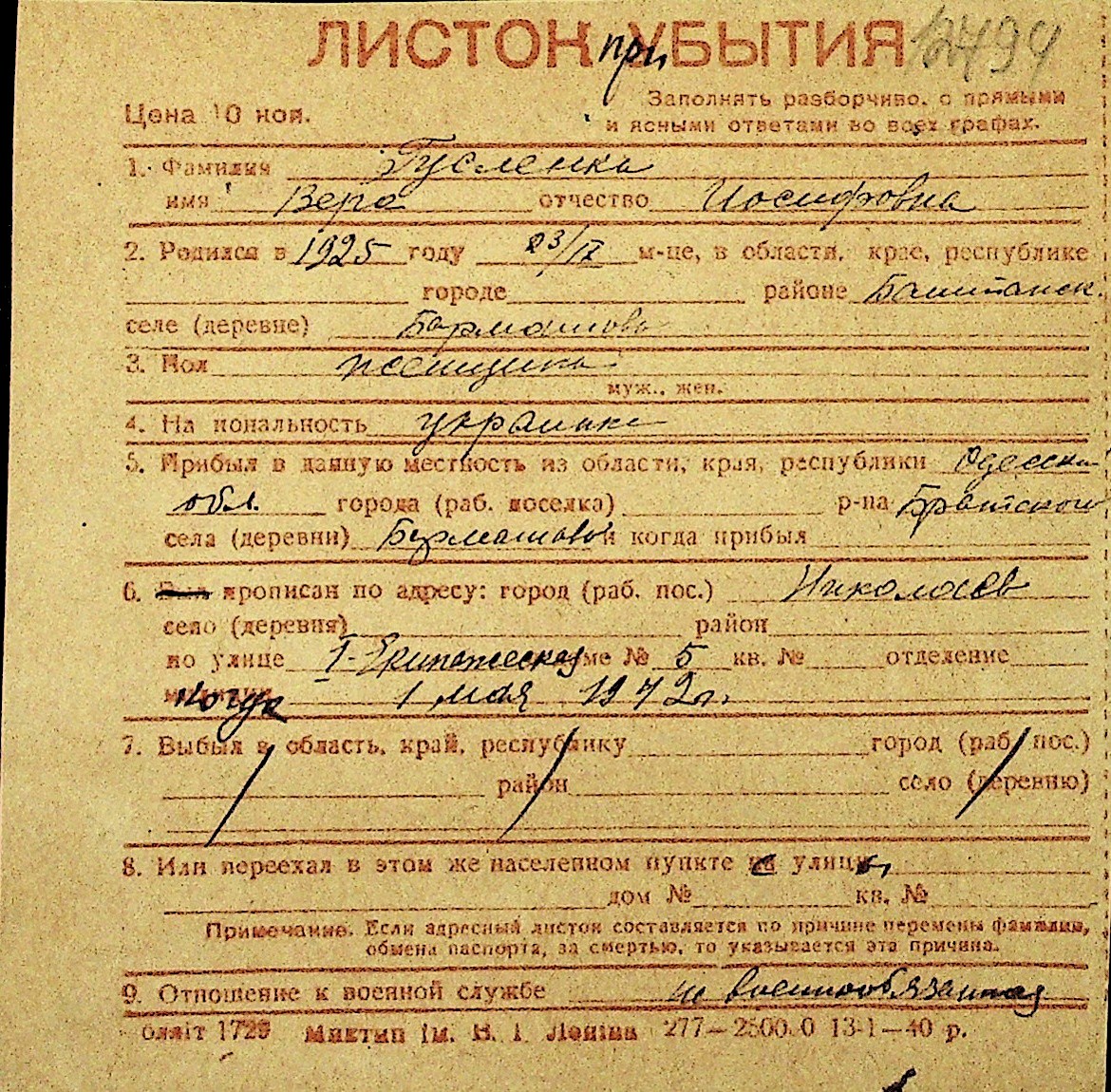 • • Перелік карток до фонду № Н-1016