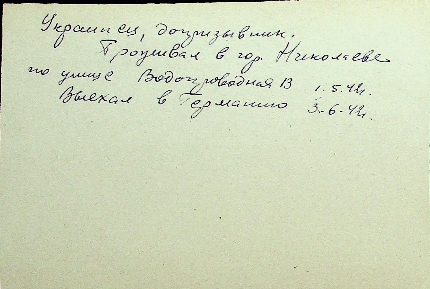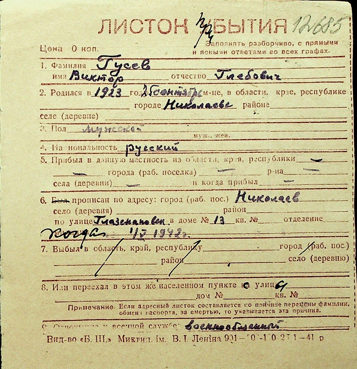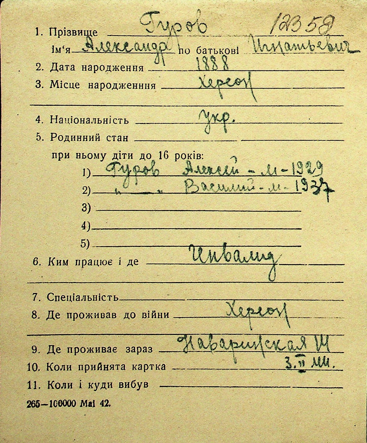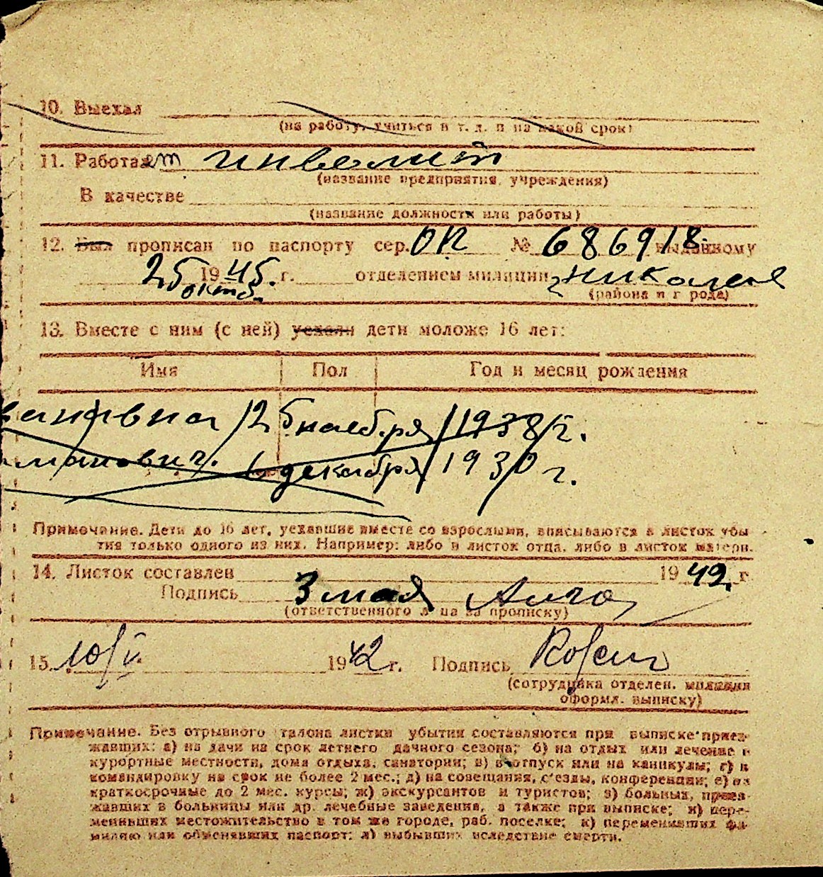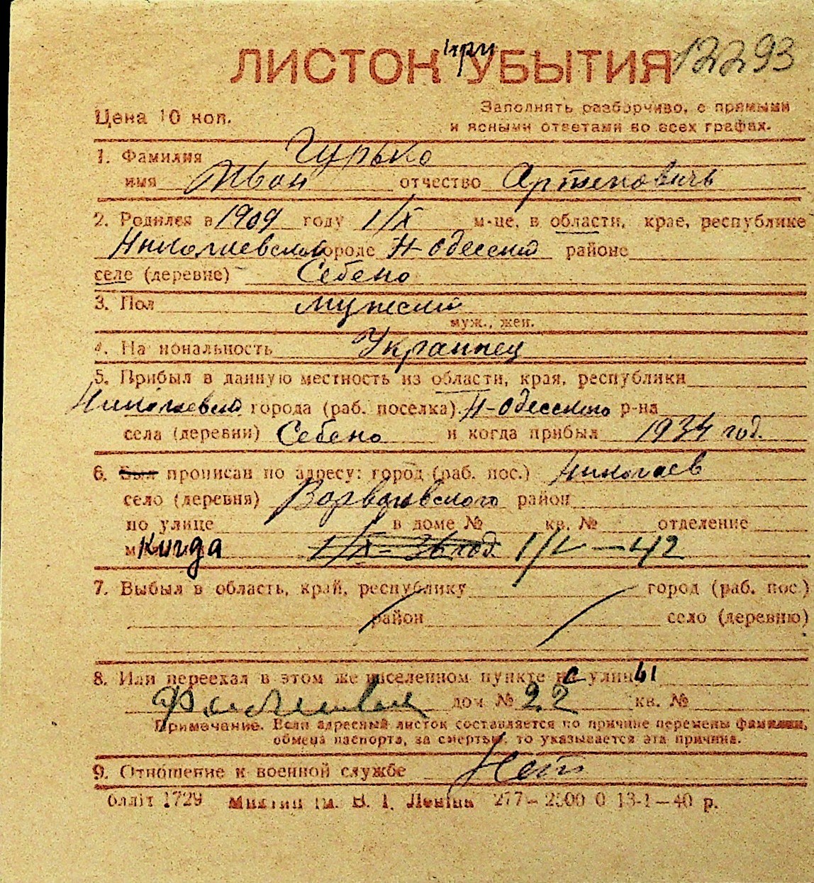 • • Перелік карток до фонду № Н-1016