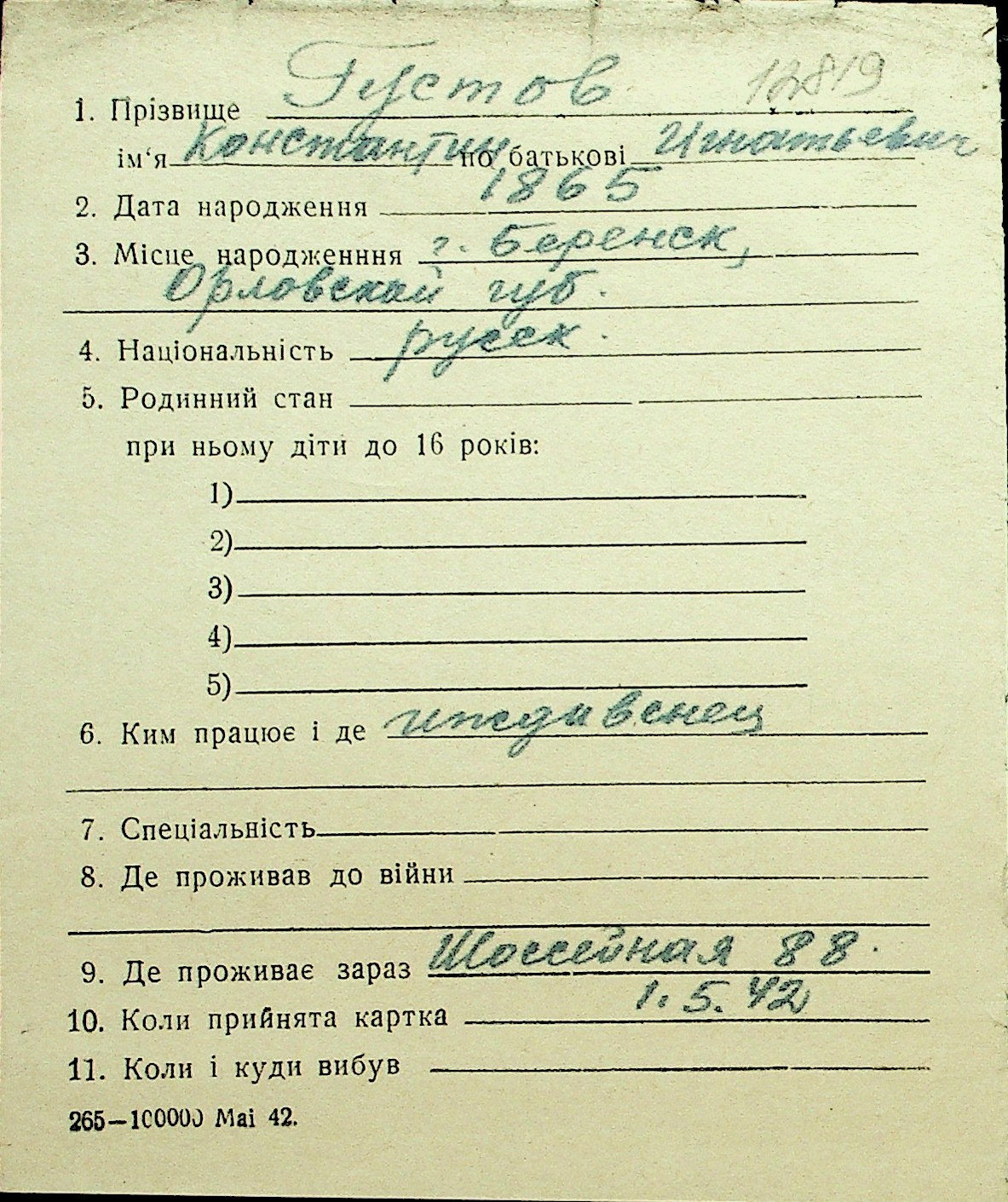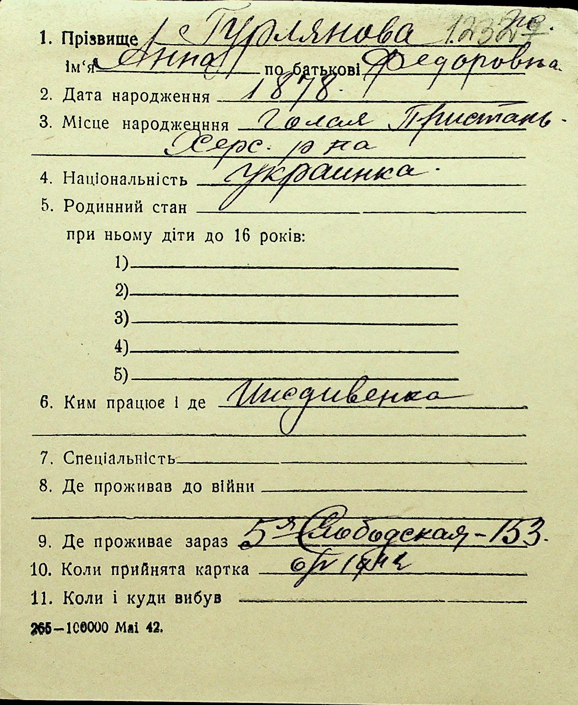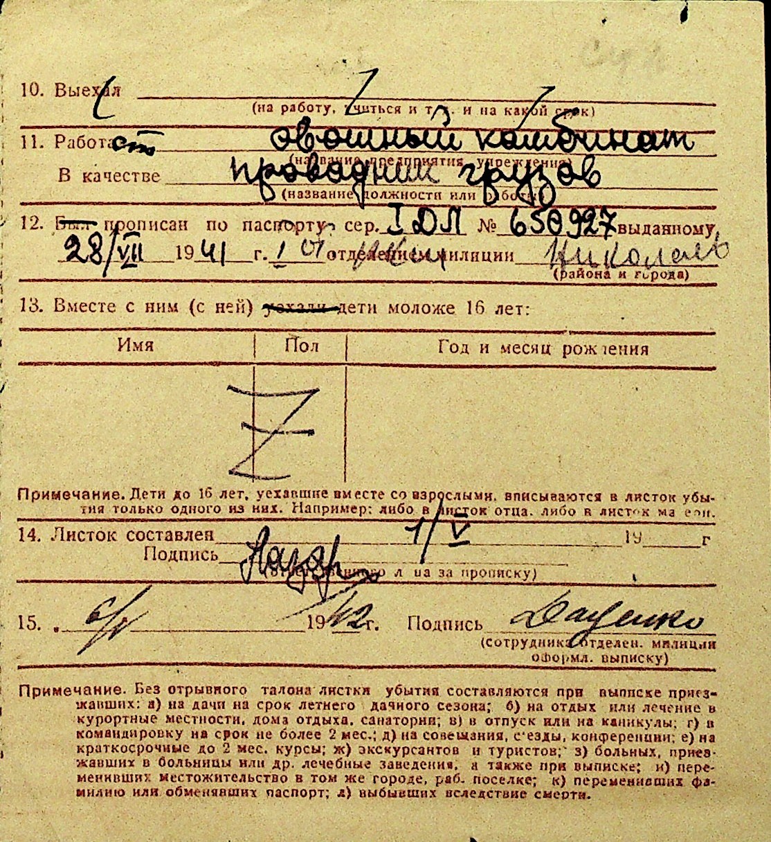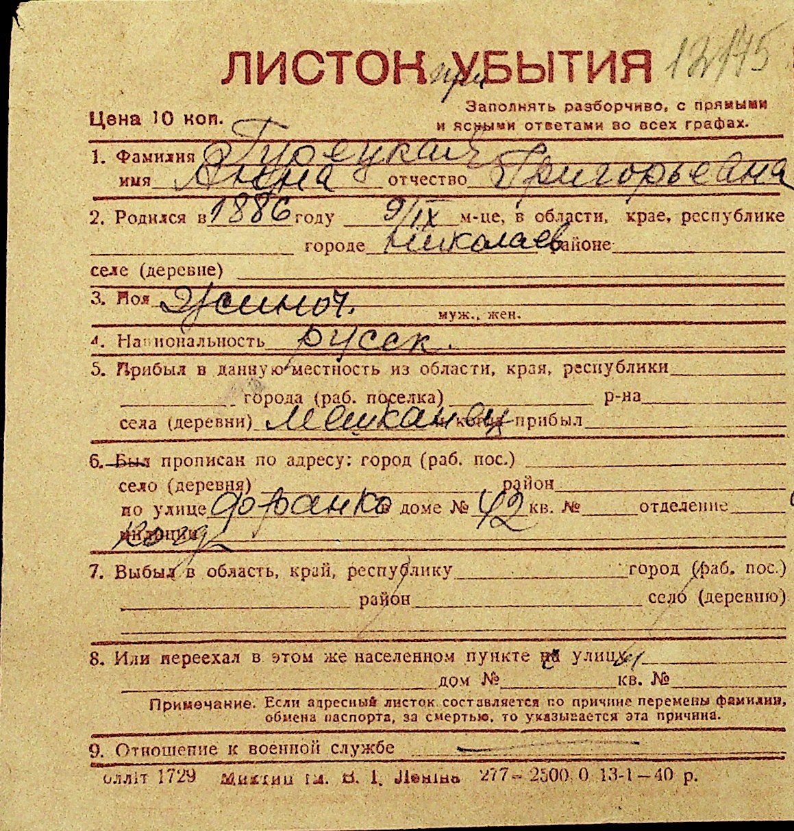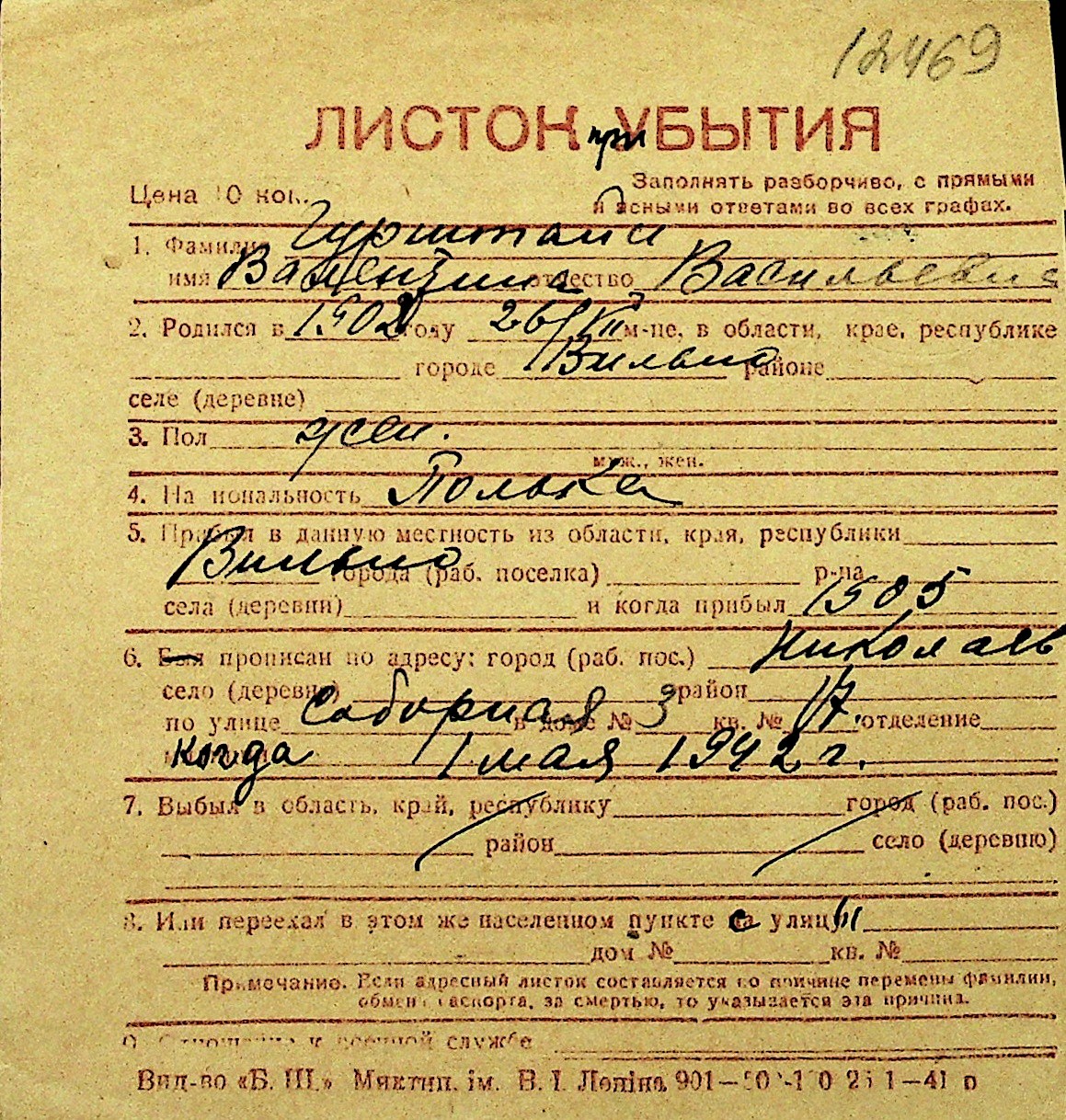 • • Перелік карток до фонду № Н-1016