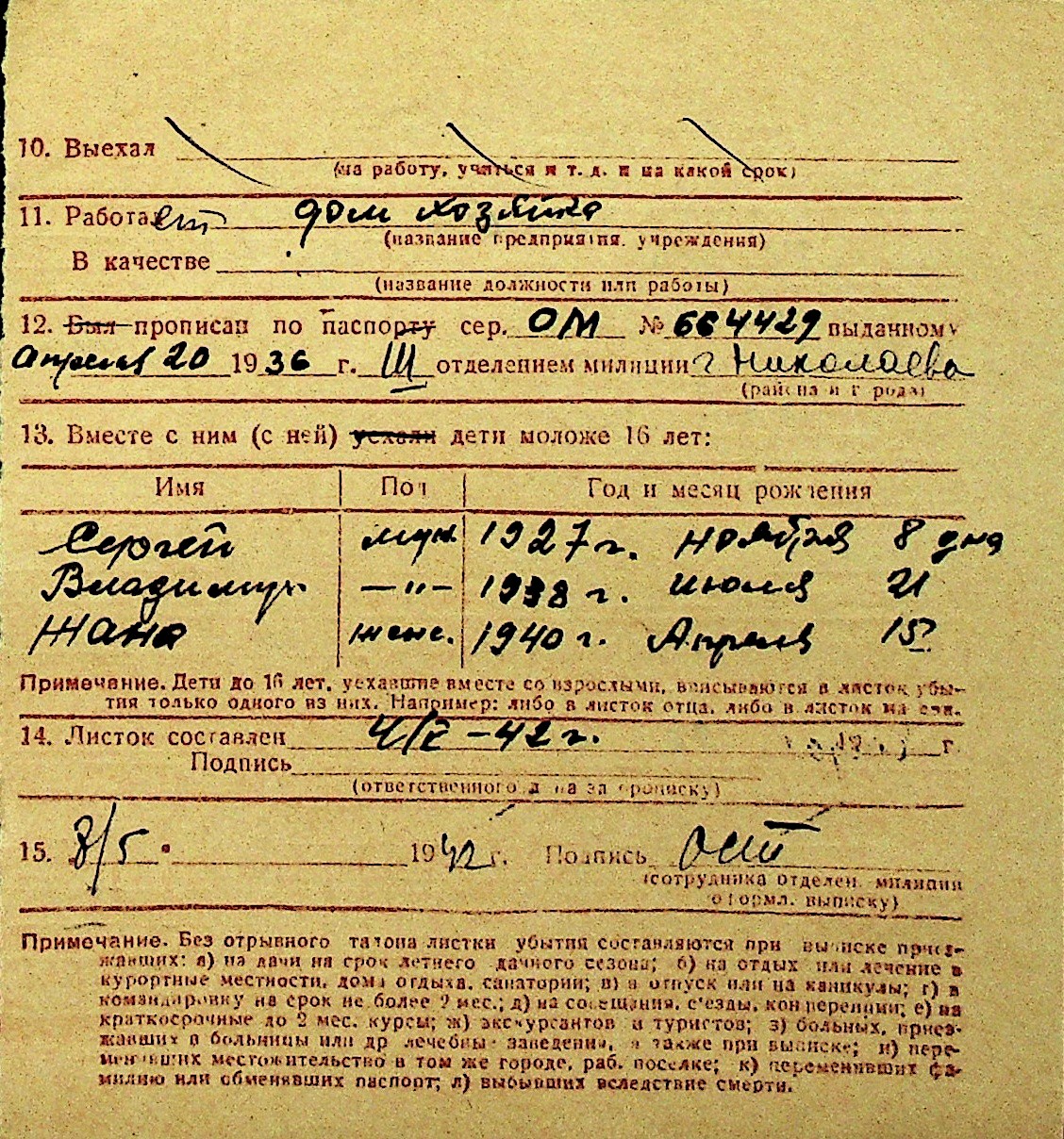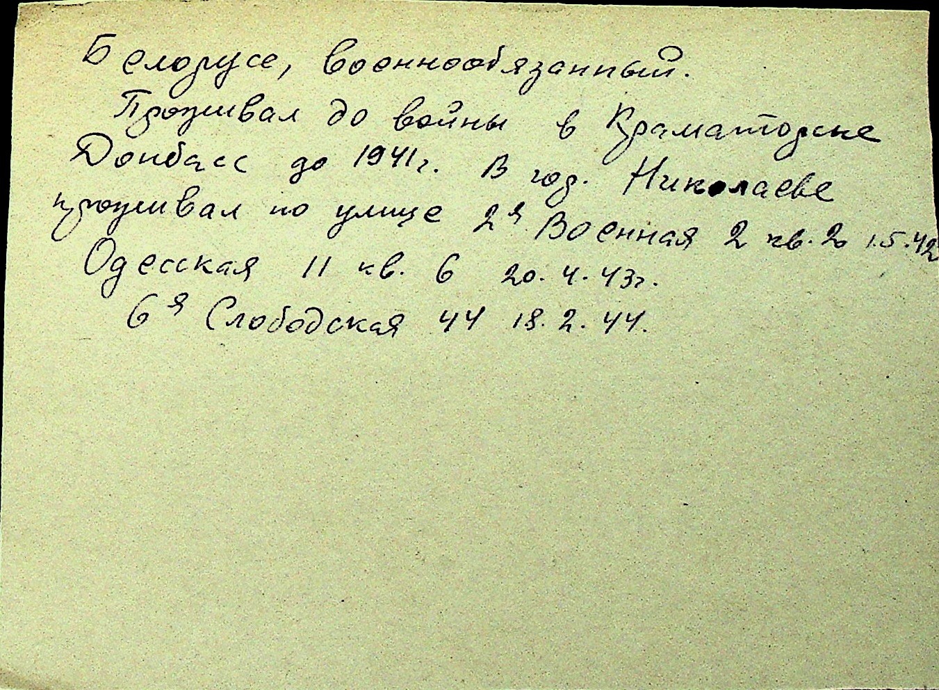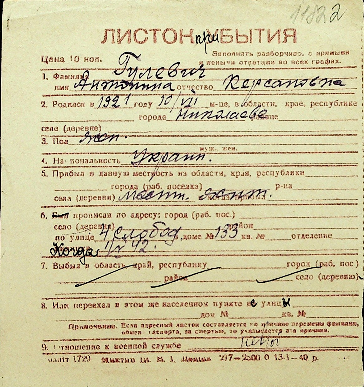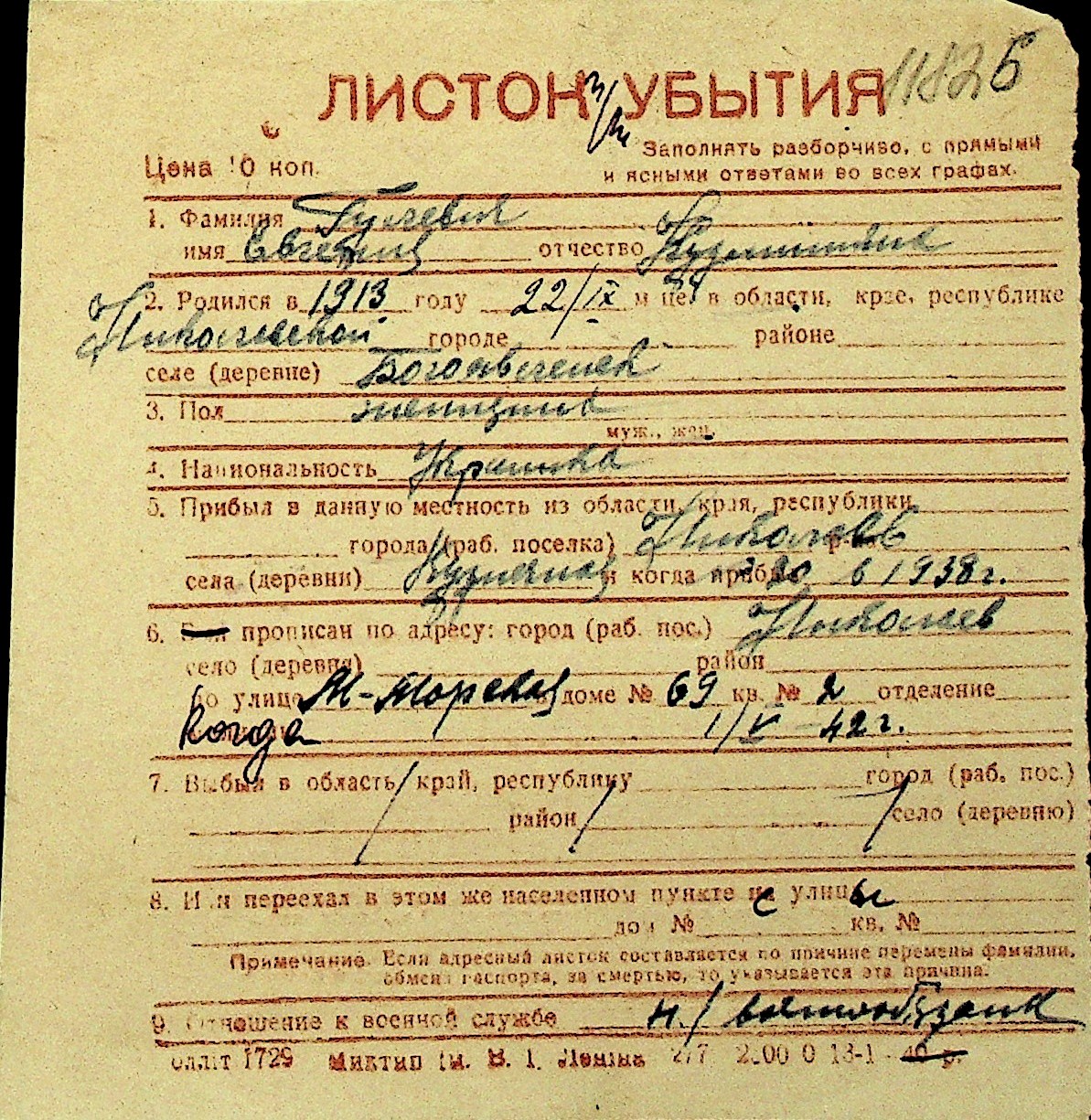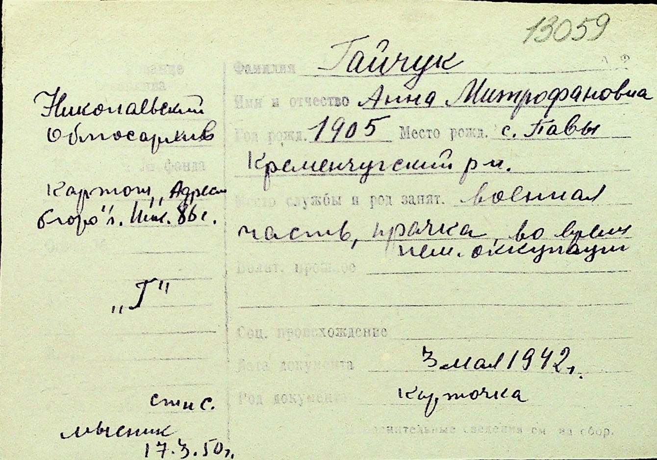 • • Перелік карток до фонду № Н-1016
