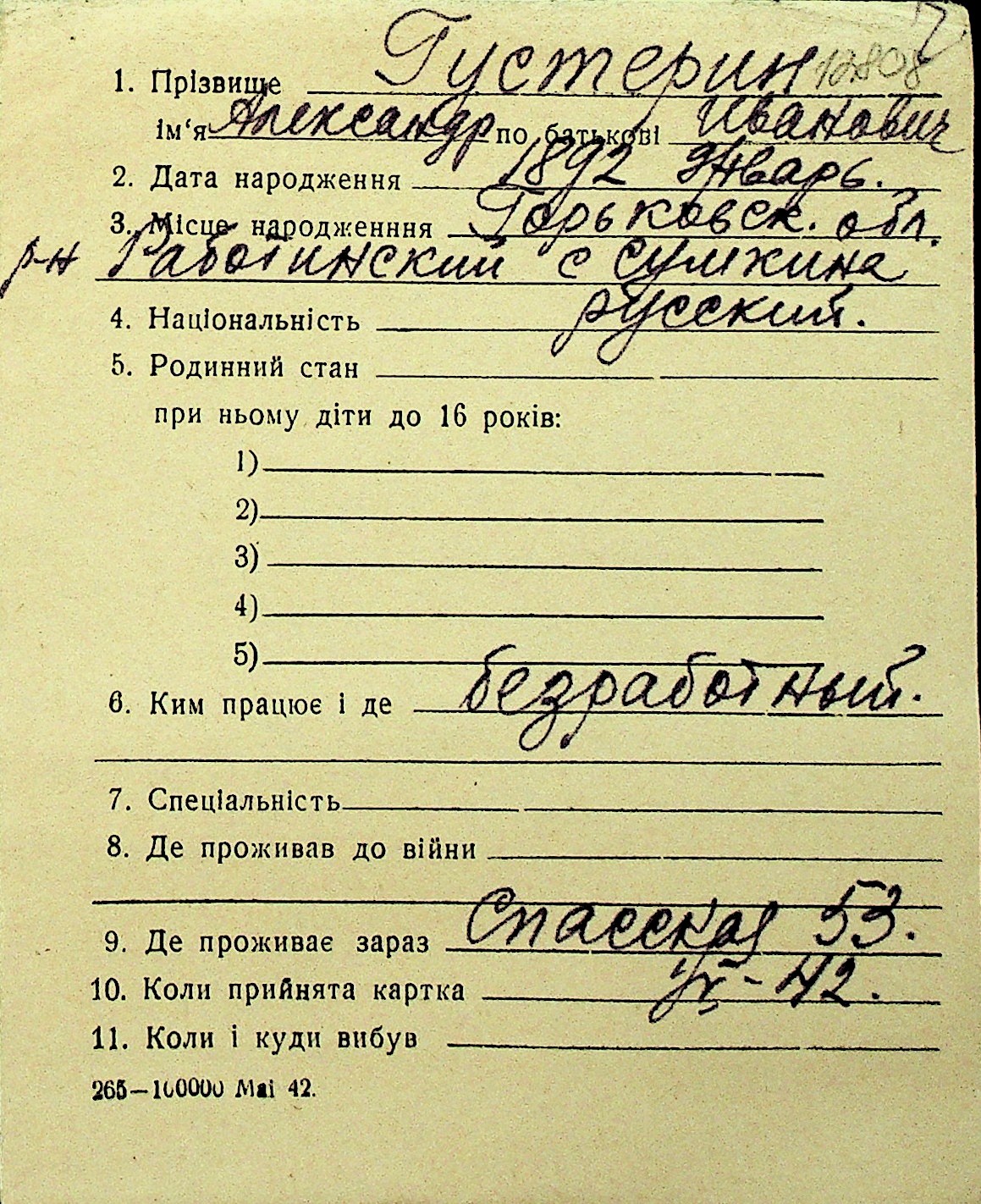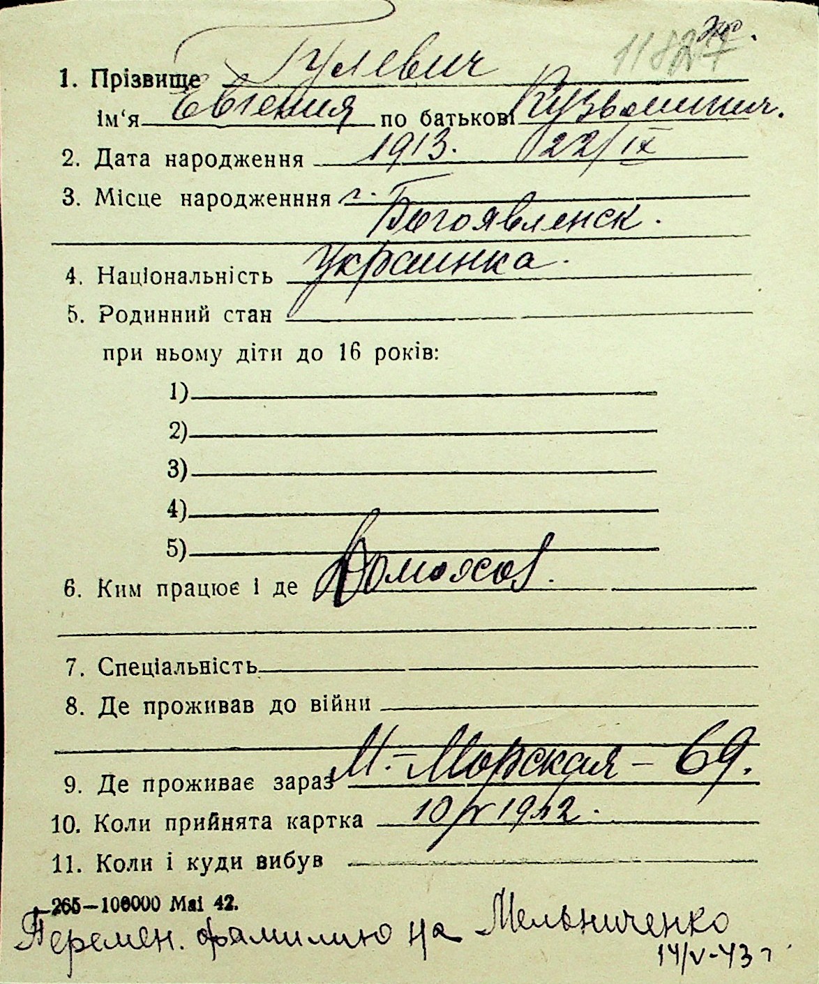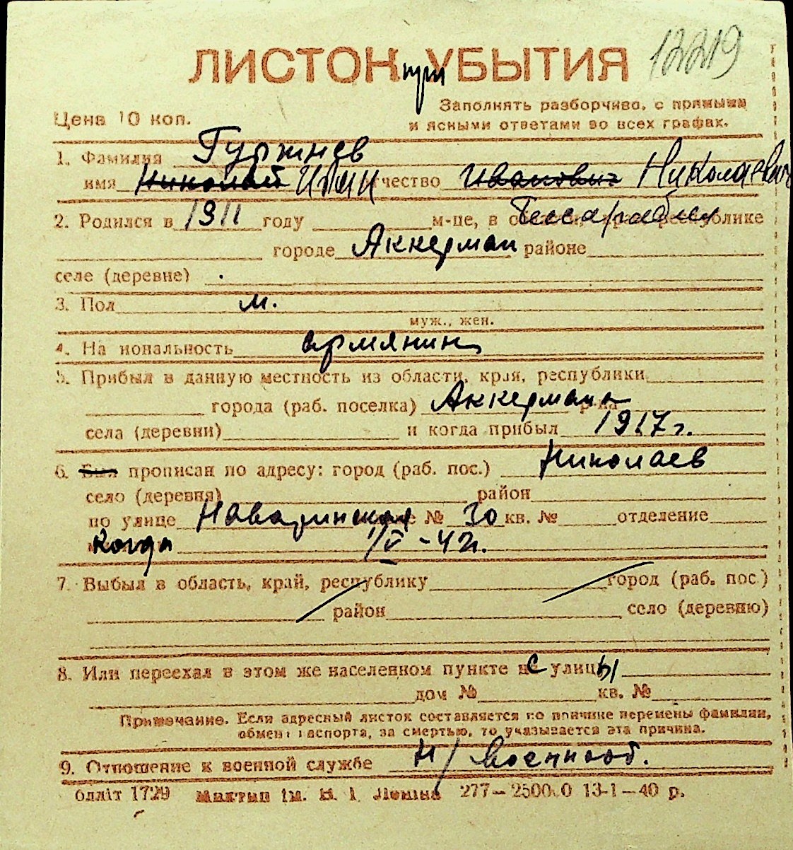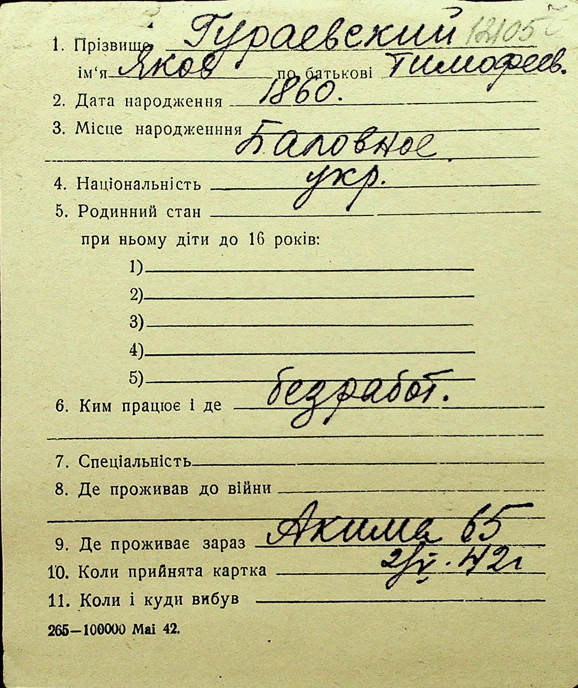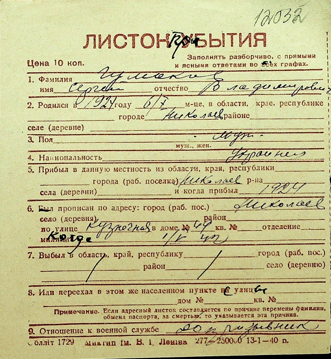 • • Перелік карток до фонду № Н-1016