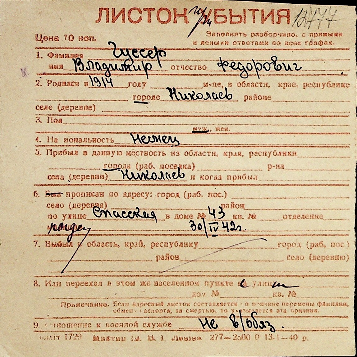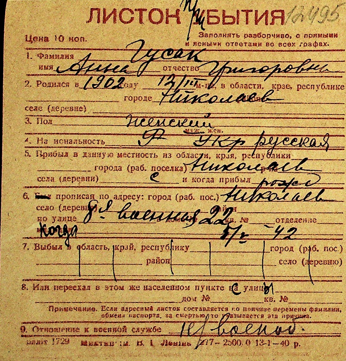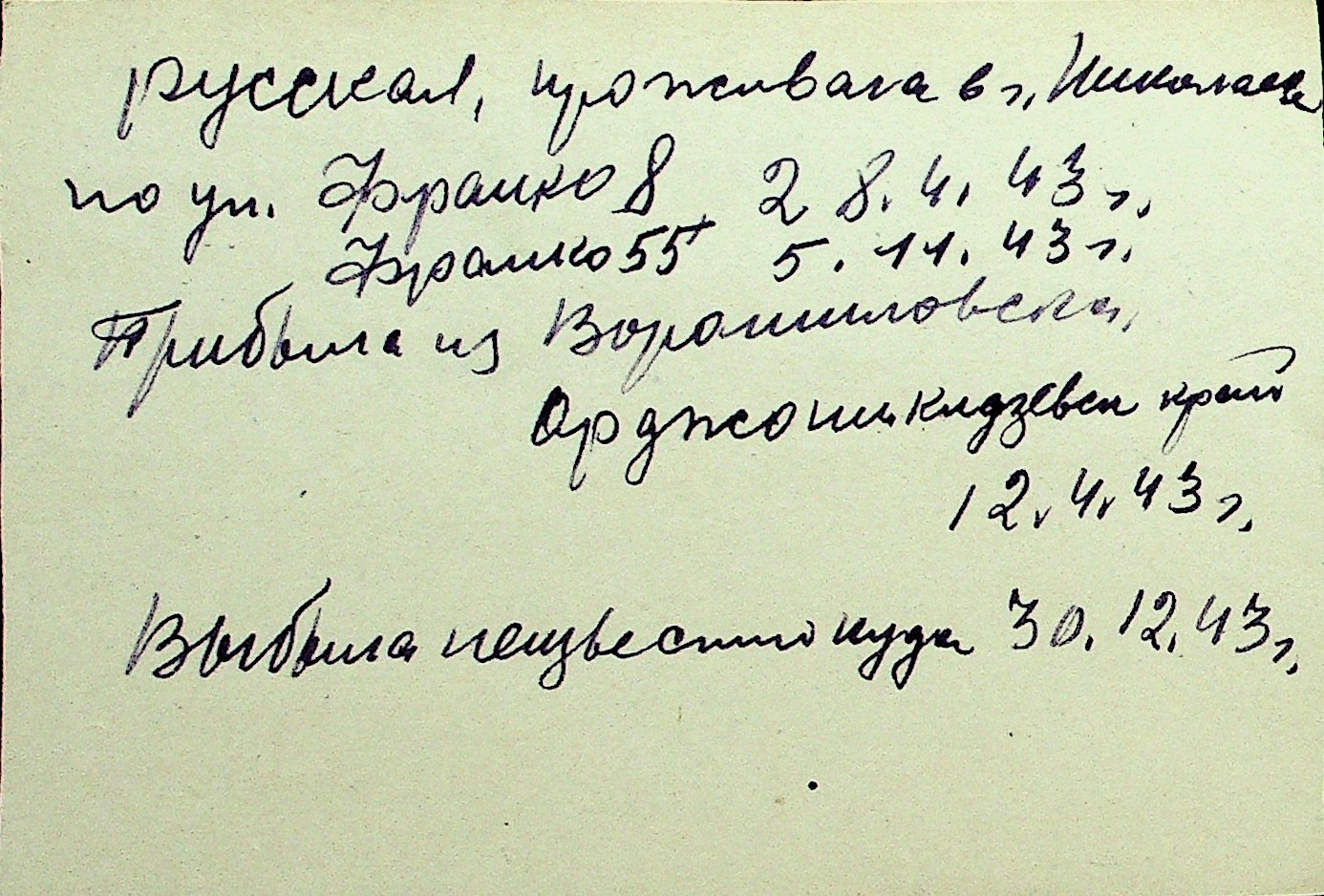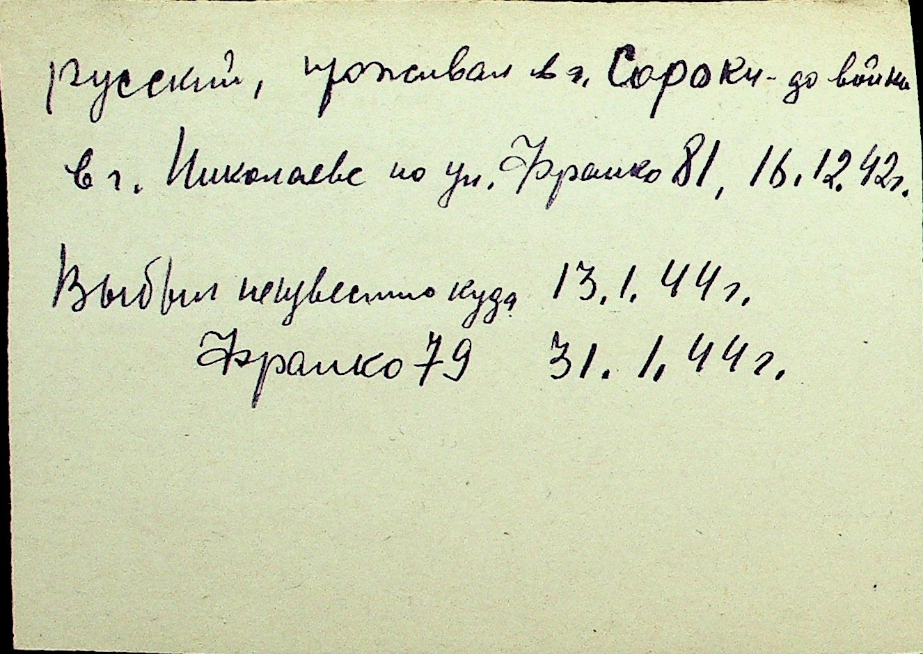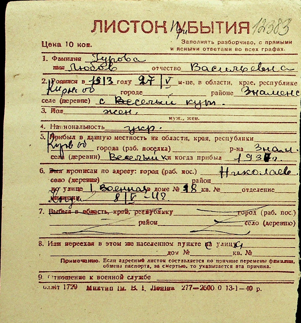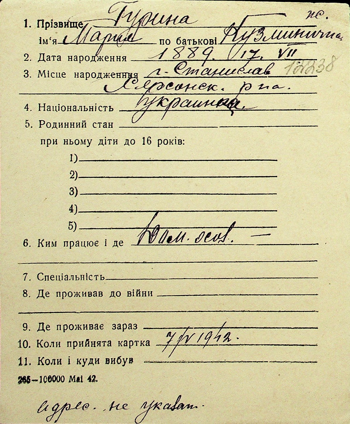 • • Перелік карток до фонду № Н-1016