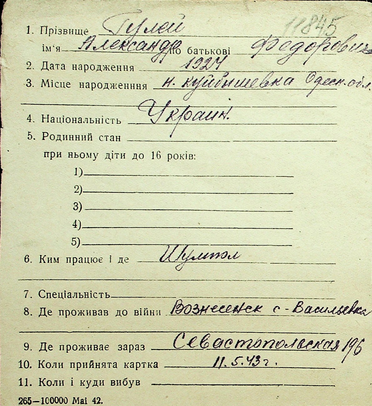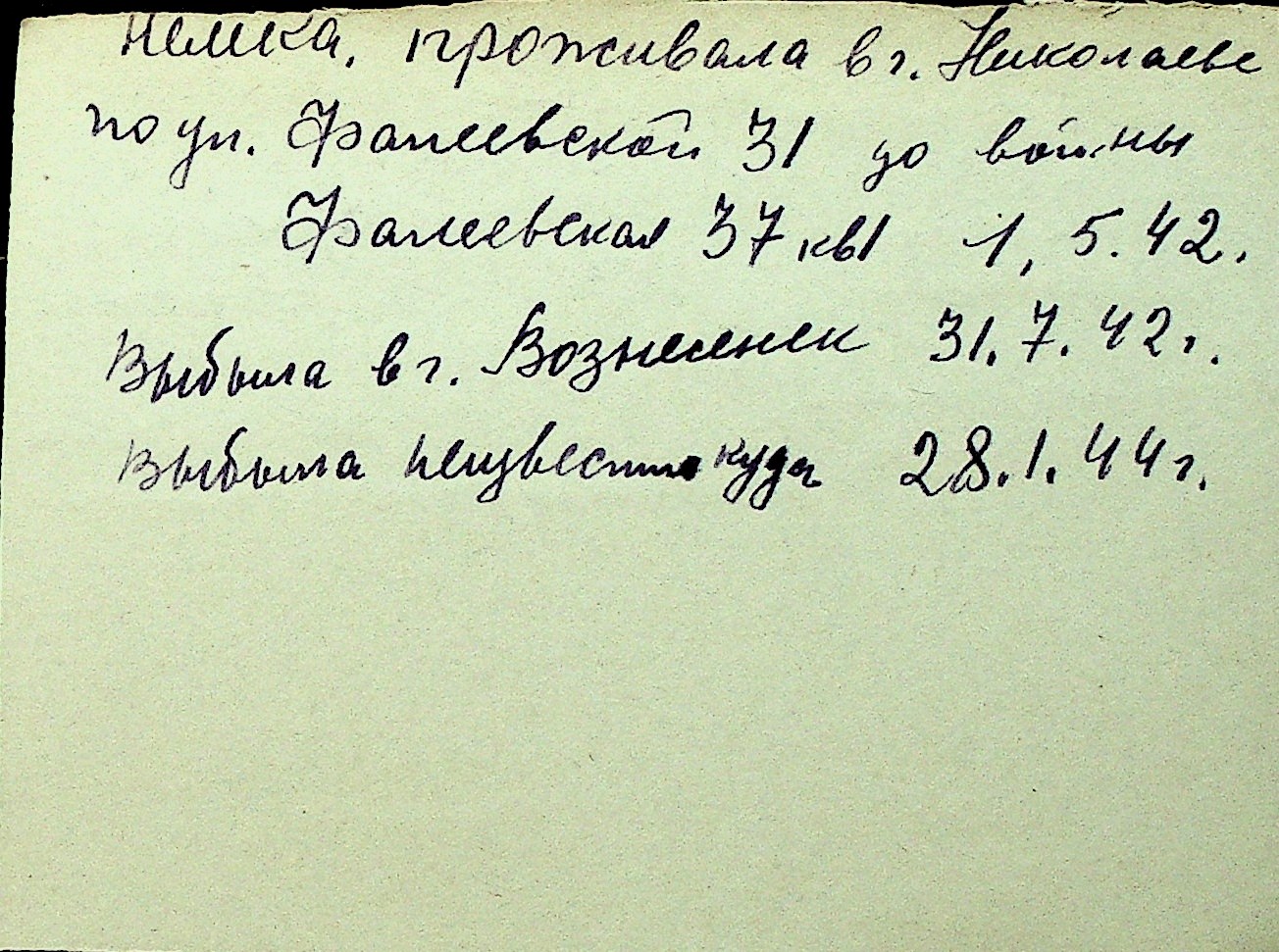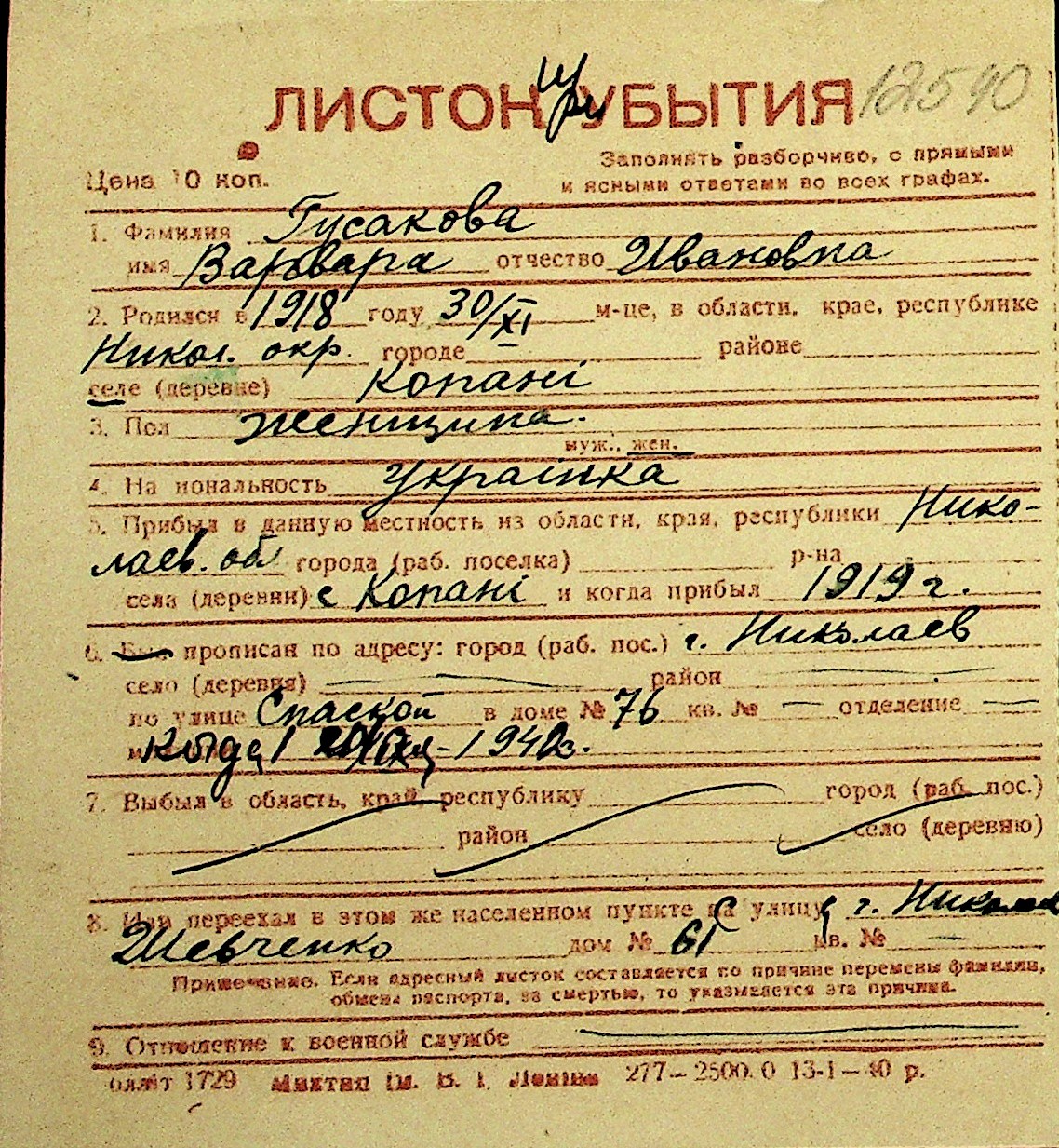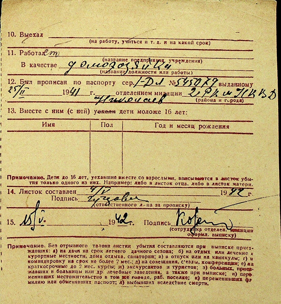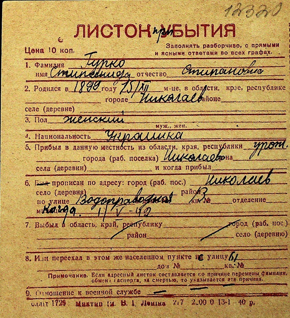 • • Перелік карток до фонду № Н-1016