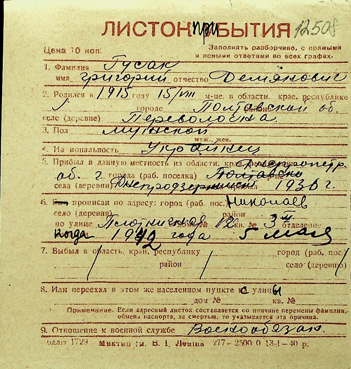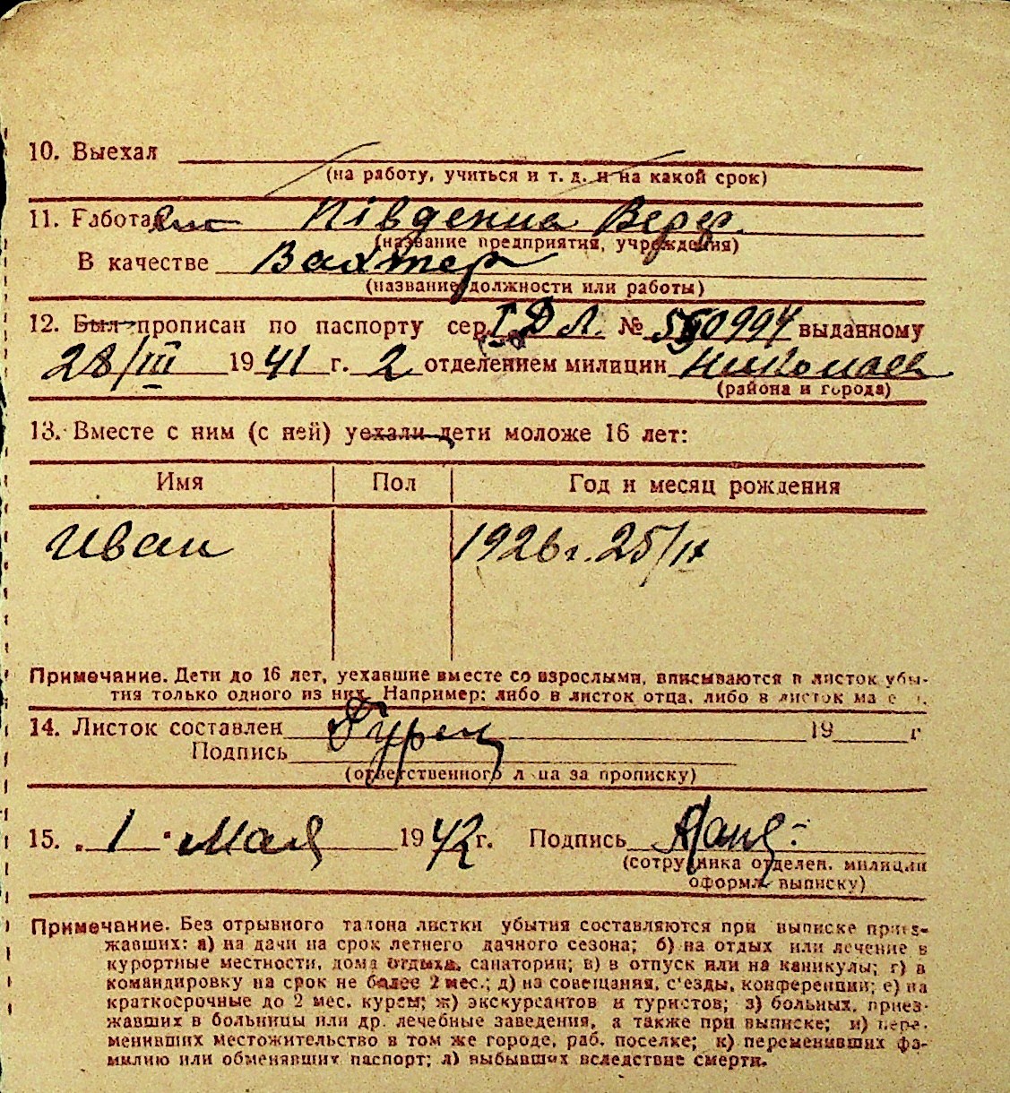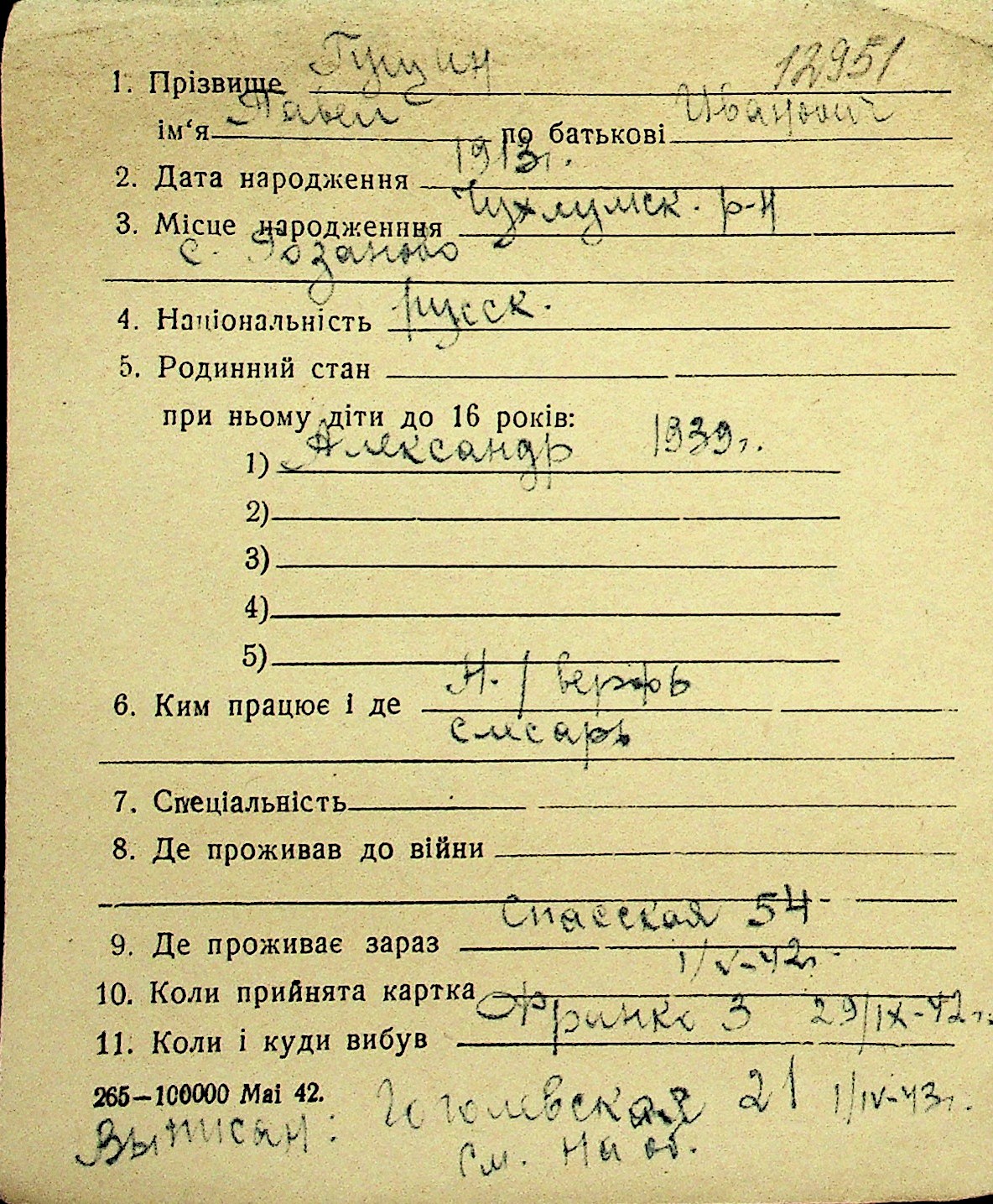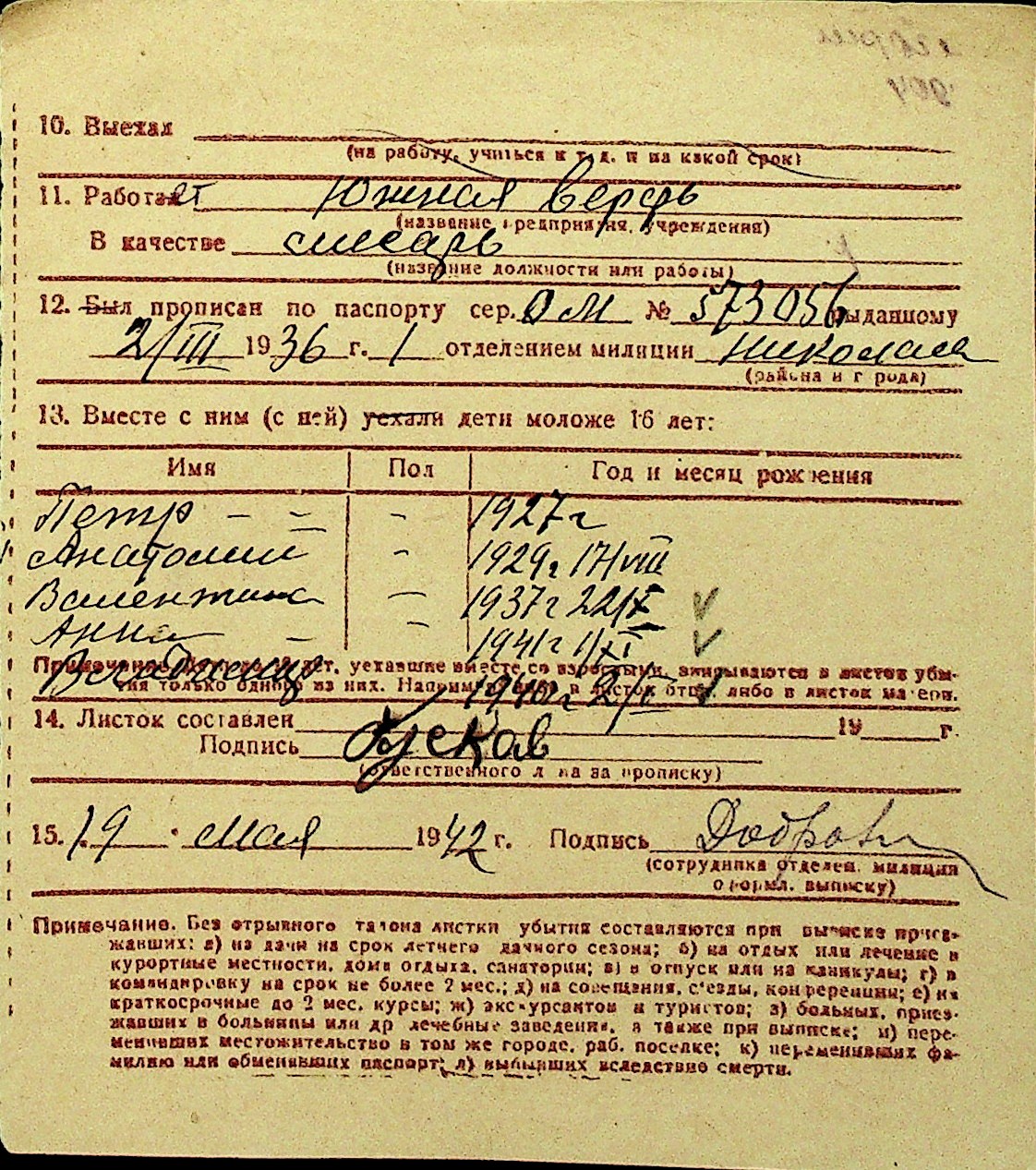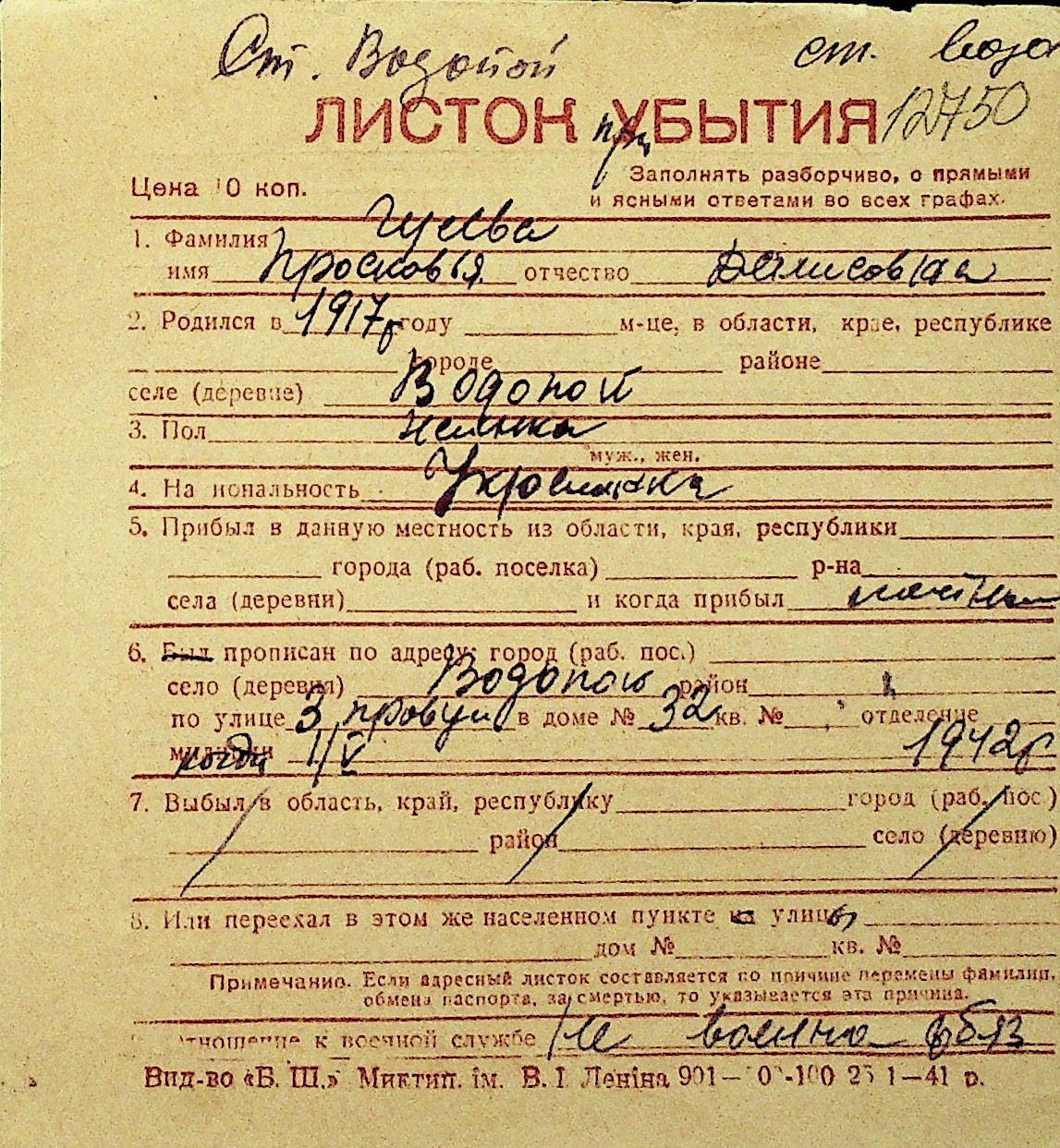 • • Перелік карток до фонду № Н-1016